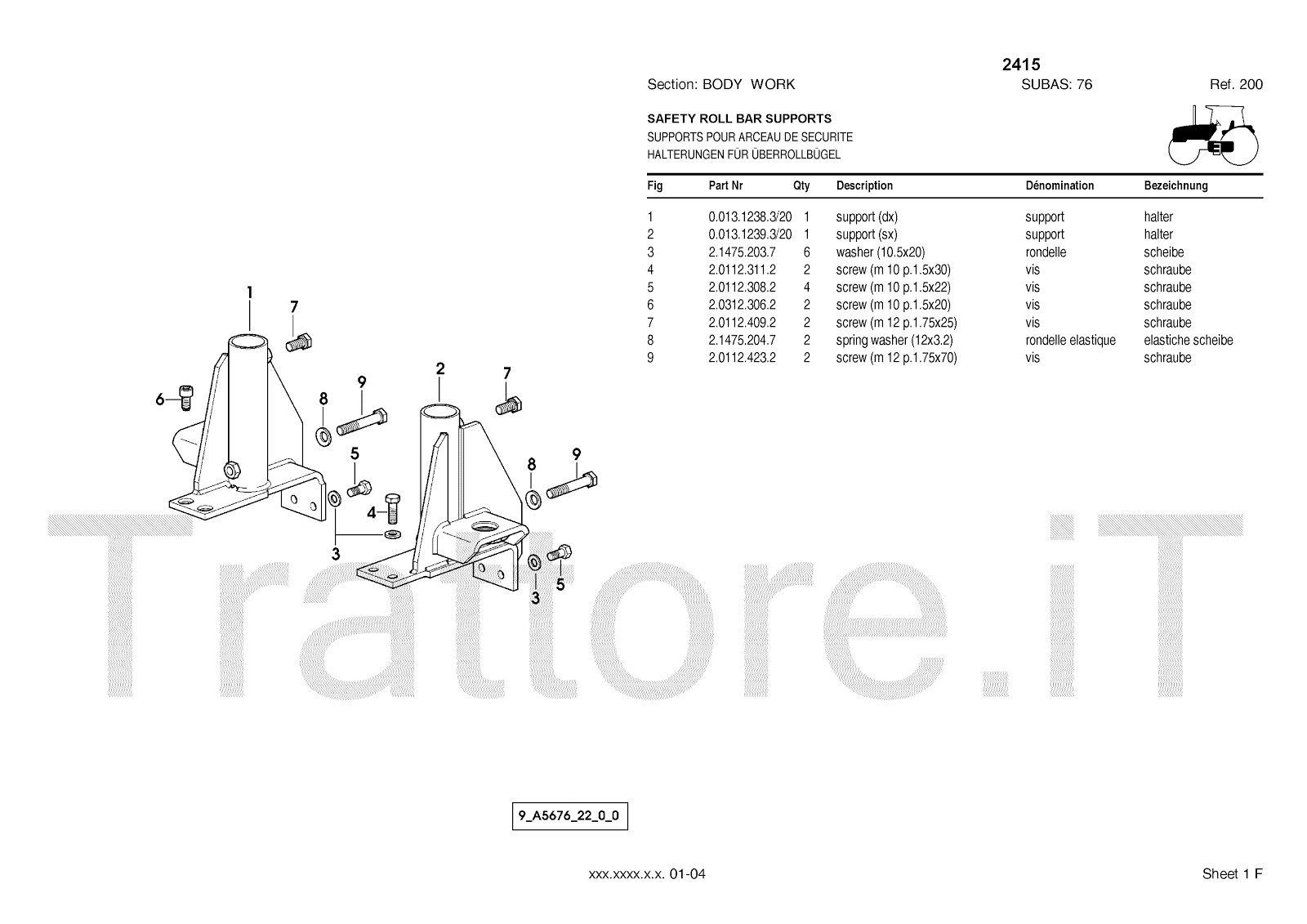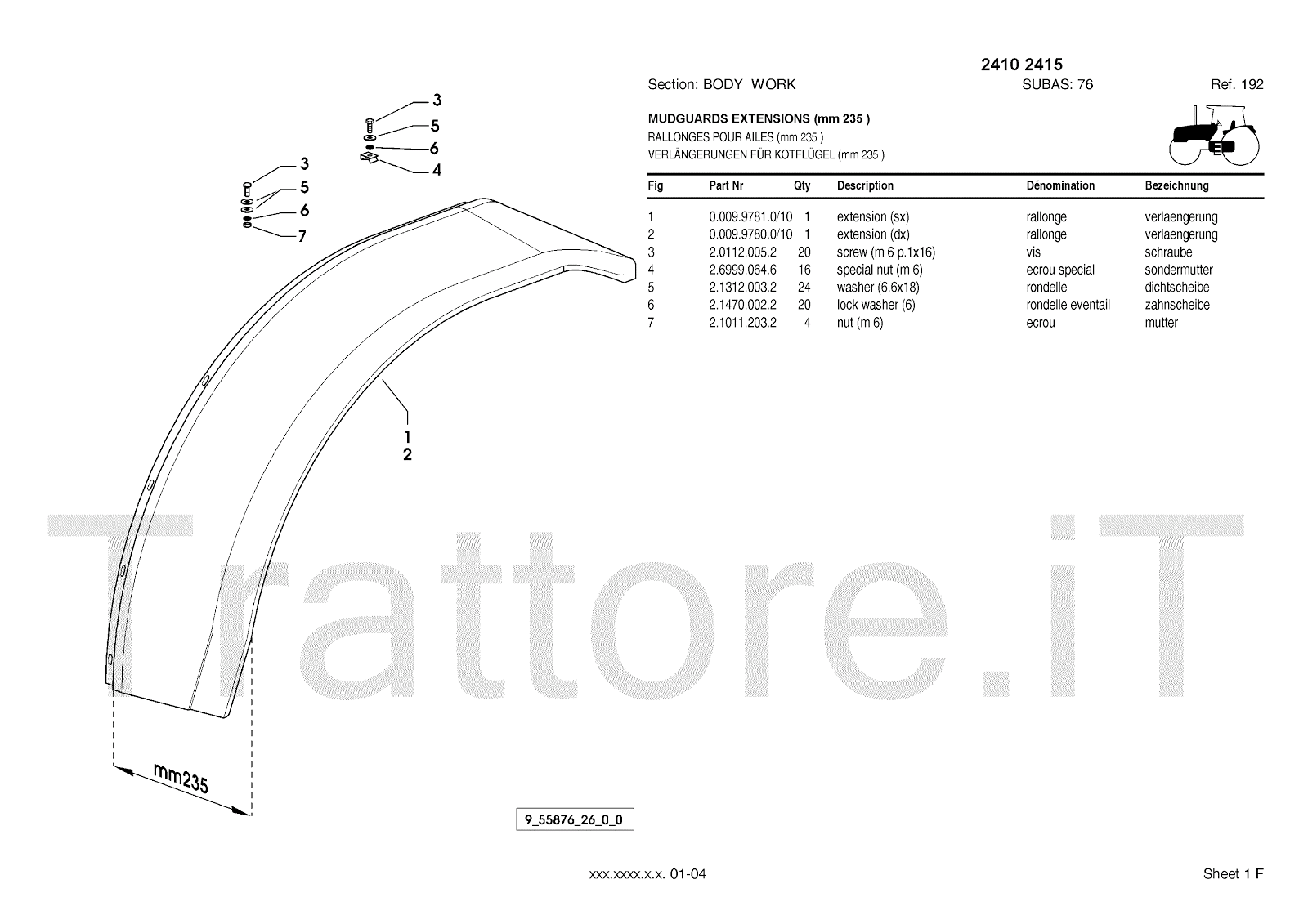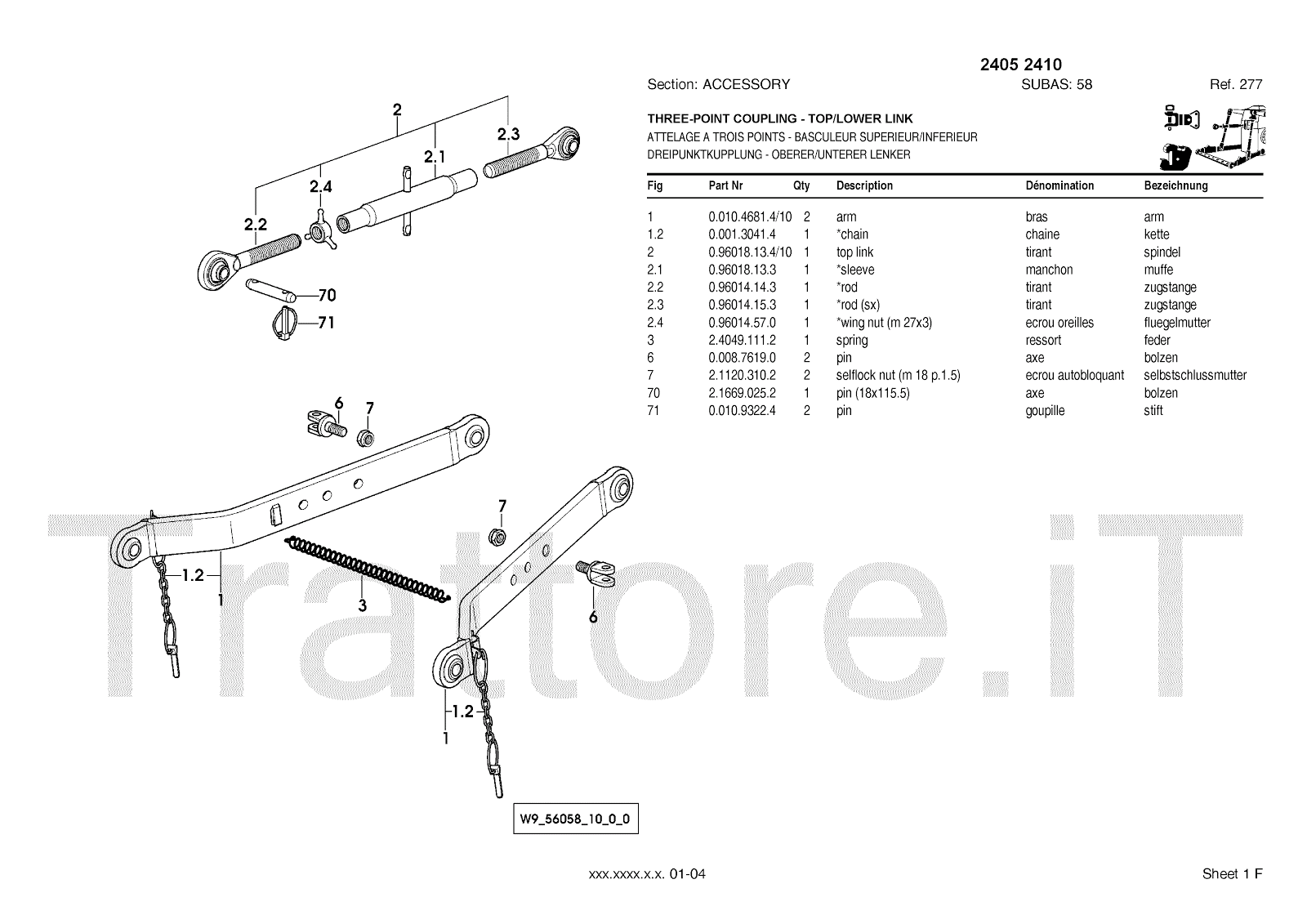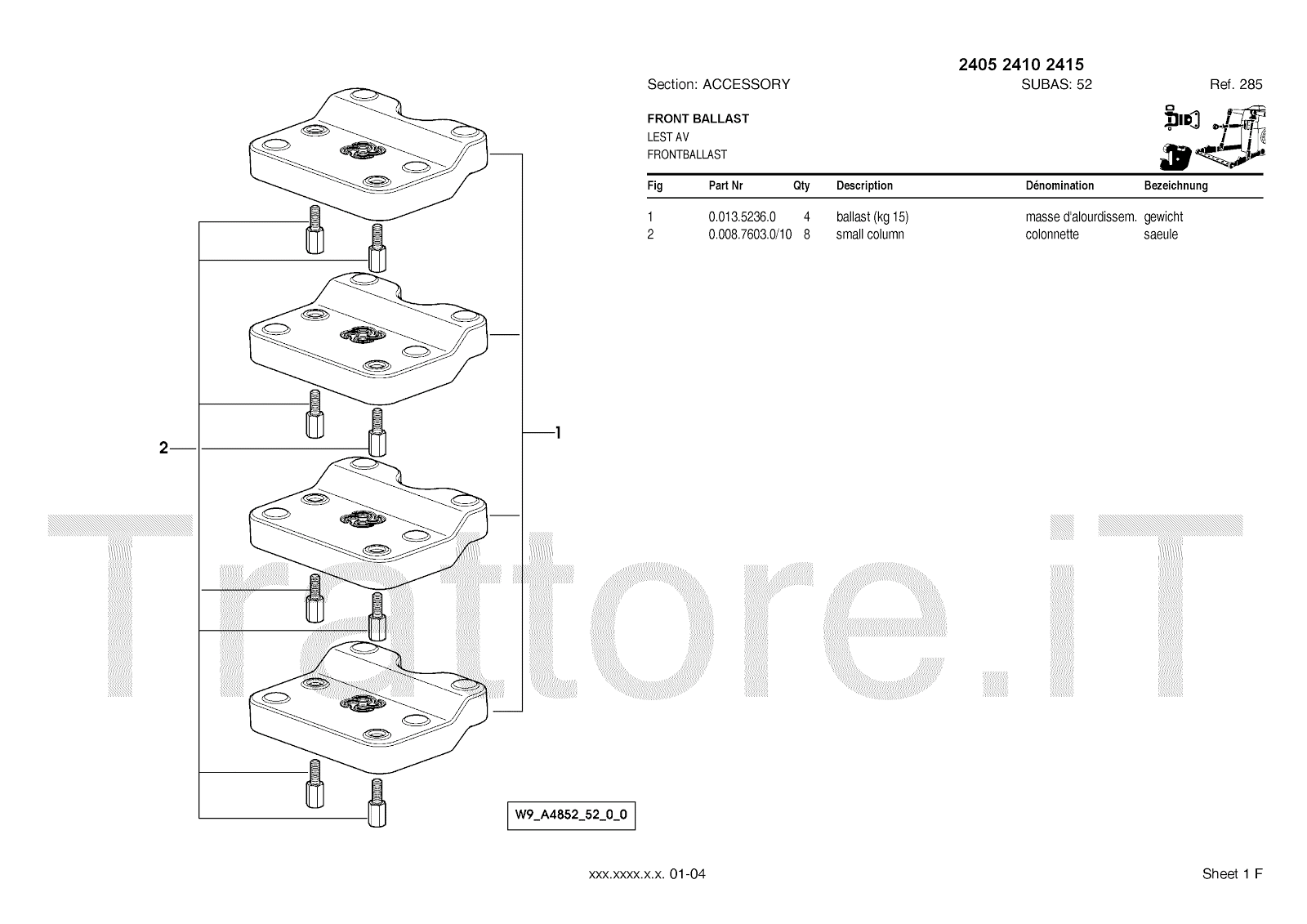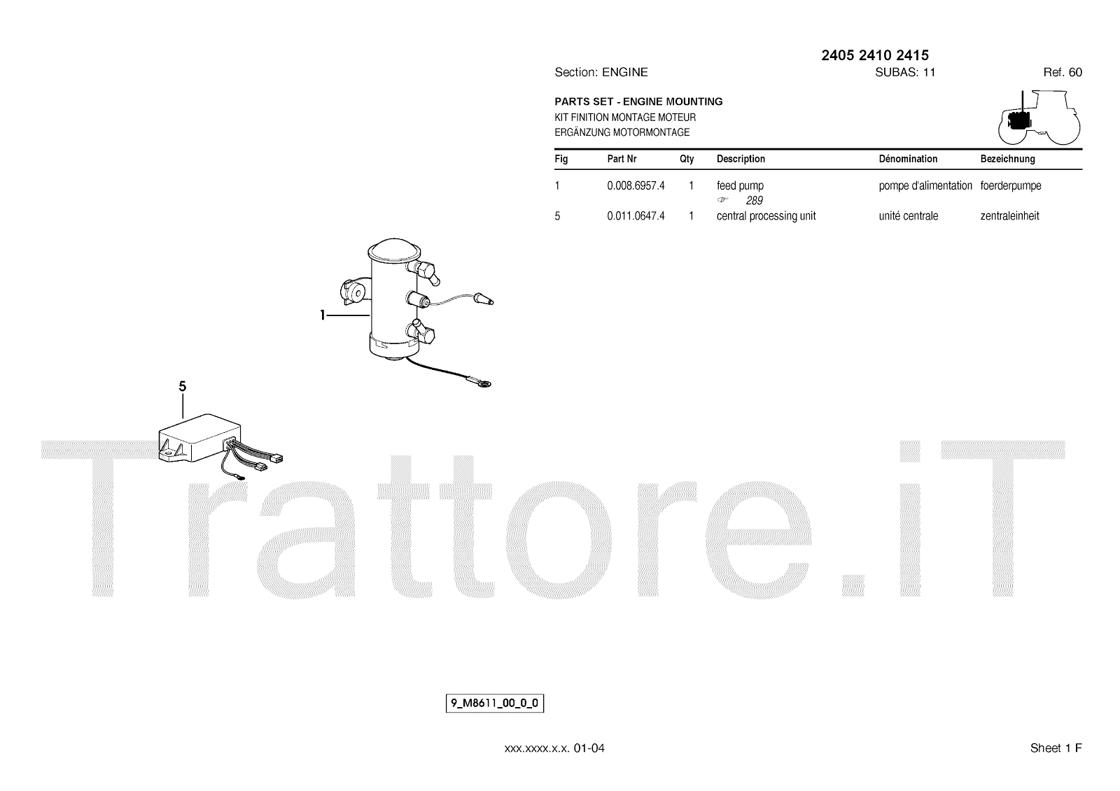Manuale (esploso meccanico) per trattore / trattrice Massey Ferguson 2405