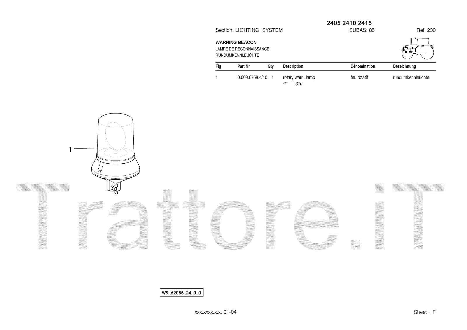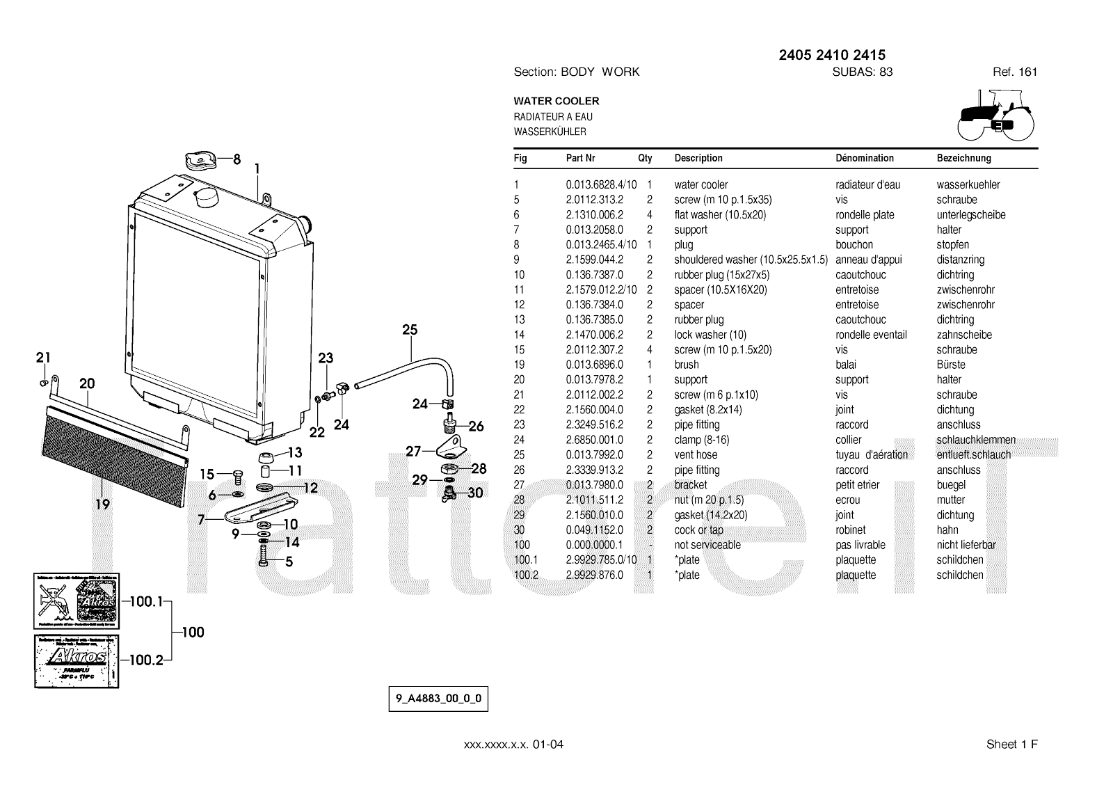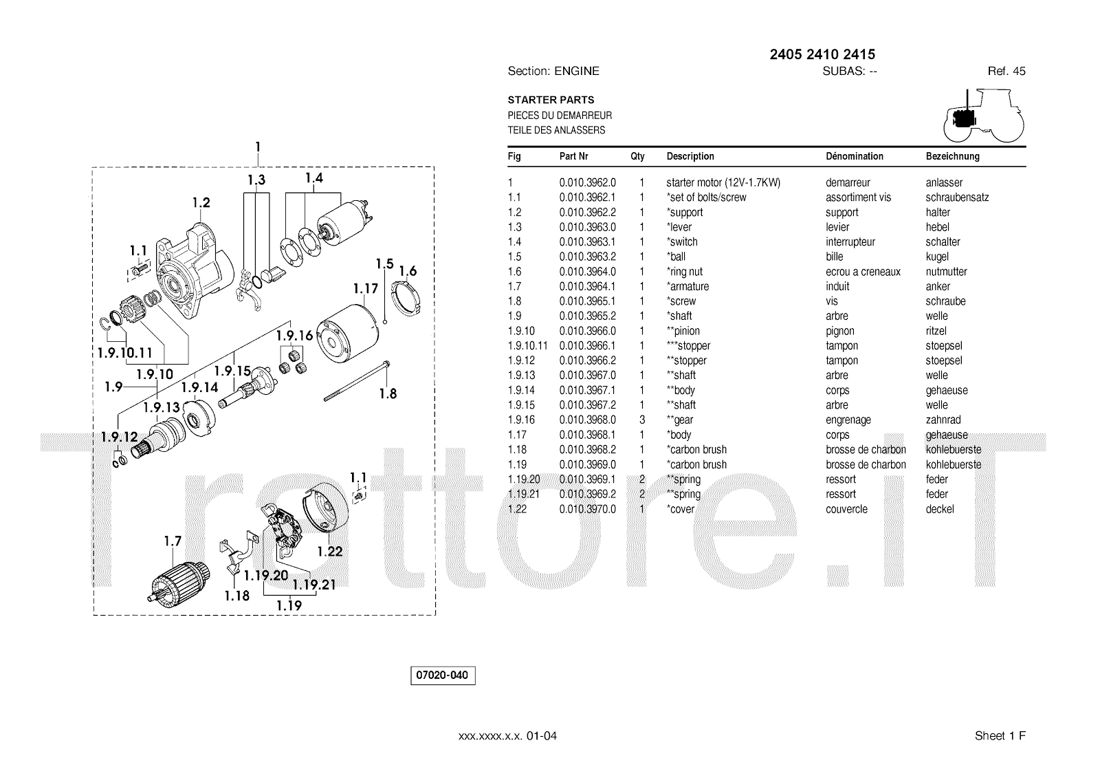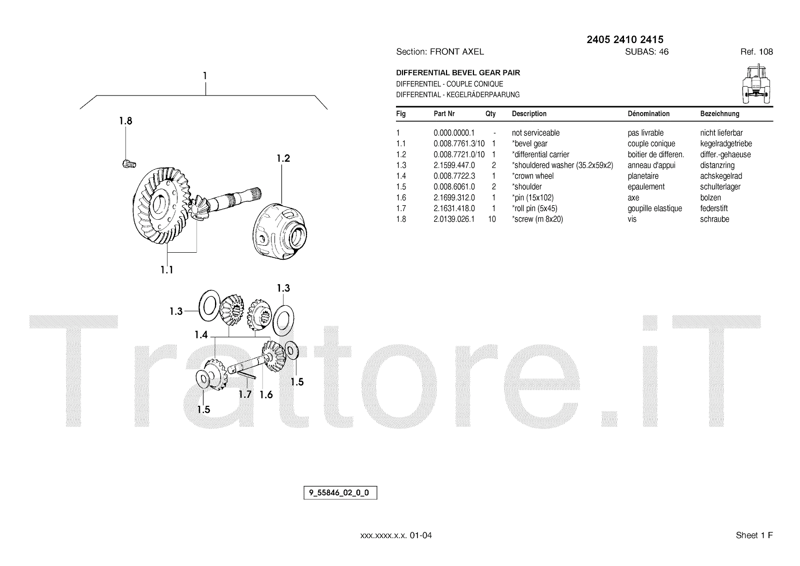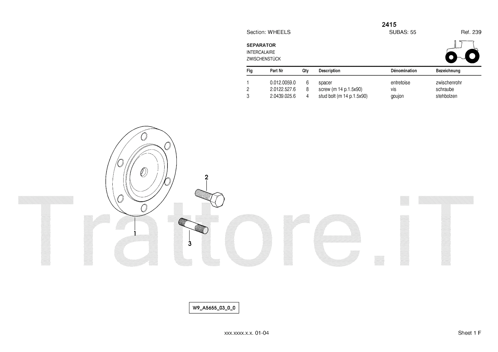 Manuale (esploso meccanico) per trattore / trattrice Massey Ferguson 2405