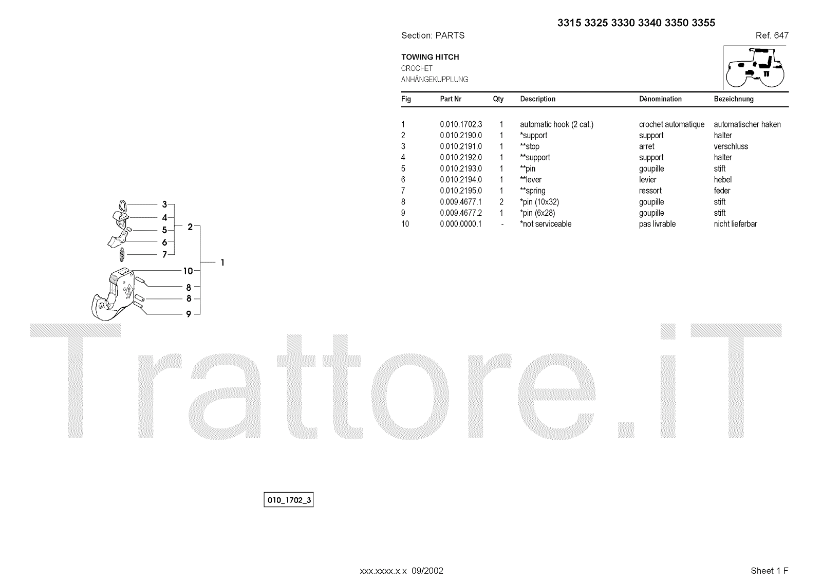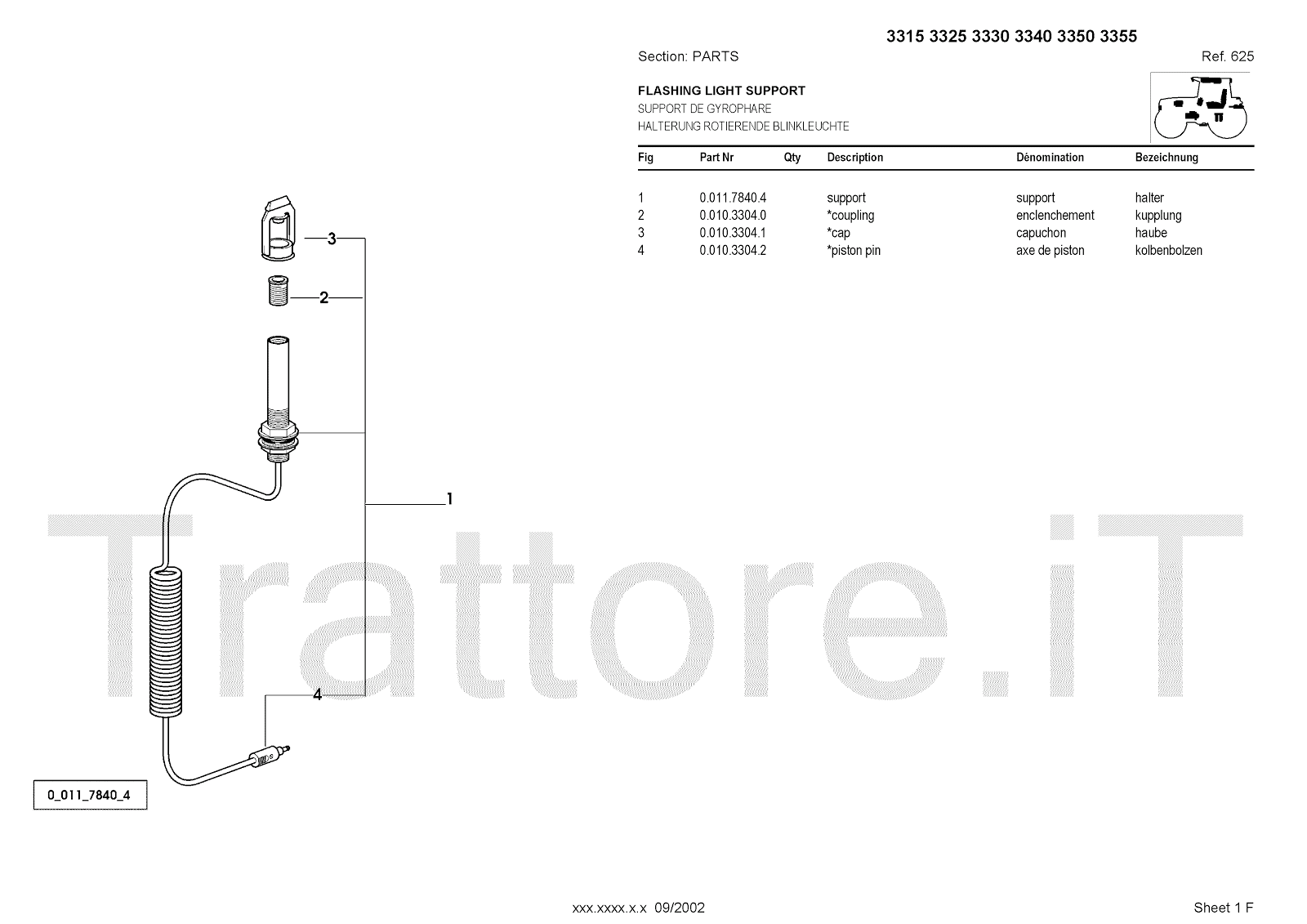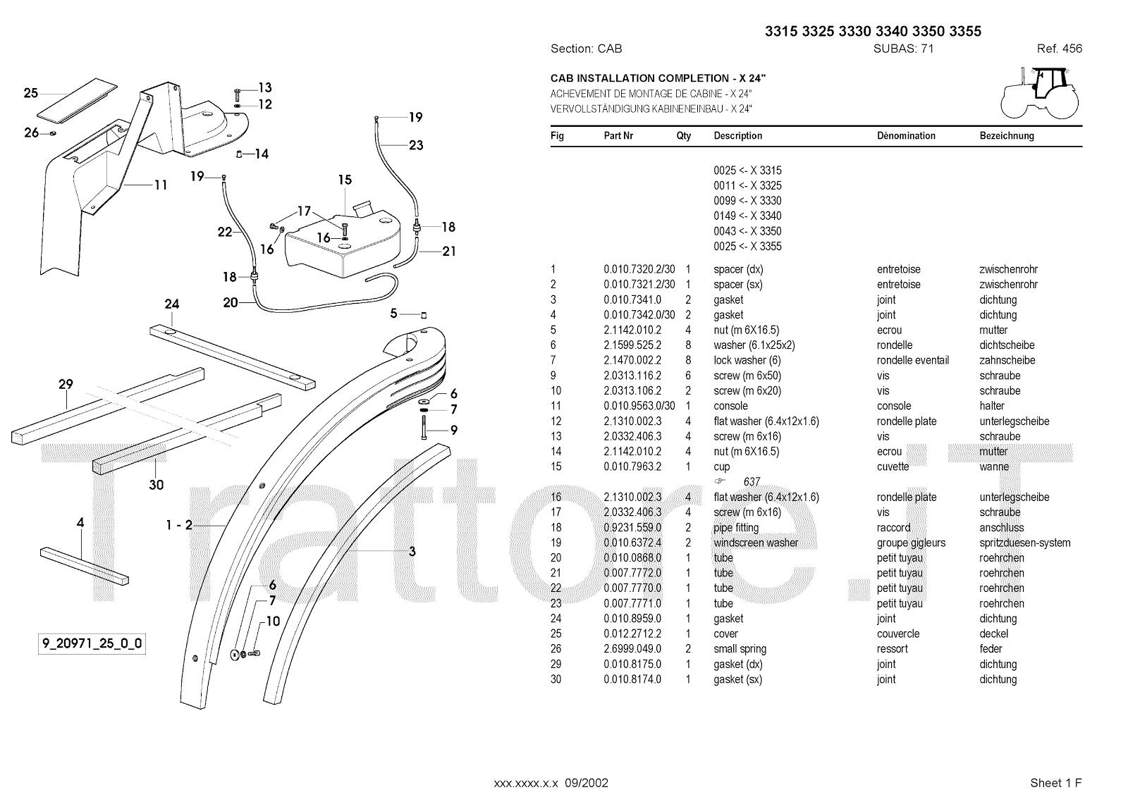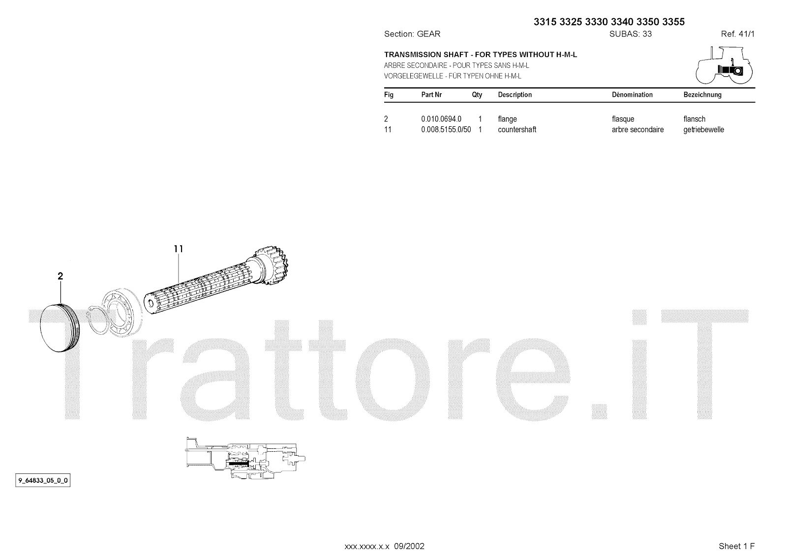 Manuale (esploso meccanico) per trattore / trattrice Massey Ferguson 3340