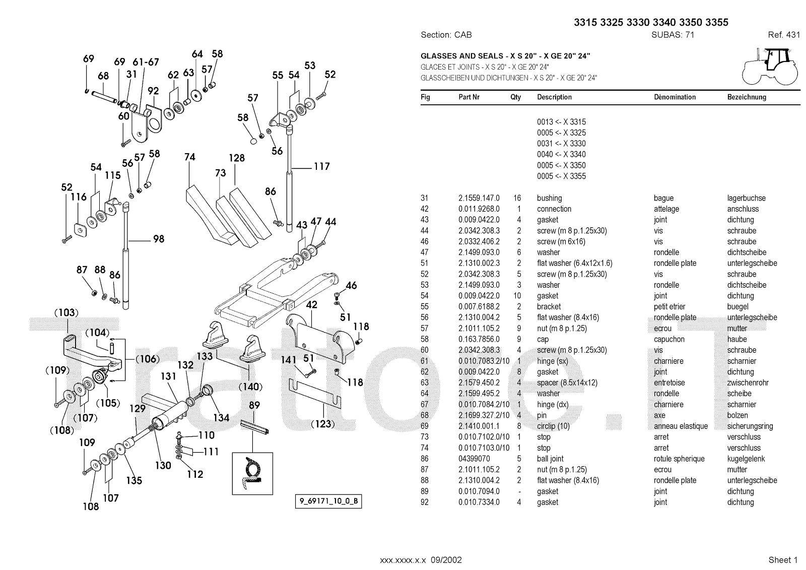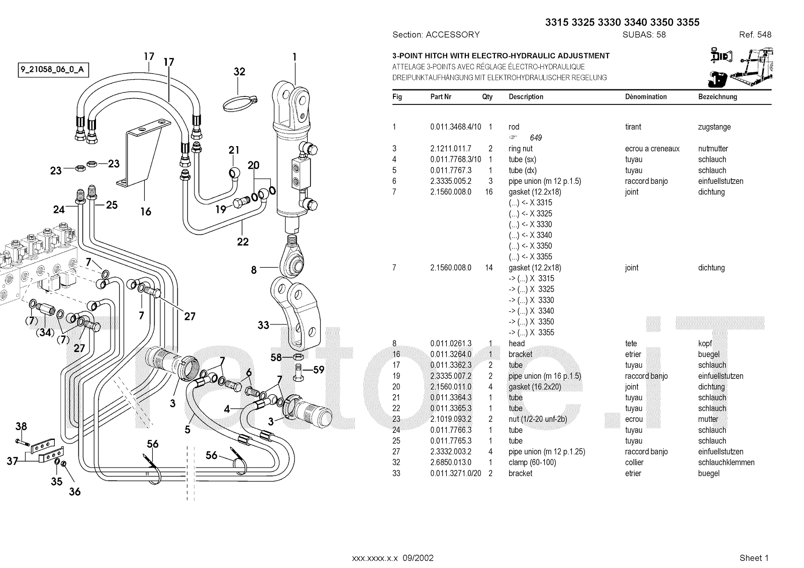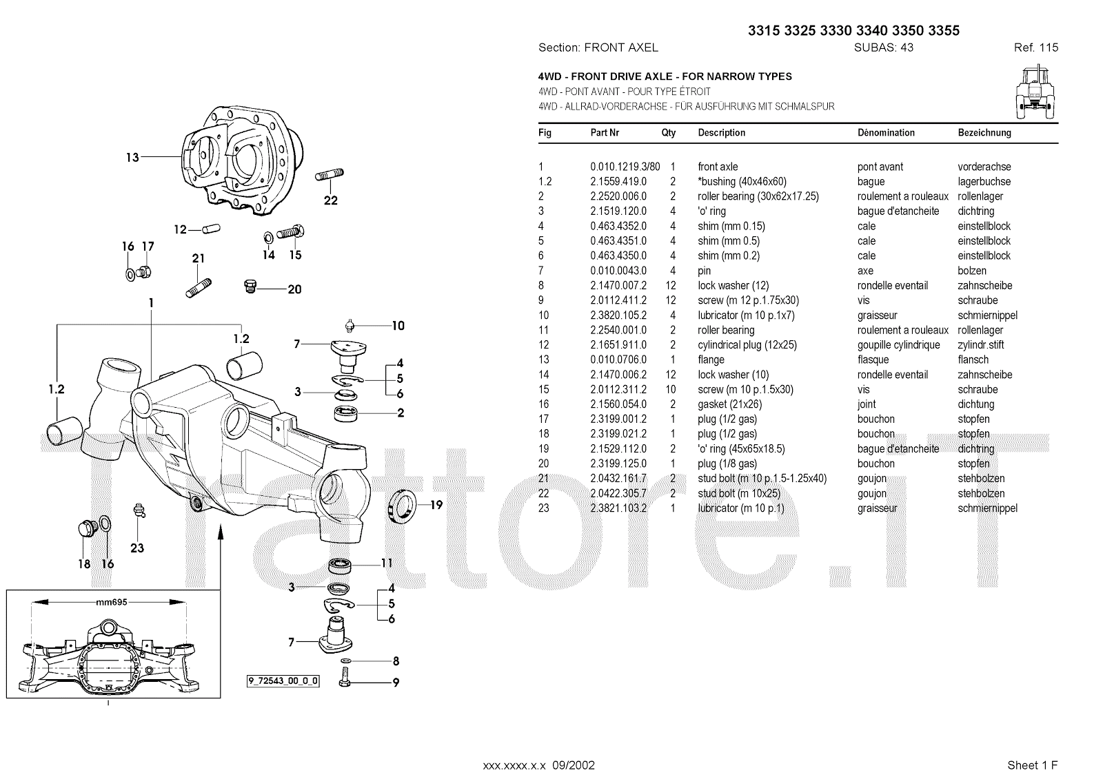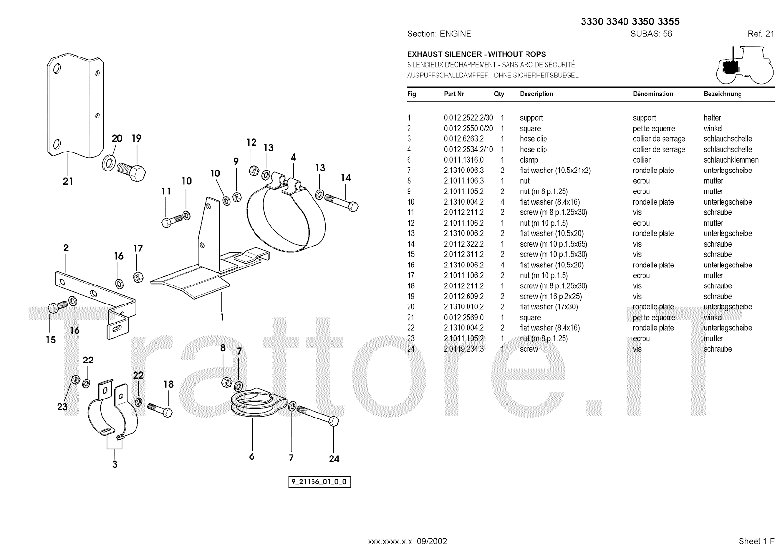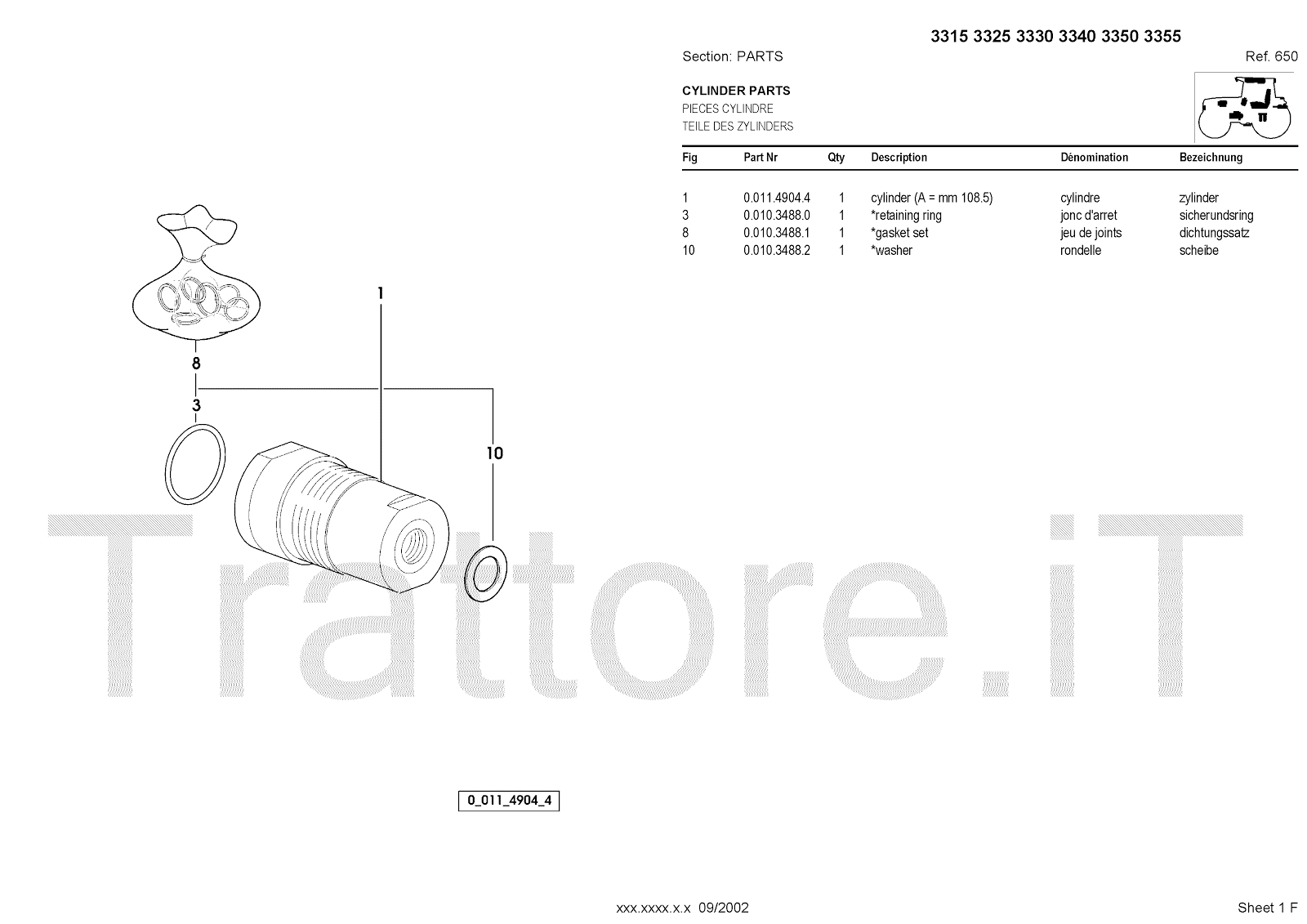 Manuale (esploso meccanico) per trattore / trattrice Massey Ferguson 3340