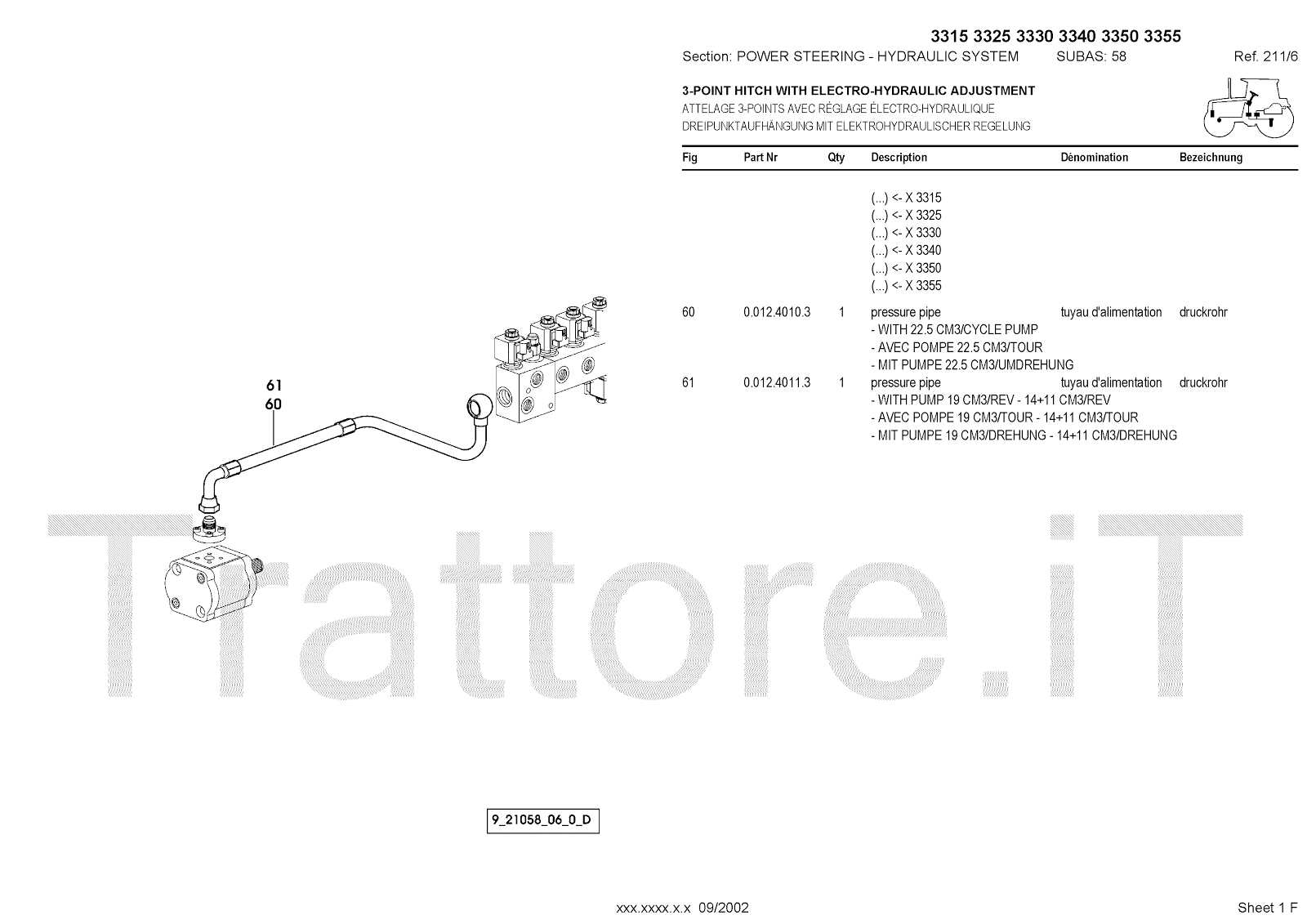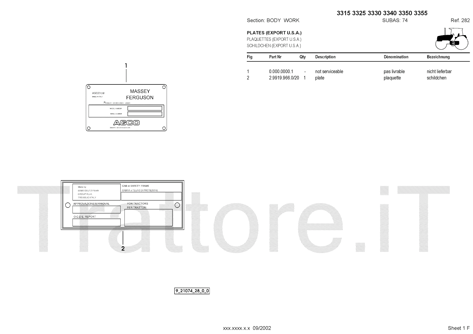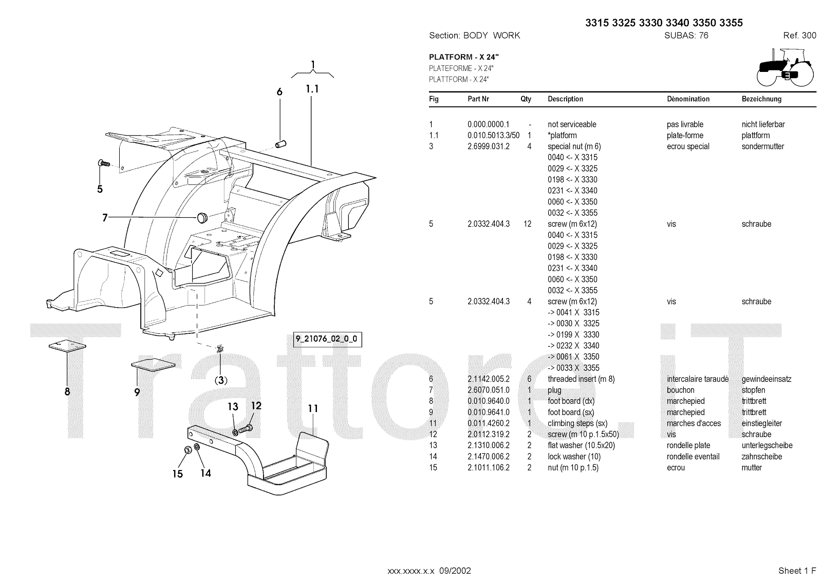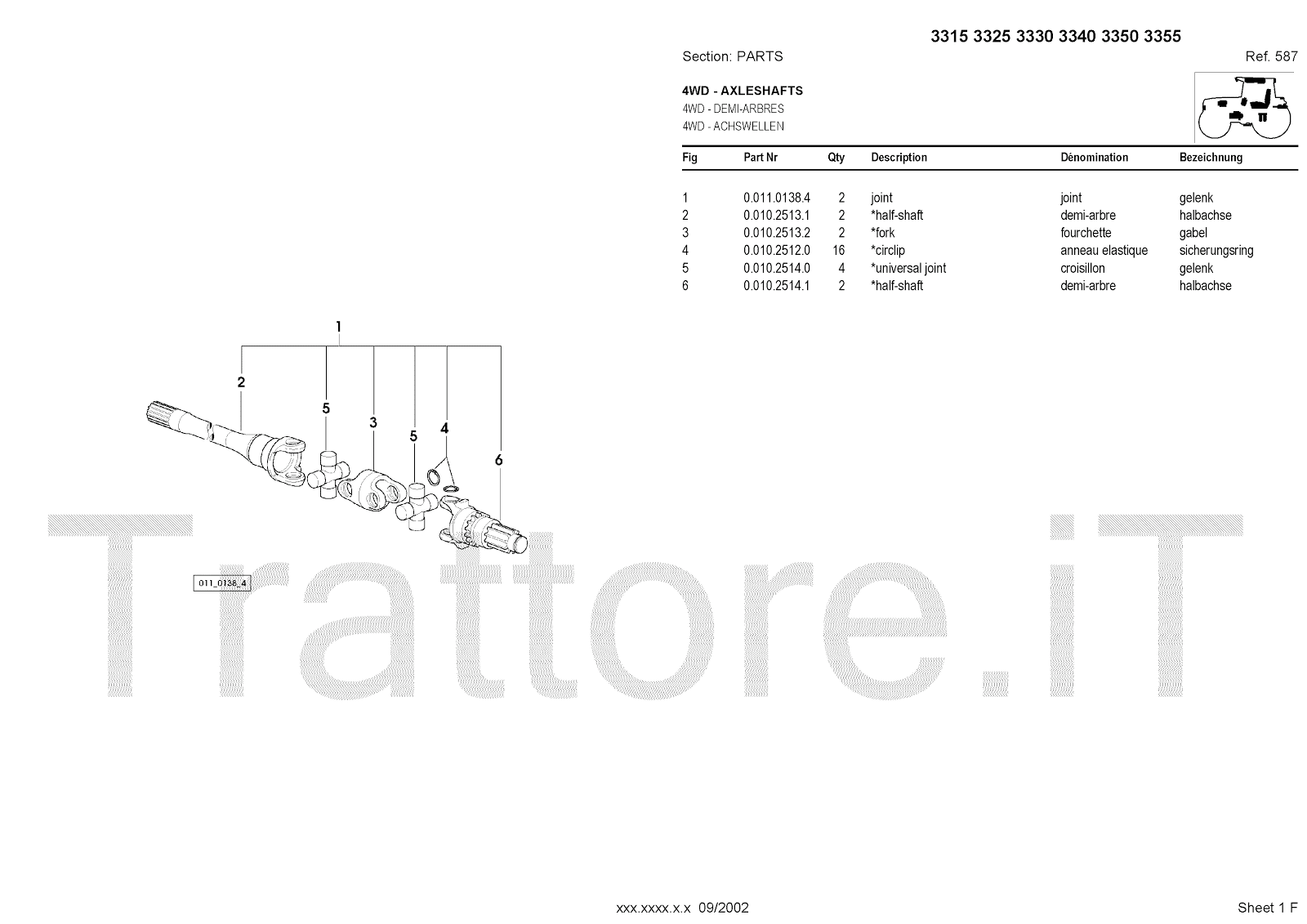 Manuale (esploso meccanico) per trattore / trattrice Massey Ferguson 3340