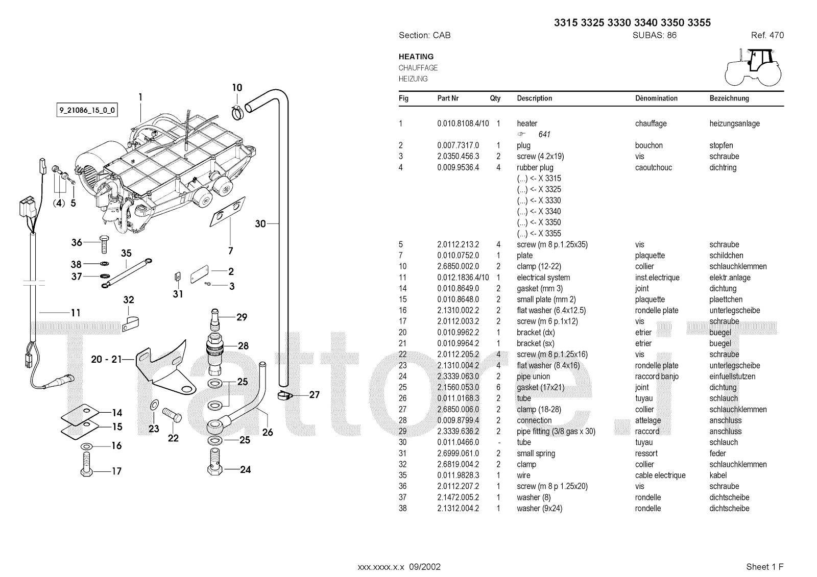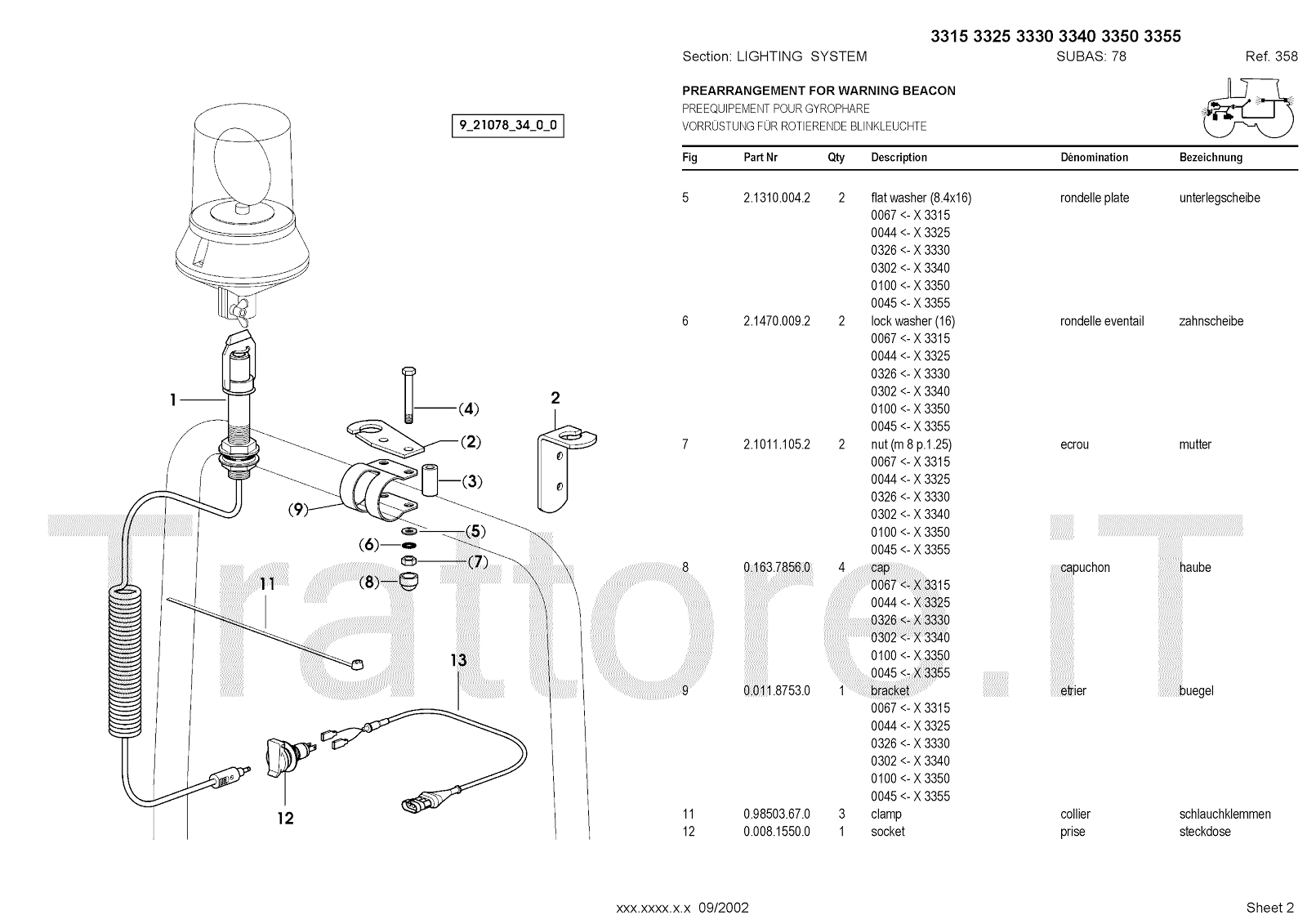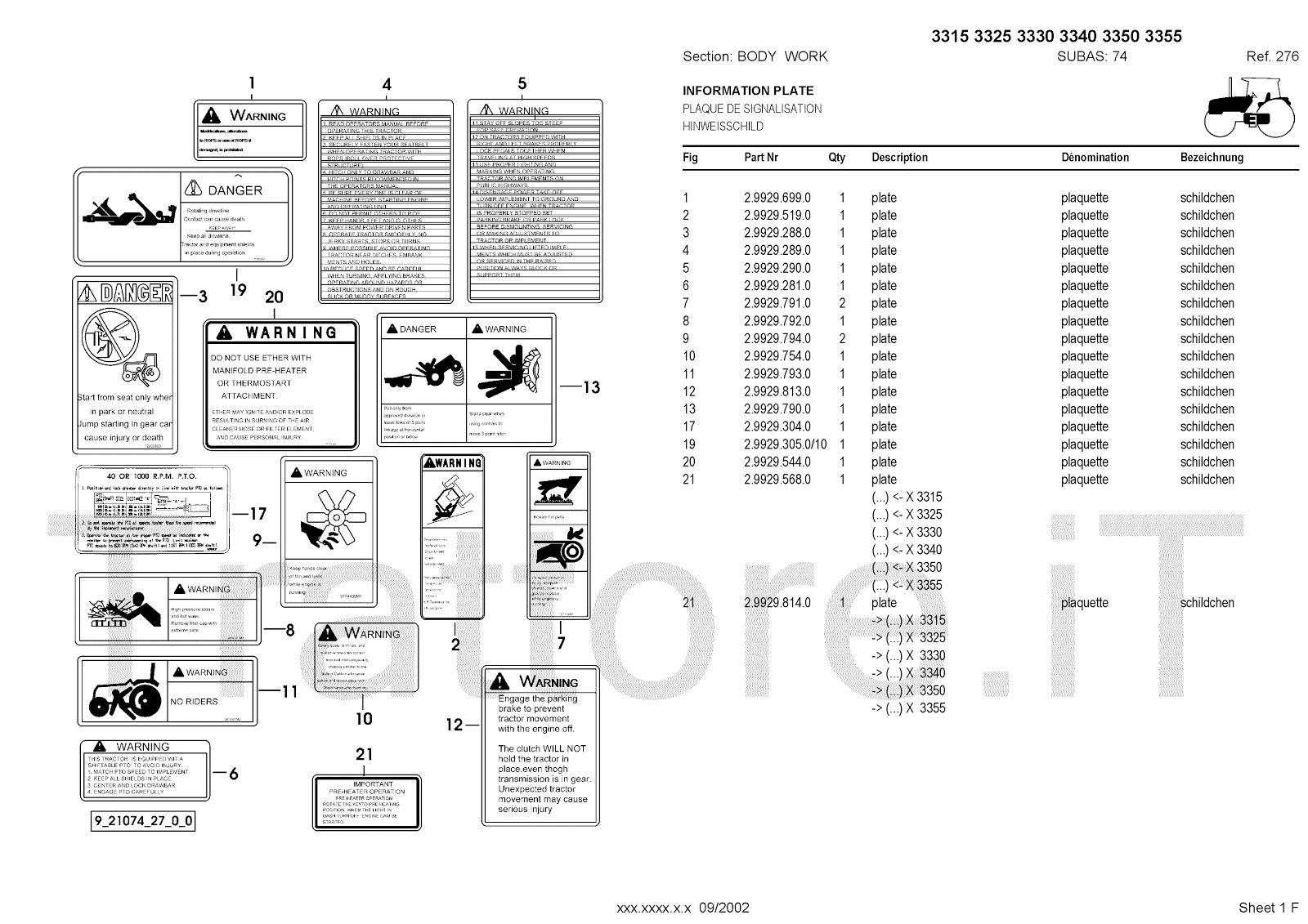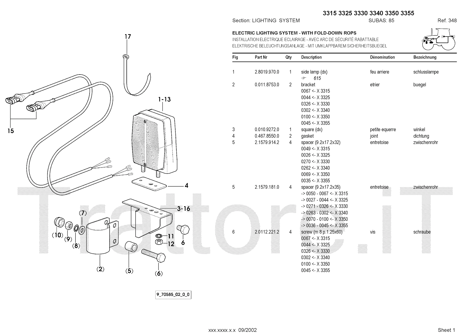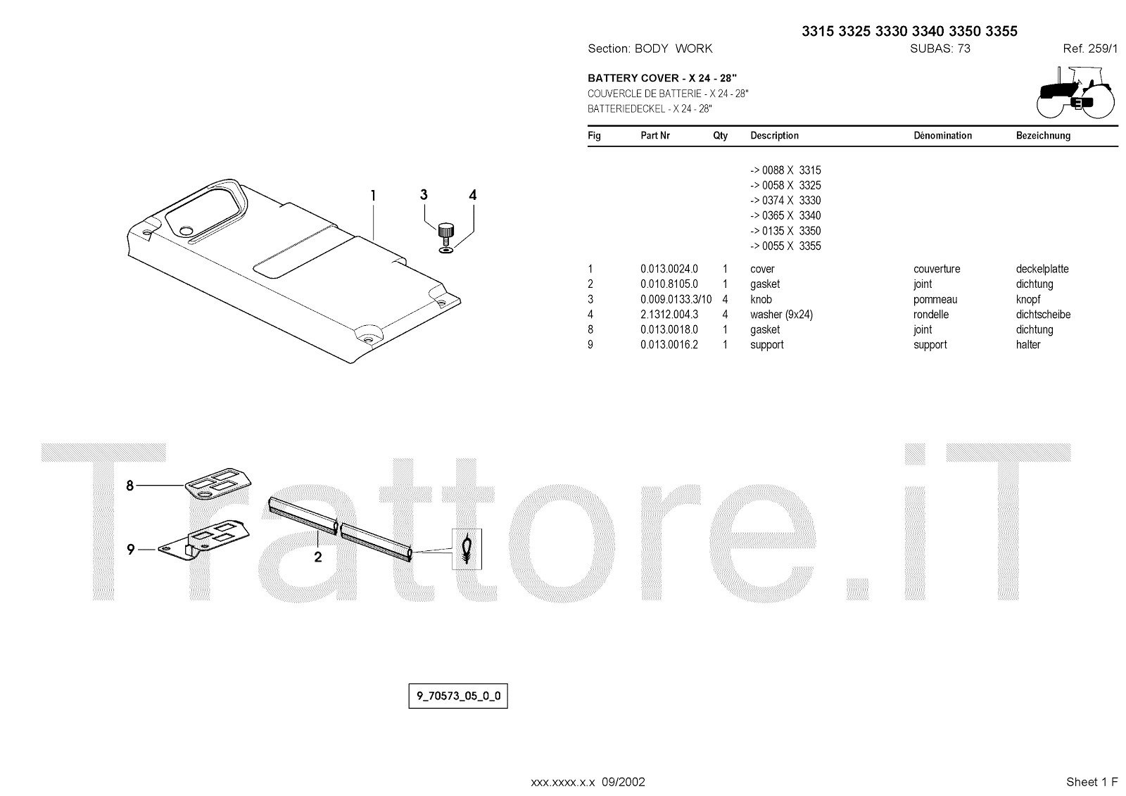 Manuale (esploso meccanico) per trattore / trattrice Massey Ferguson 3340