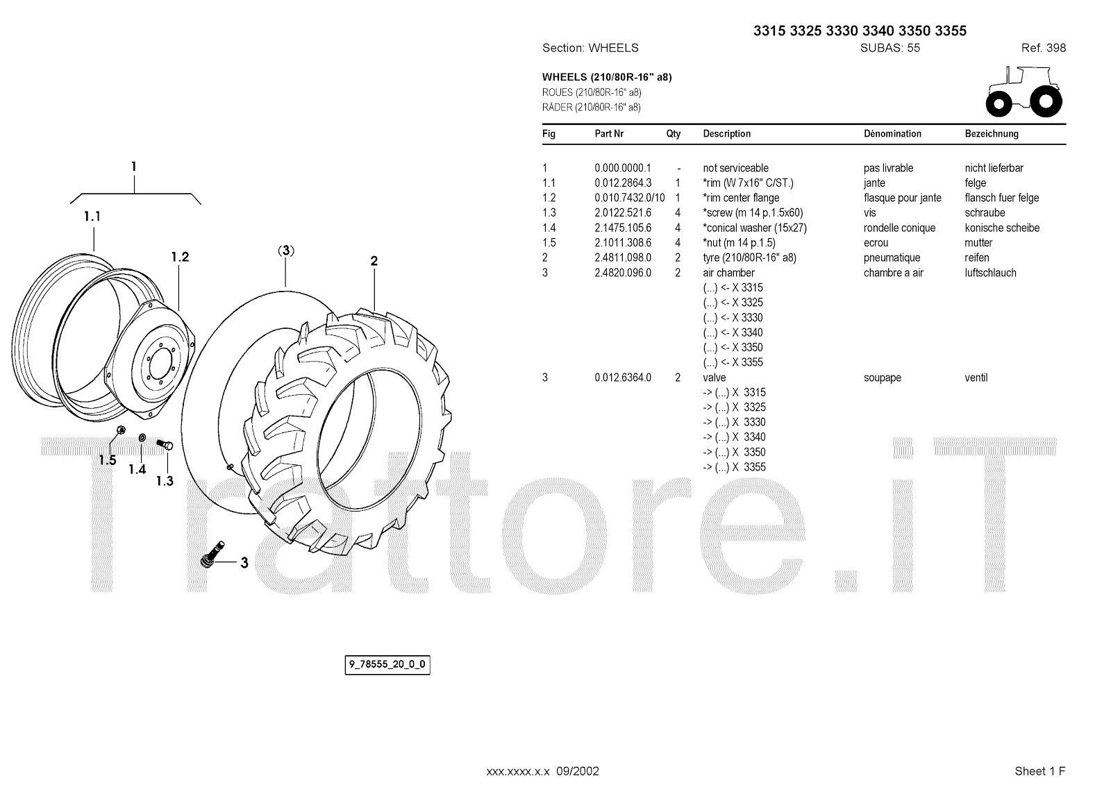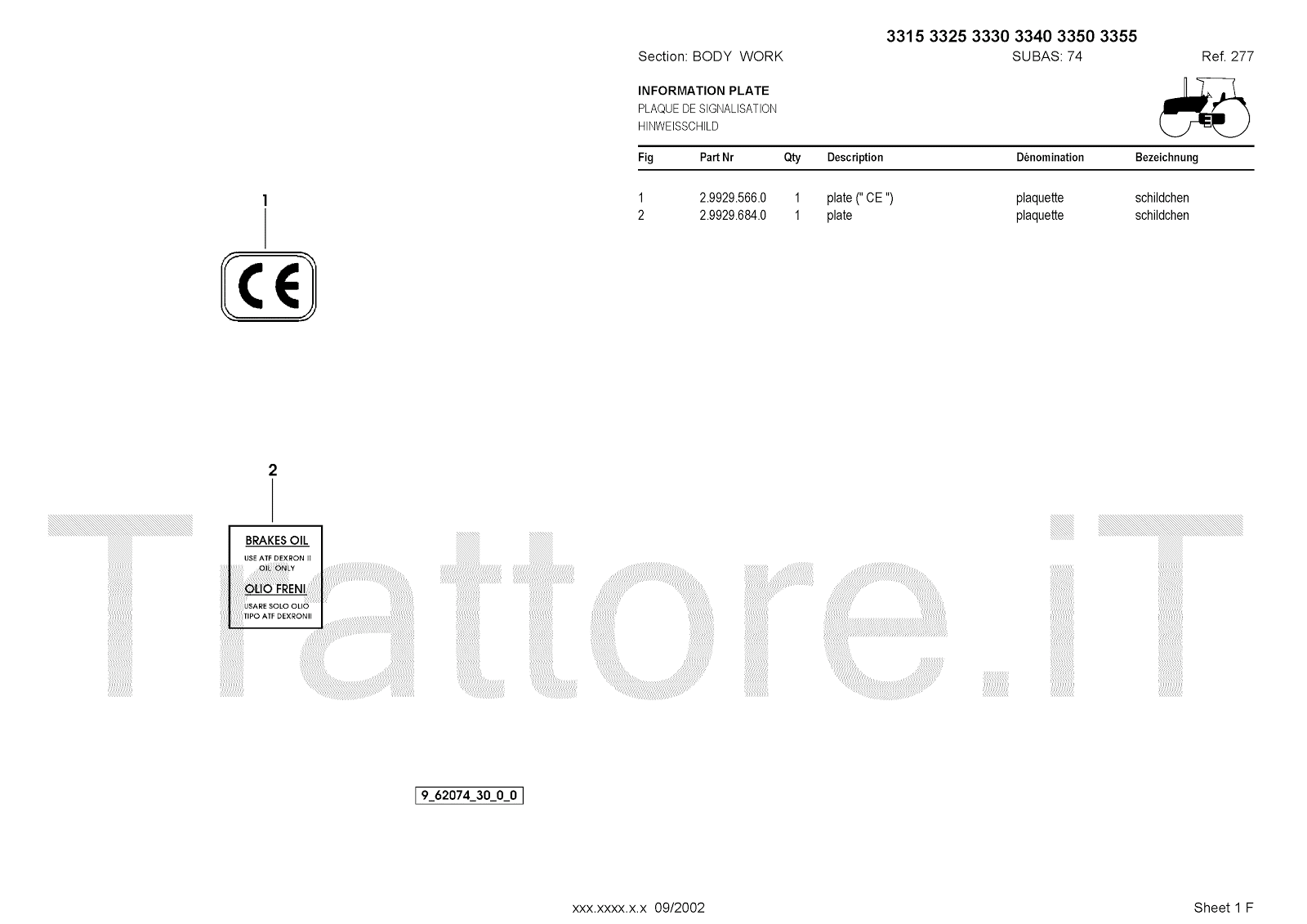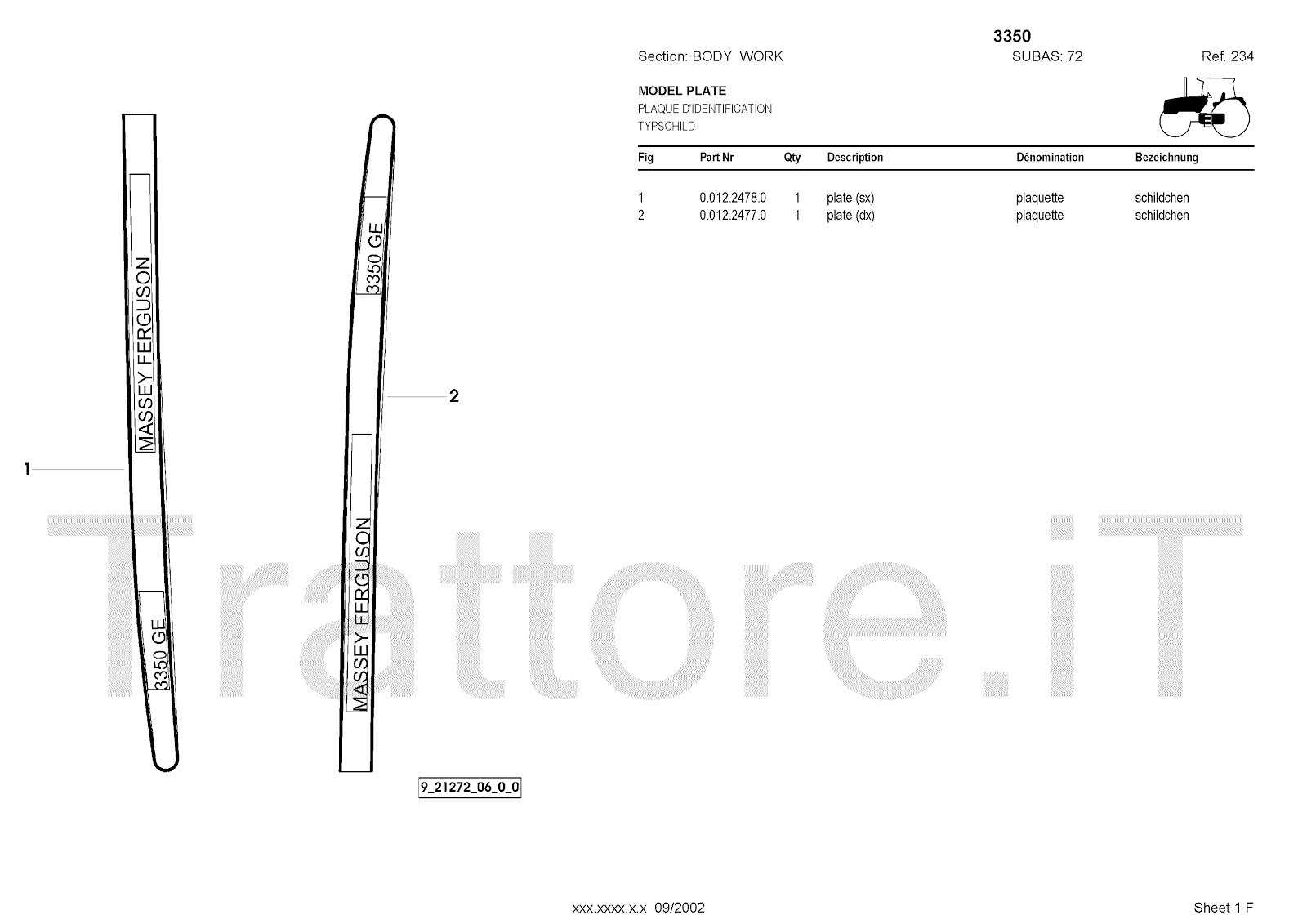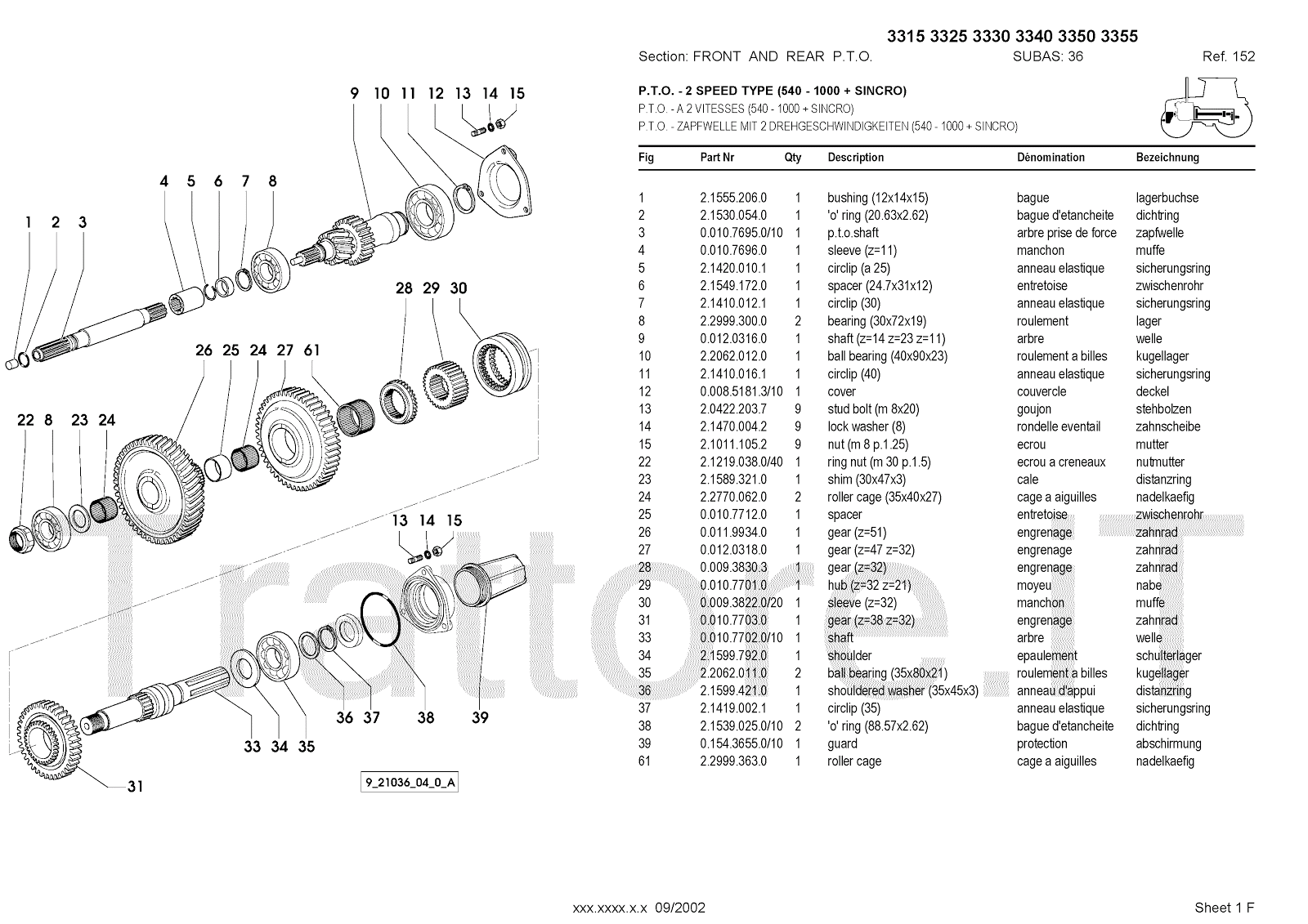 Manuale (esploso meccanico) per trattore / trattrice Massey Ferguson 3340