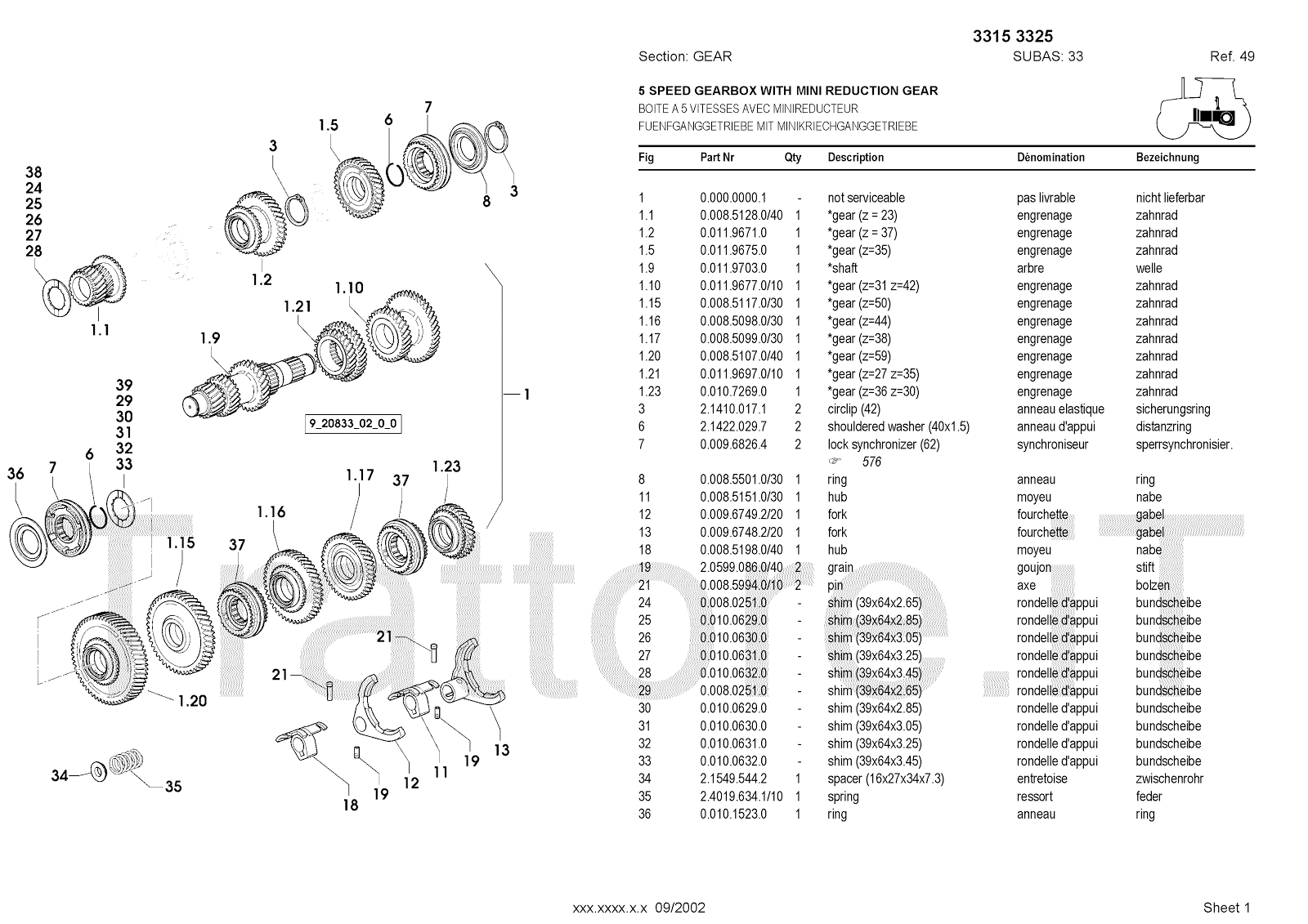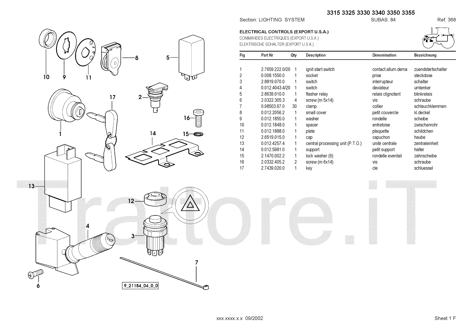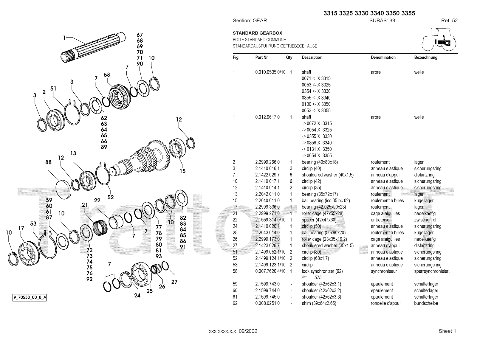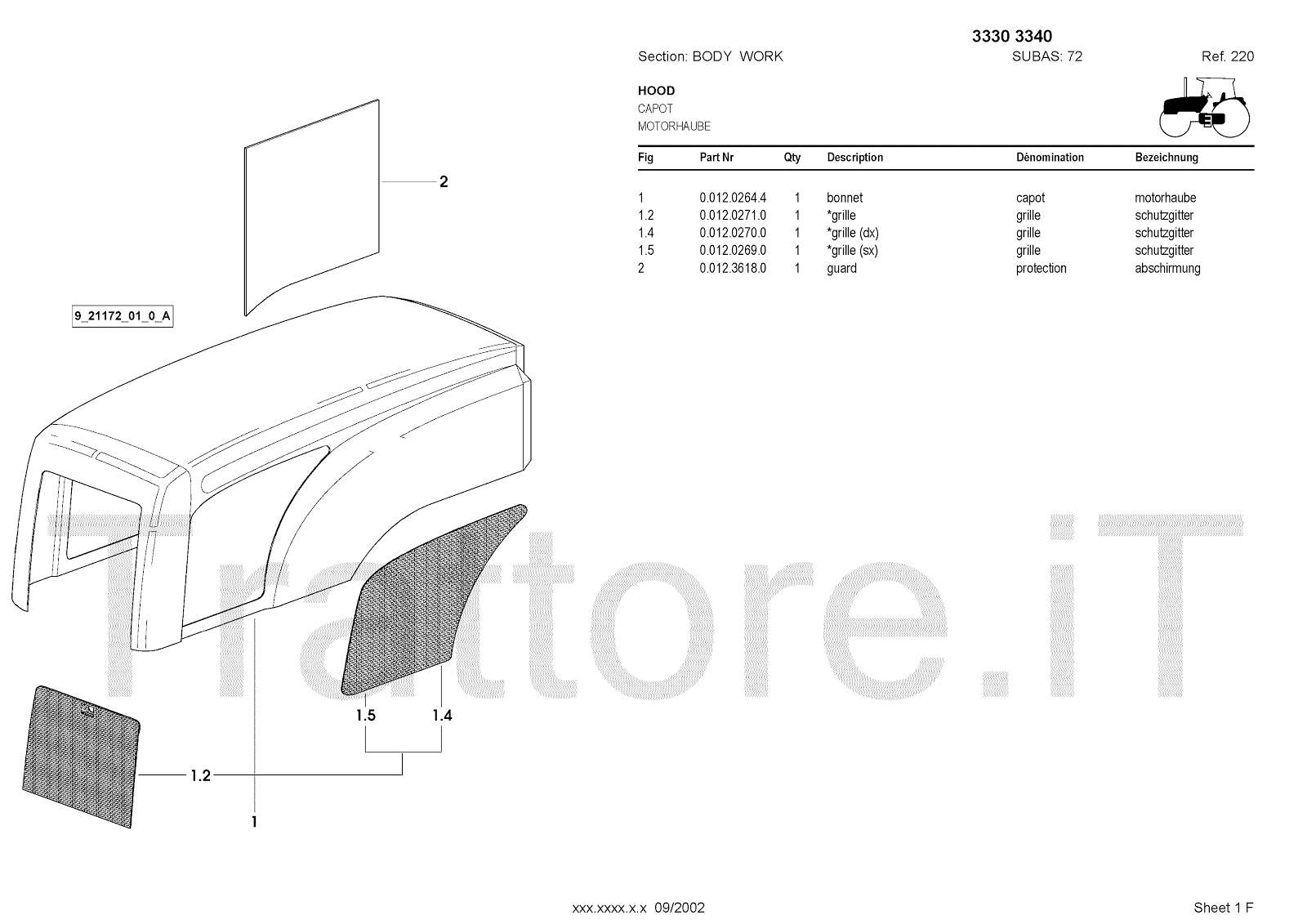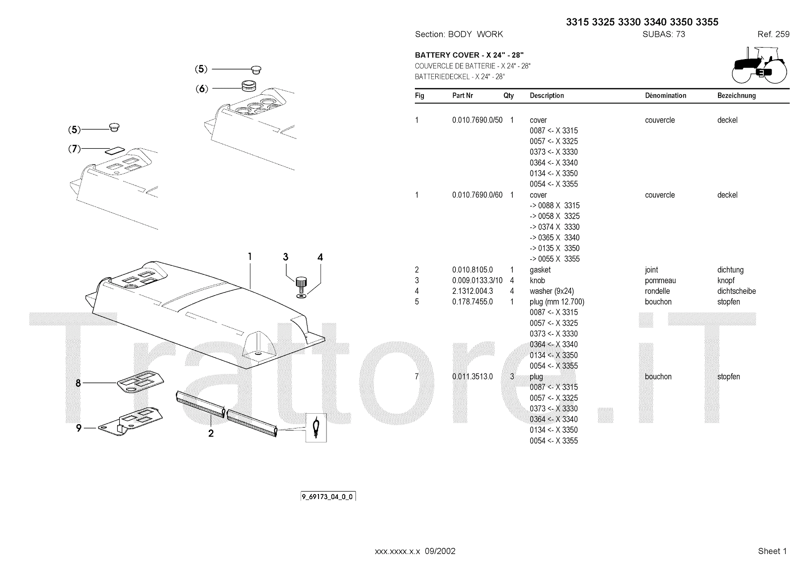 Manuale (esploso meccanico) per trattore / trattrice Massey Ferguson 3340