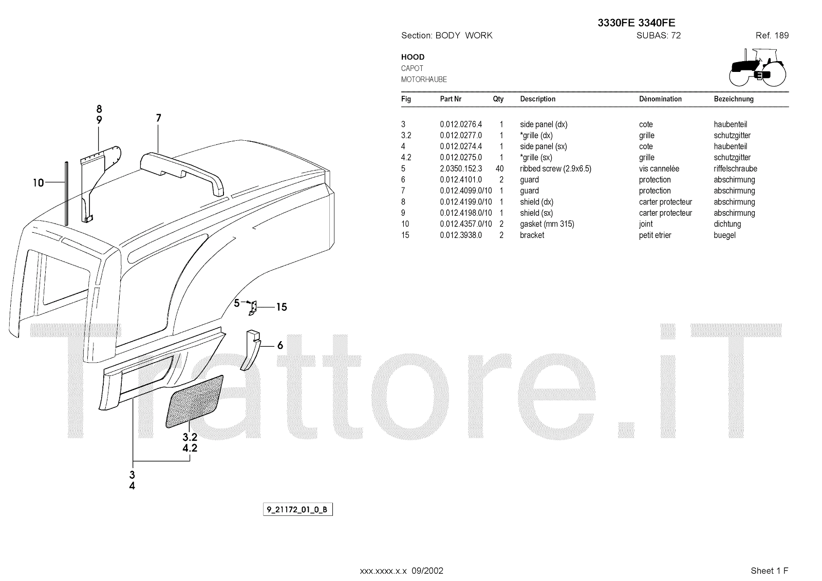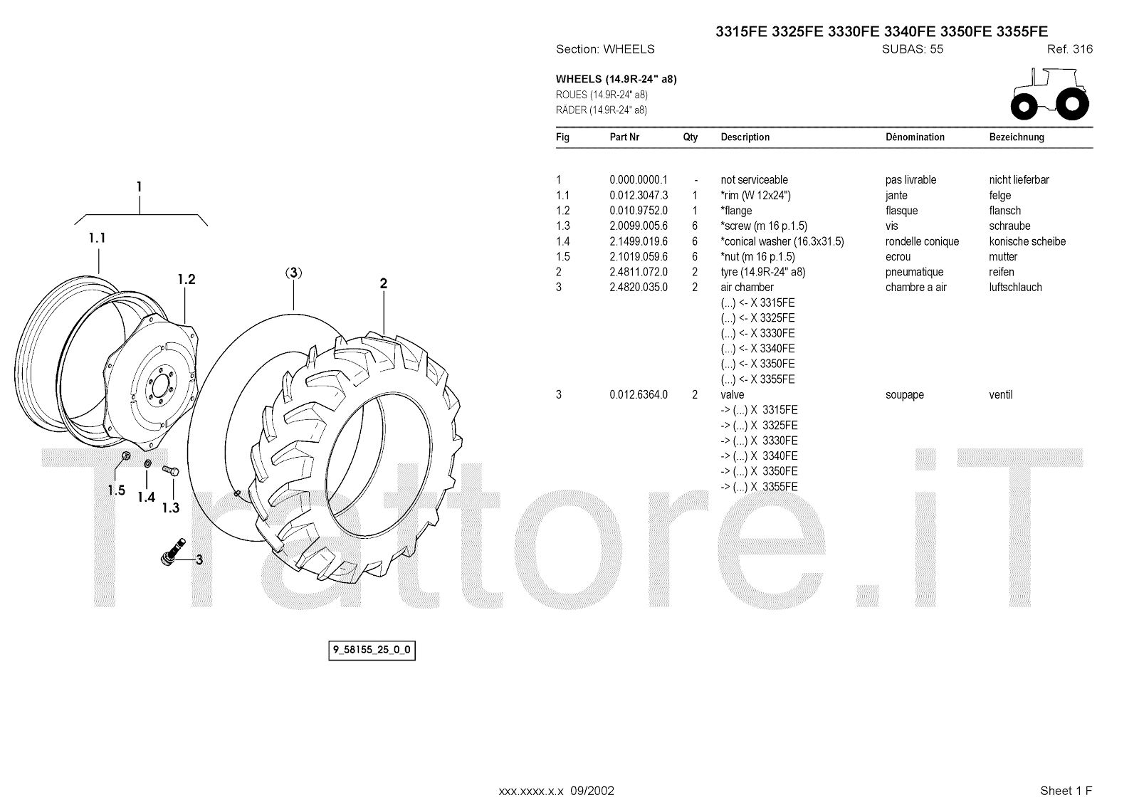Manuale (esploso meccanico) per trattore / trattrice Massey Ferguson 3355FE