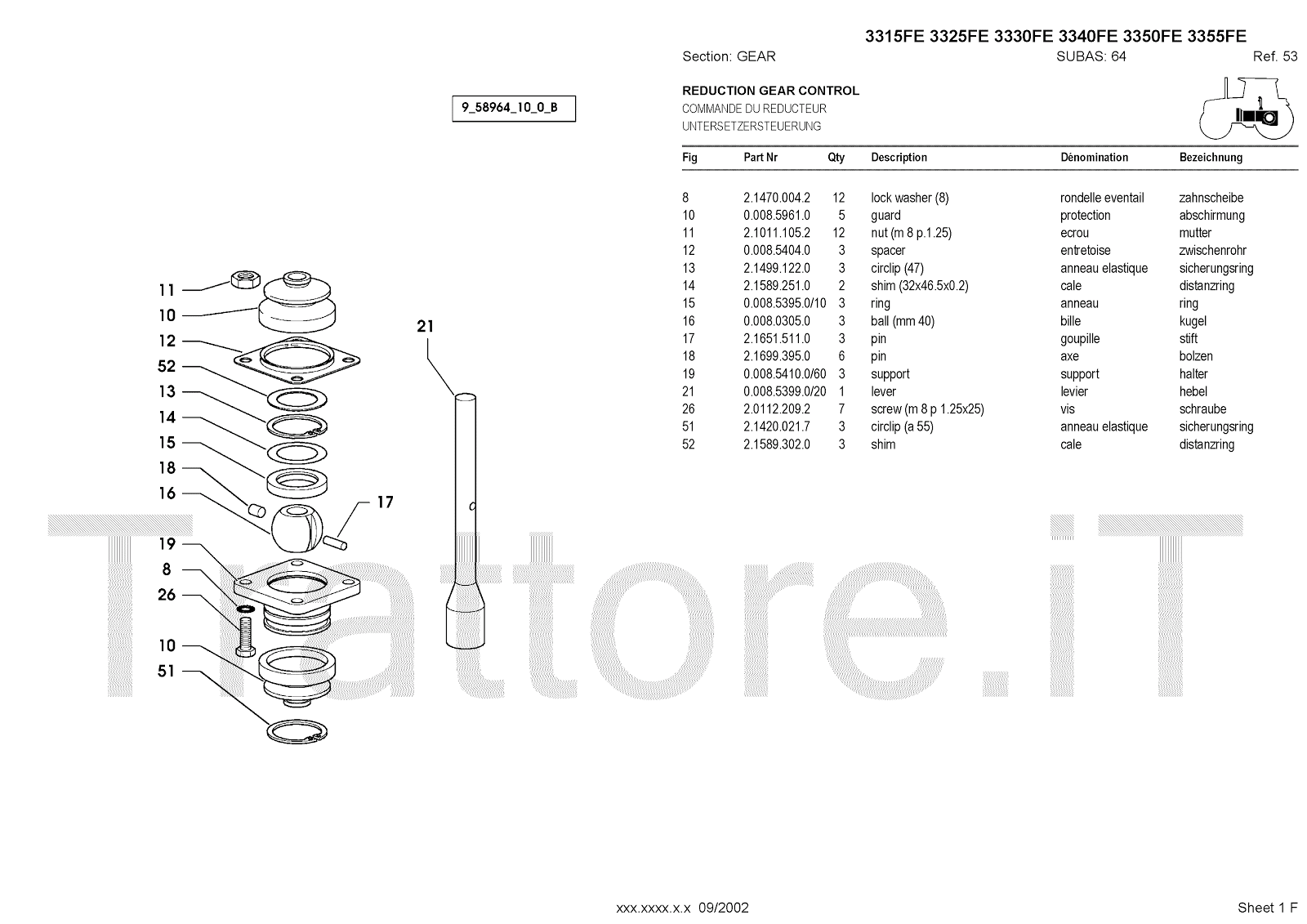 Manuale (esploso meccanico) per trattore / trattrice Massey Ferguson 3325FE