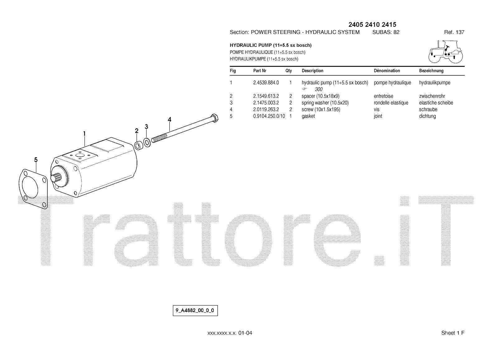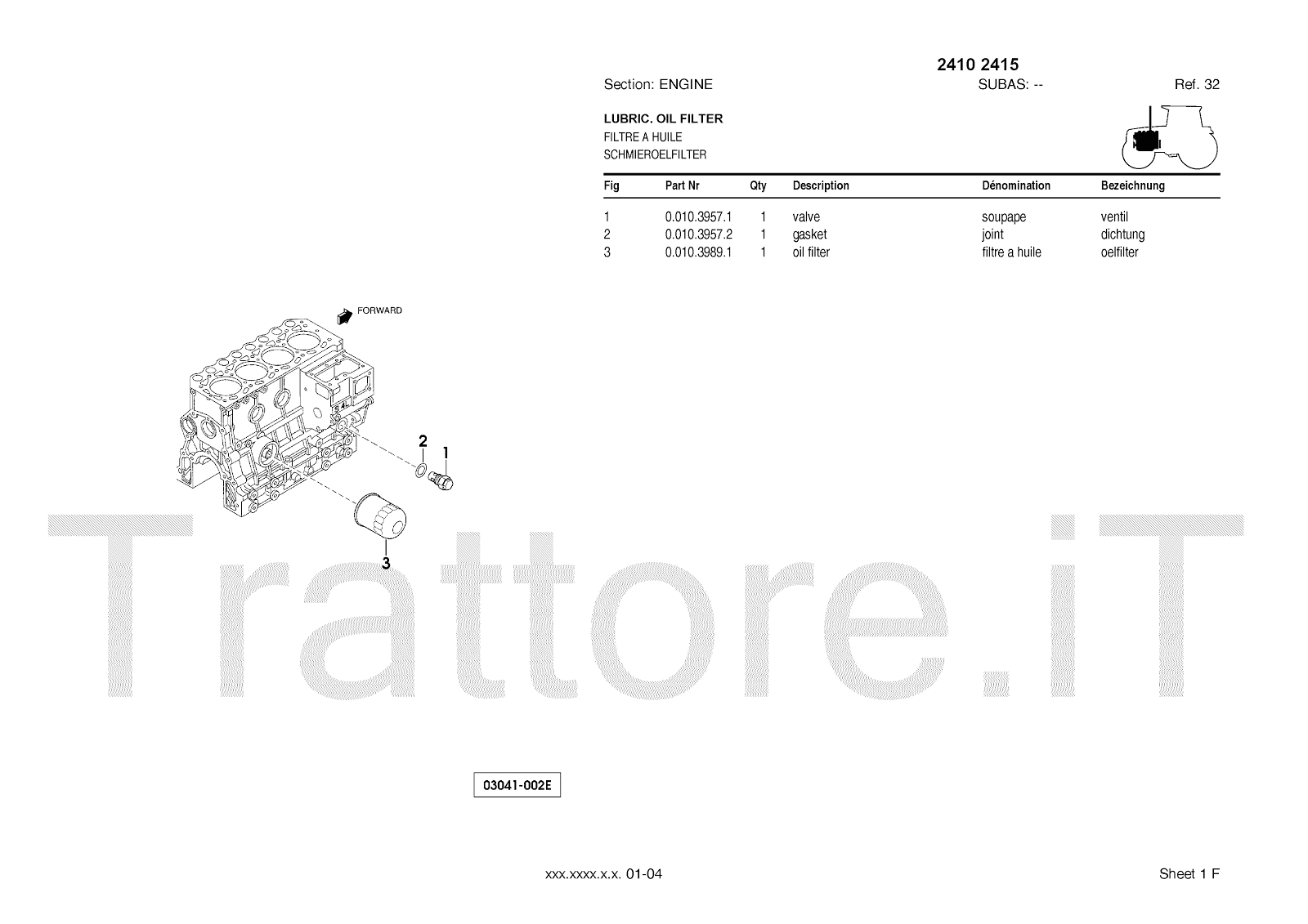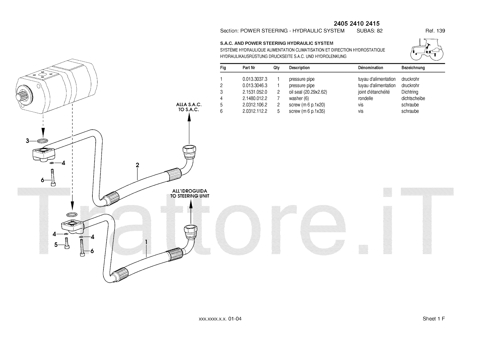 Manuale (esploso meccanico) per trattore / trattrice Massey Ferguson 2415
