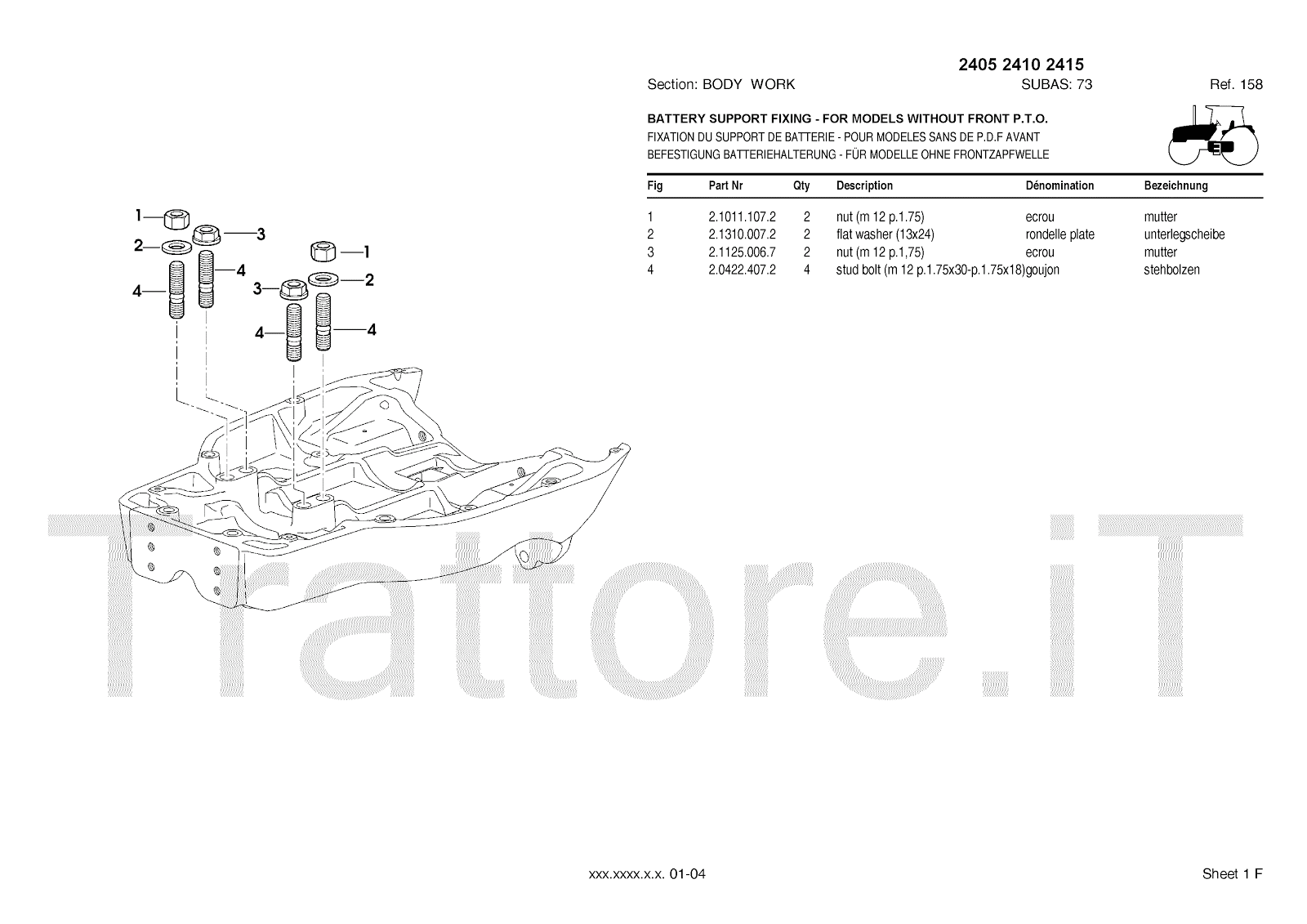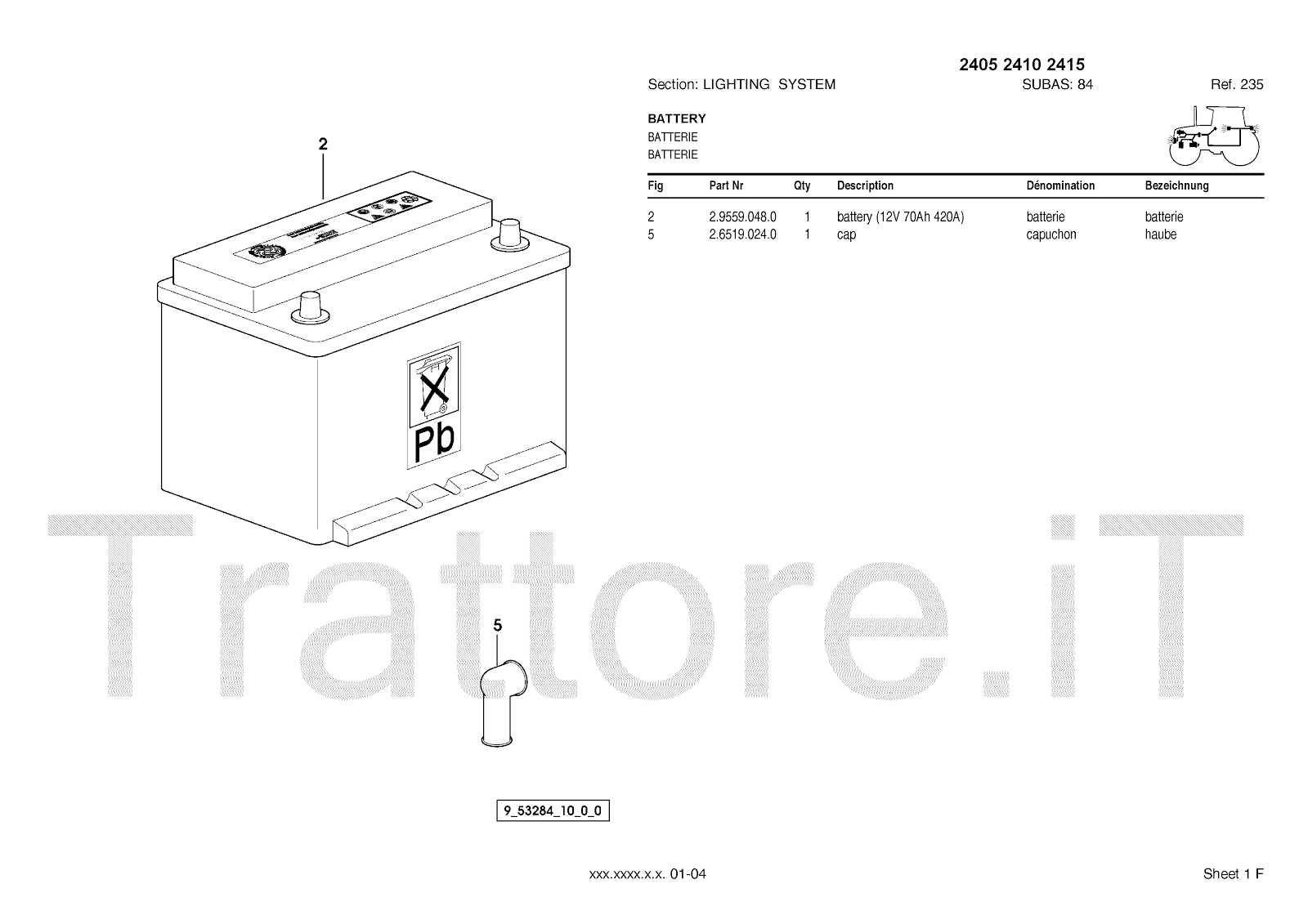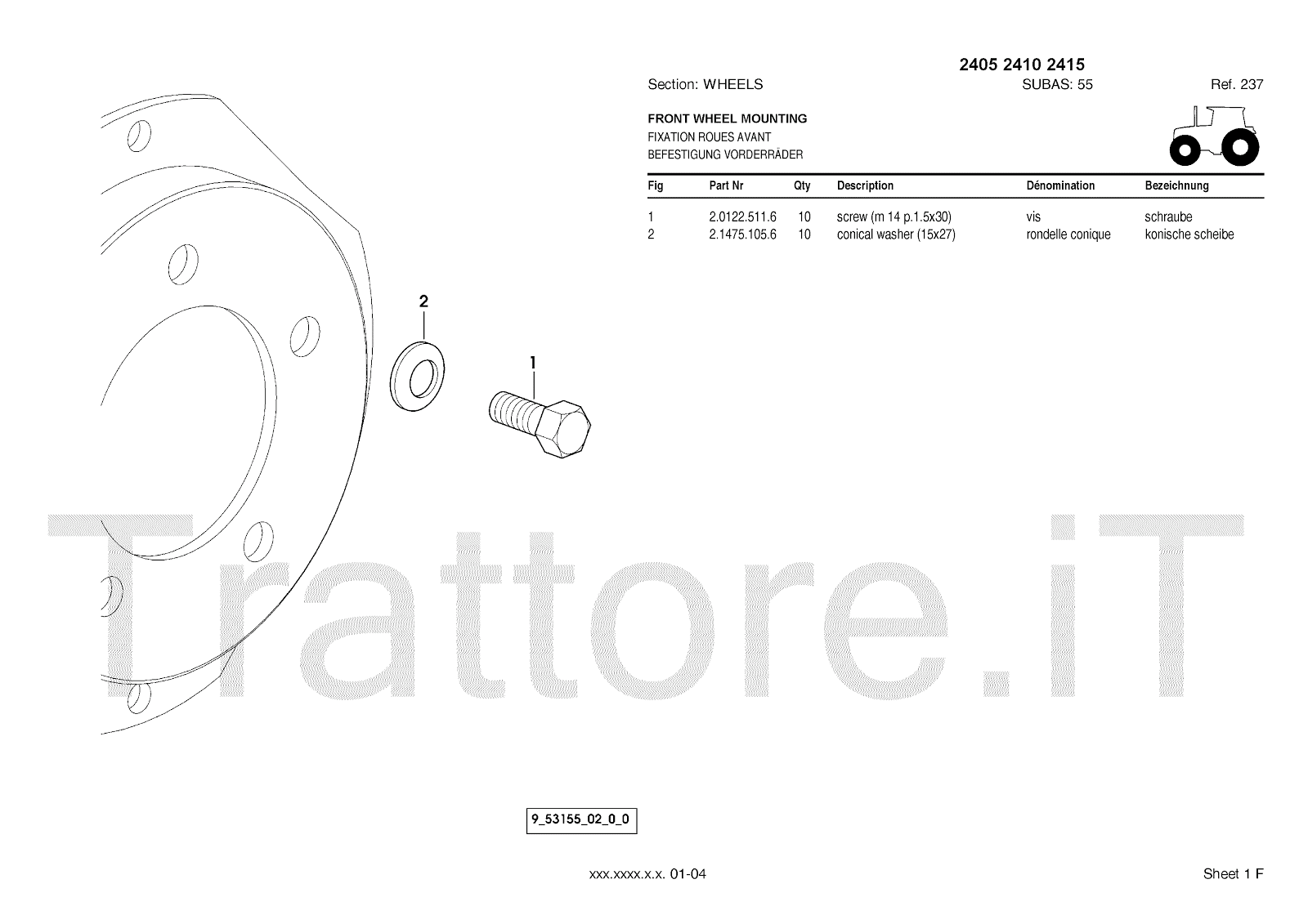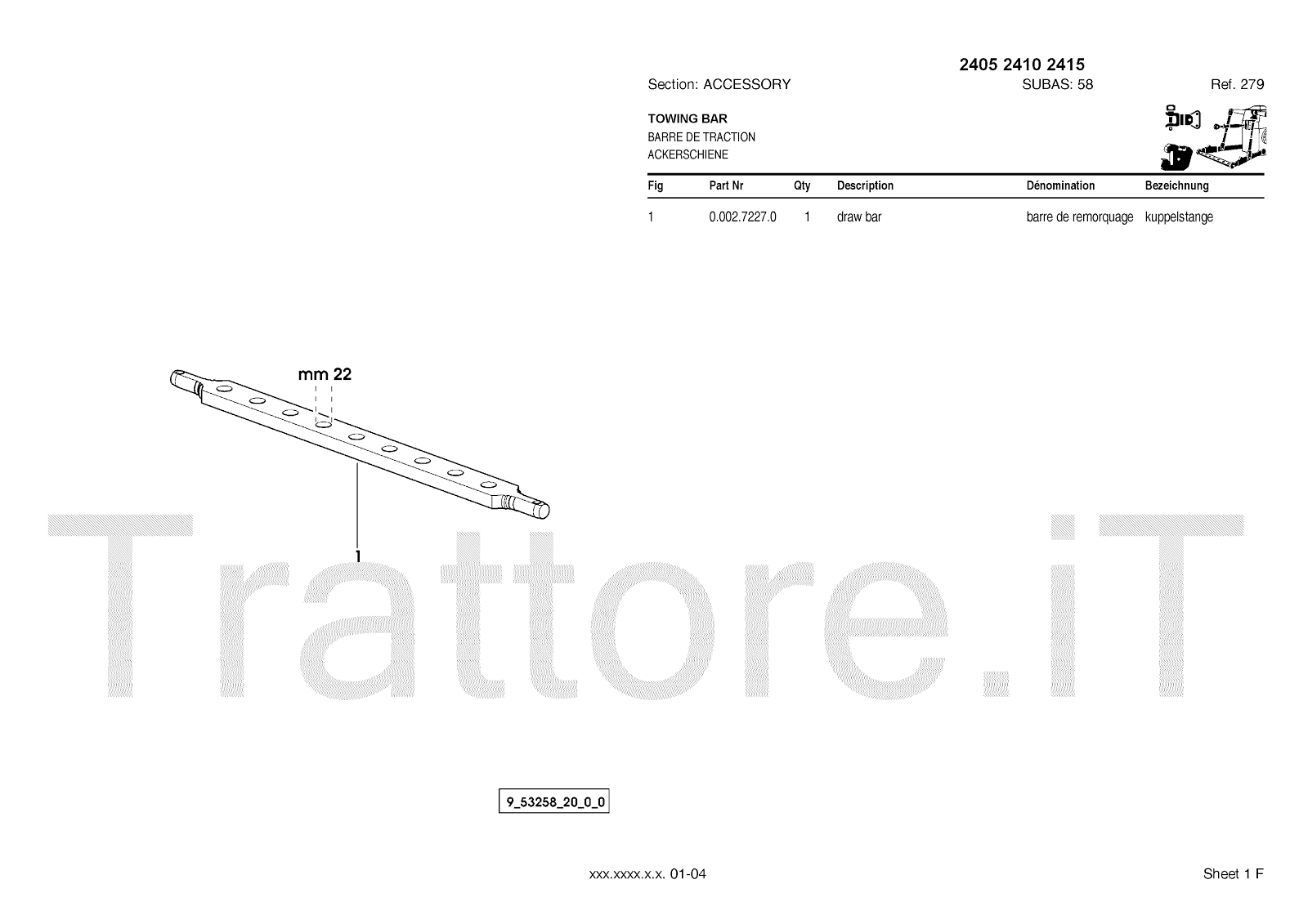 Manuale (esploso meccanico) per trattore / trattrice Massey Ferguson 2415