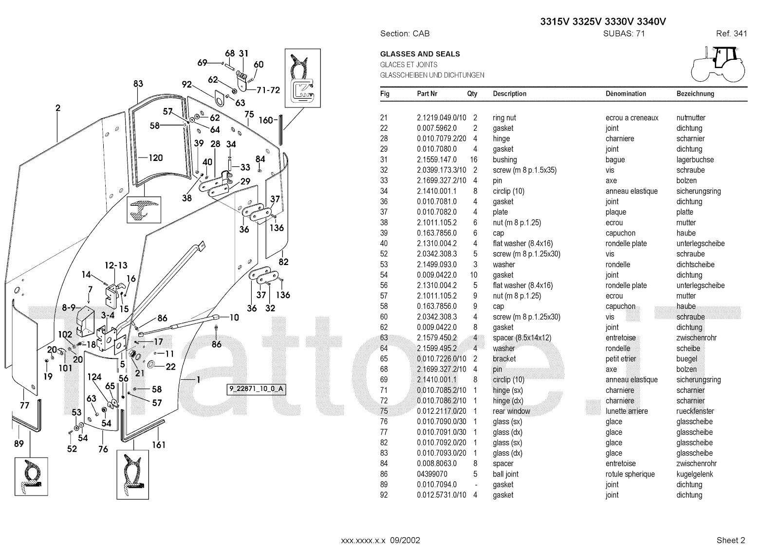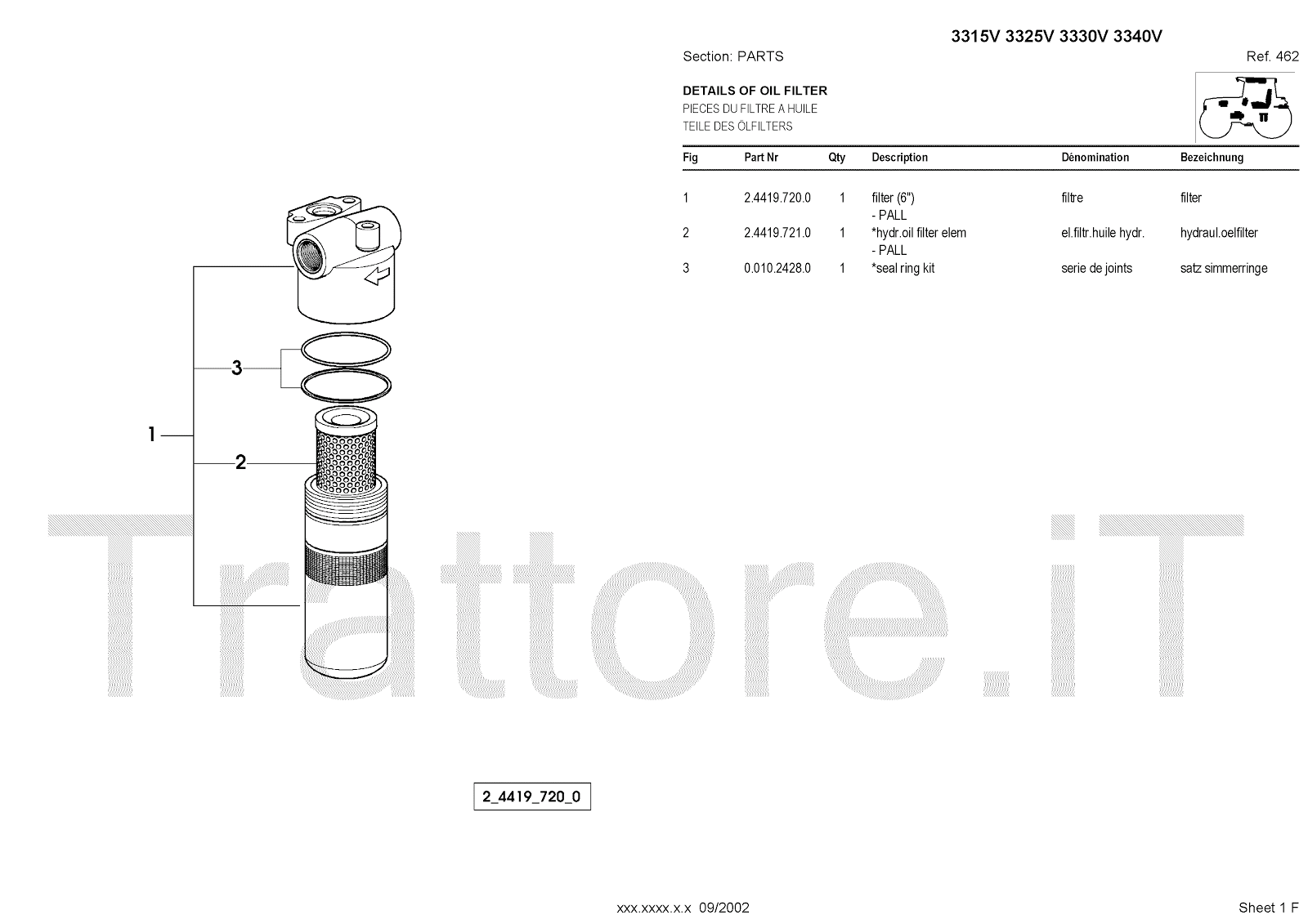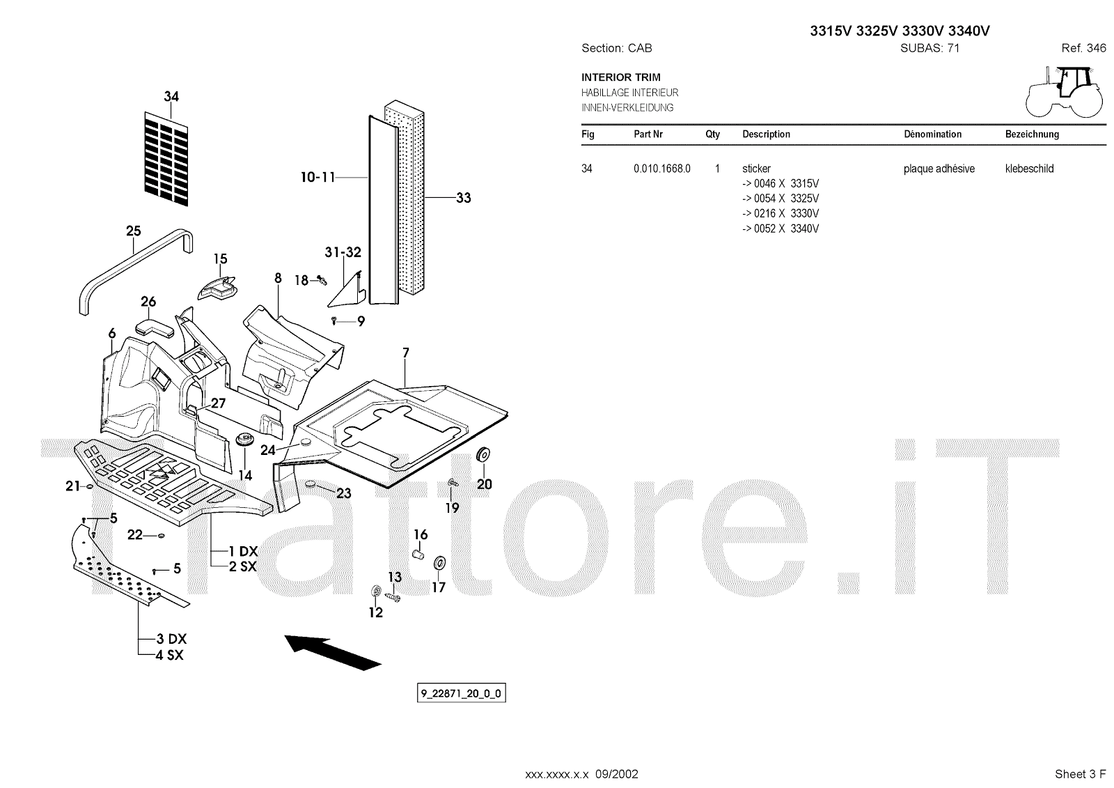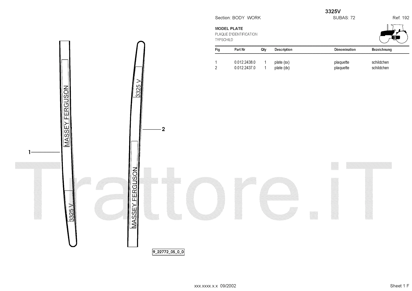 Manuale (esploso meccanico) per trattore / trattrice Massey Ferguson 3315V