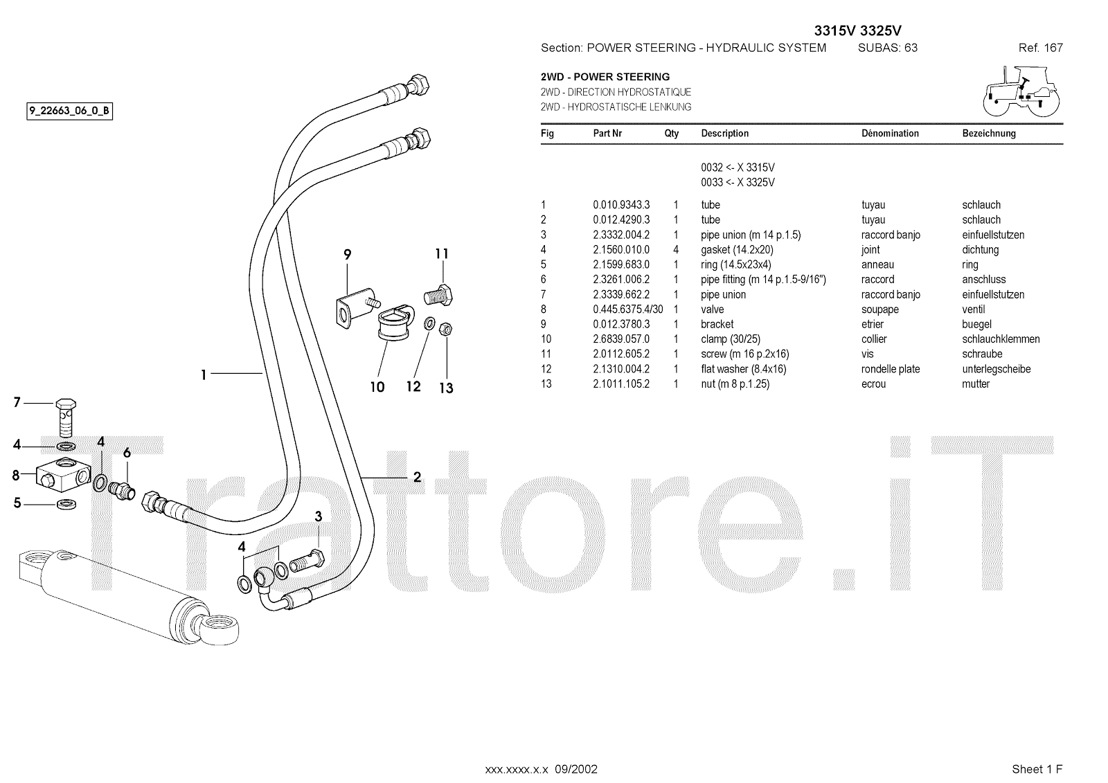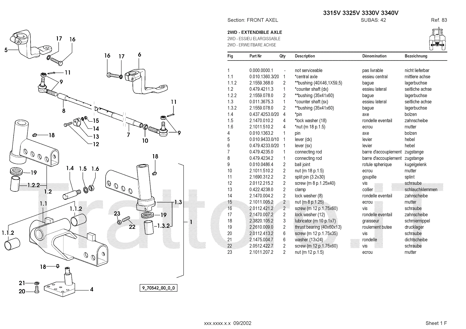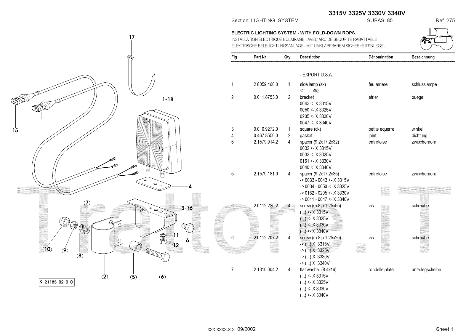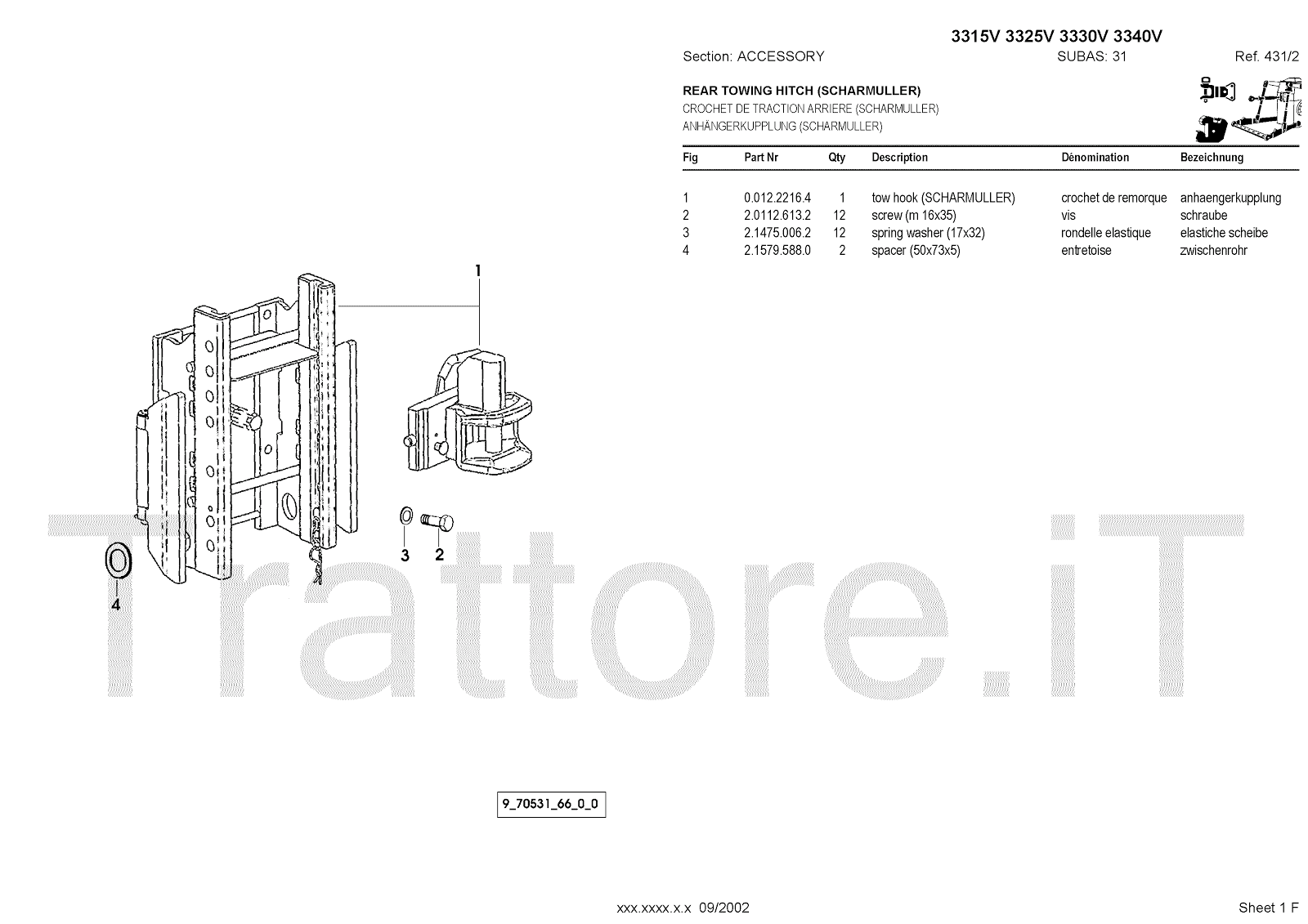 Manuale (esploso meccanico) per trattore / trattrice Massey Ferguson 3315V