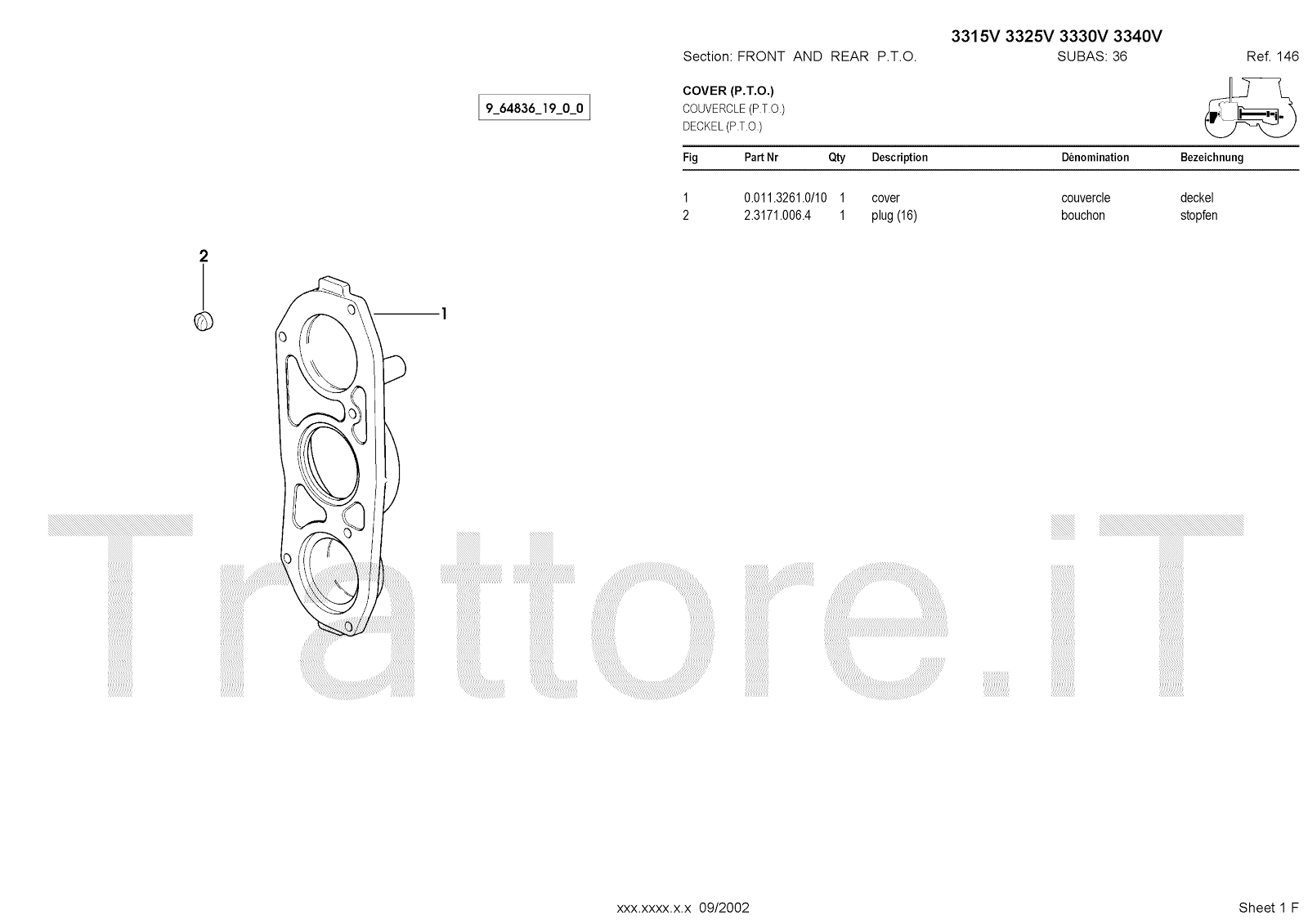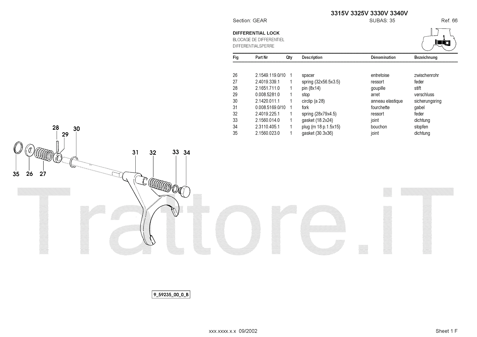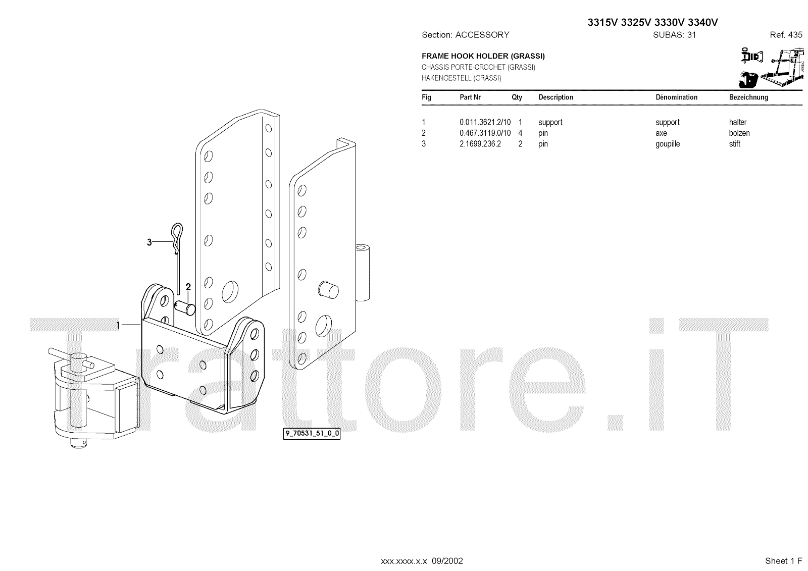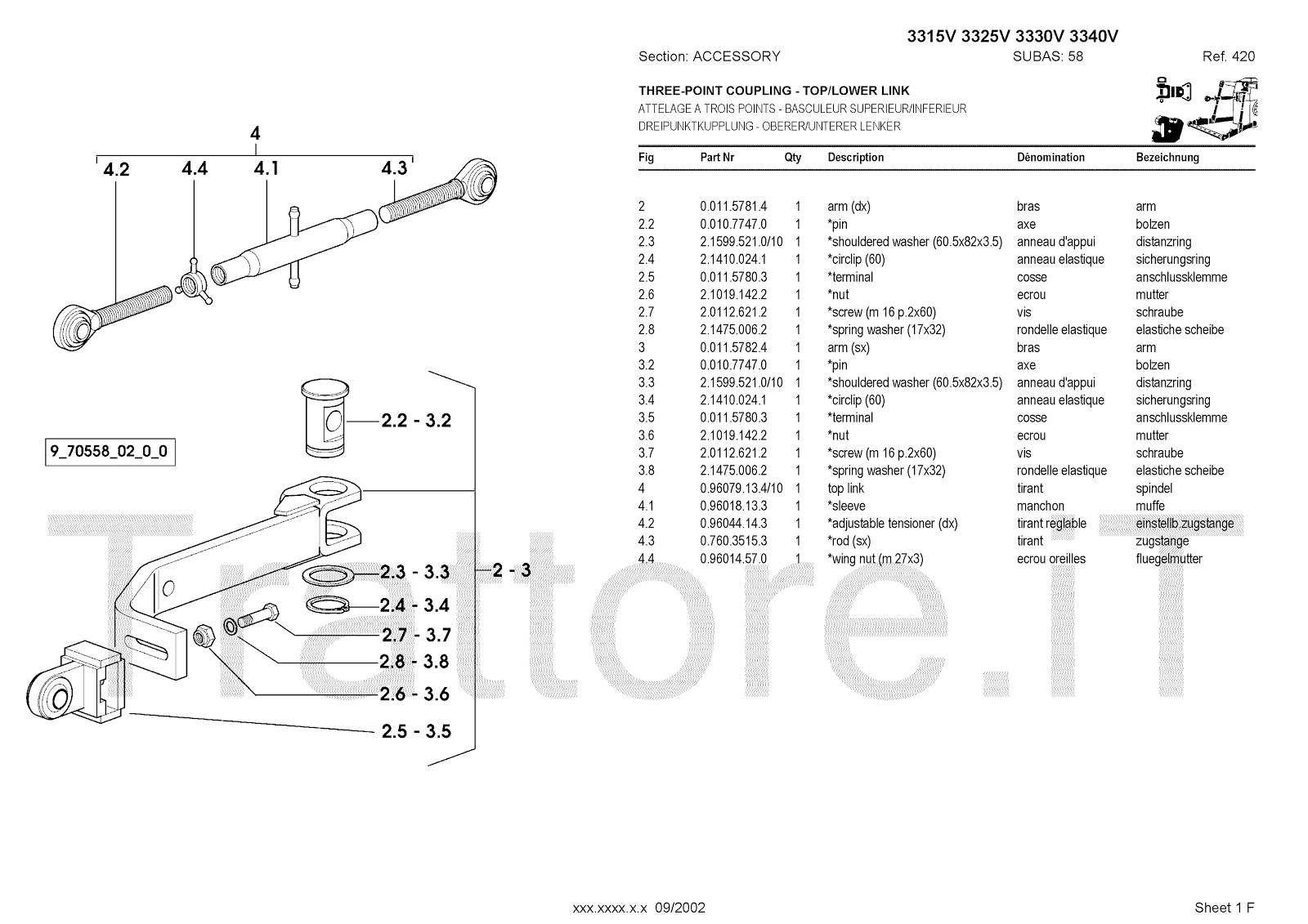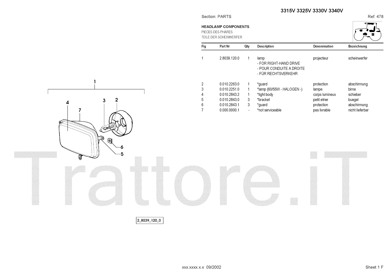 Manuale (esploso meccanico) per trattore / trattrice Massey Ferguson 3315V