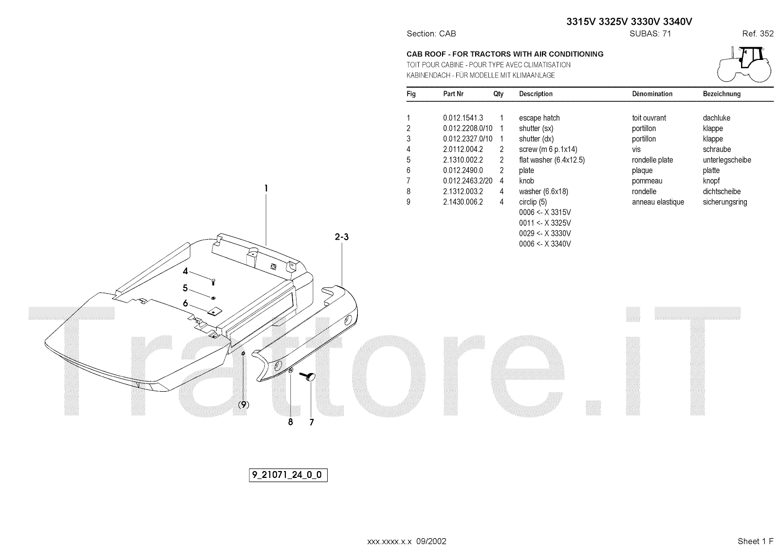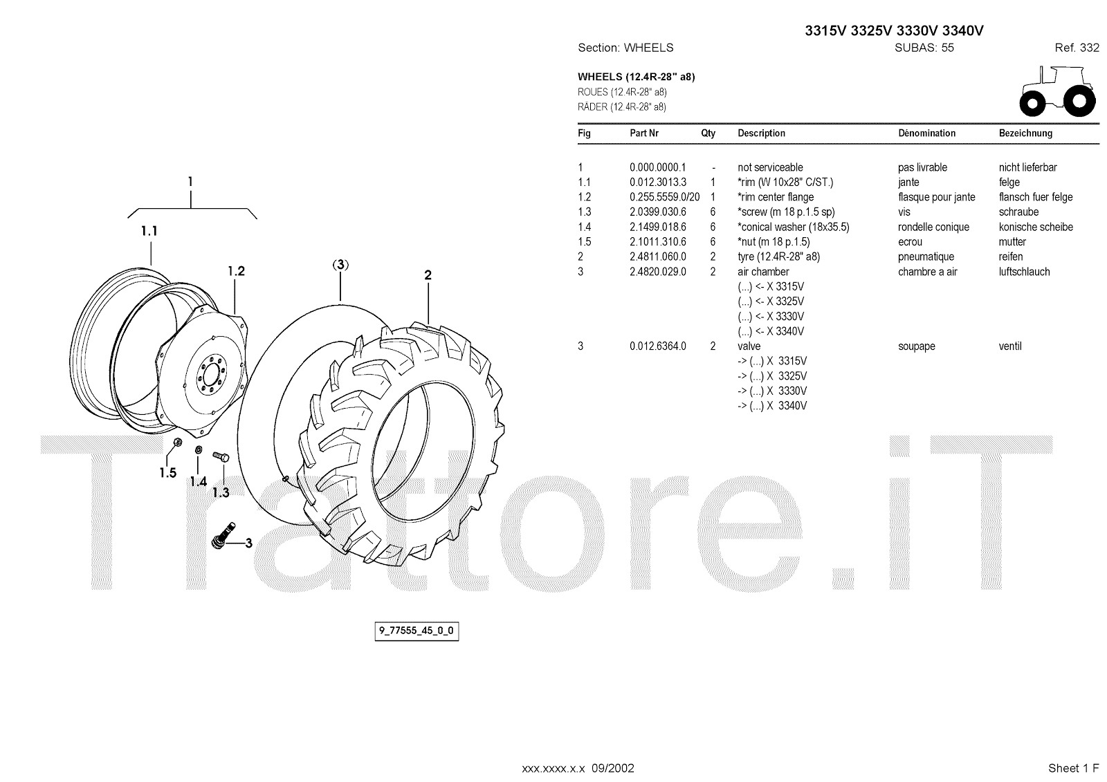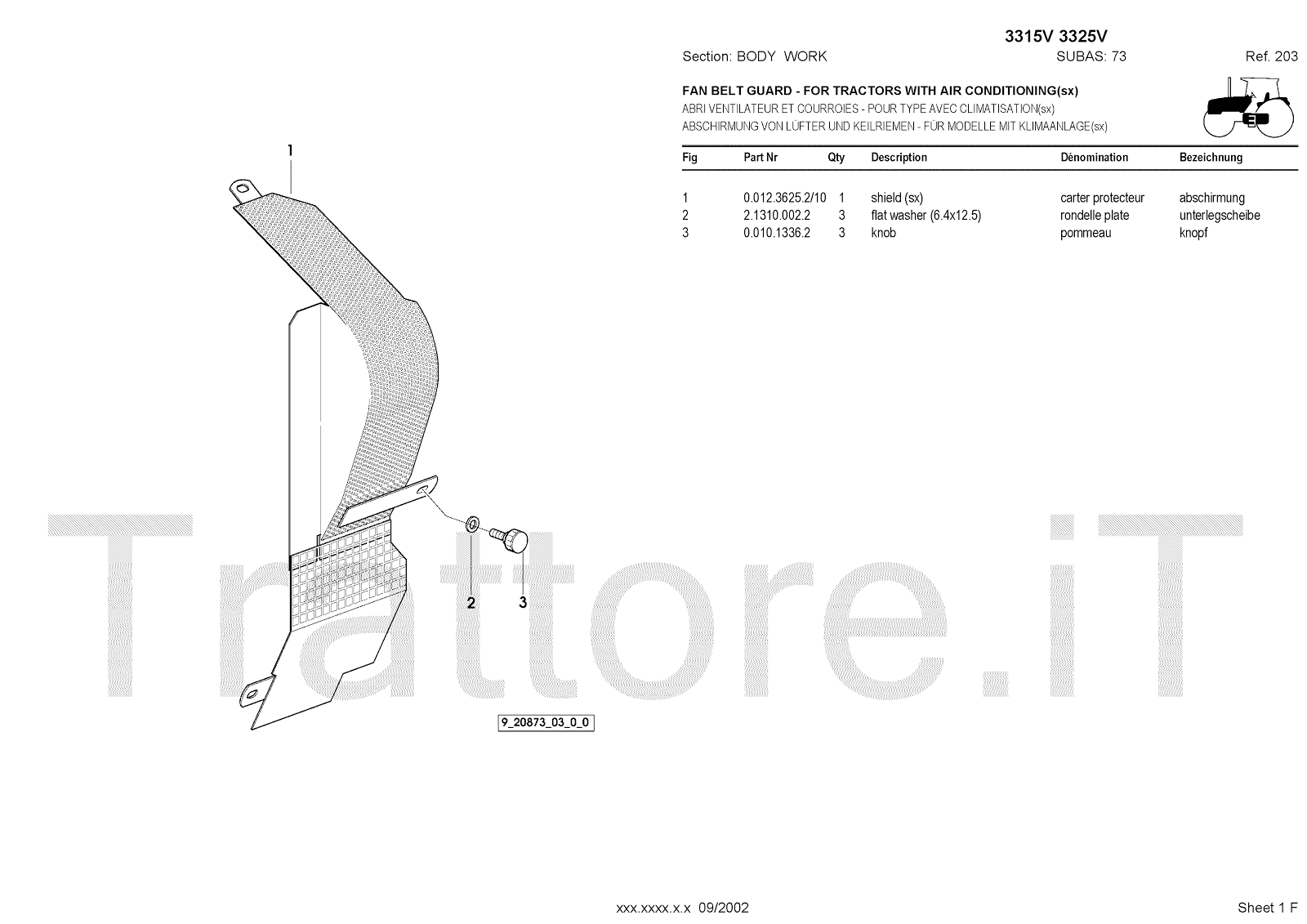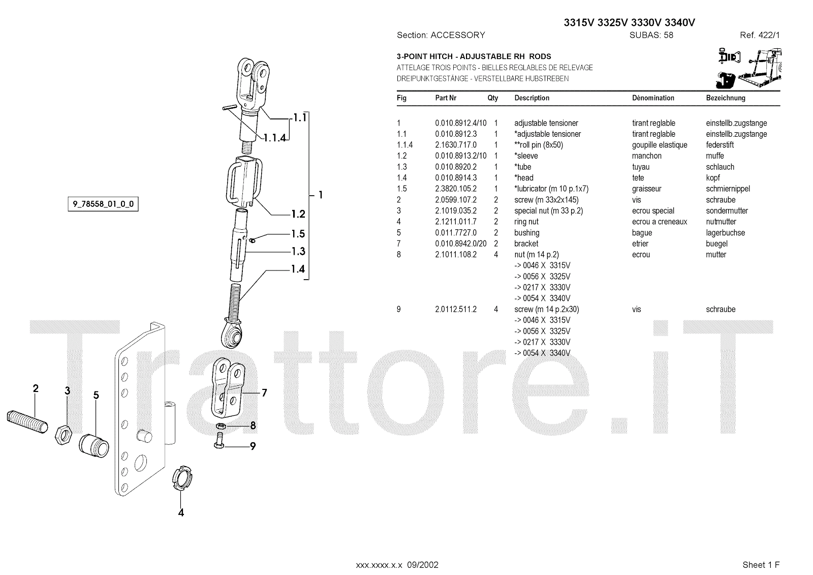Manuale (esploso meccanico) per trattore / trattrice Massey Ferguson 3315V