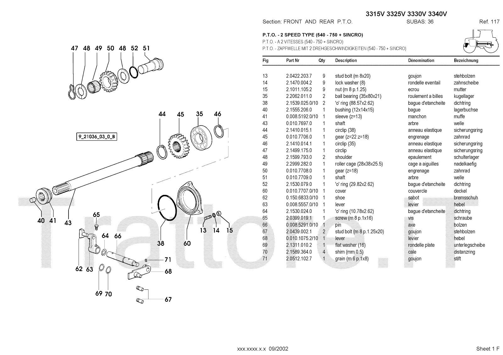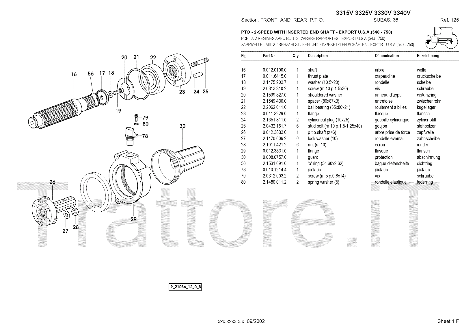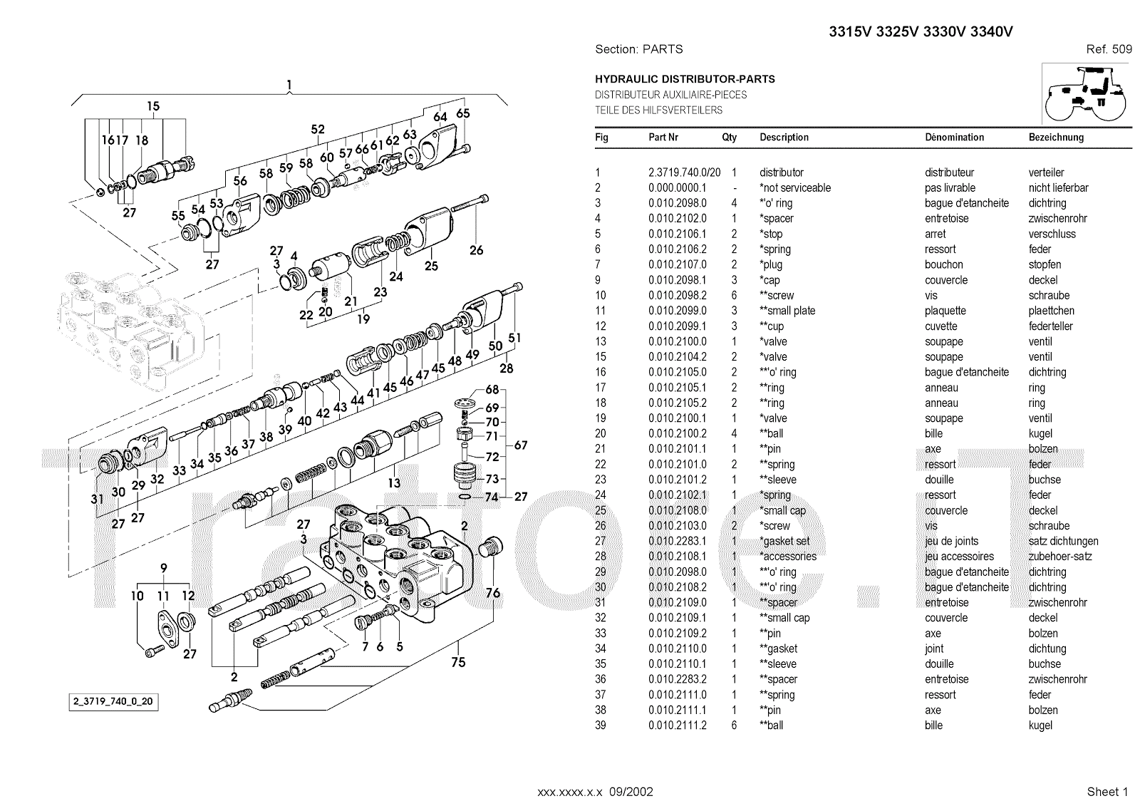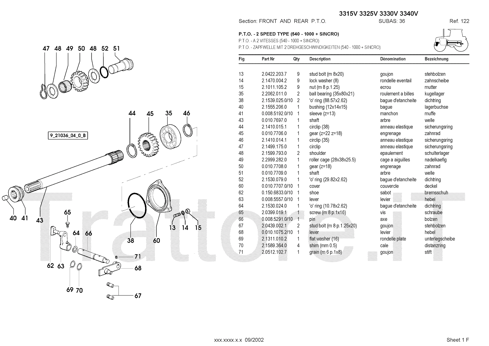 Manuale (esploso meccanico) per trattore / trattrice Massey Ferguson 3315V