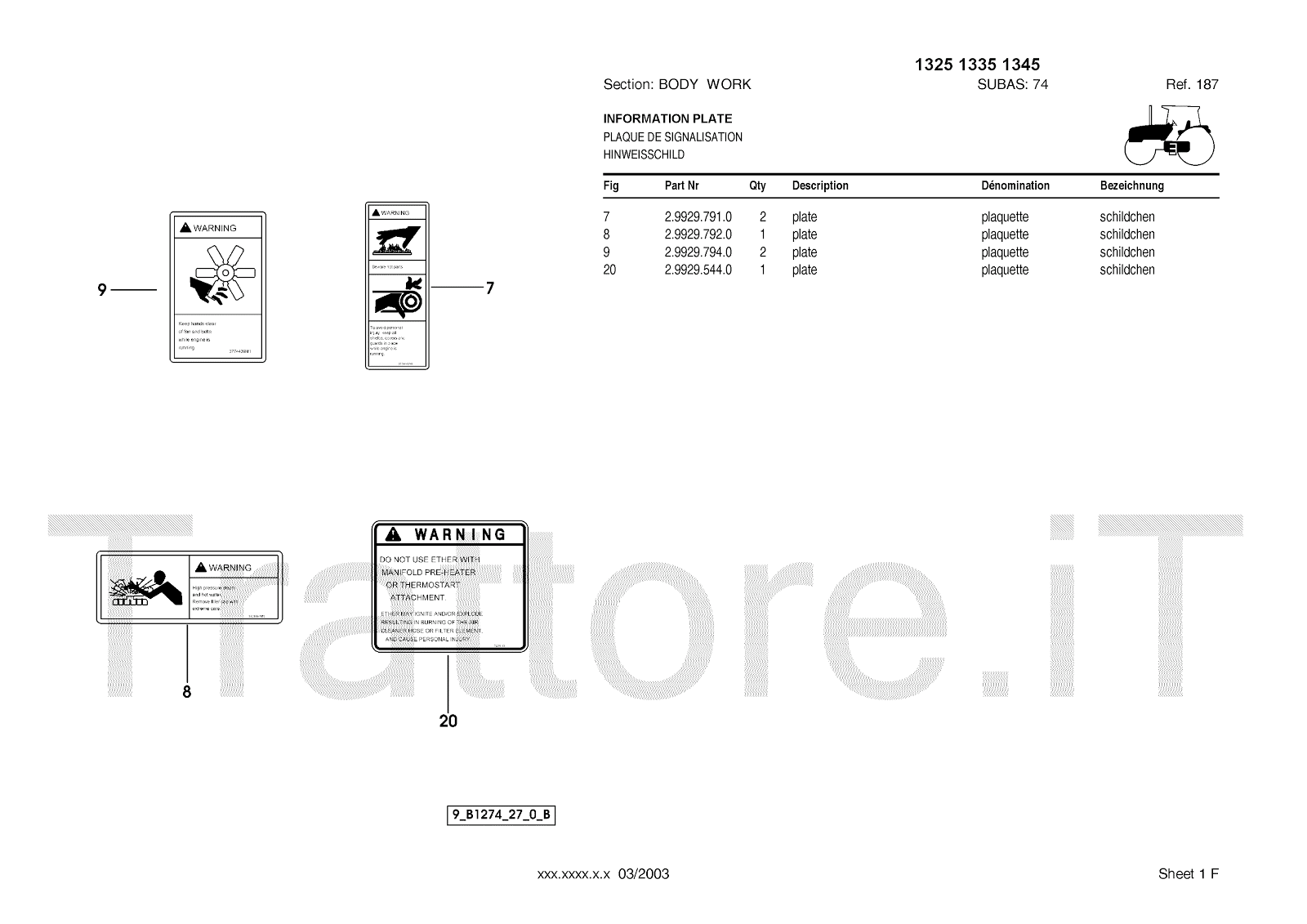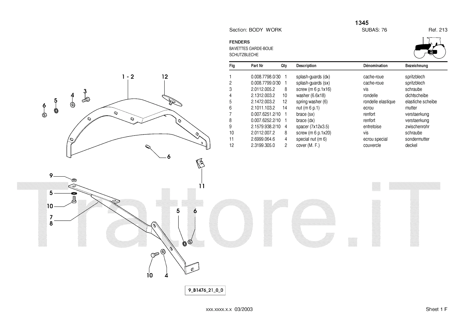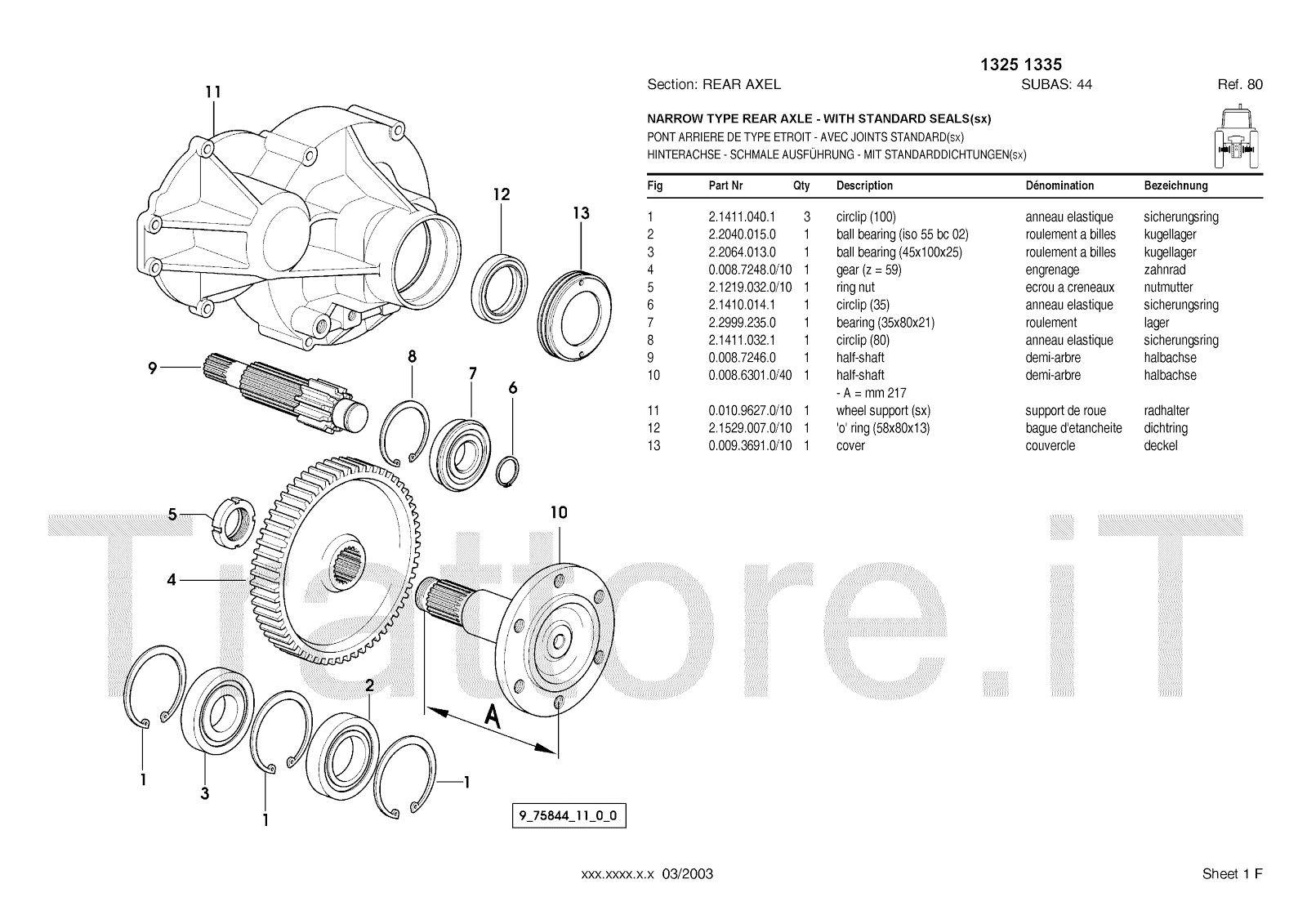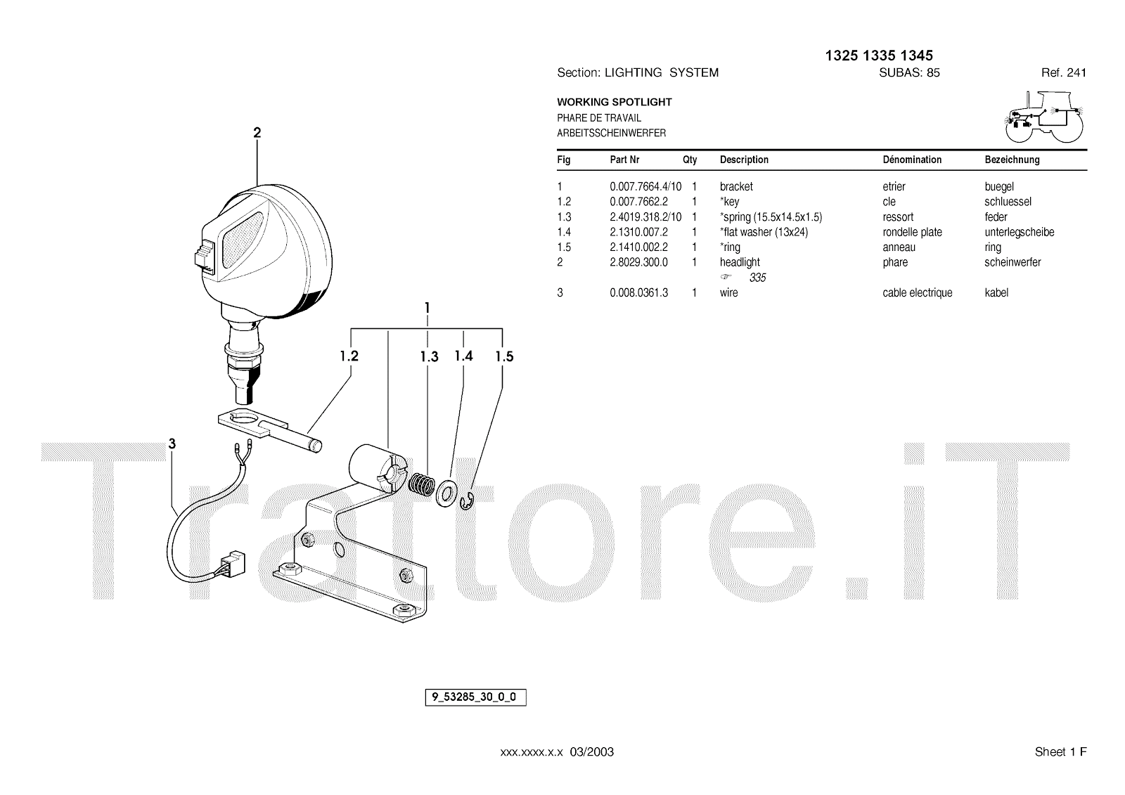 Manuale (esploso meccanico) per trattore / trattrice Massey Ferguson 1345