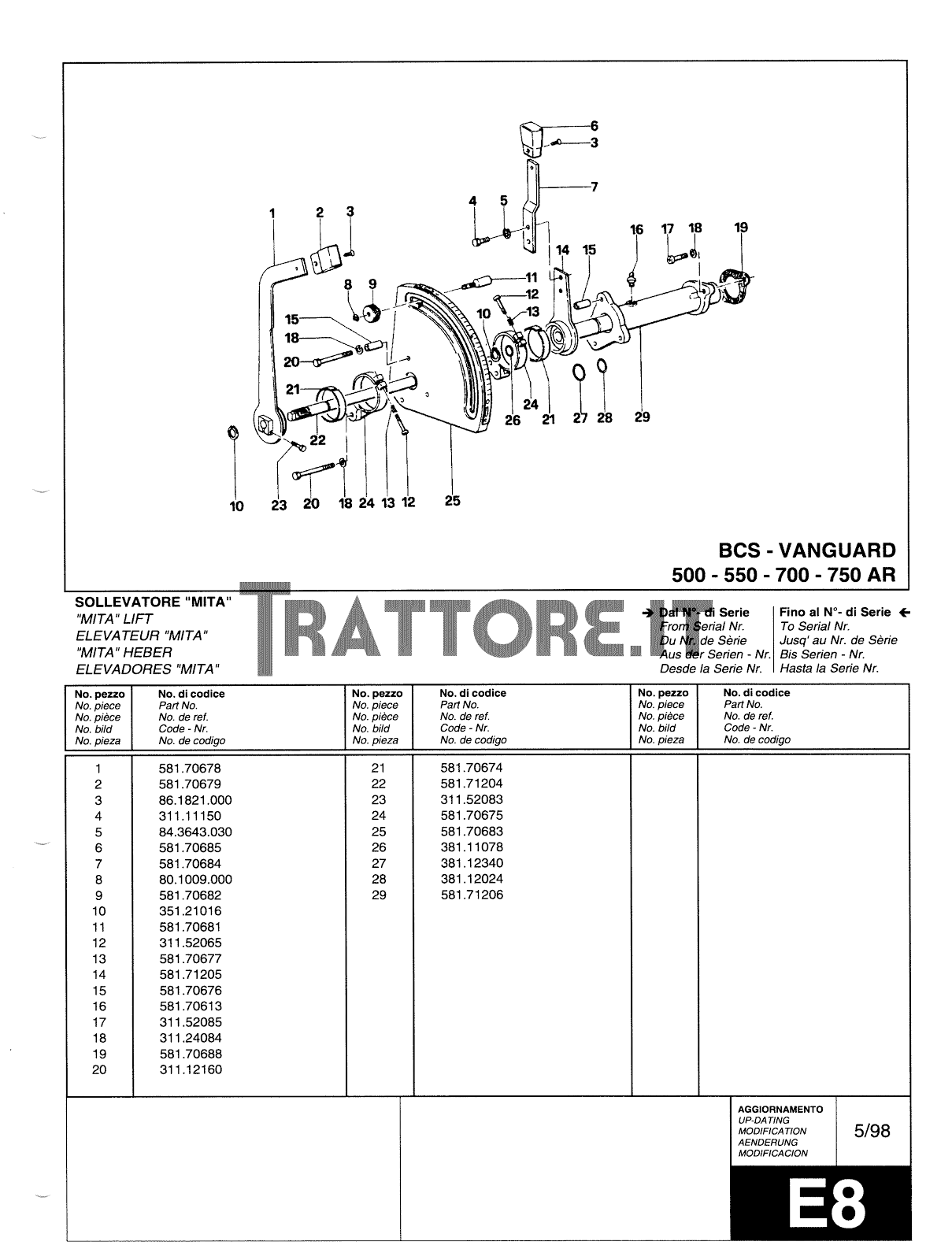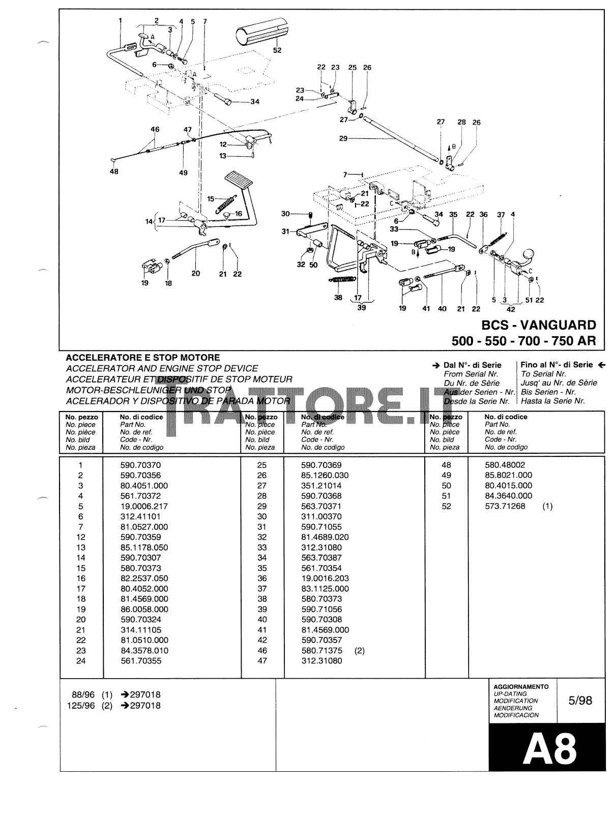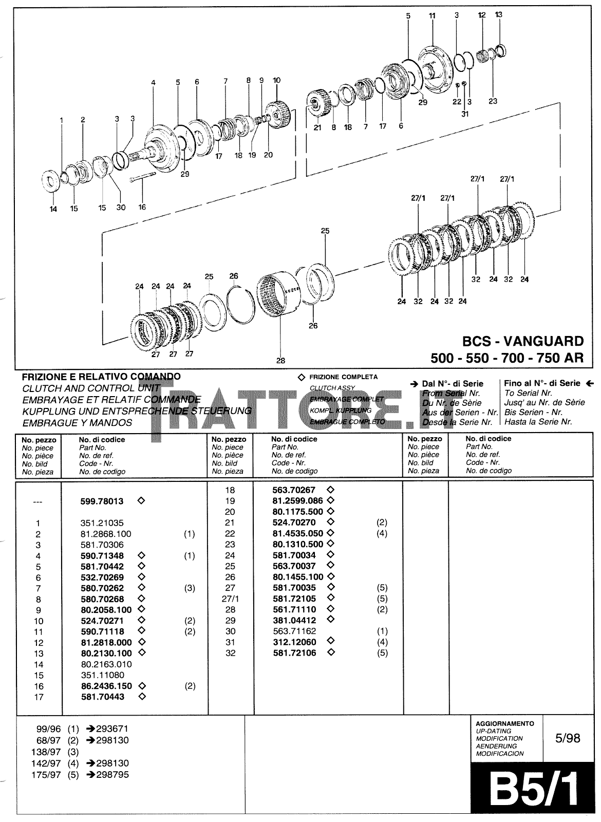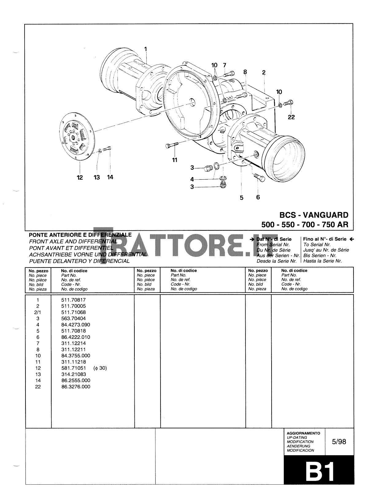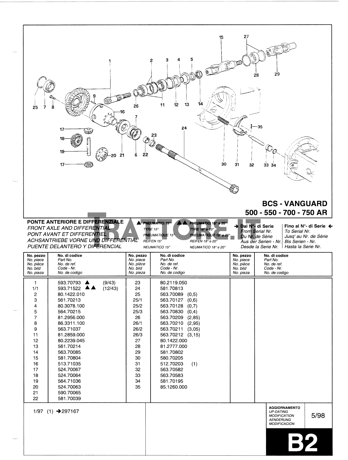 Manuale (esploso meccanico) Trattore BCS Vanguard 500 - 550 - 700 - 750 AR ed 5/98