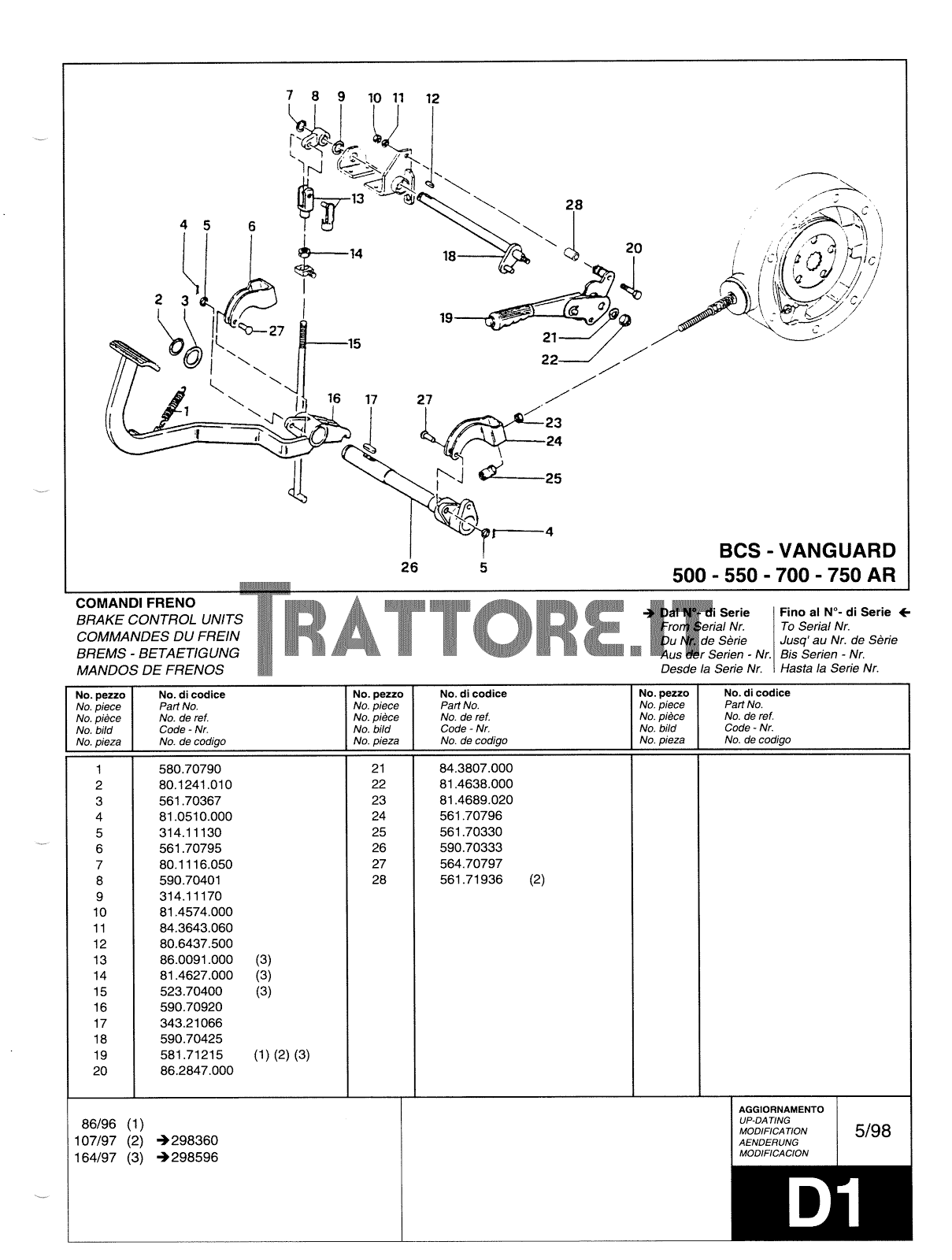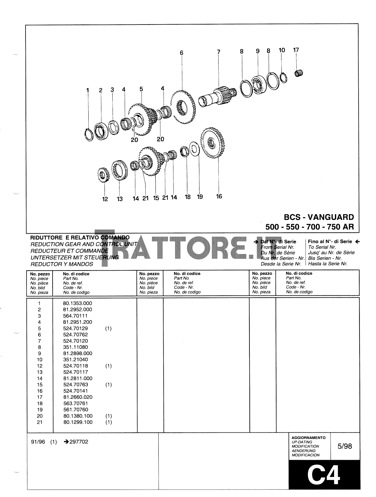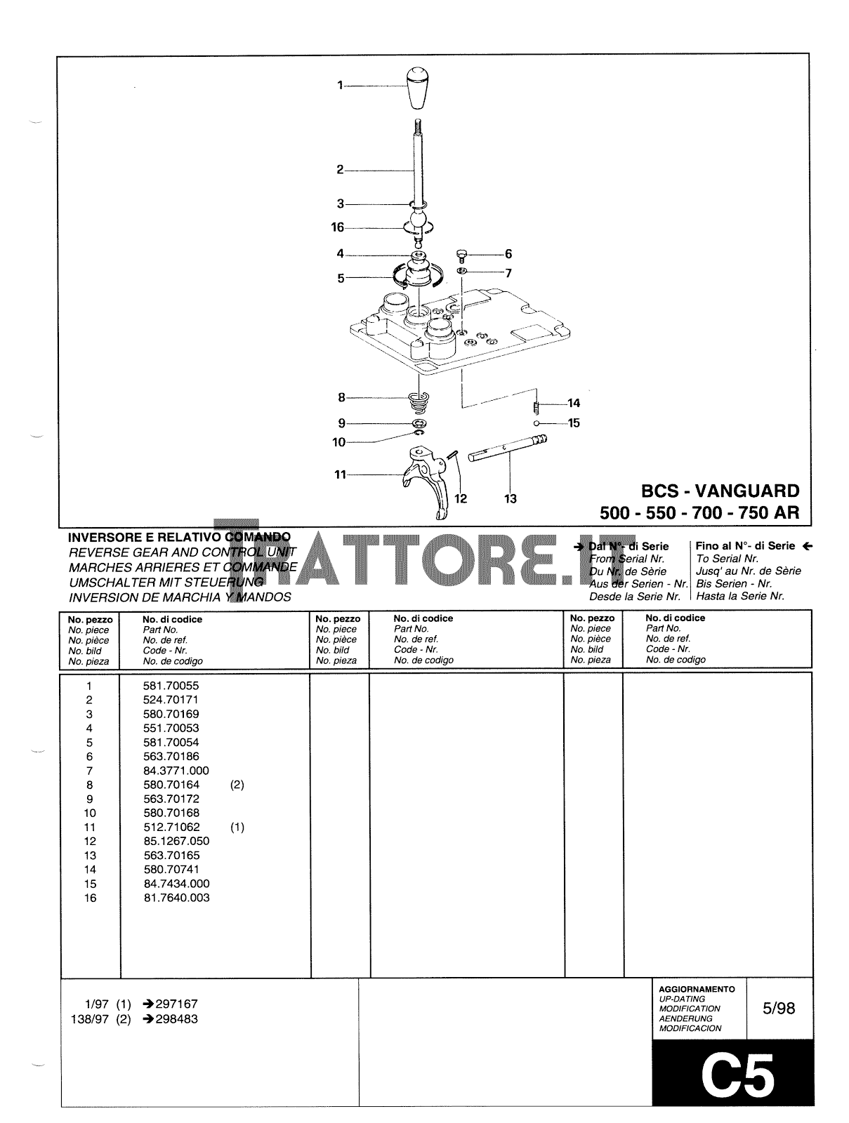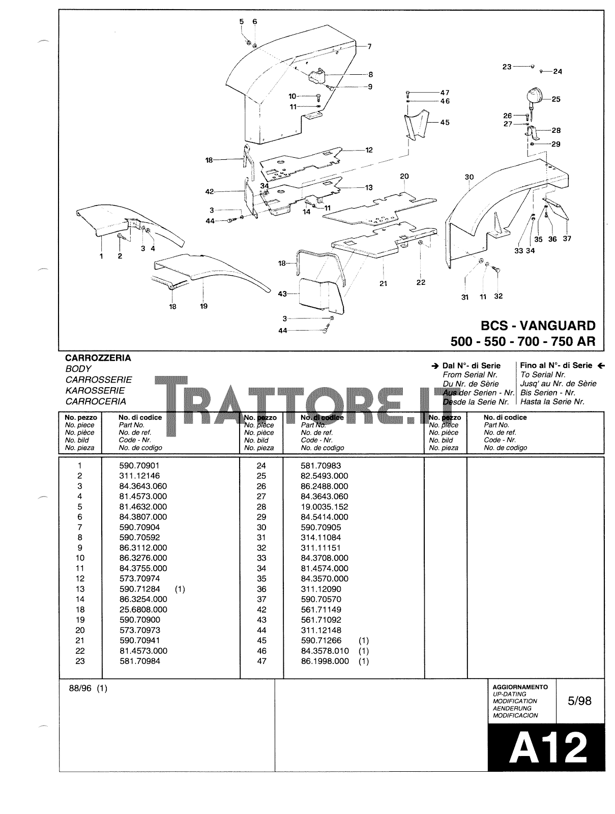 Manuale (esploso meccanico) Trattore BCS Vanguard 500 - 550 - 700 - 750 AR ed 5/98