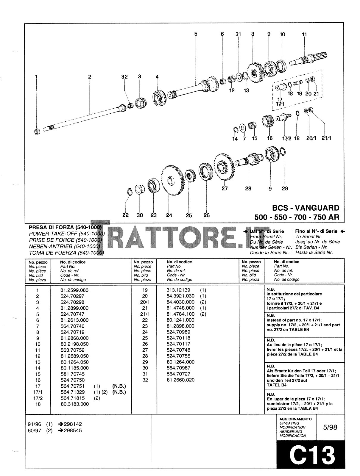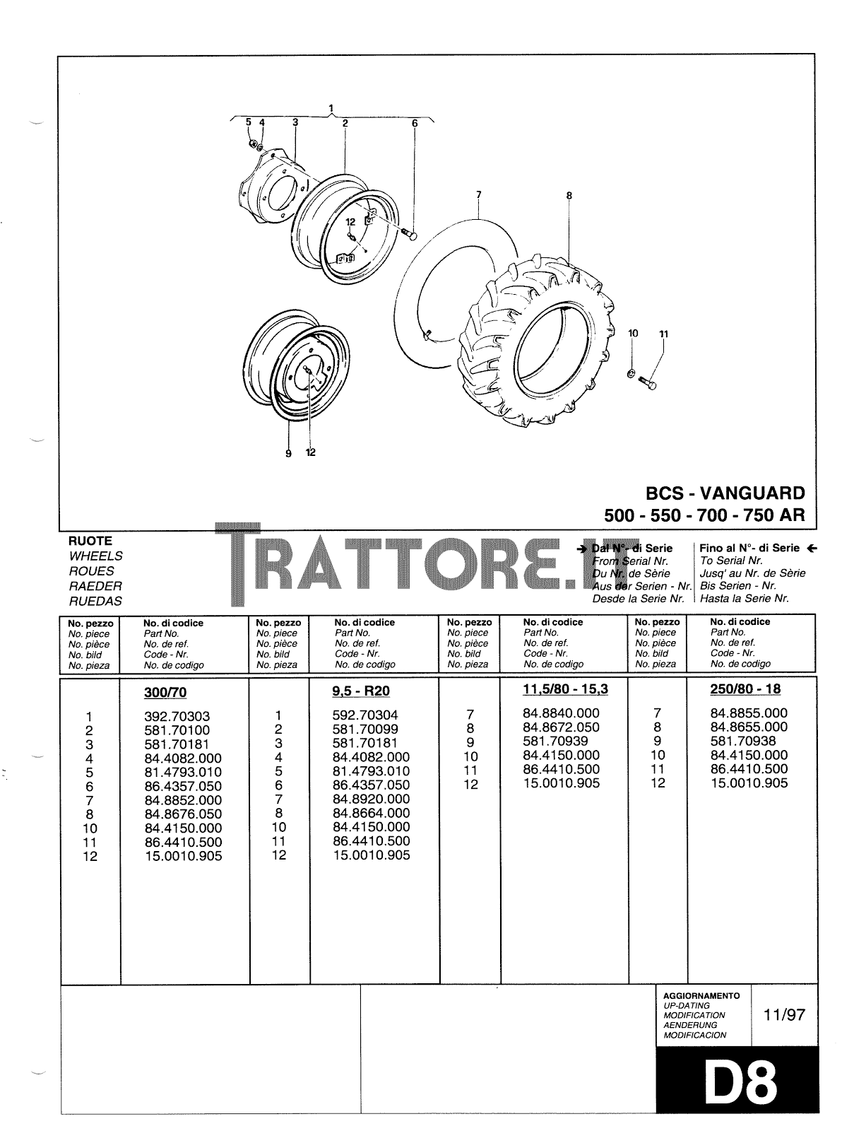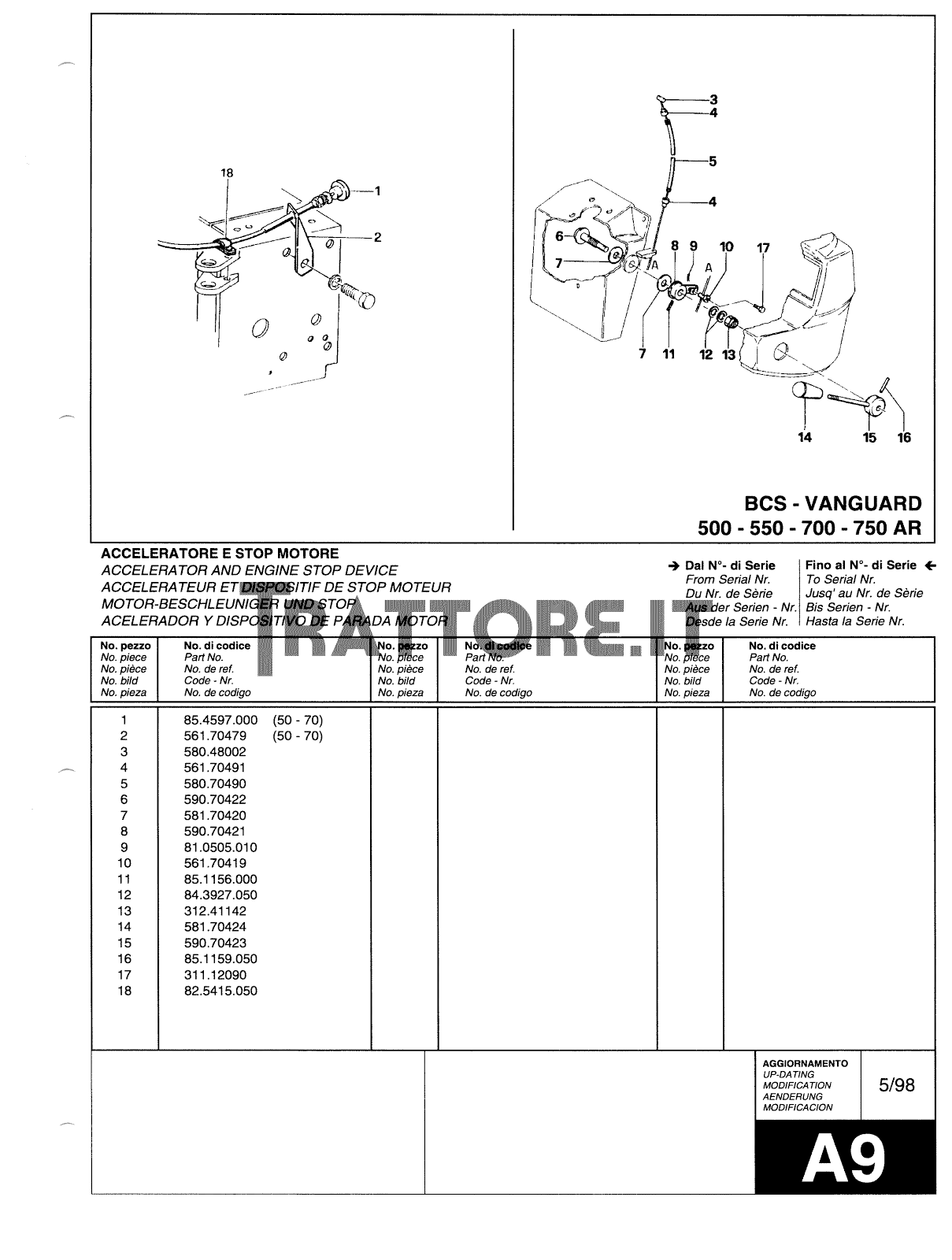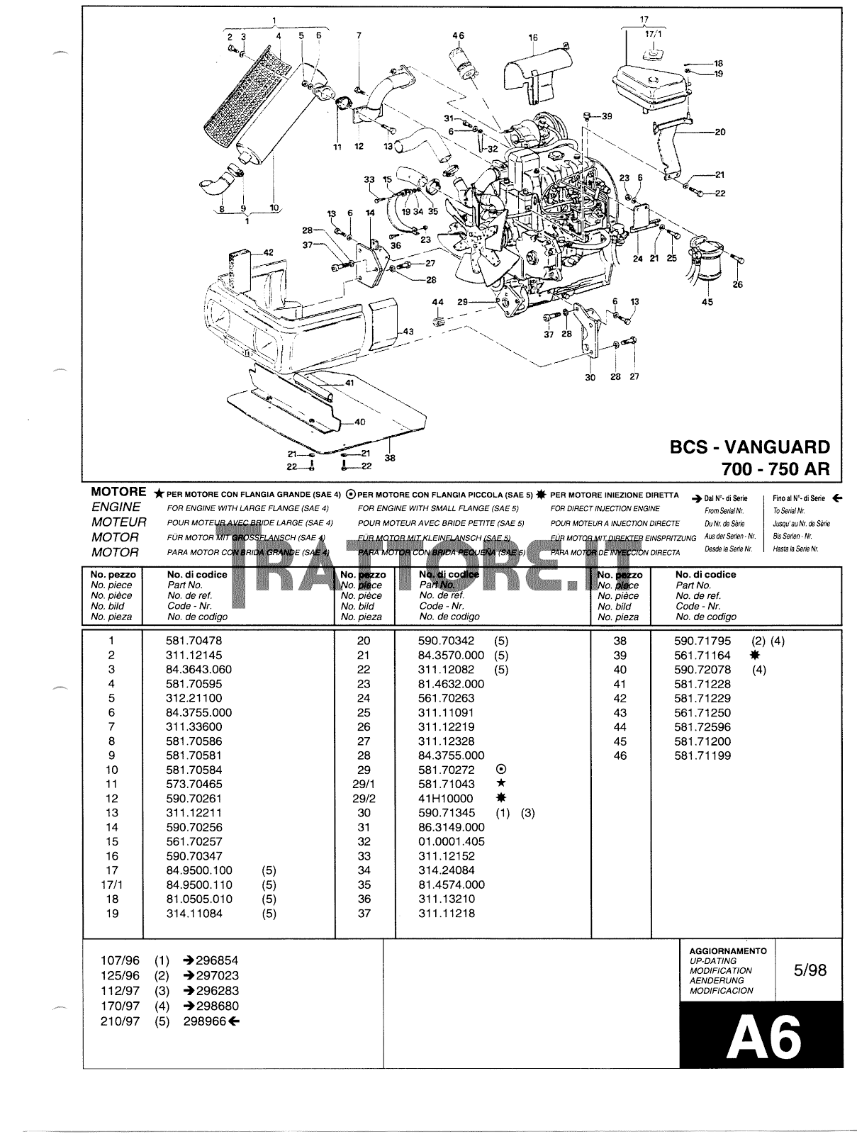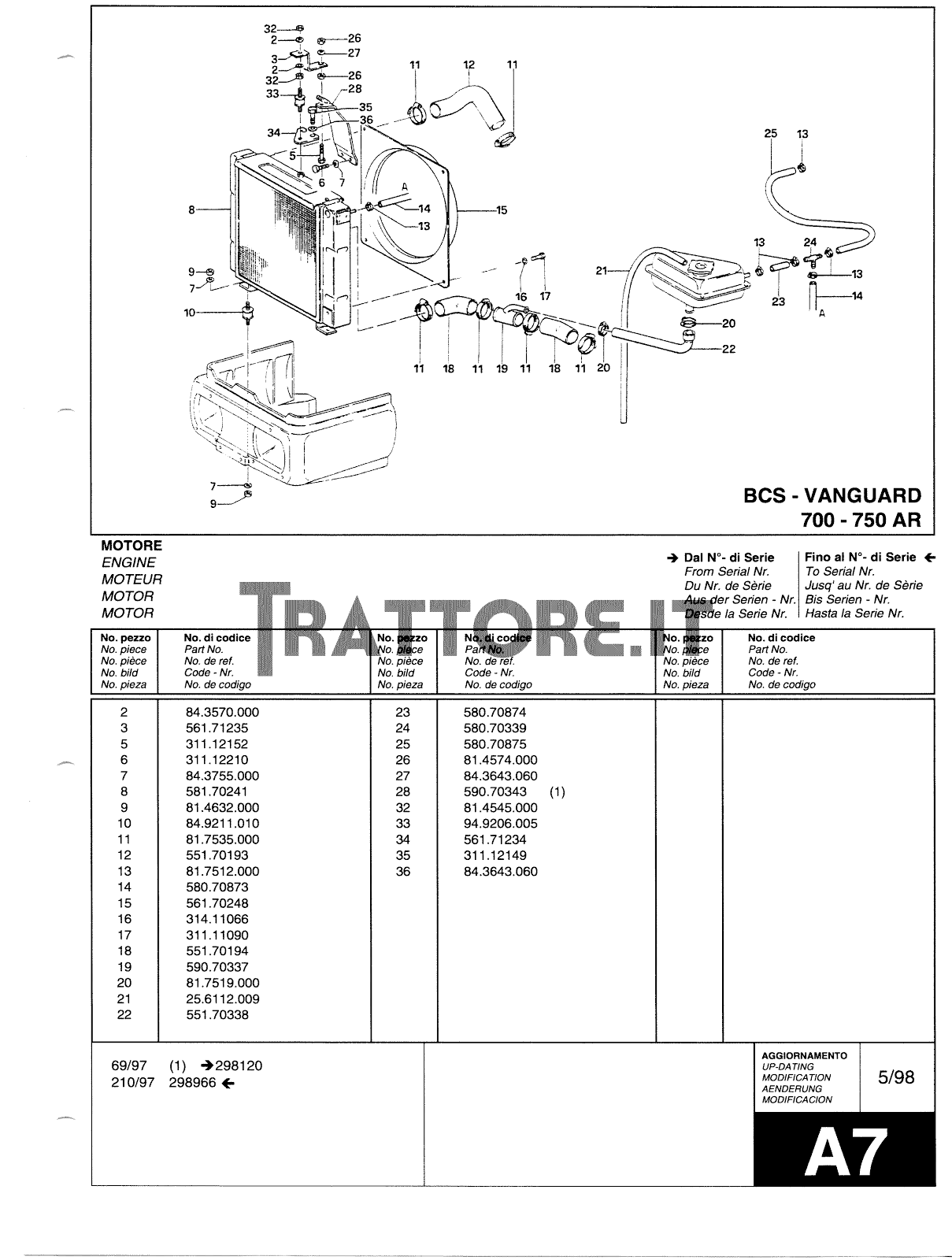 Manuale (esploso meccanico) Trattore BCS Vanguard 500 - 550 - 700 - 750 AR ed 5/98