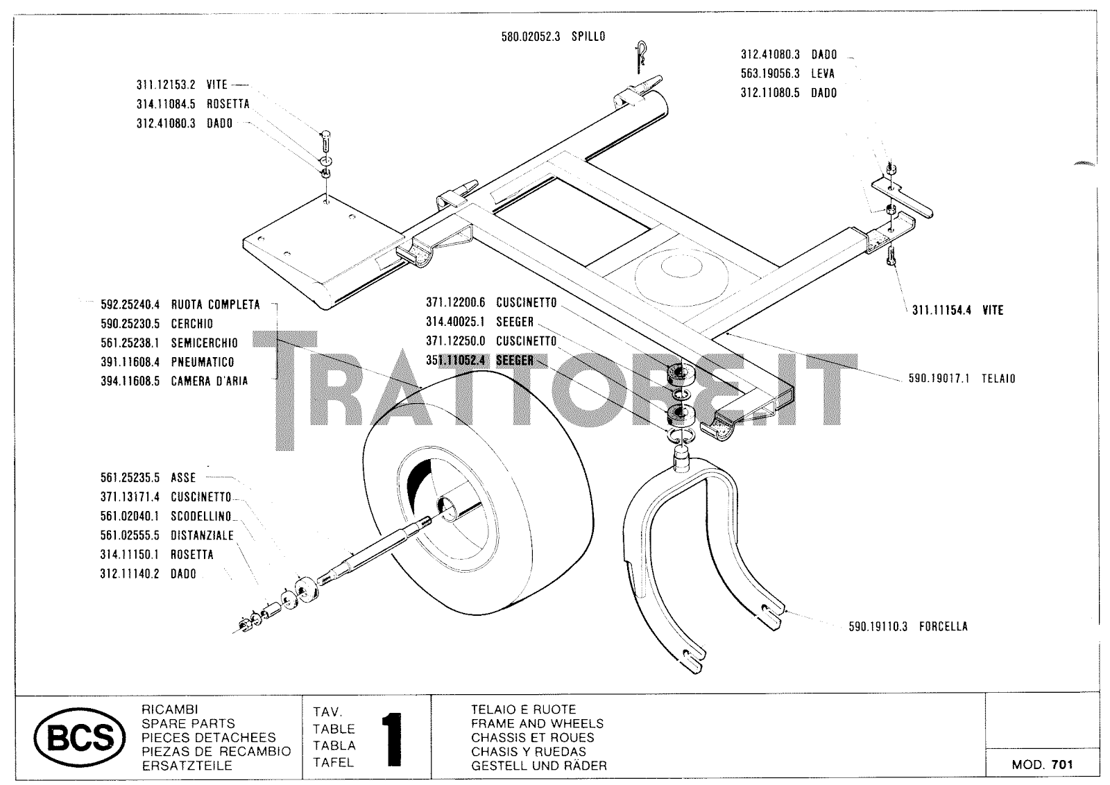 Manuale (esploso meccanico) Rasaerba / Tosaerba BCS 701 con raccoglitore erba