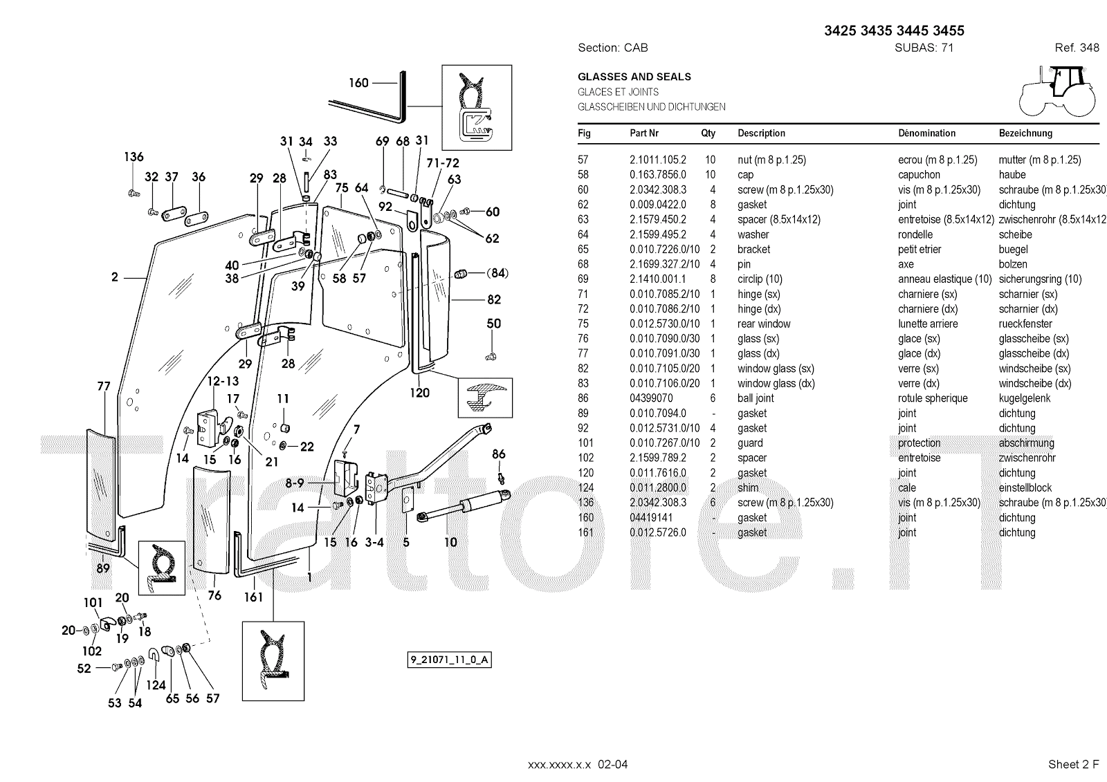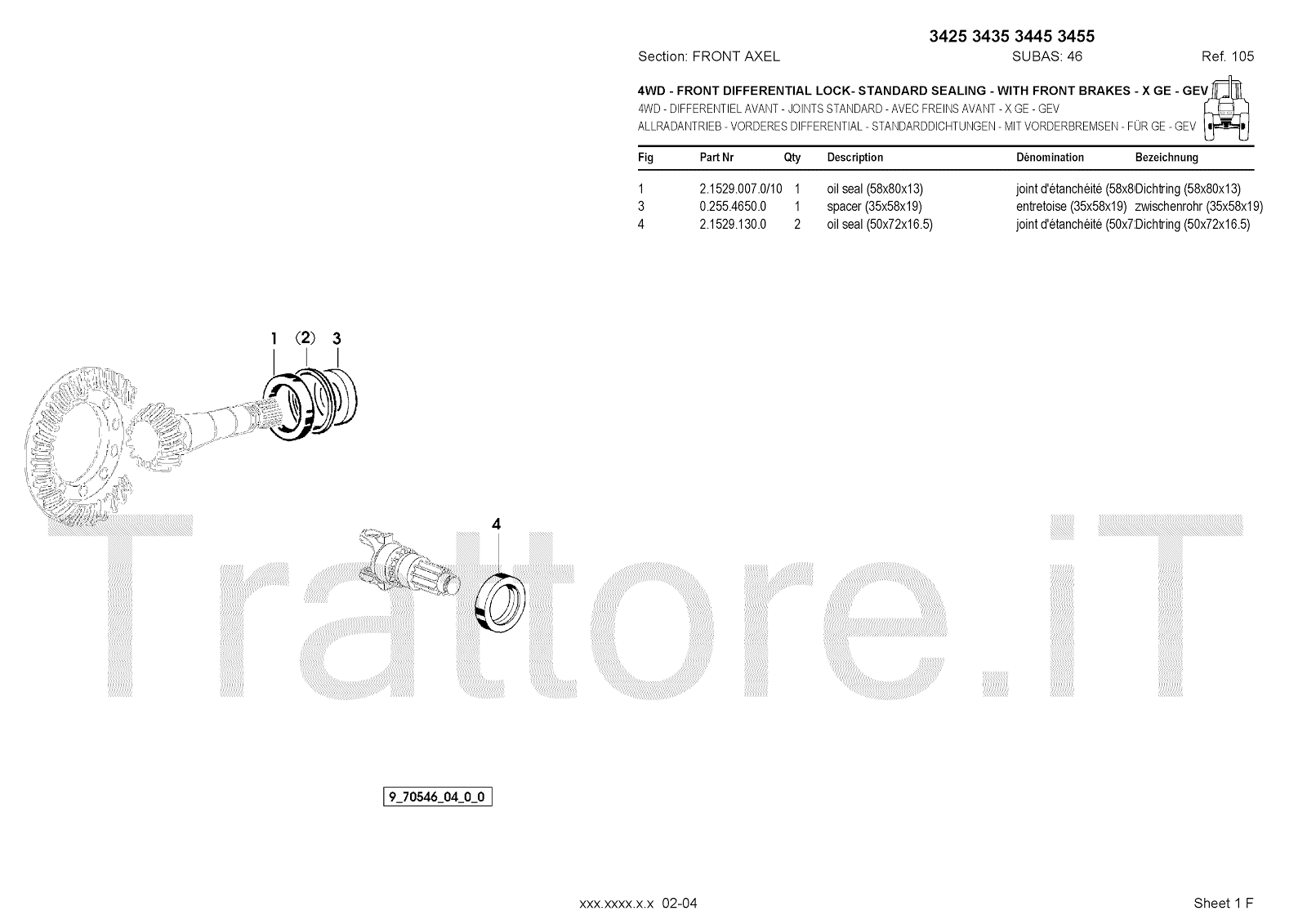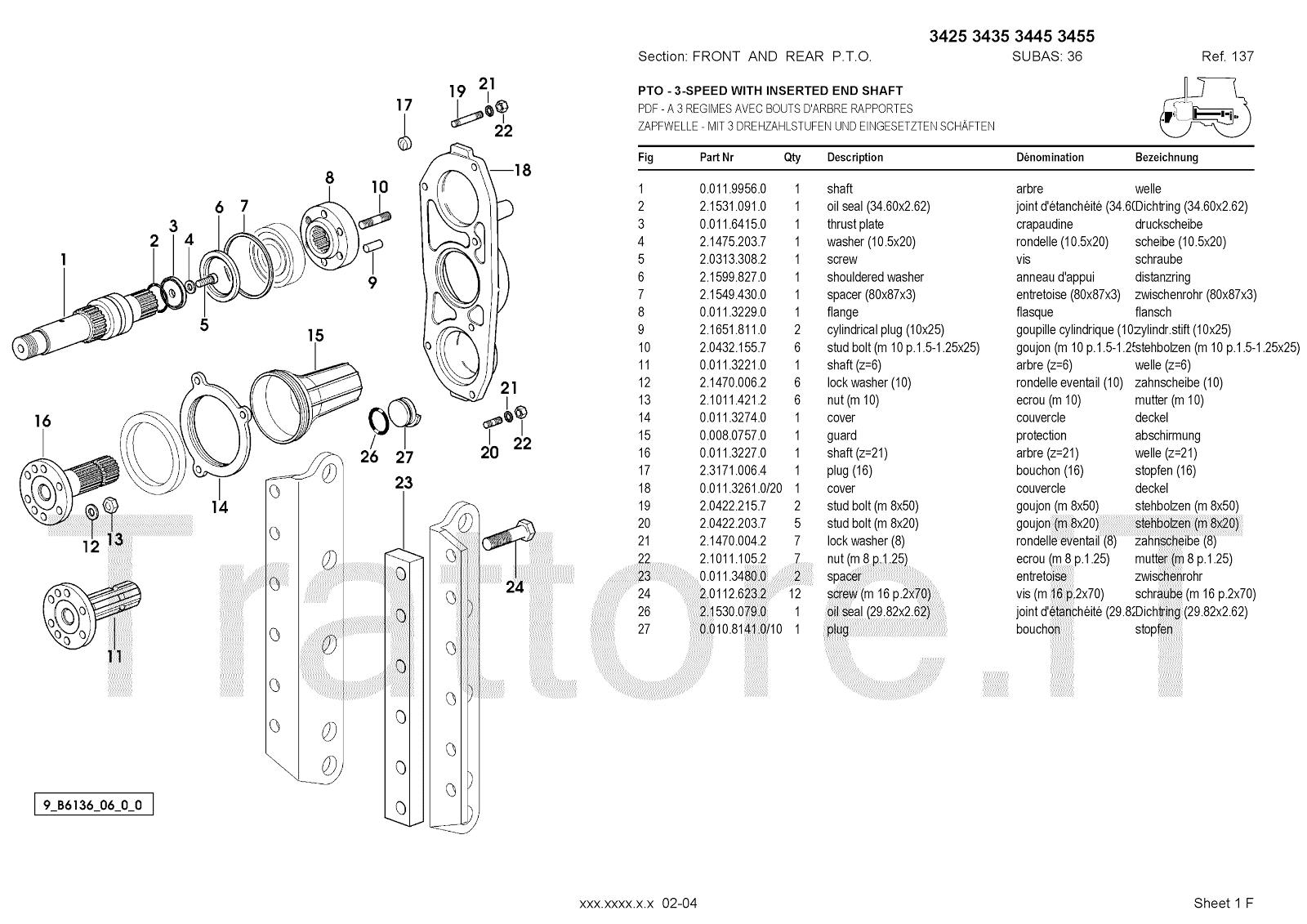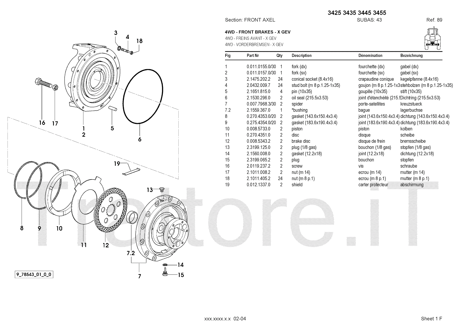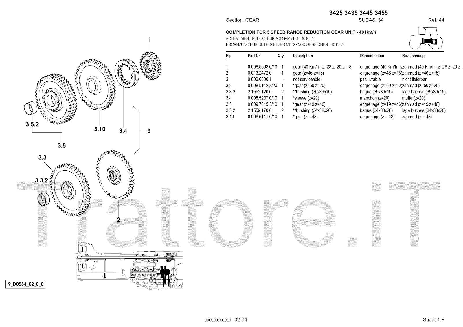 Manuale (esploso meccanico) per trattore / trattrice Massey Ferguson 3425GE - GEV