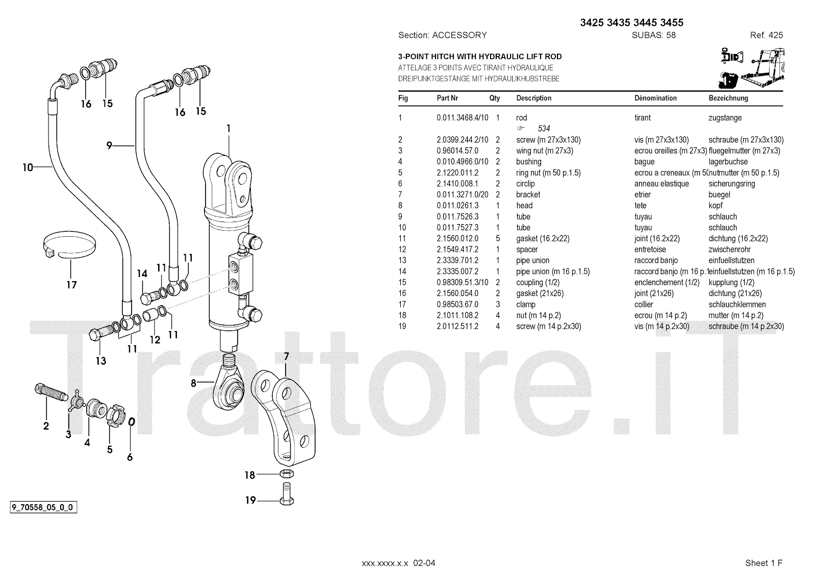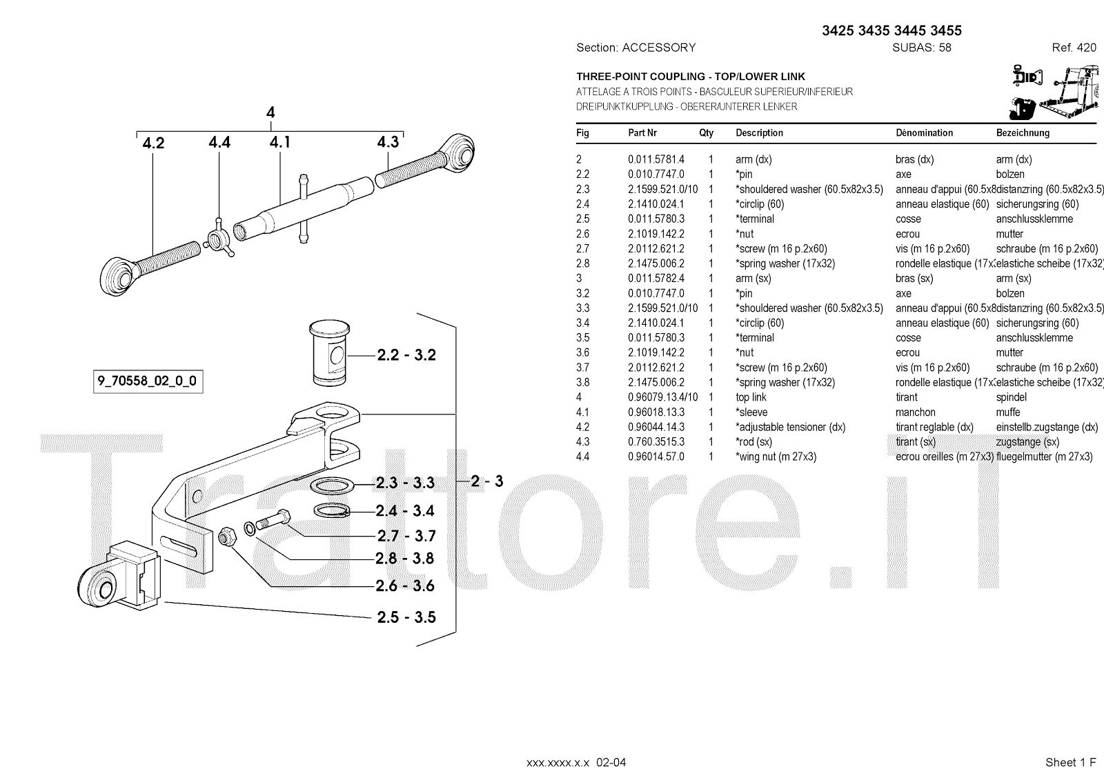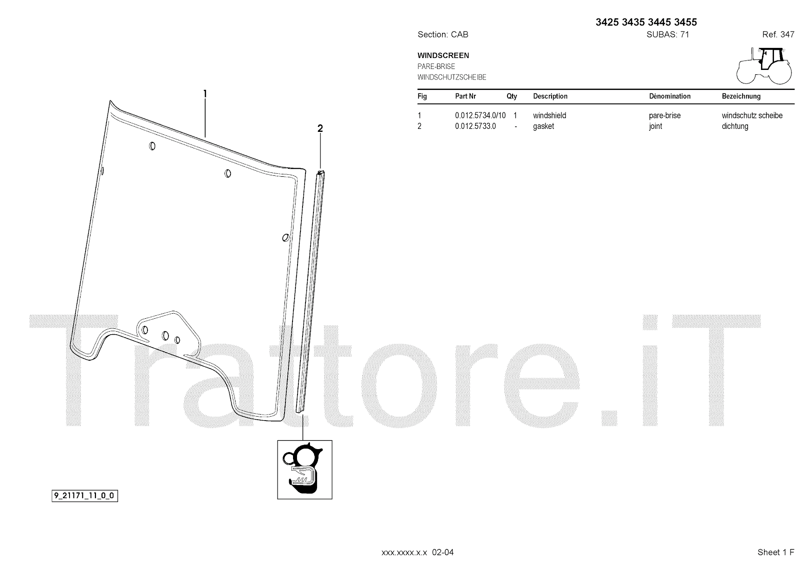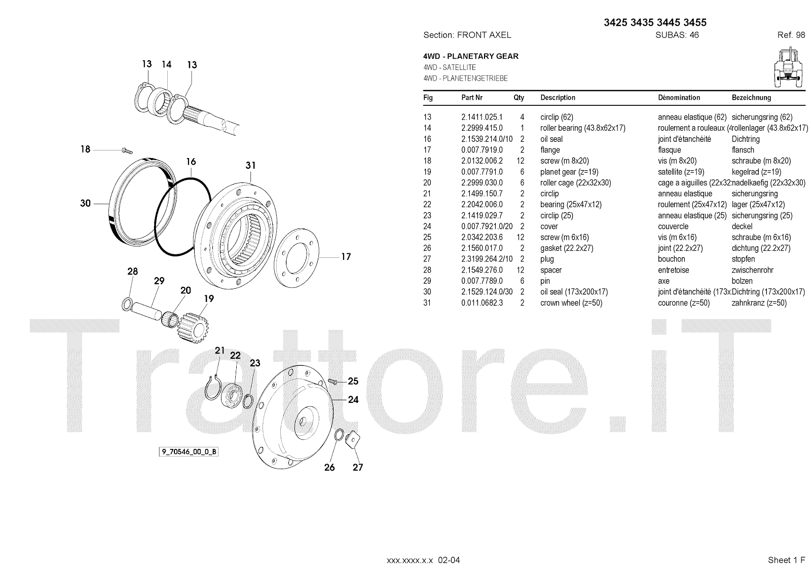 Manuale (esploso meccanico) per trattore / trattrice Massey Ferguson 3425GE - GEV