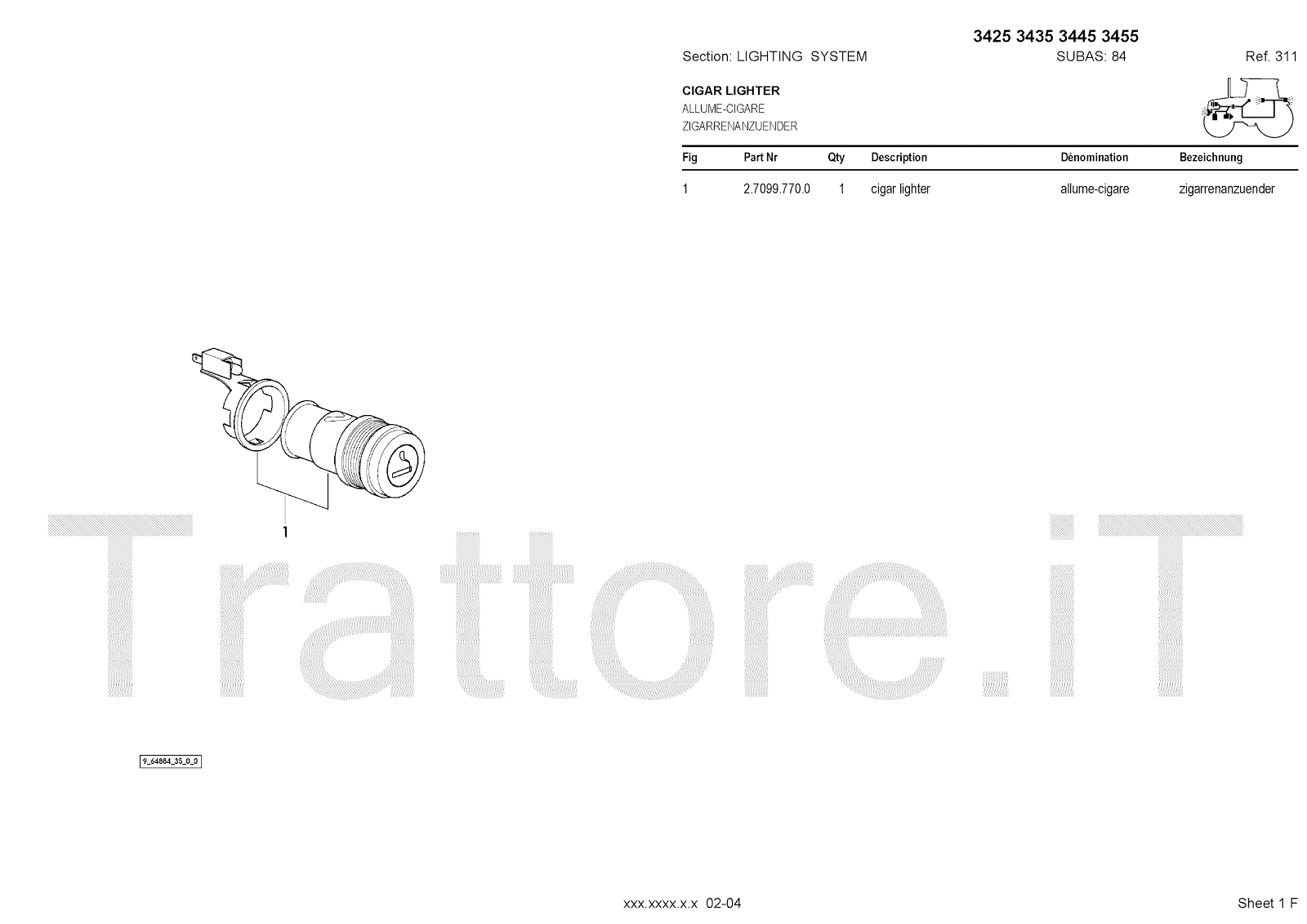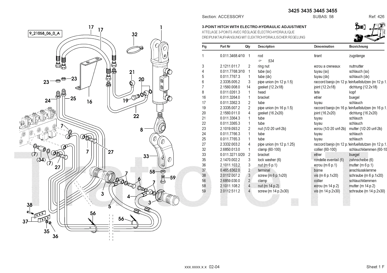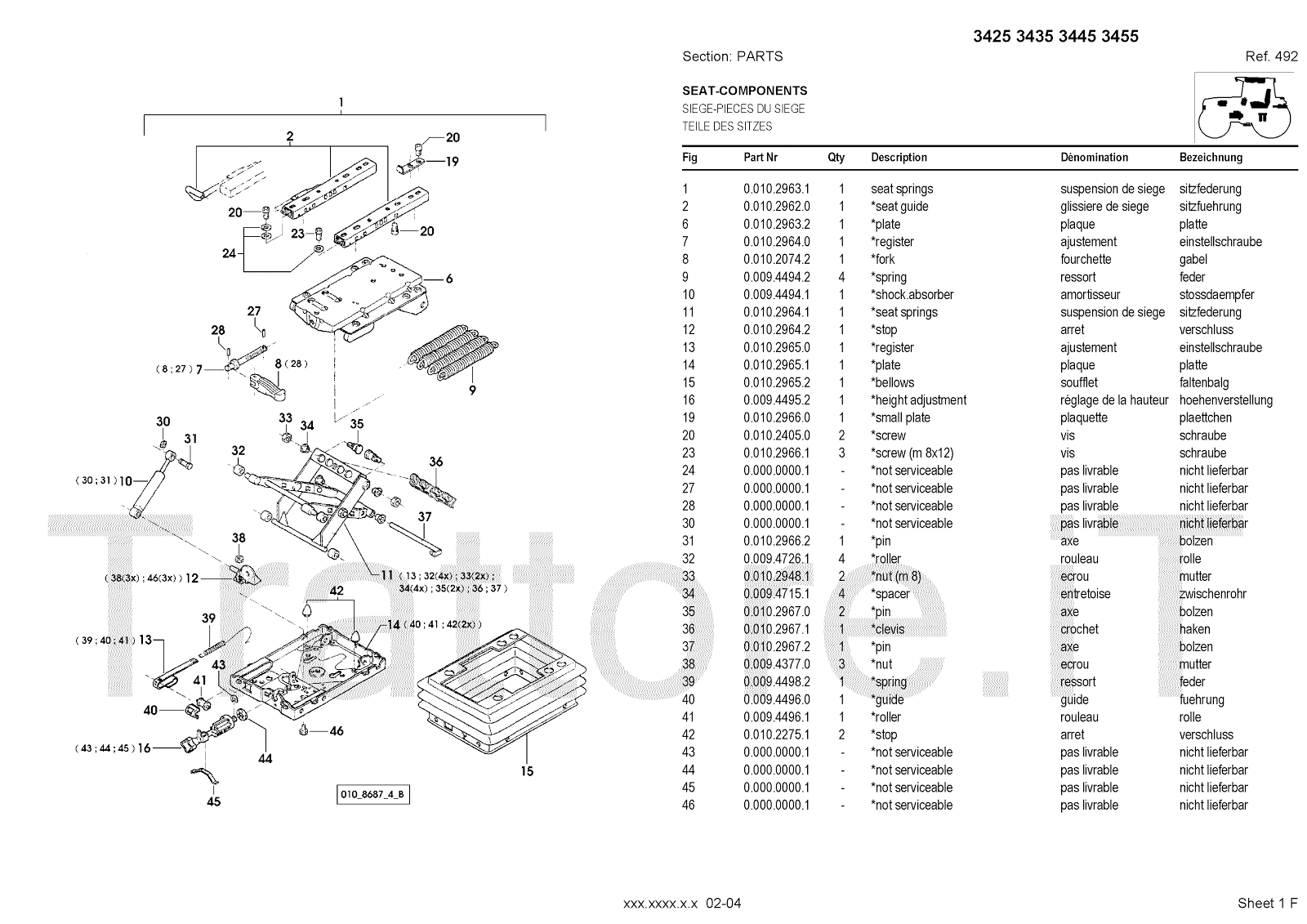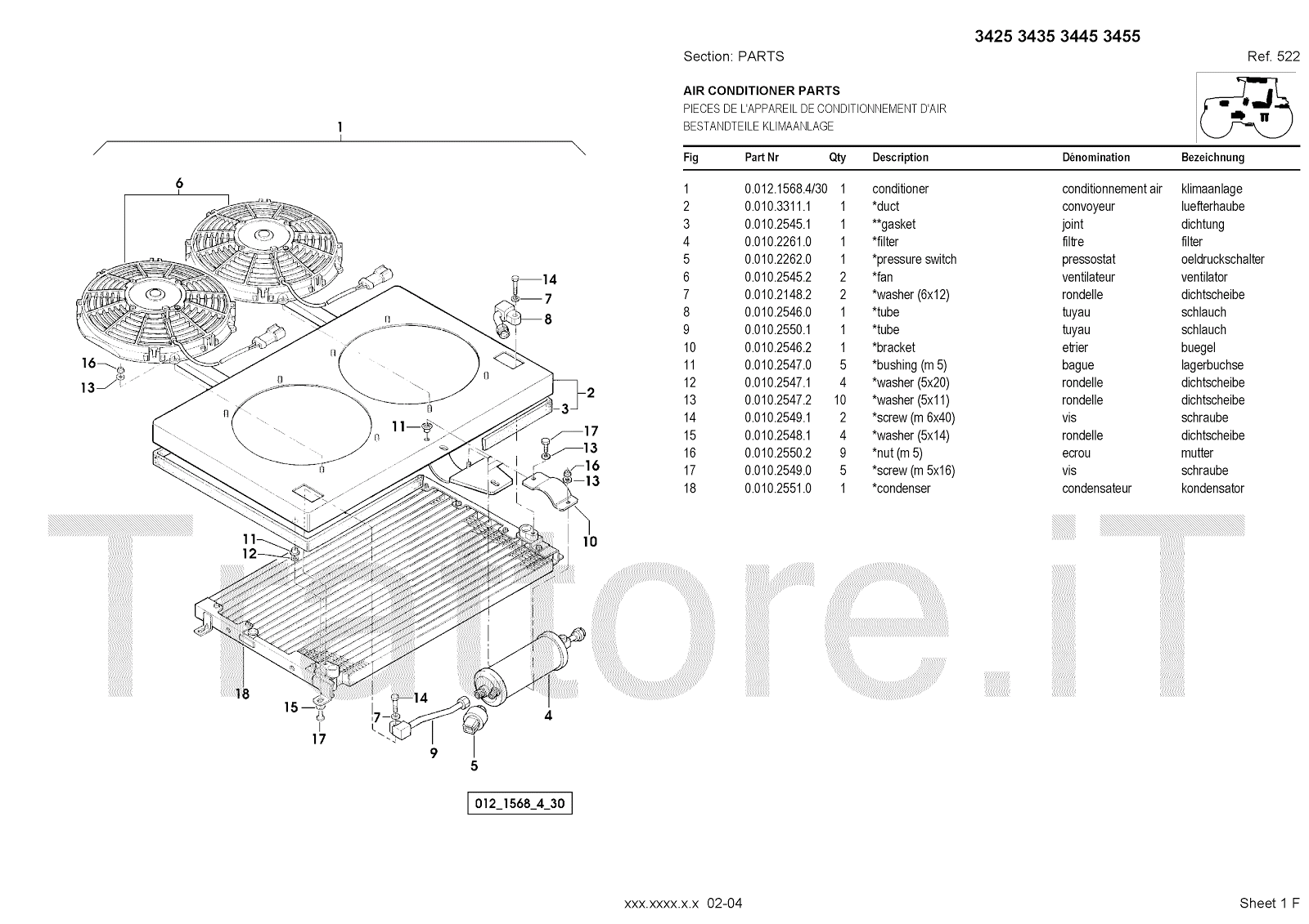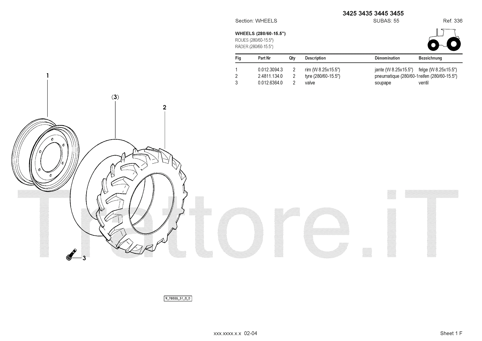 Manuale (esploso meccanico) per trattore / trattrice Massey Ferguson 3425GE - GEV