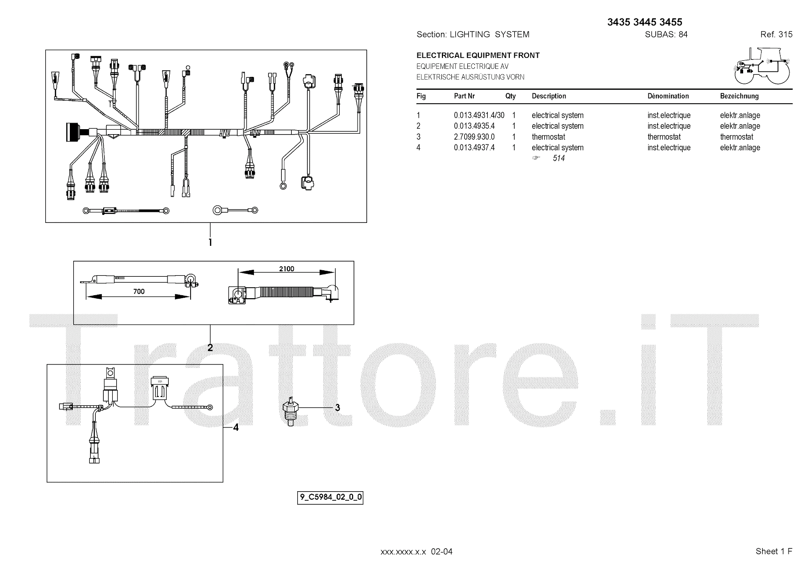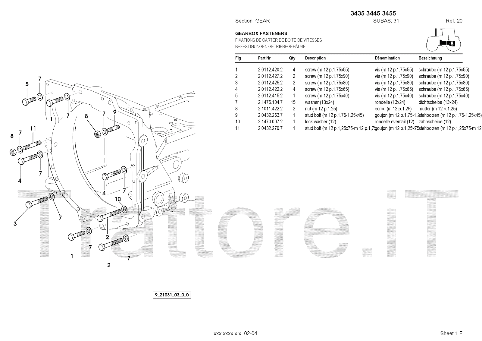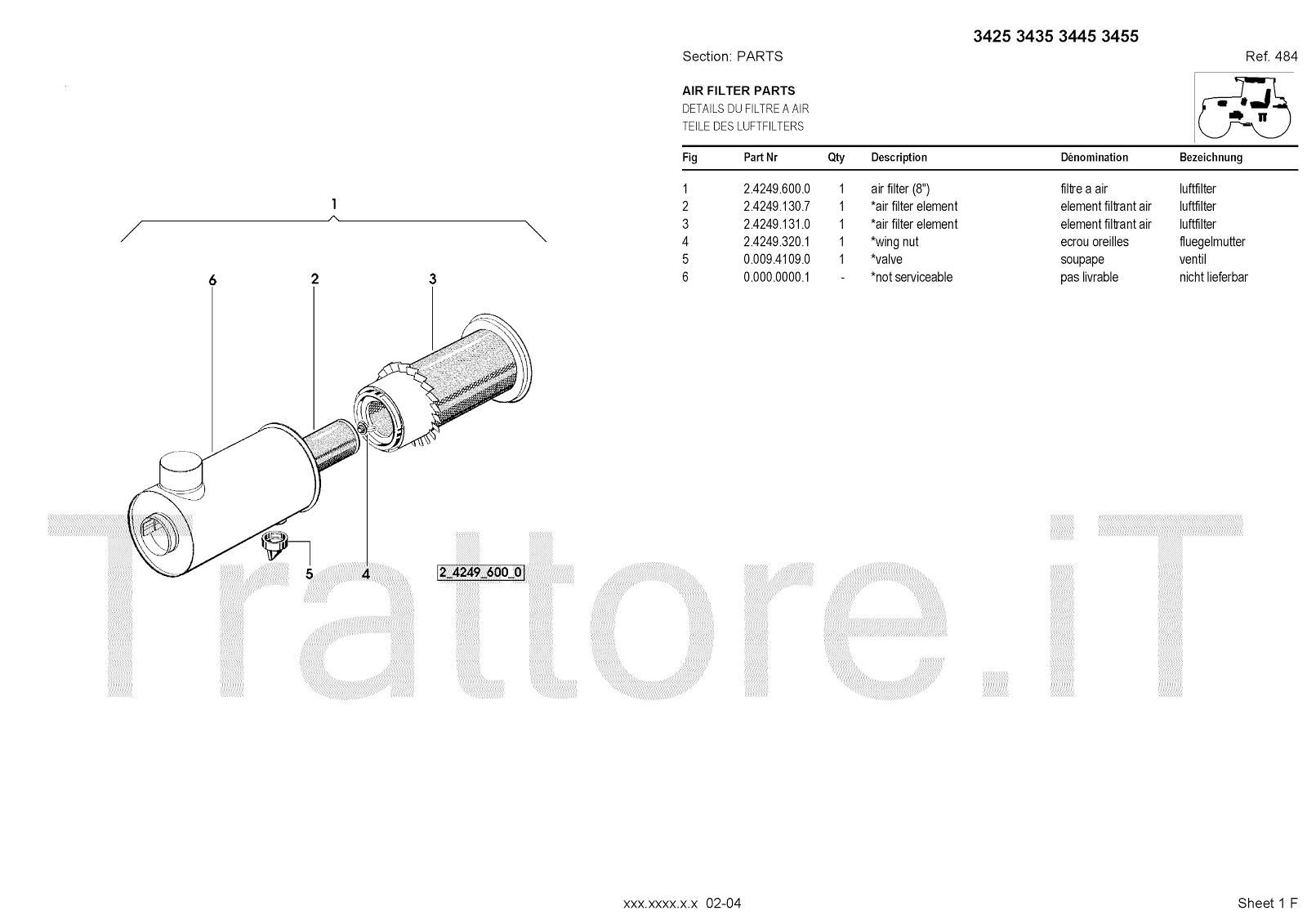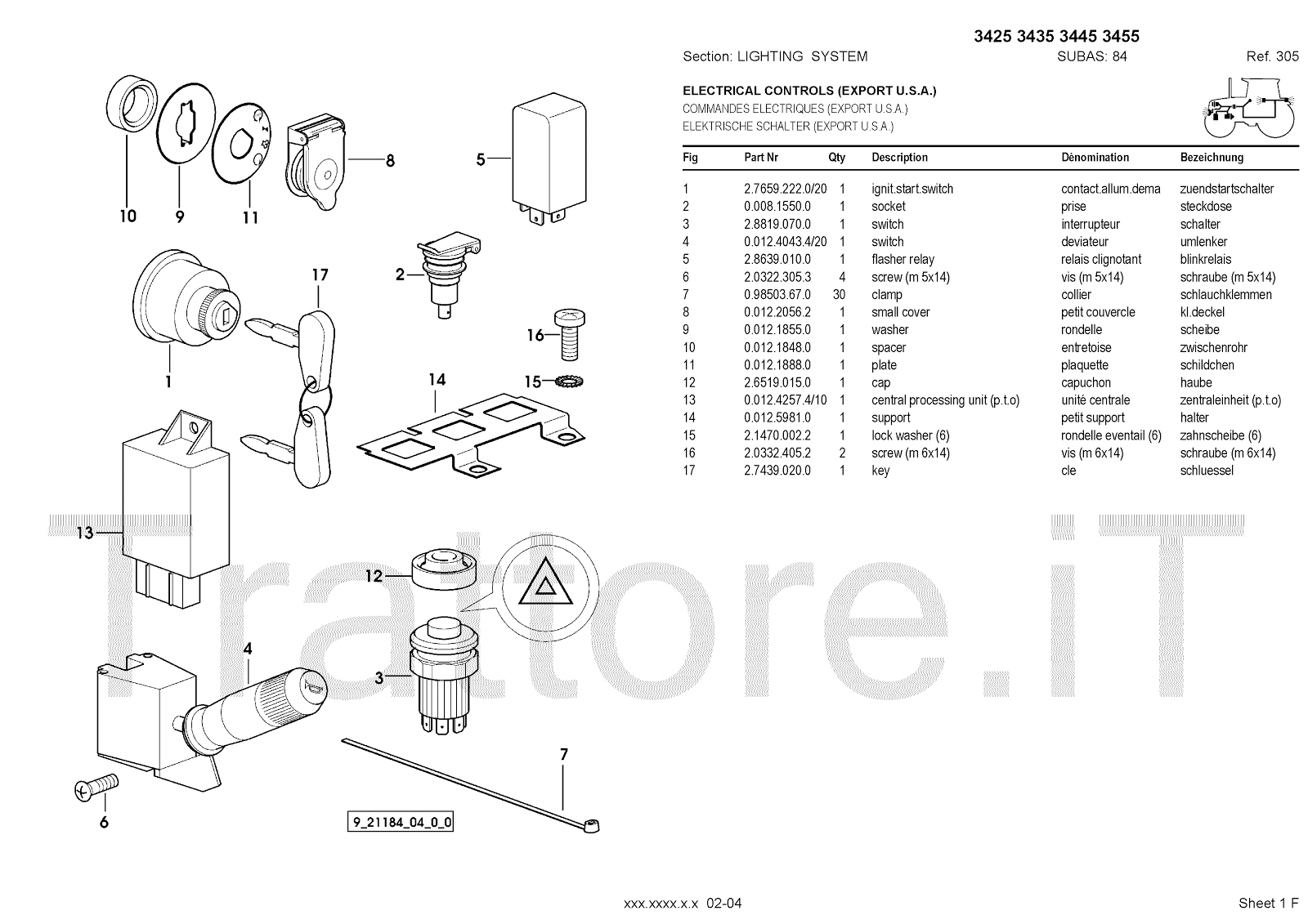 Manuale (esploso meccanico) per trattore / trattrice Massey Ferguson 3425GE - GEV