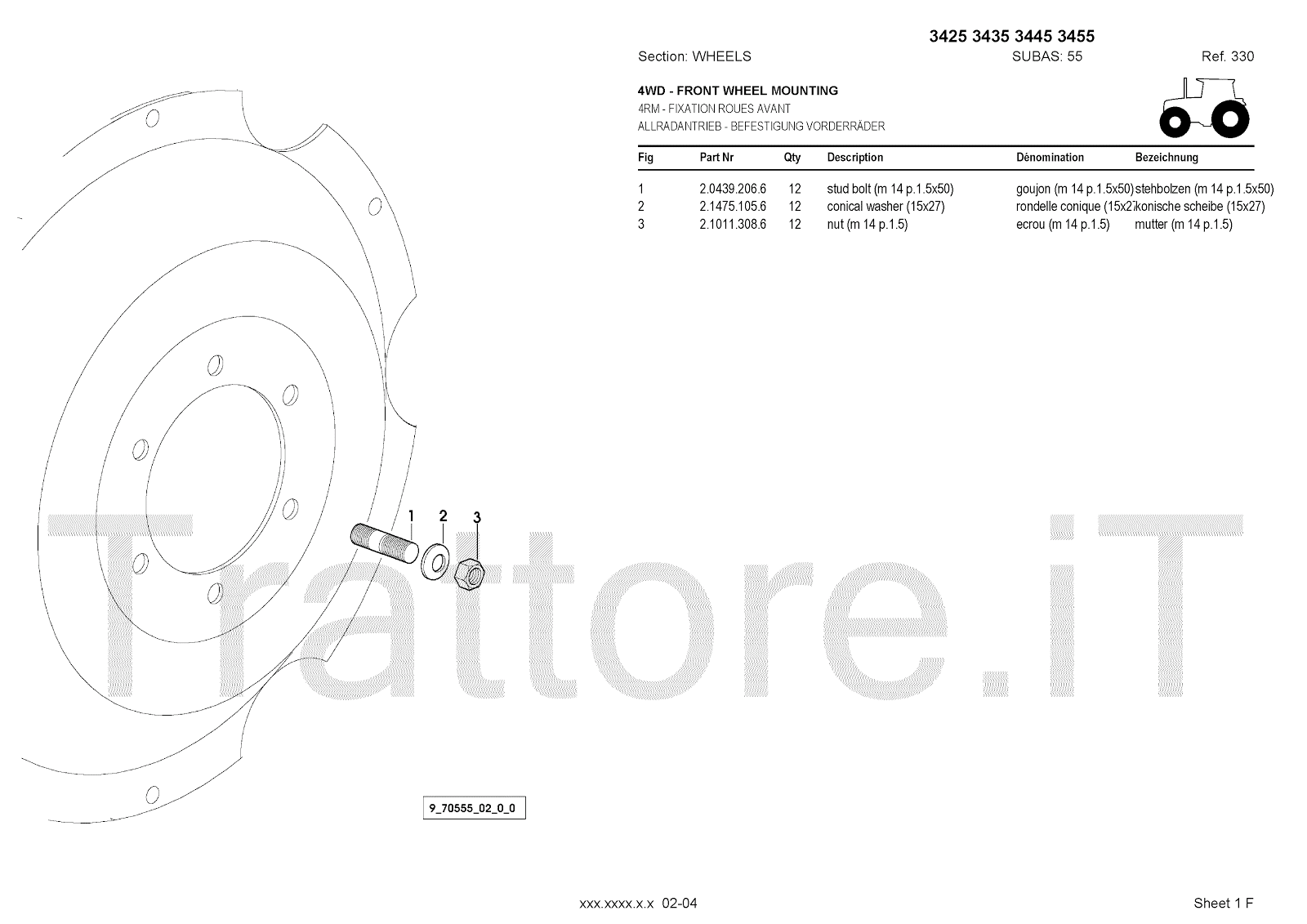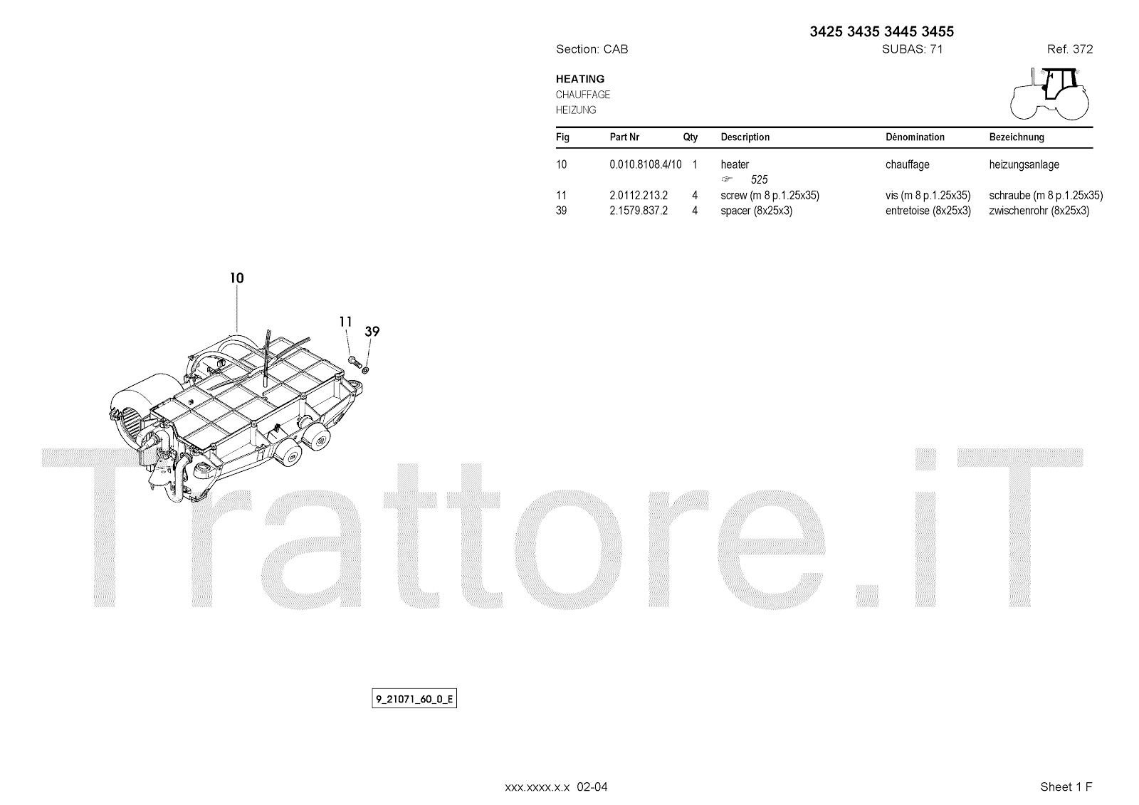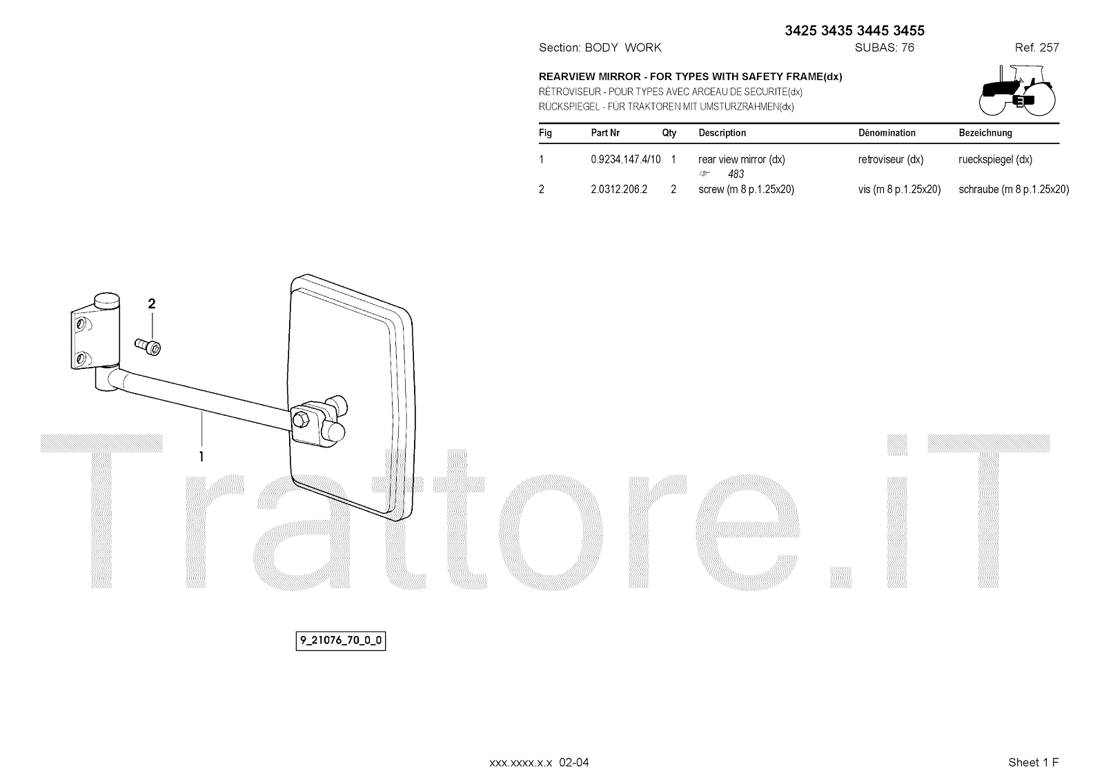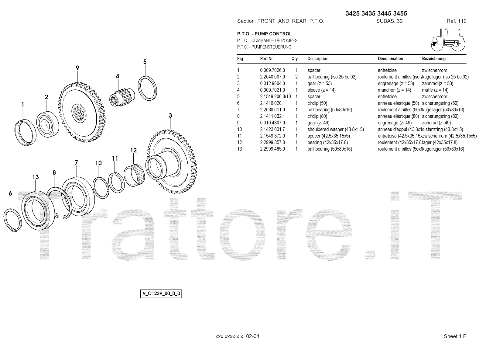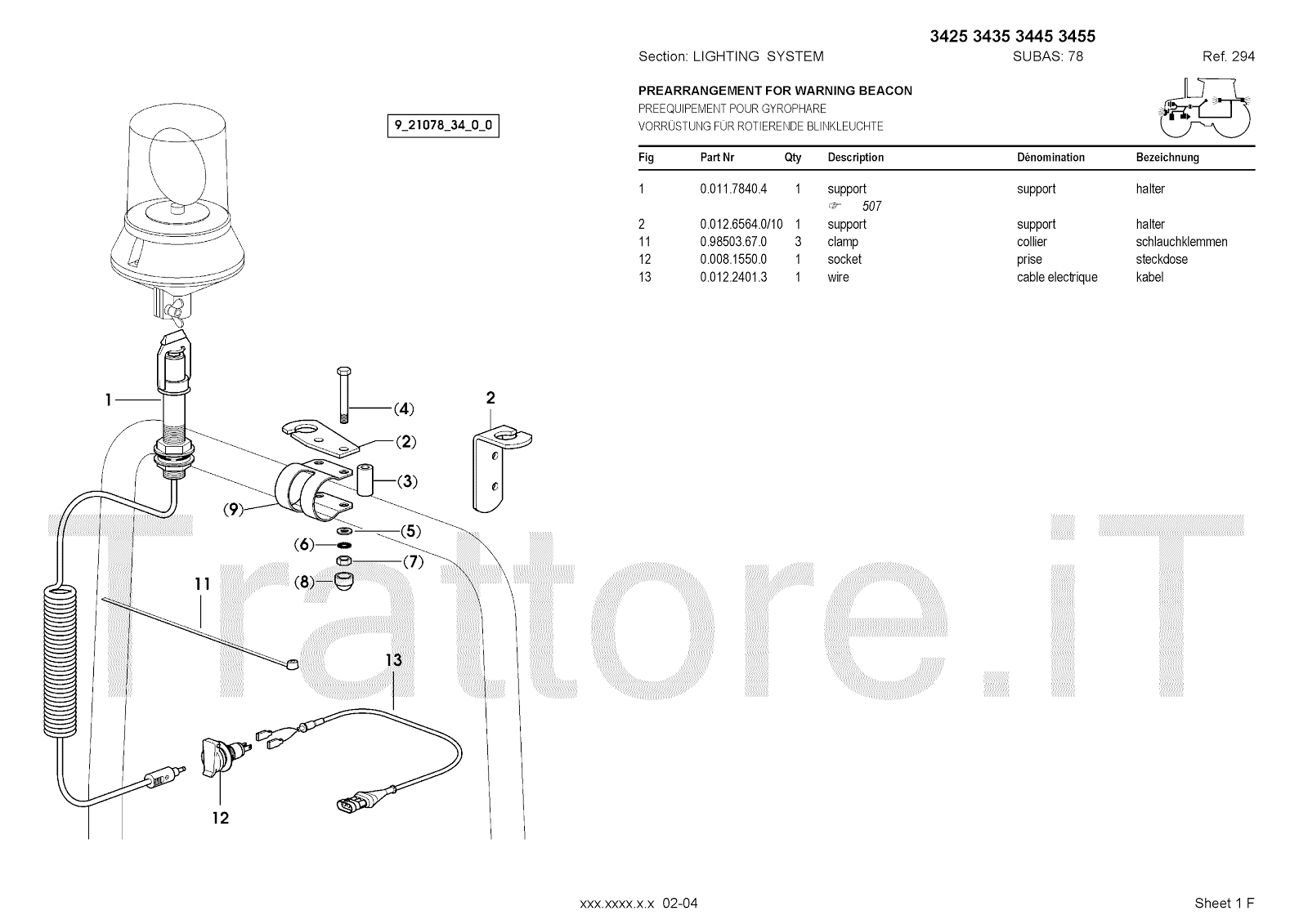 Manuale (esploso meccanico) per trattore / trattrice Massey Ferguson 3425GE - GEV
