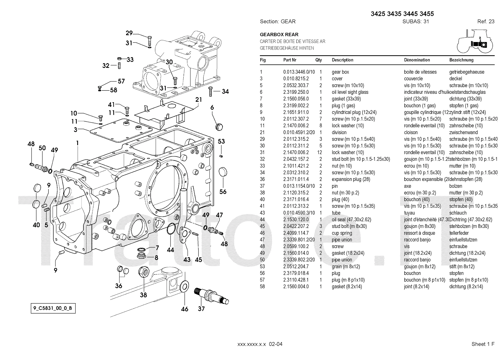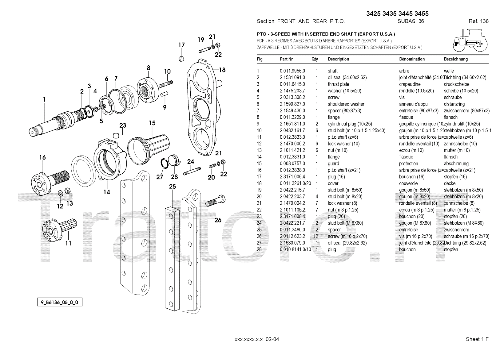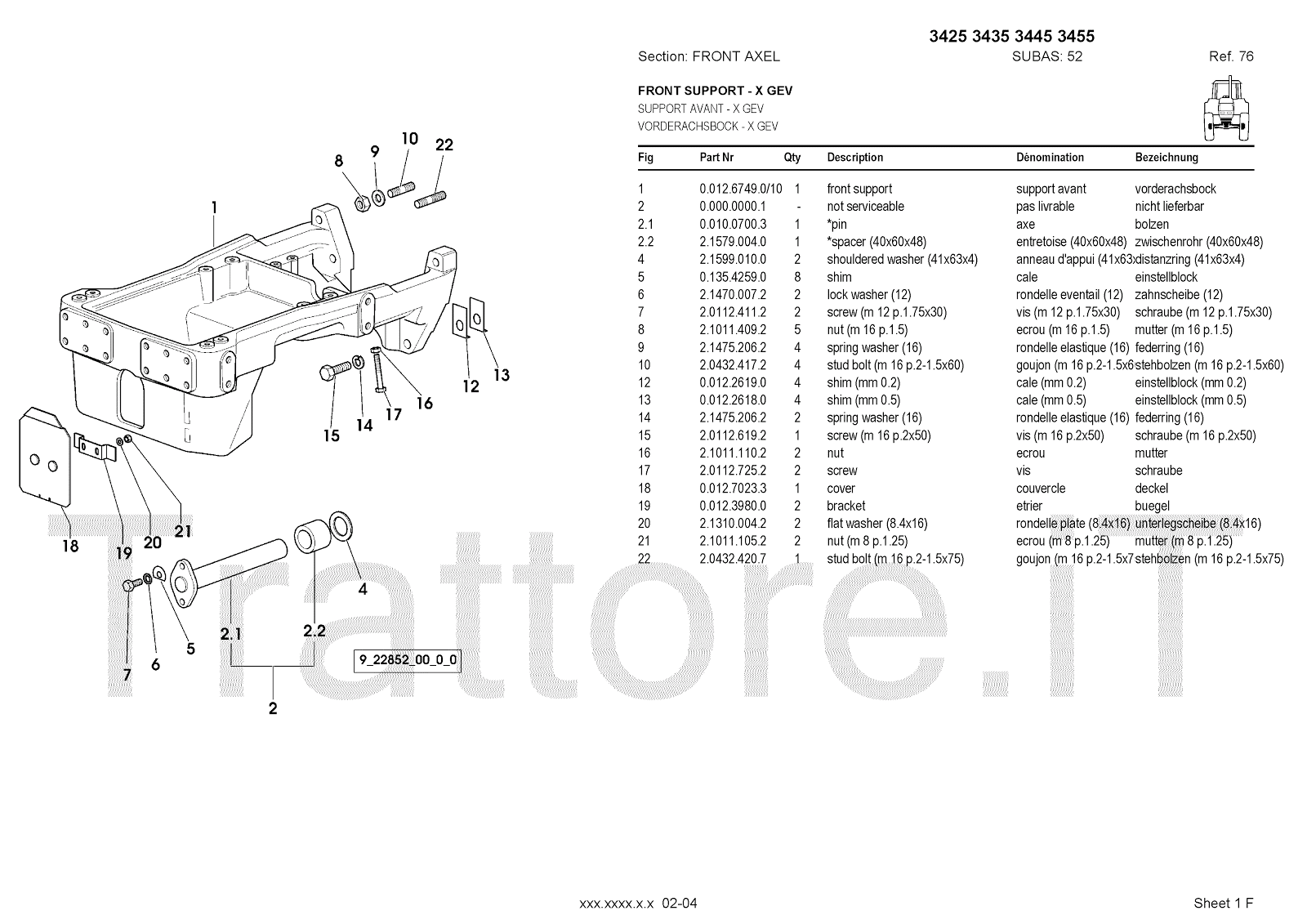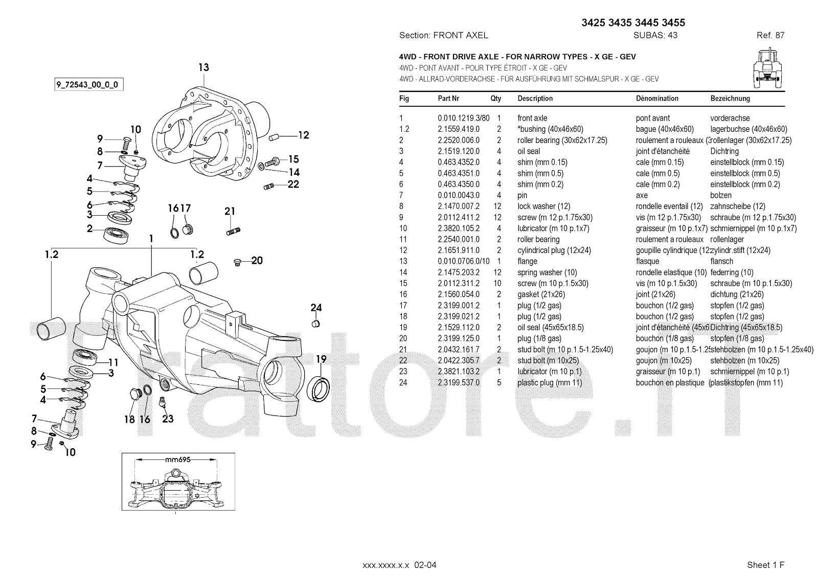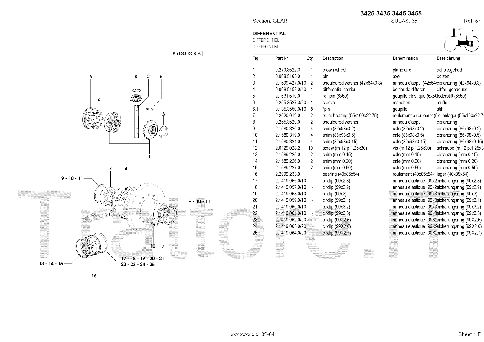 Manuale (esploso meccanico) per trattore / trattrice Massey Ferguson 3435GE - GEV