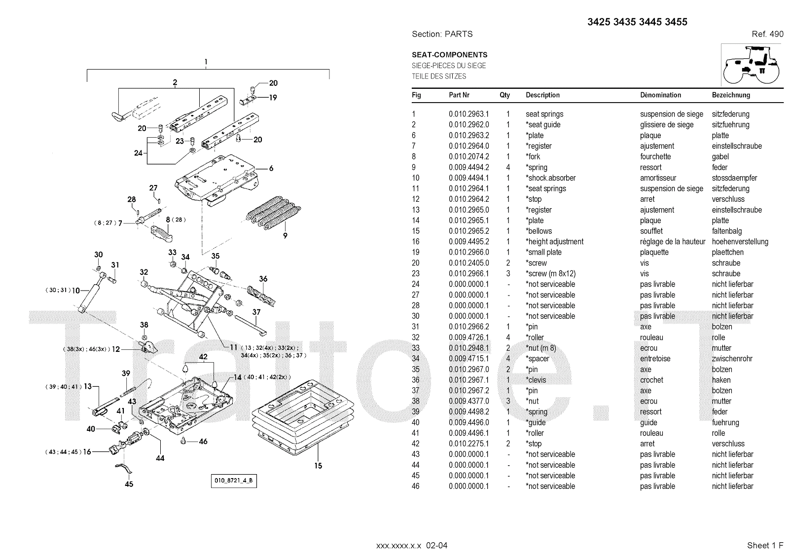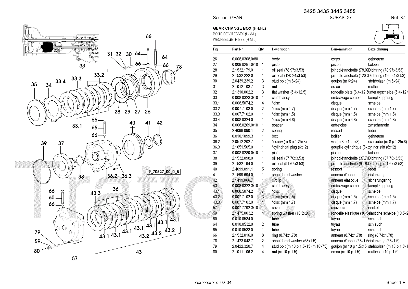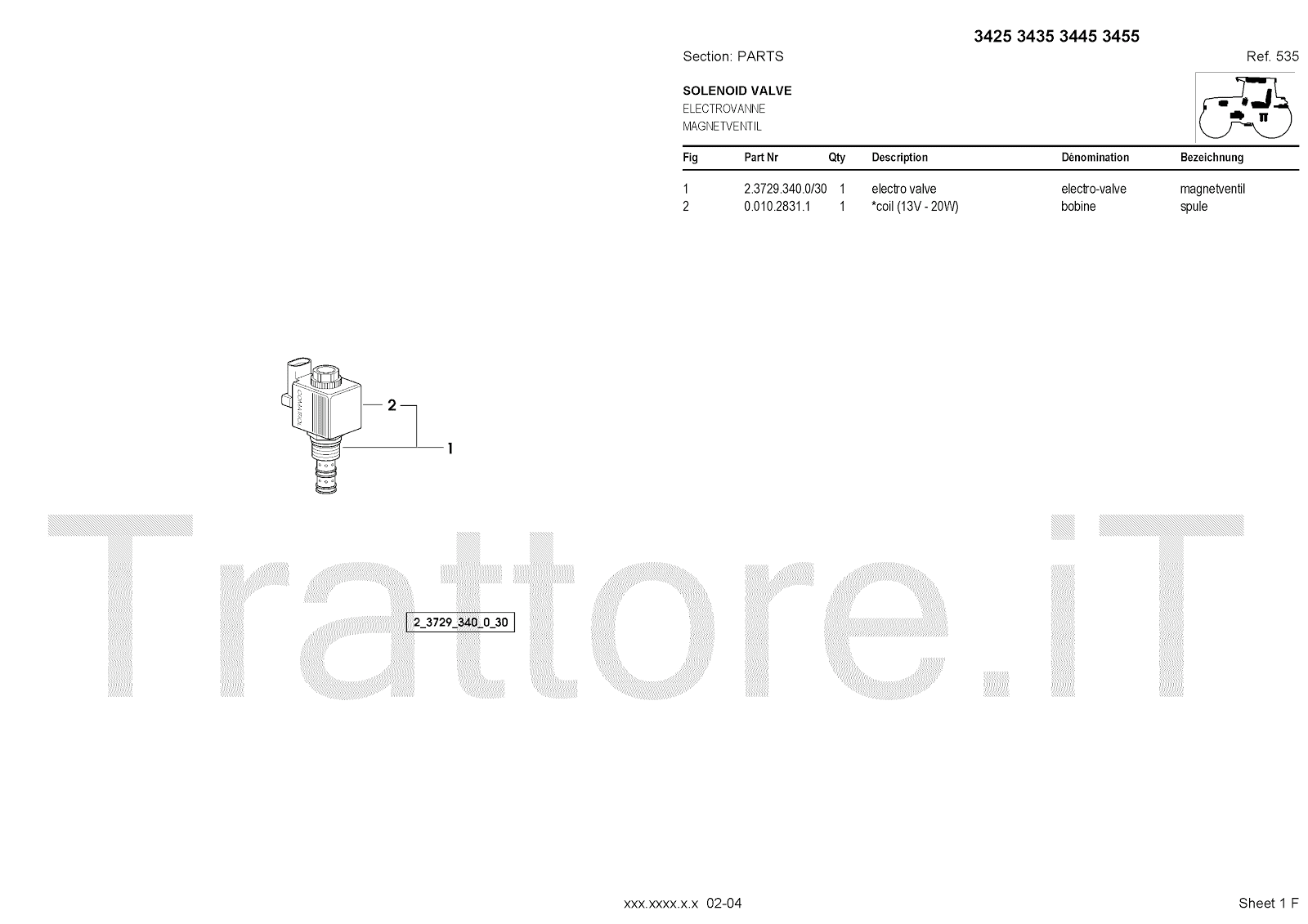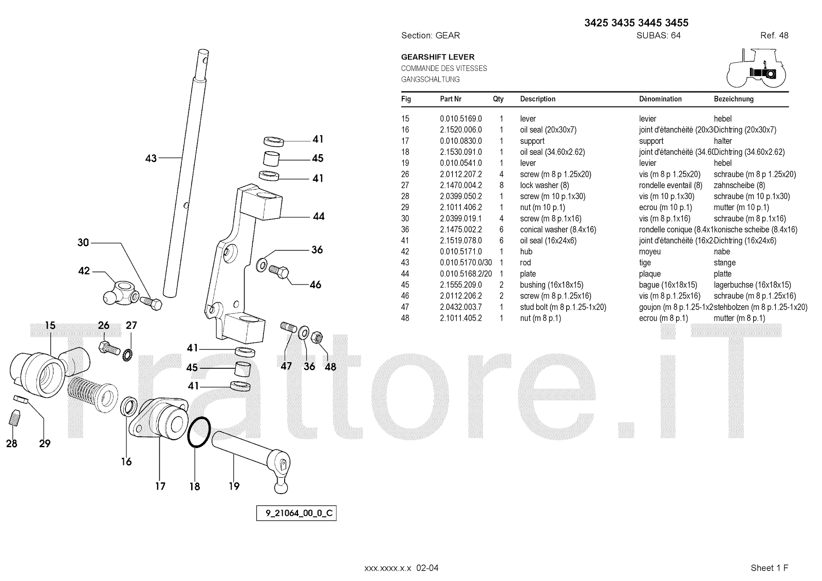 Manuale (esploso meccanico) per trattore / trattrice Massey Ferguson 3435GE - GEV