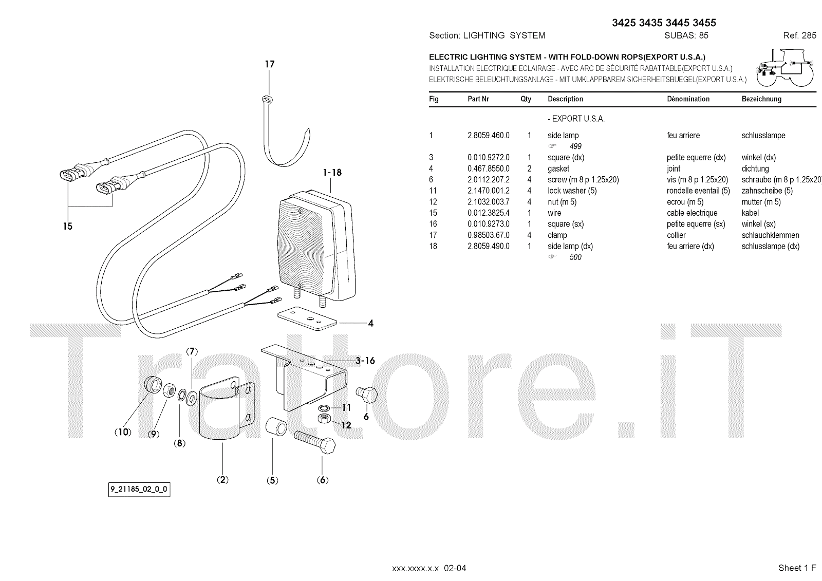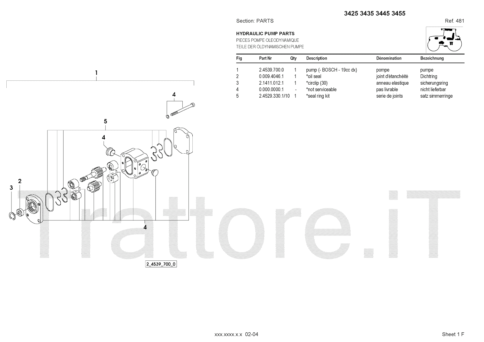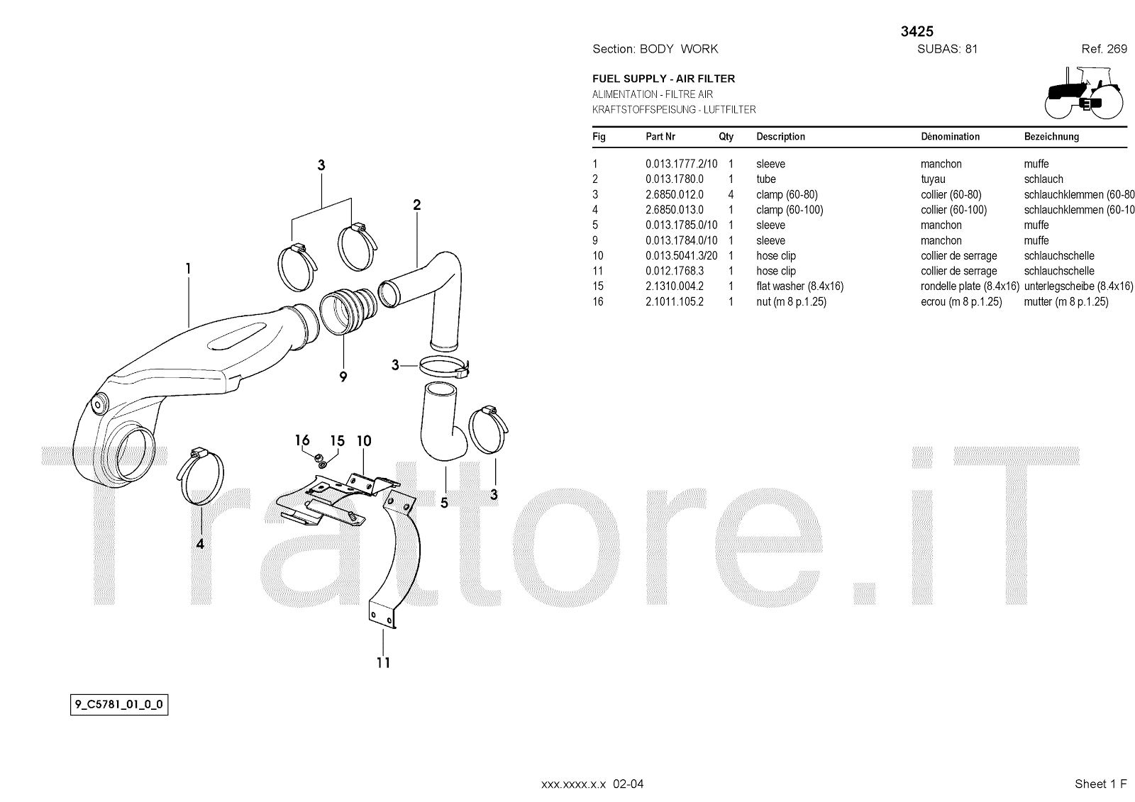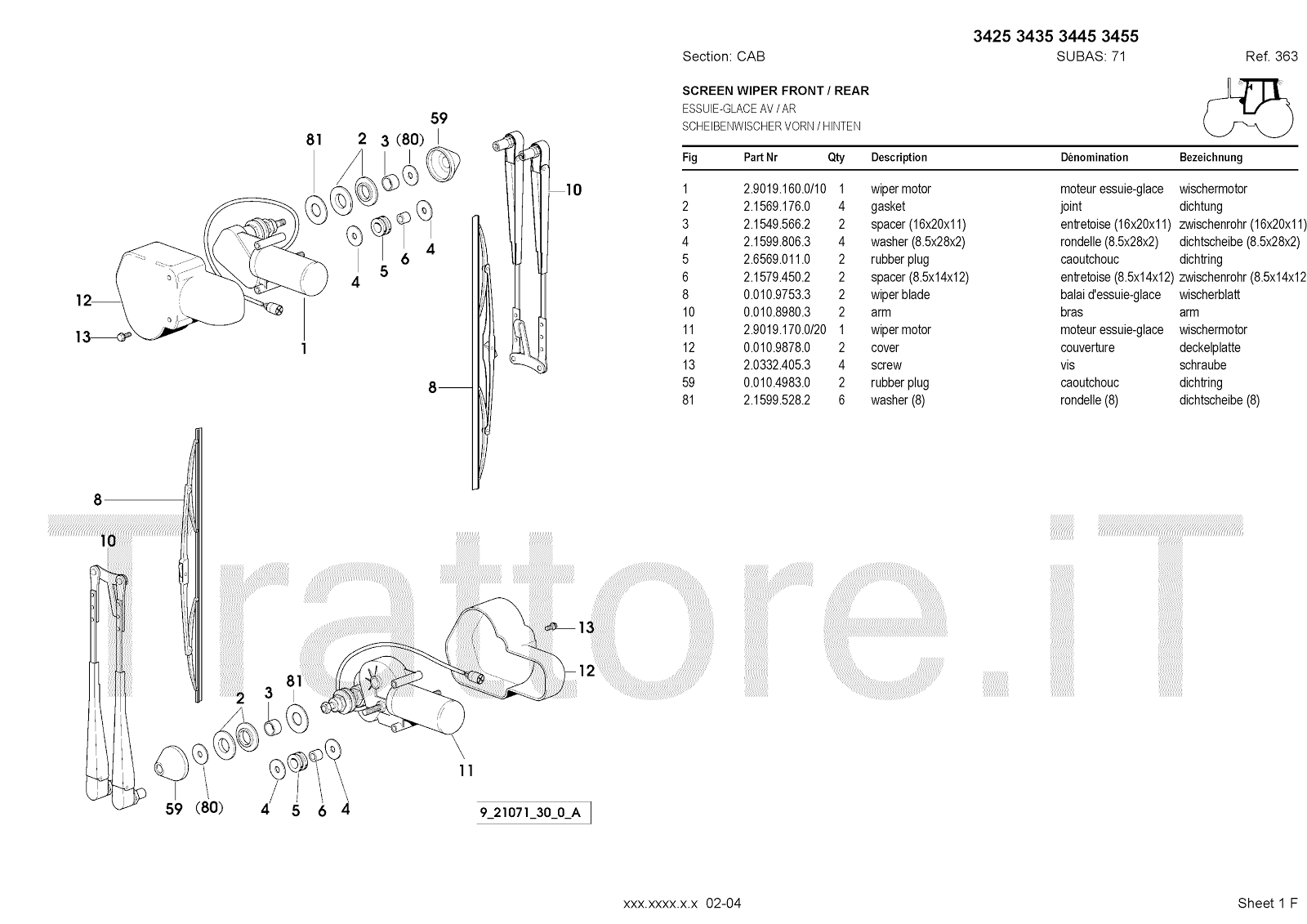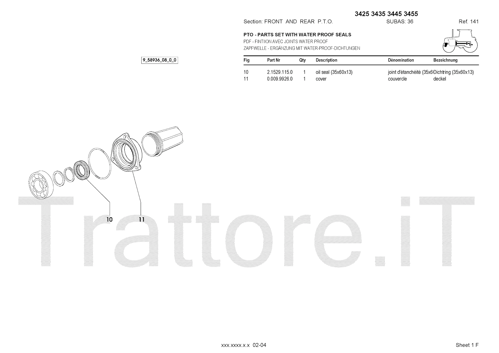 Manuale (esploso meccanico) per trattore / trattrice Massey Ferguson 3435GE - GEV