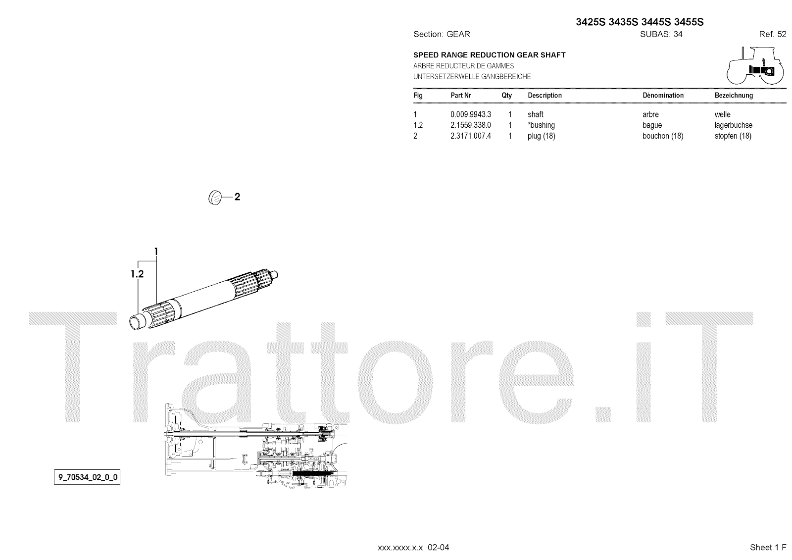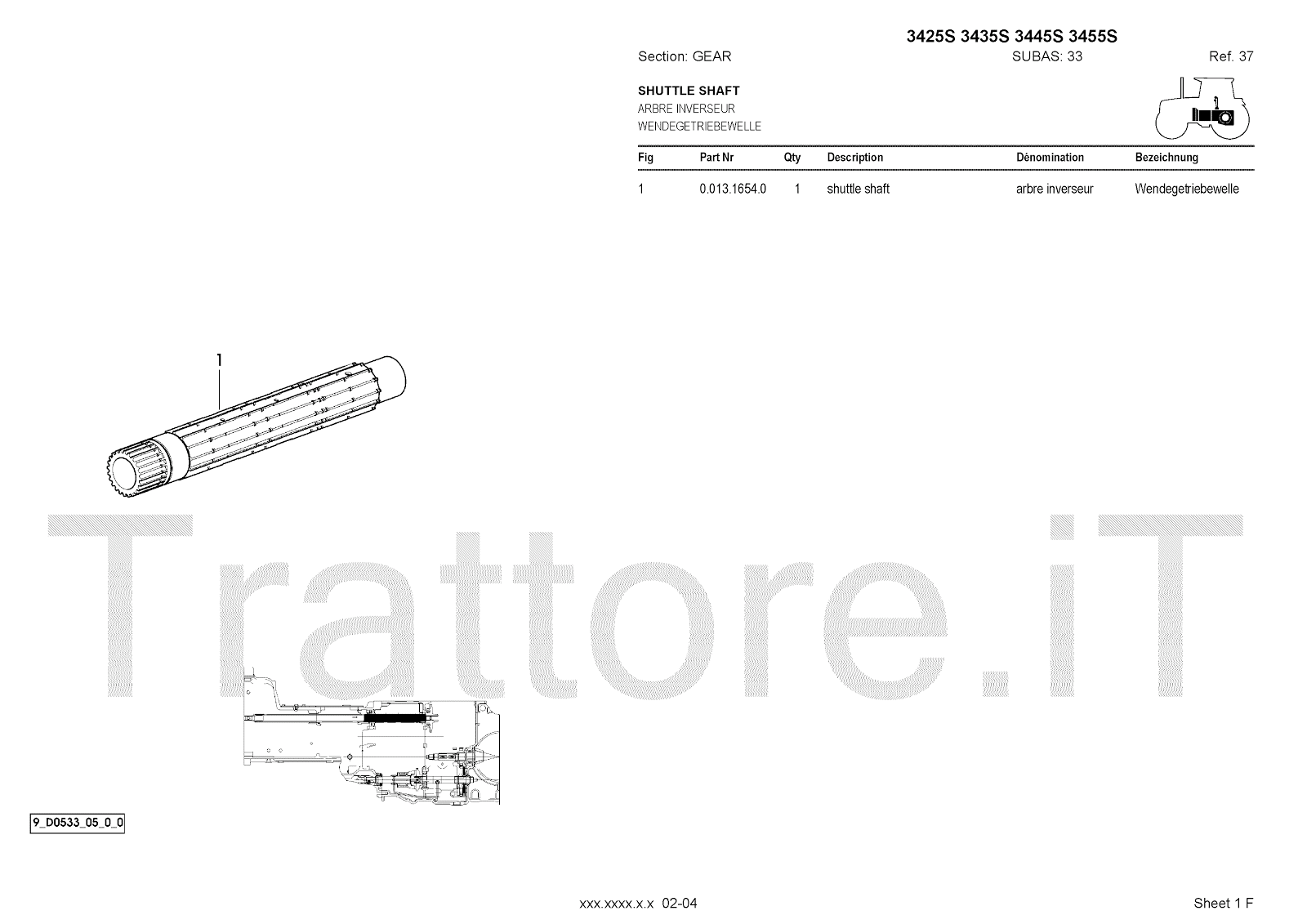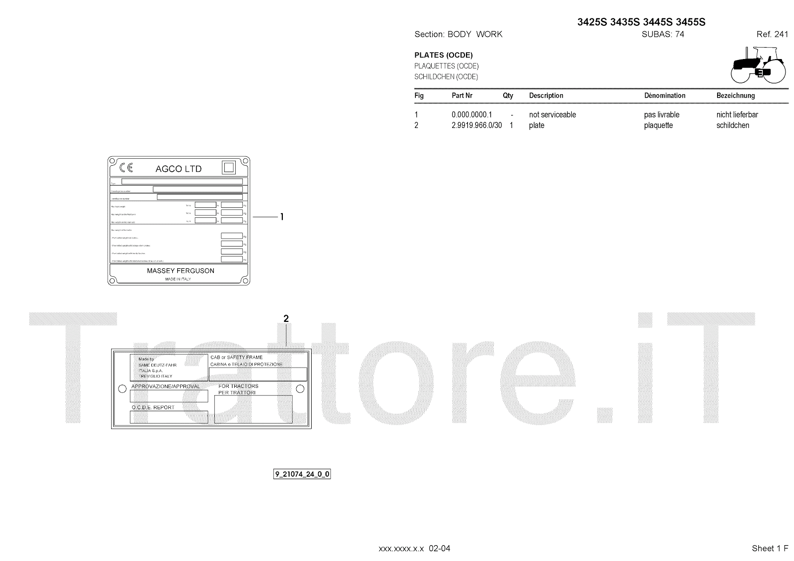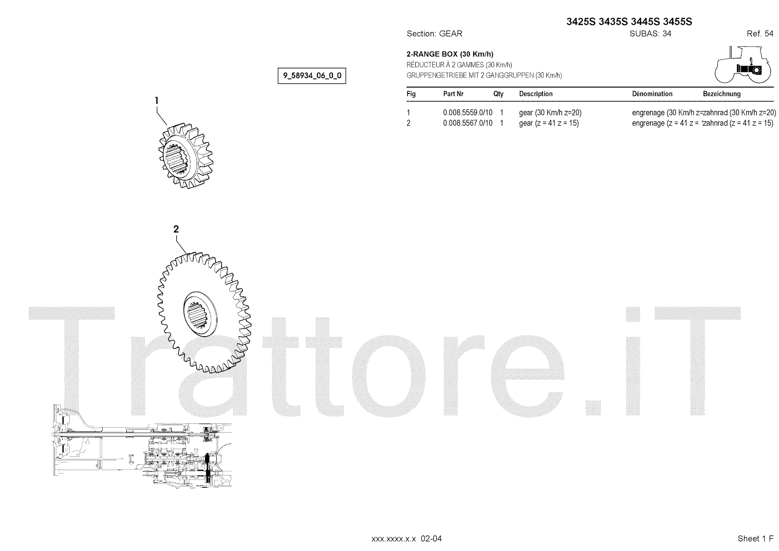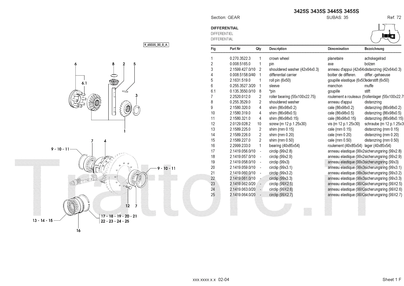 Manuale (esploso meccanico) per trattore / trattrice Massey Ferguson 3425S