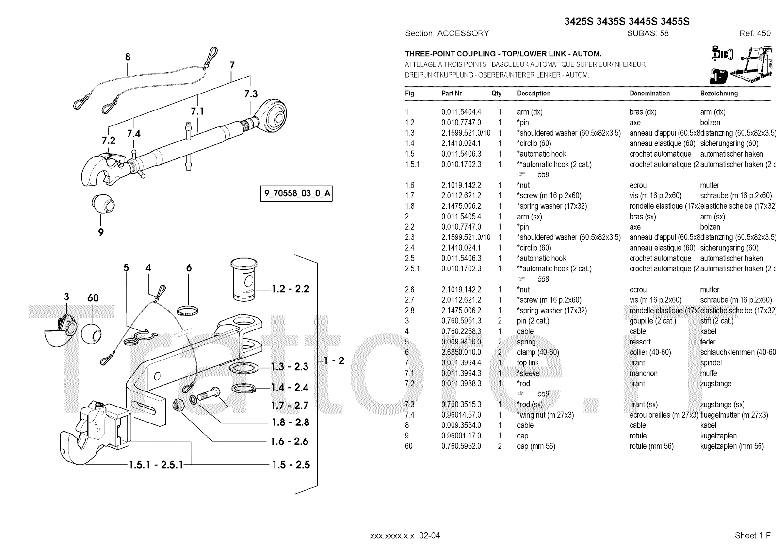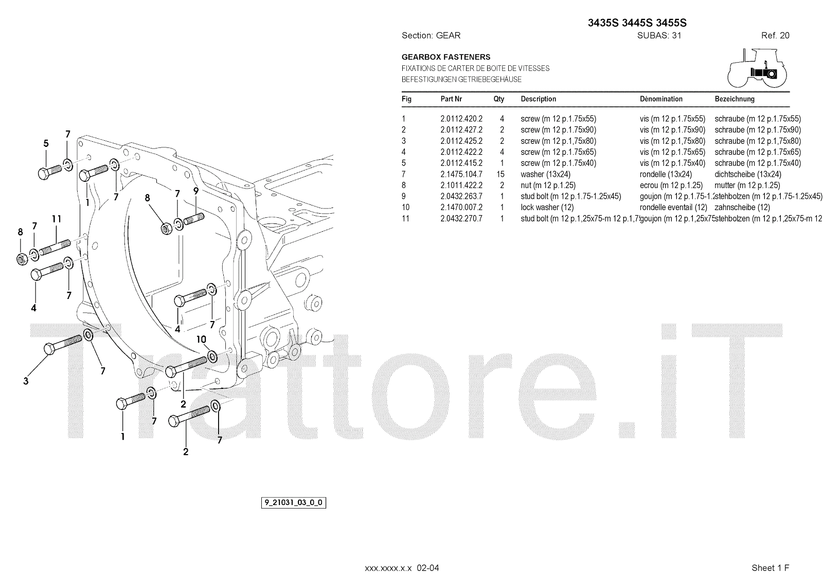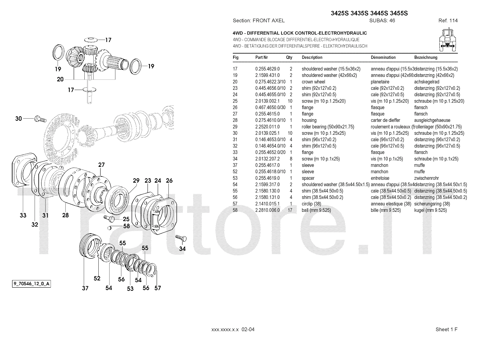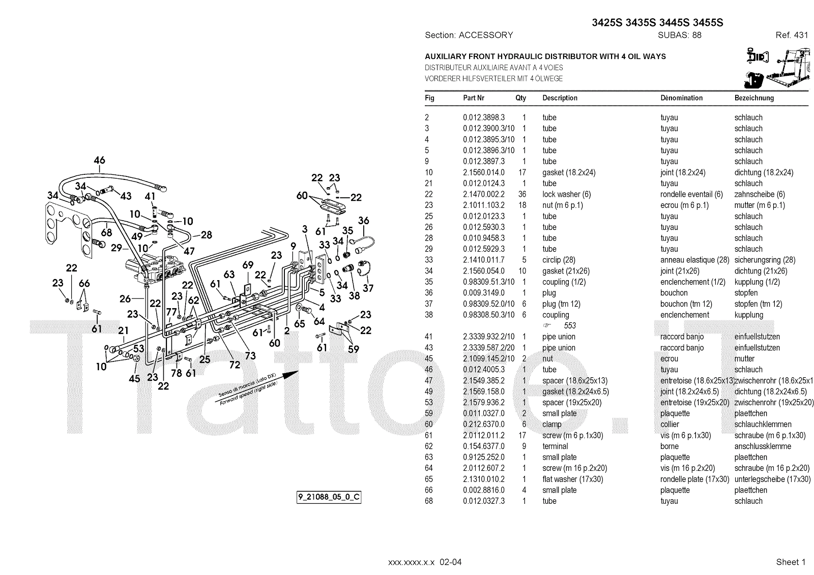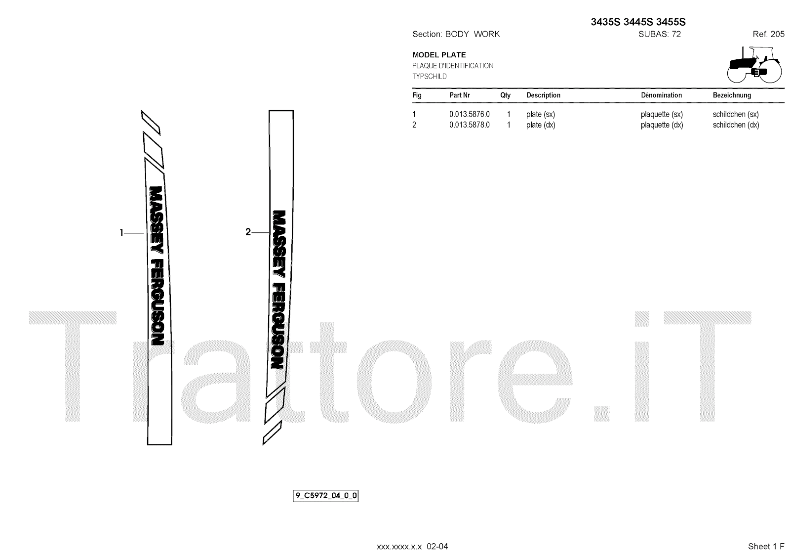 Manuale (esploso meccanico) per trattore / trattrice Massey Ferguson 3425S