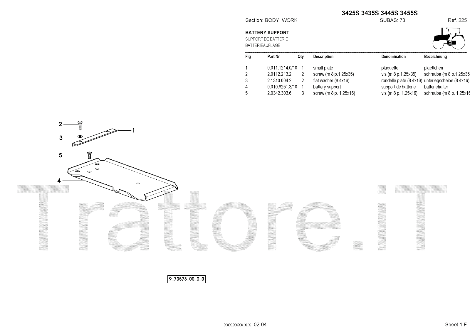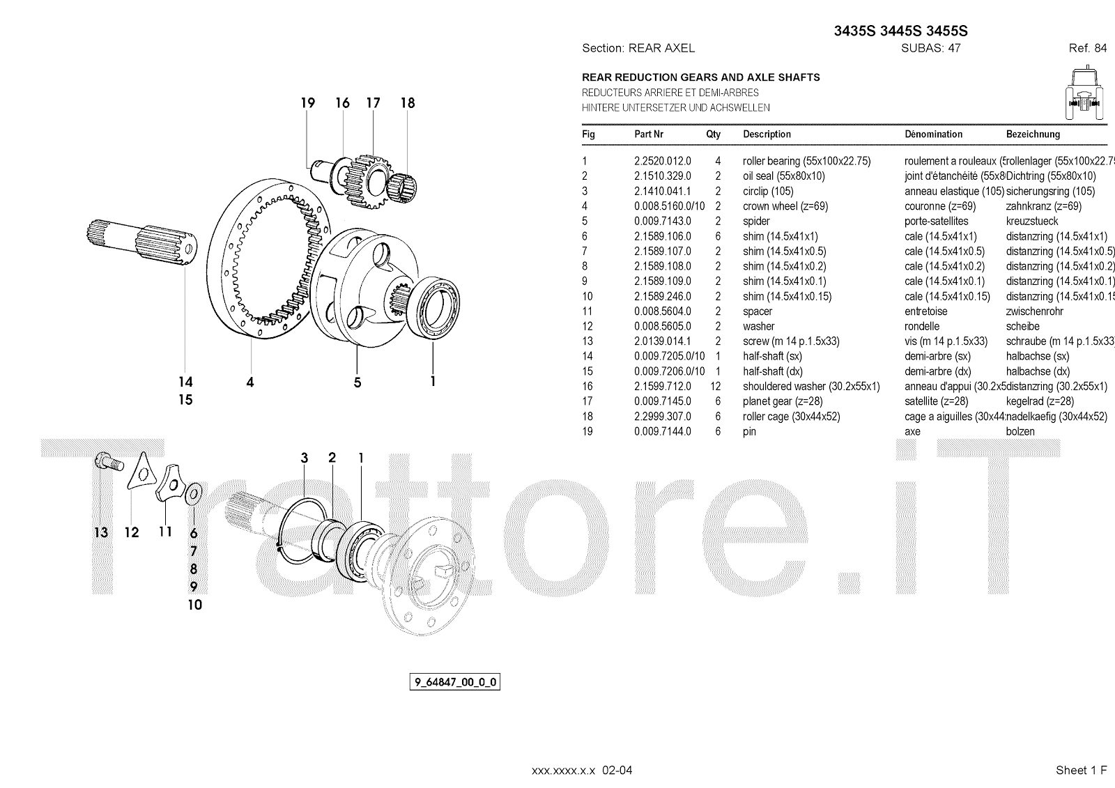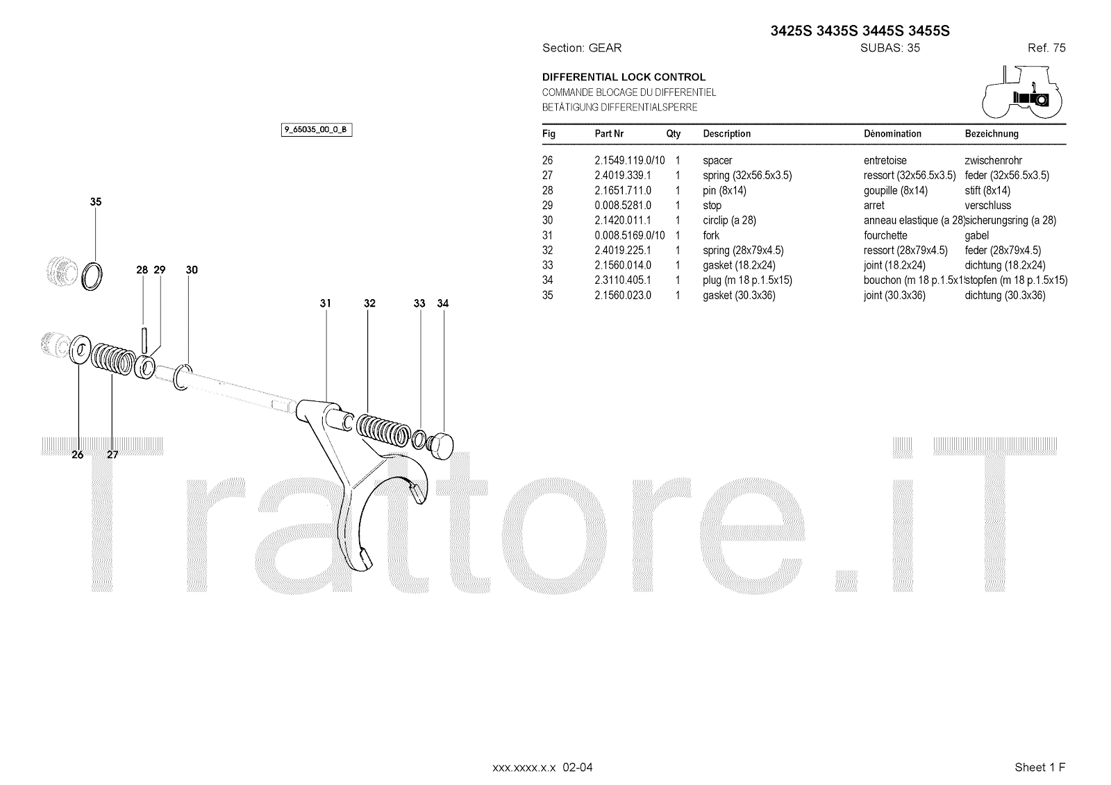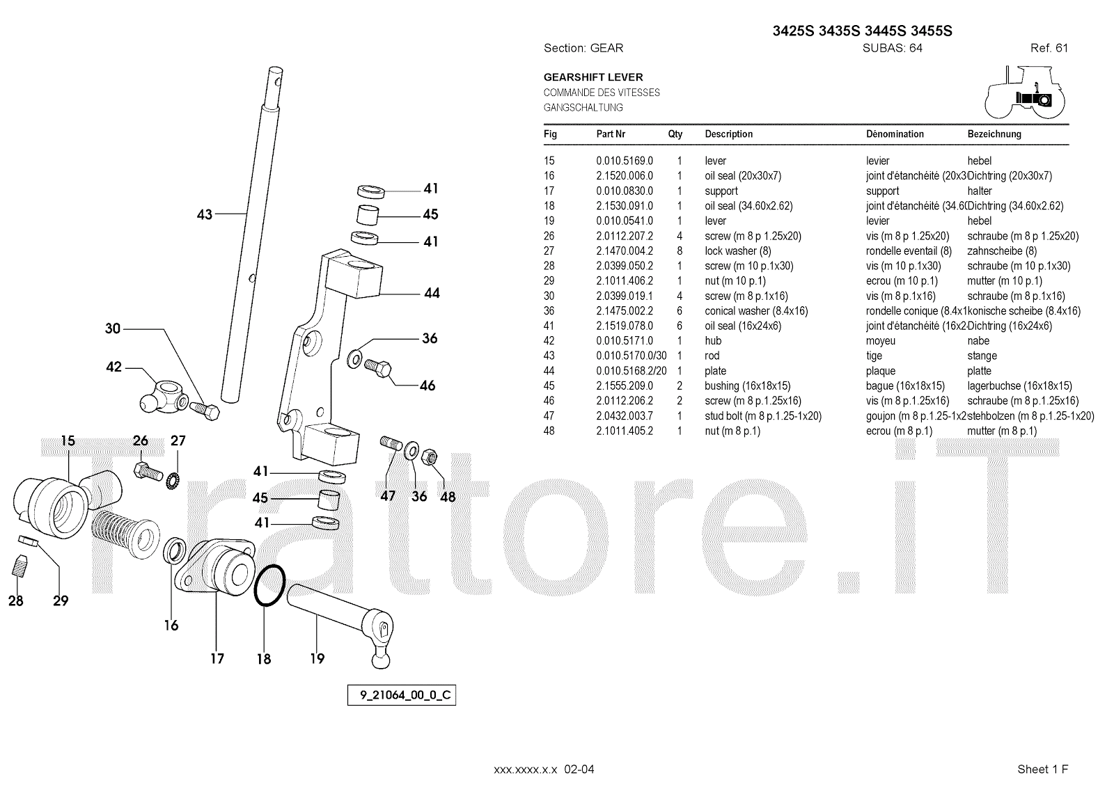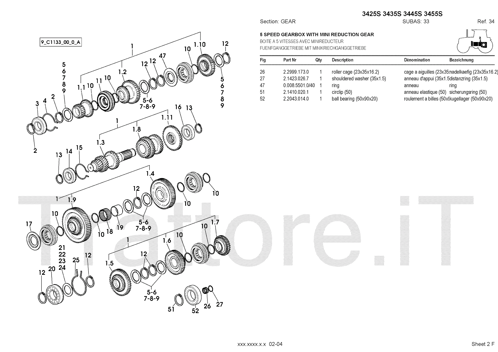 Manuale (esploso meccanico) per trattore / trattrice Massey Ferguson 3425S