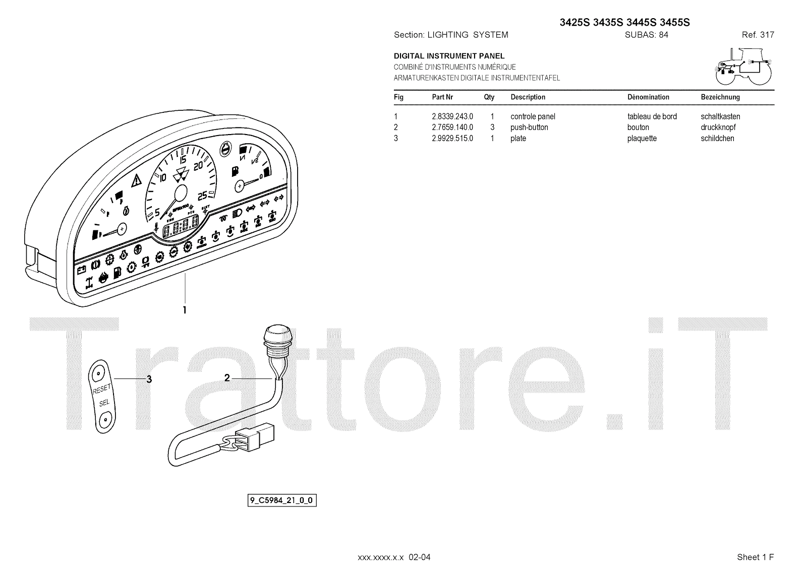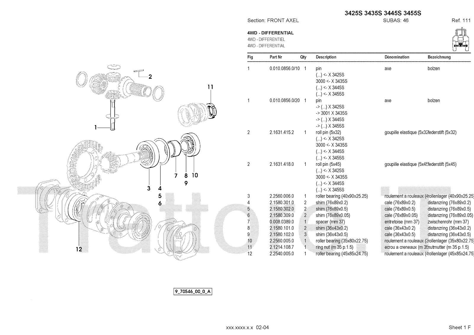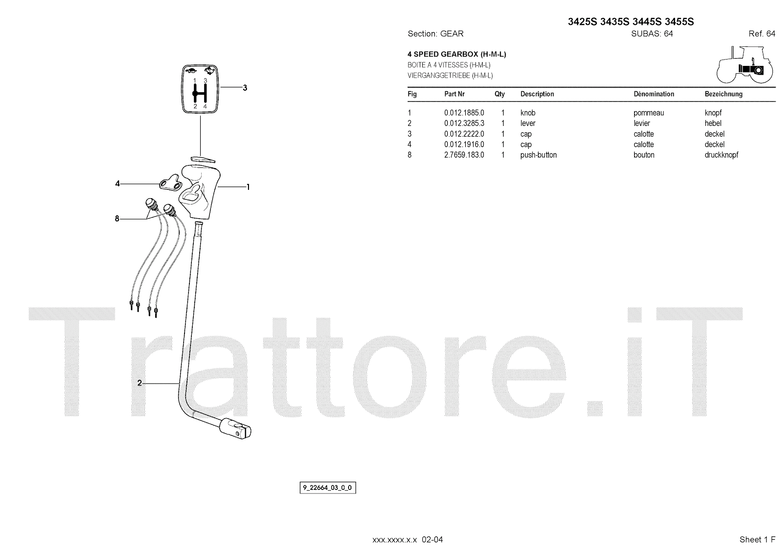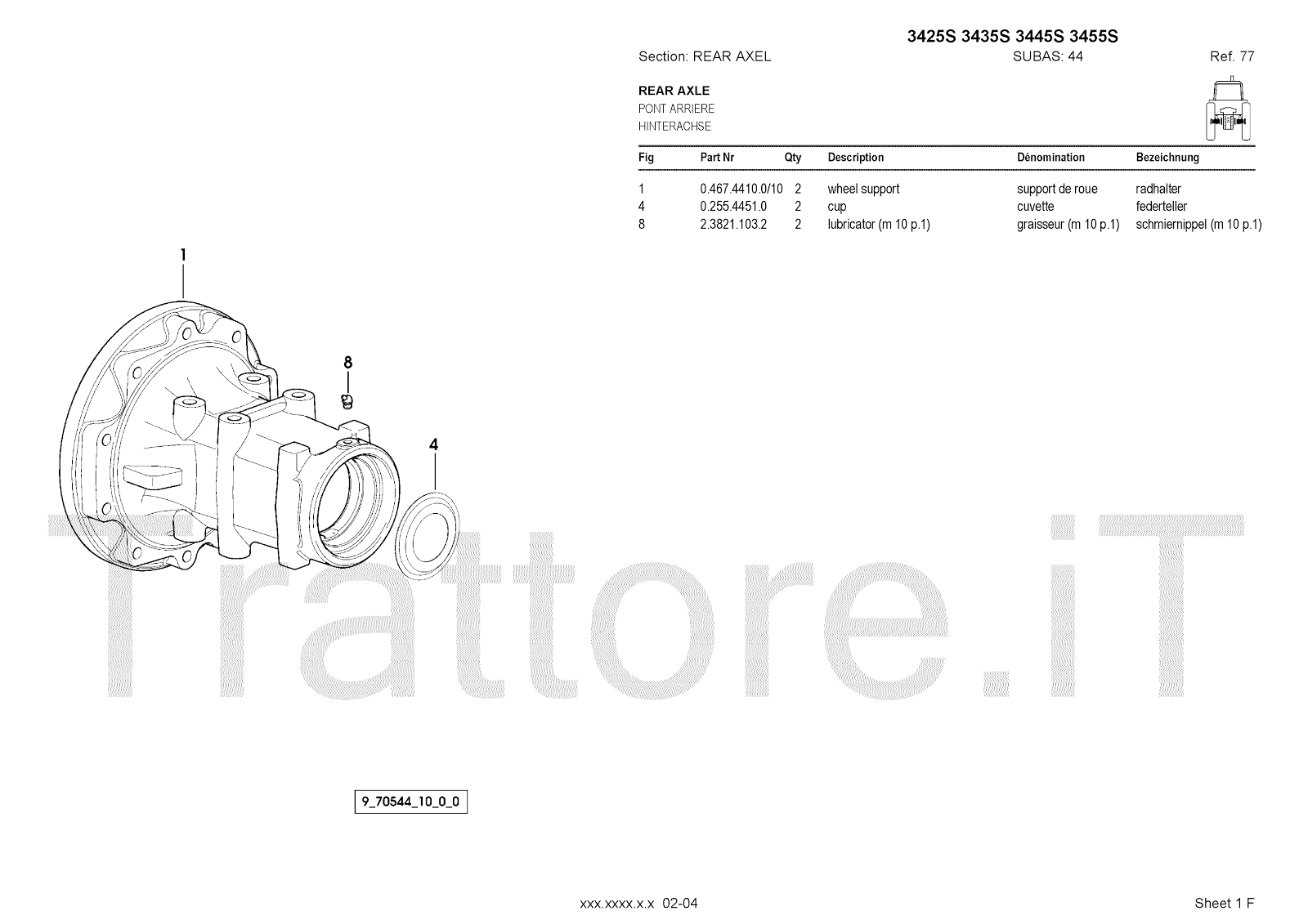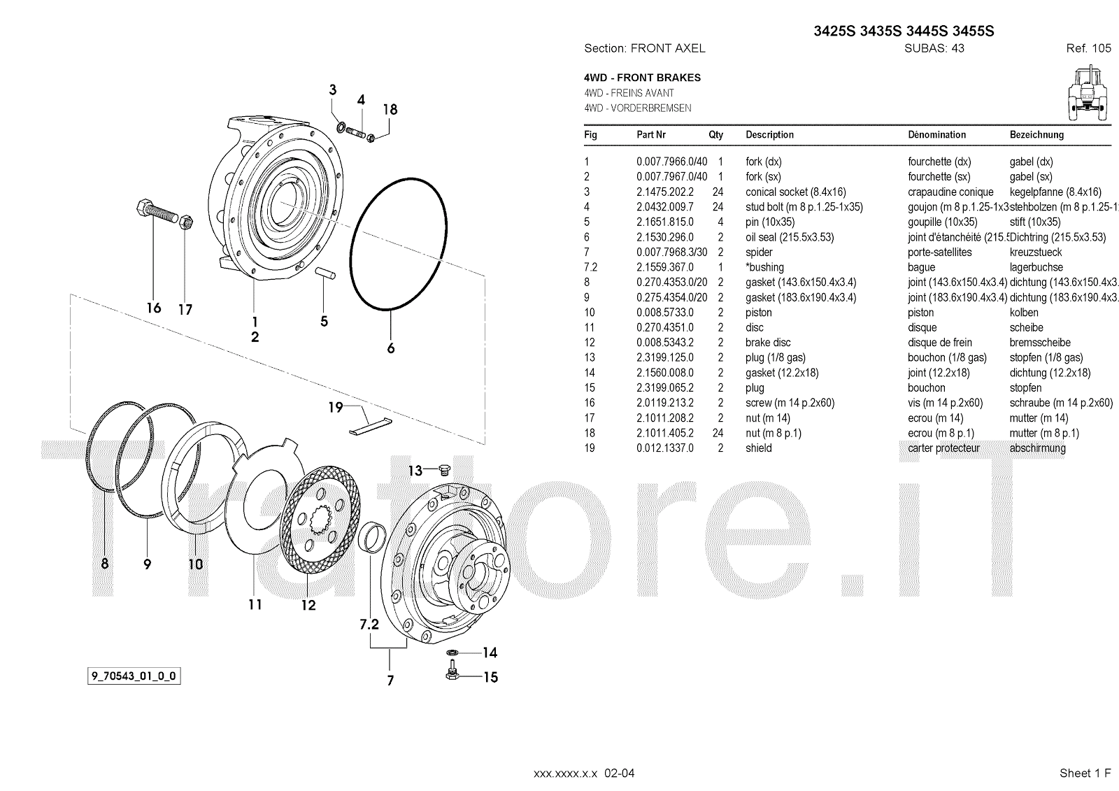 Manuale (esploso meccanico) per trattore / trattrice Massey Ferguson 3425S