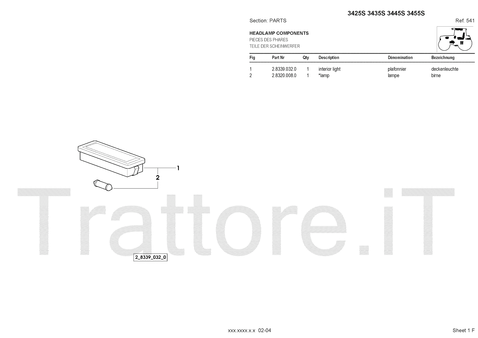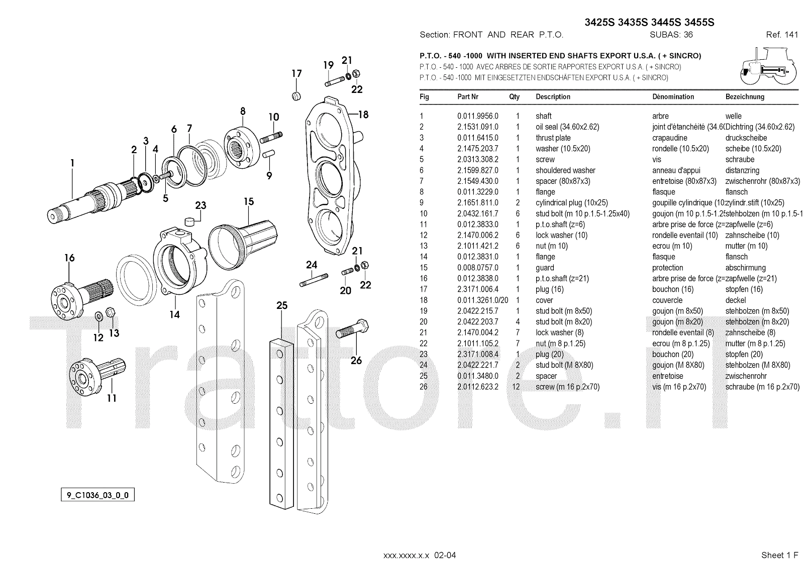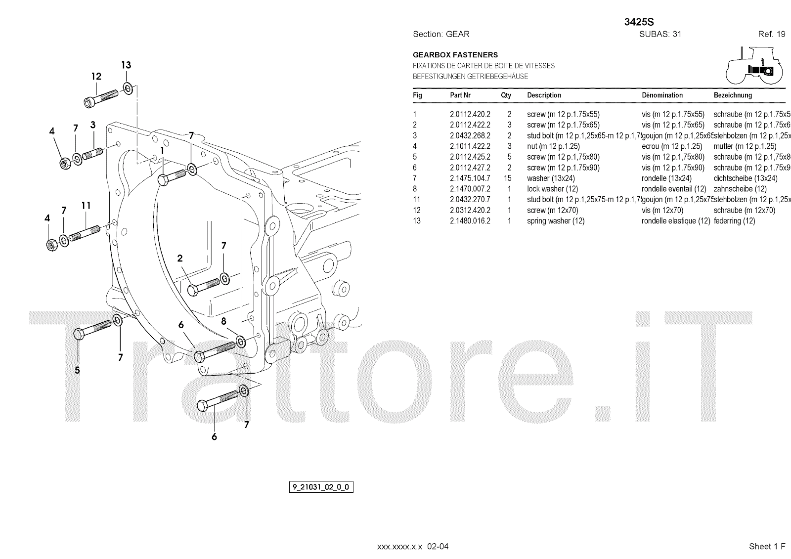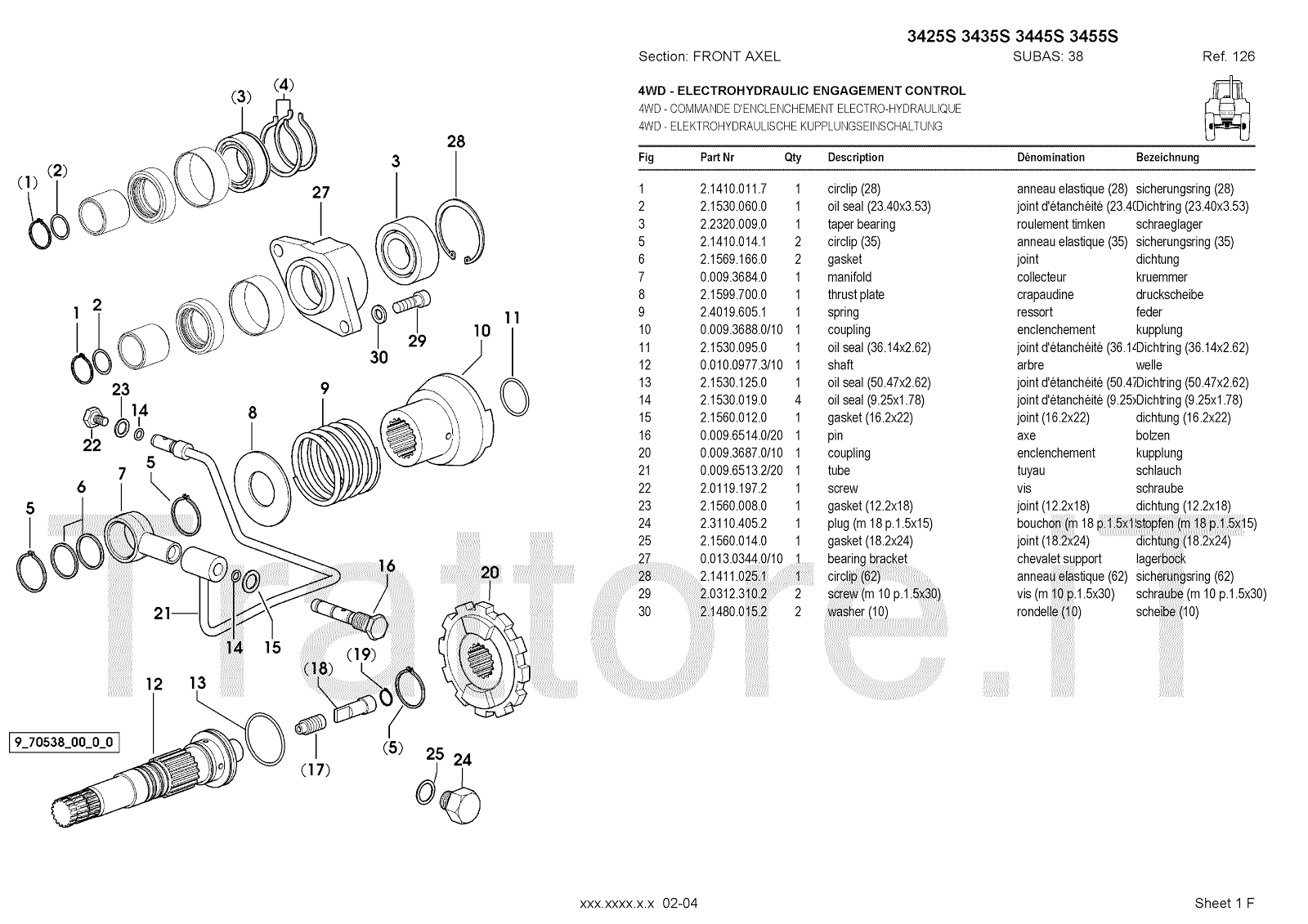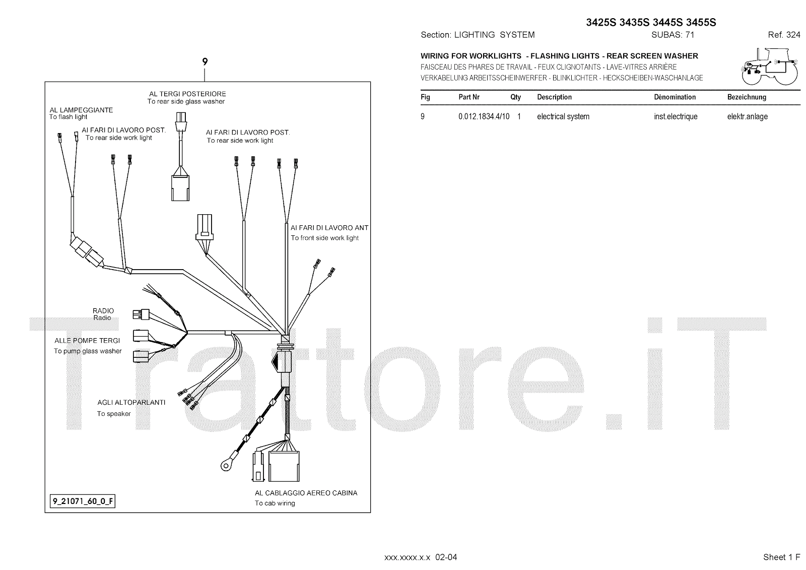 Manuale (esploso meccanico) per trattore / trattrice Massey Ferguson 3425S