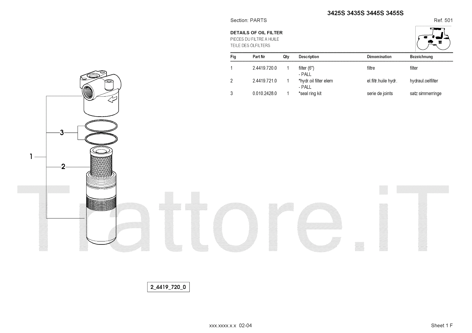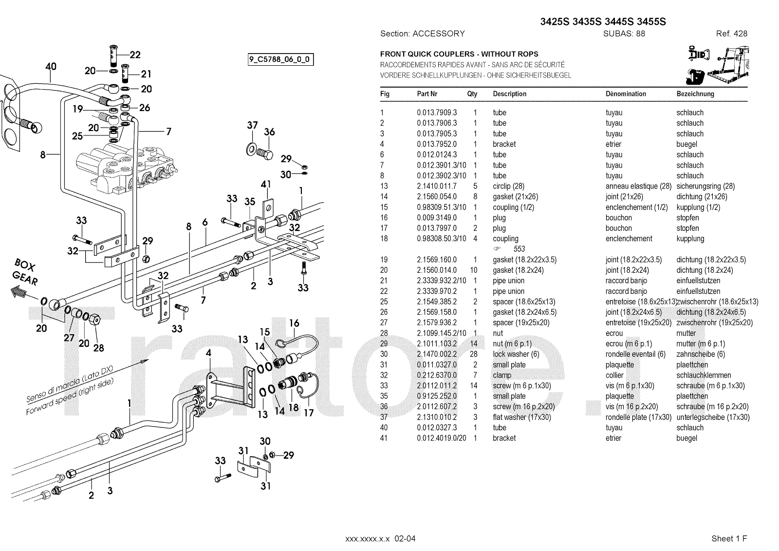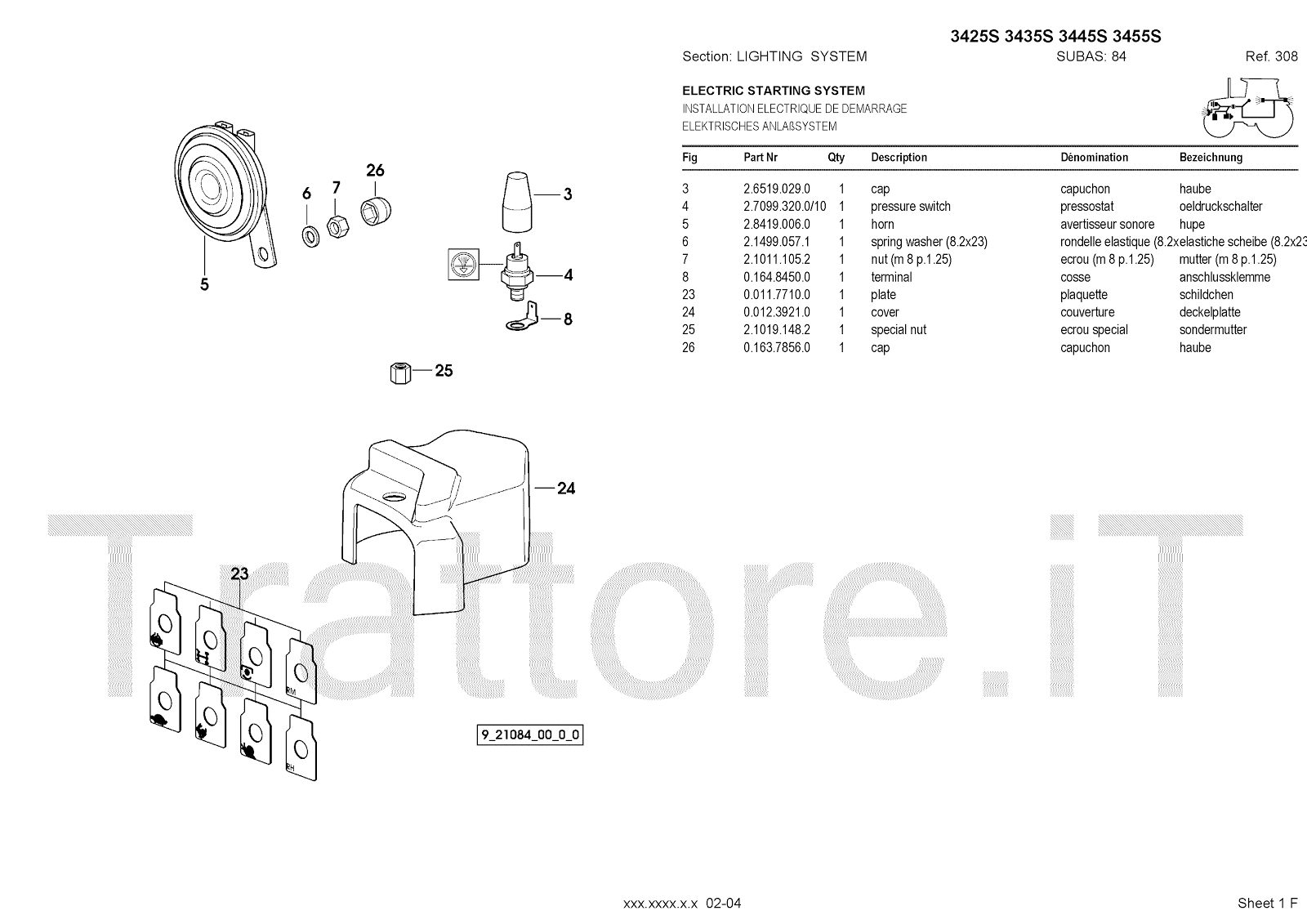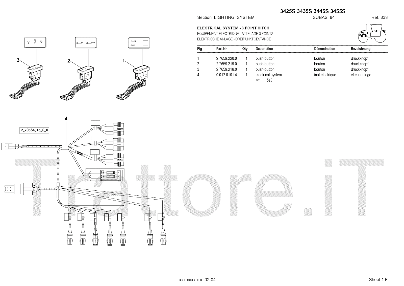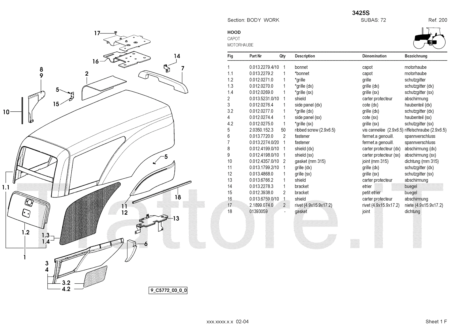 Manuale (esploso meccanico) per trattore / trattrice Massey Ferguson 3425S