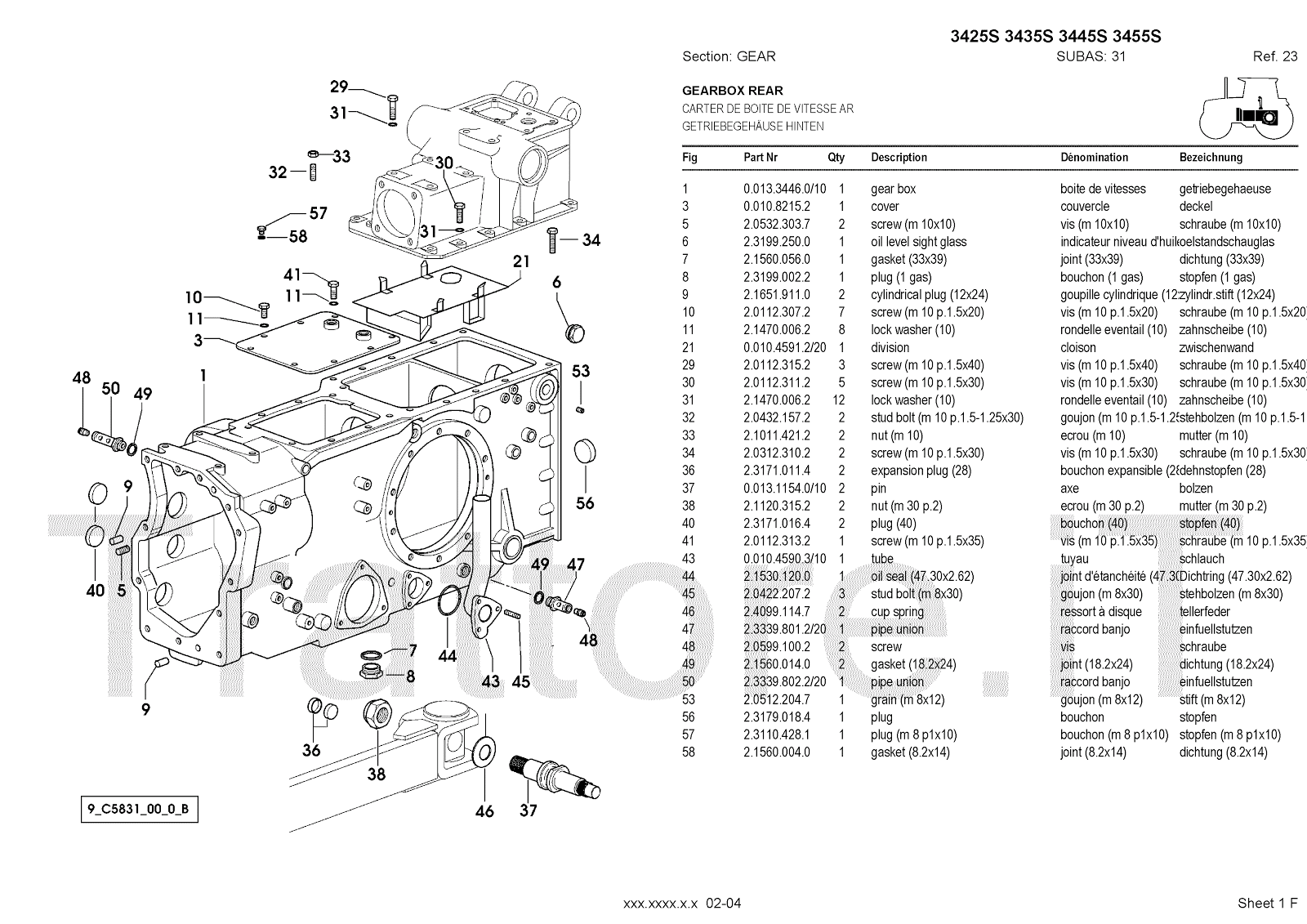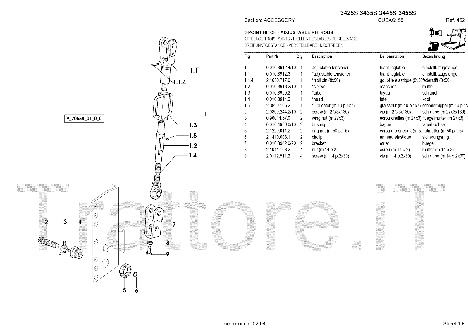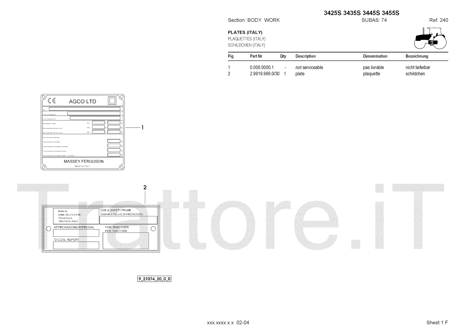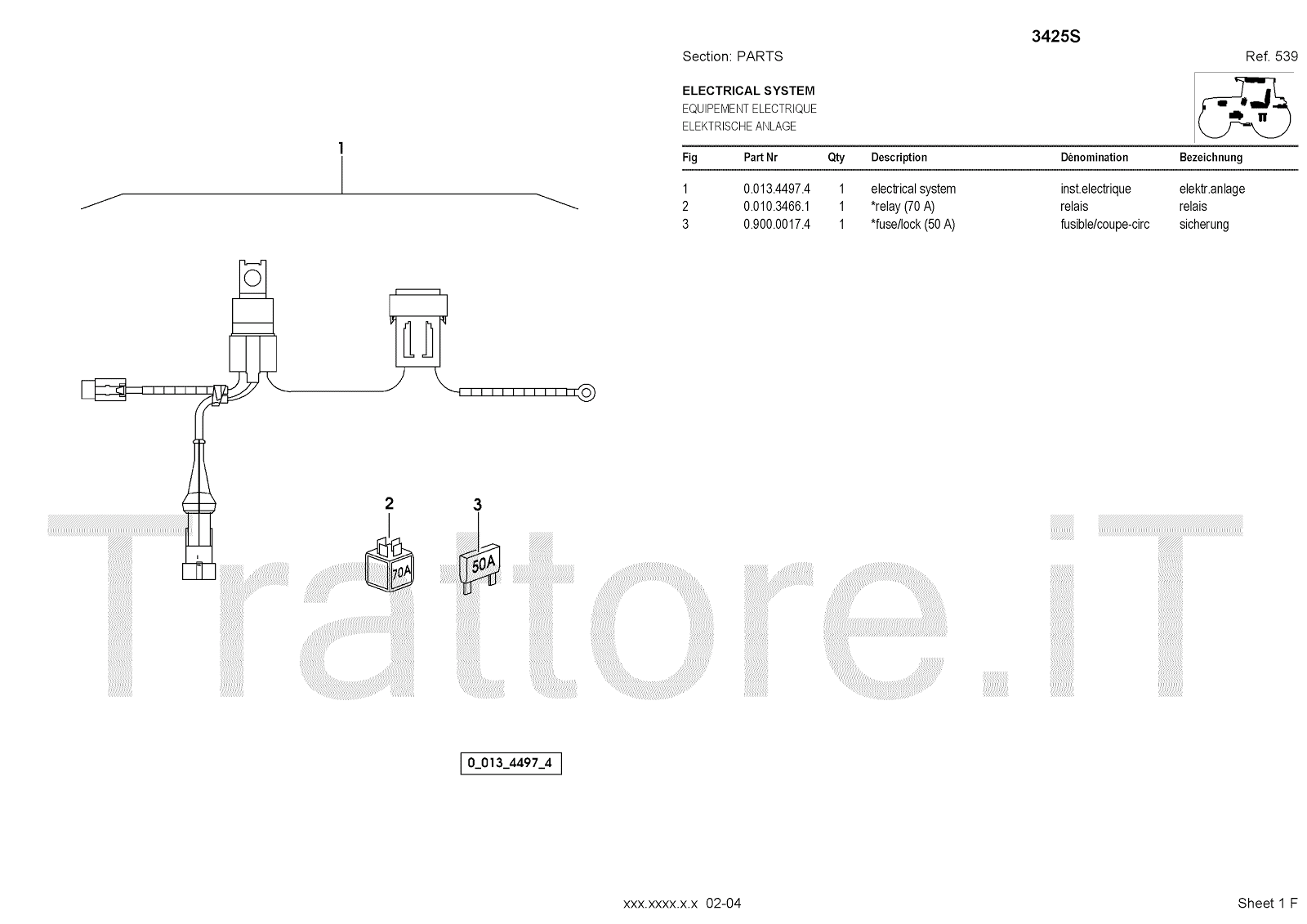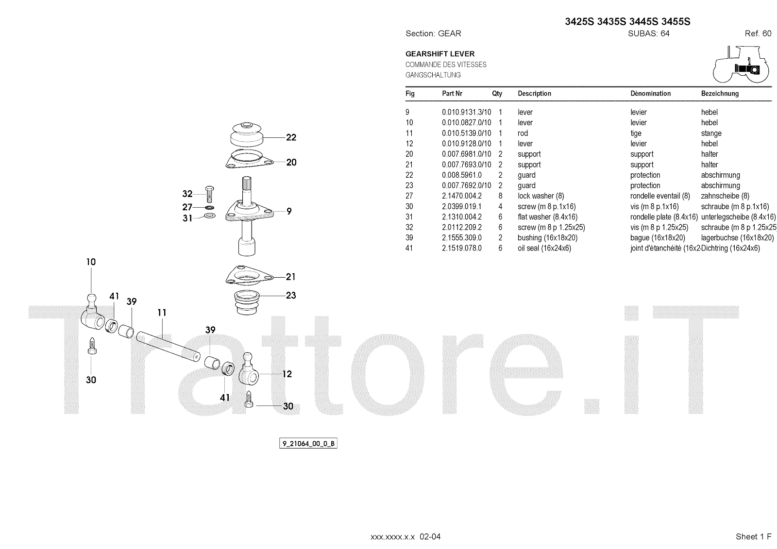 Manuale (esploso meccanico) per trattore / trattrice Massey Ferguson 3425S