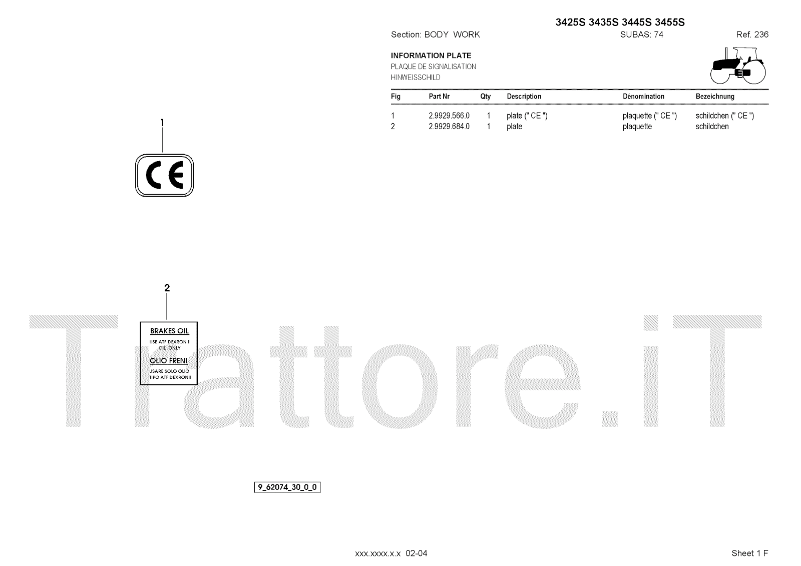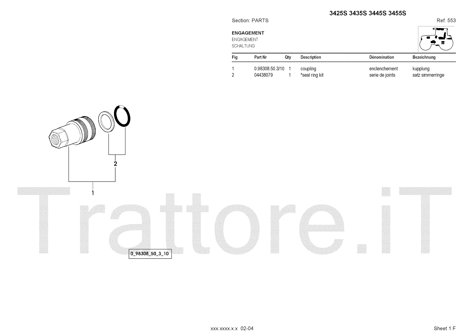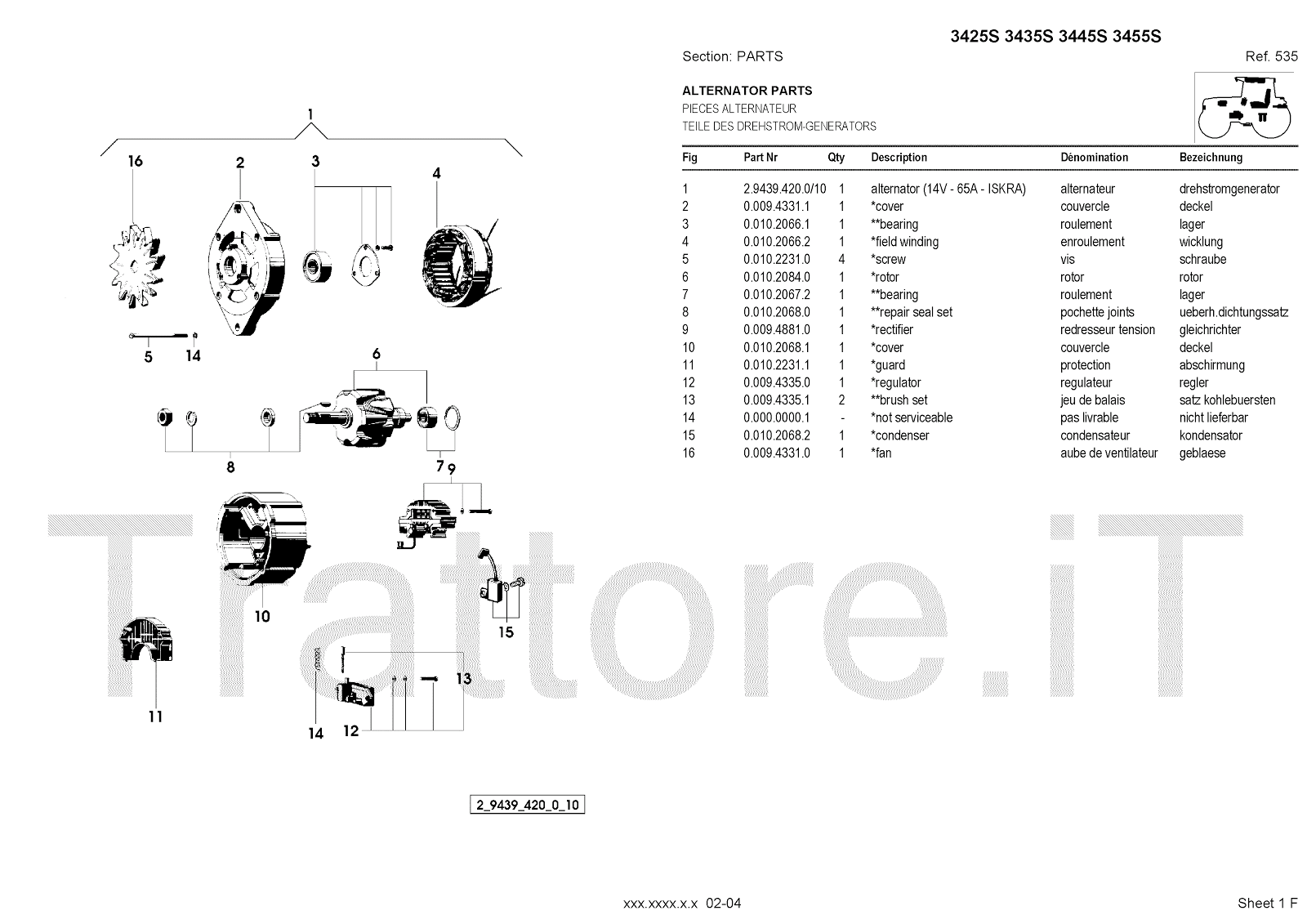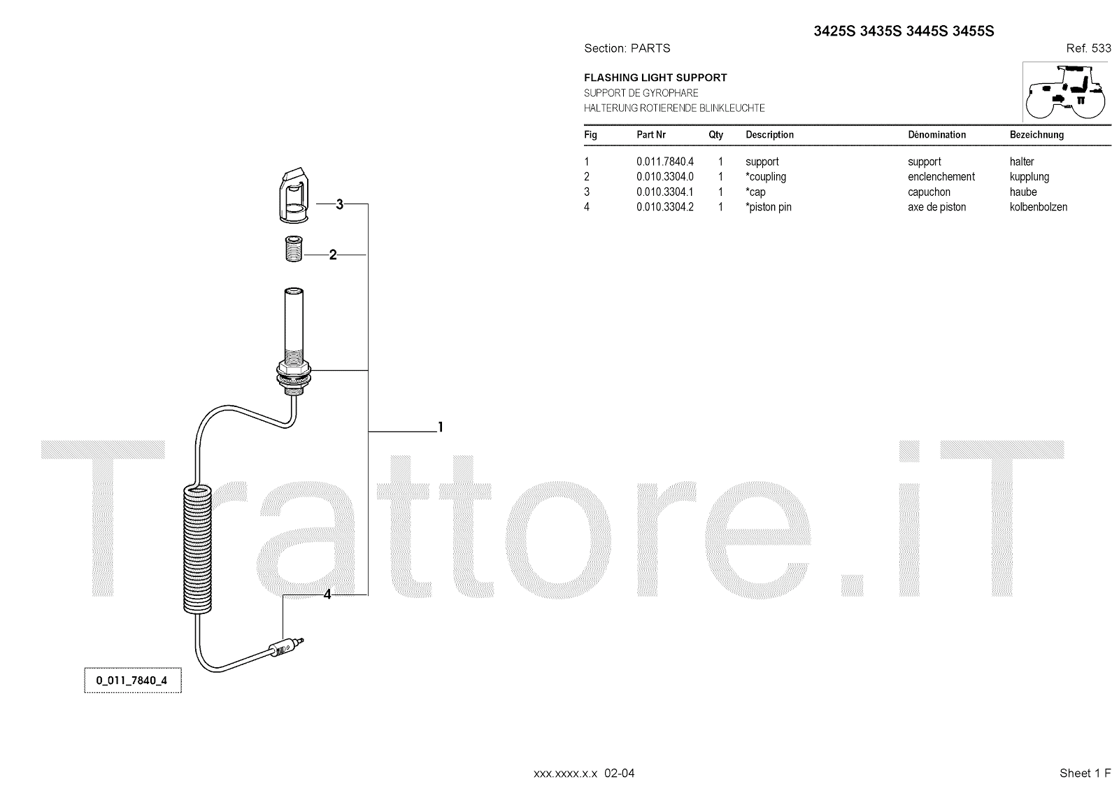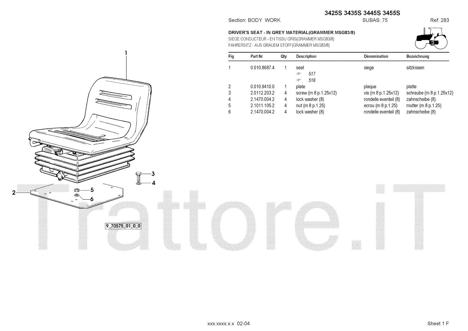 Manuale (esploso meccanico) per trattore / trattrice Massey Ferguson 3425S