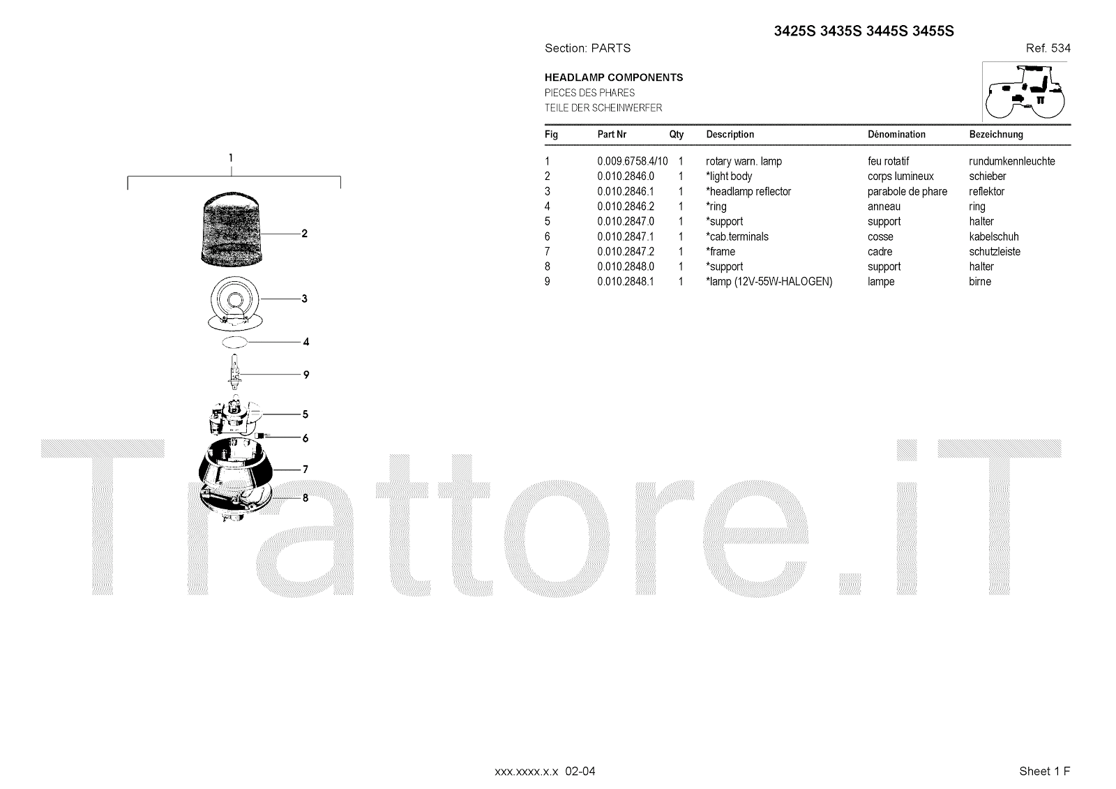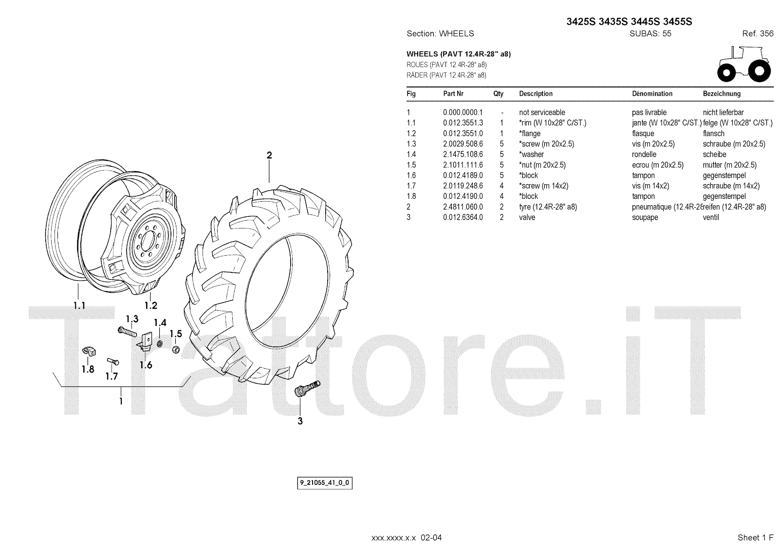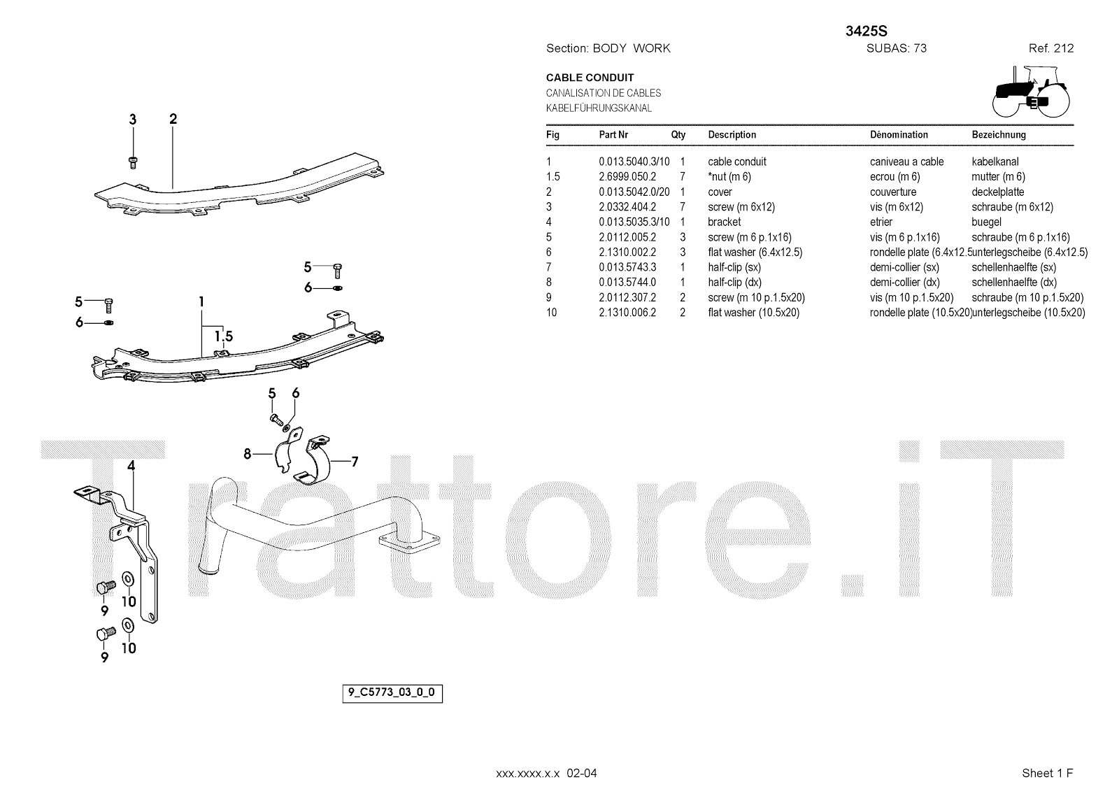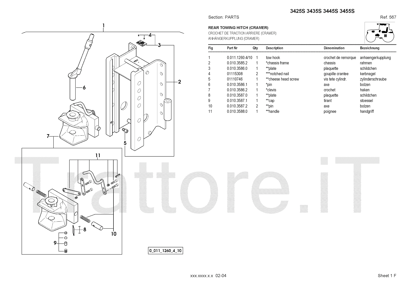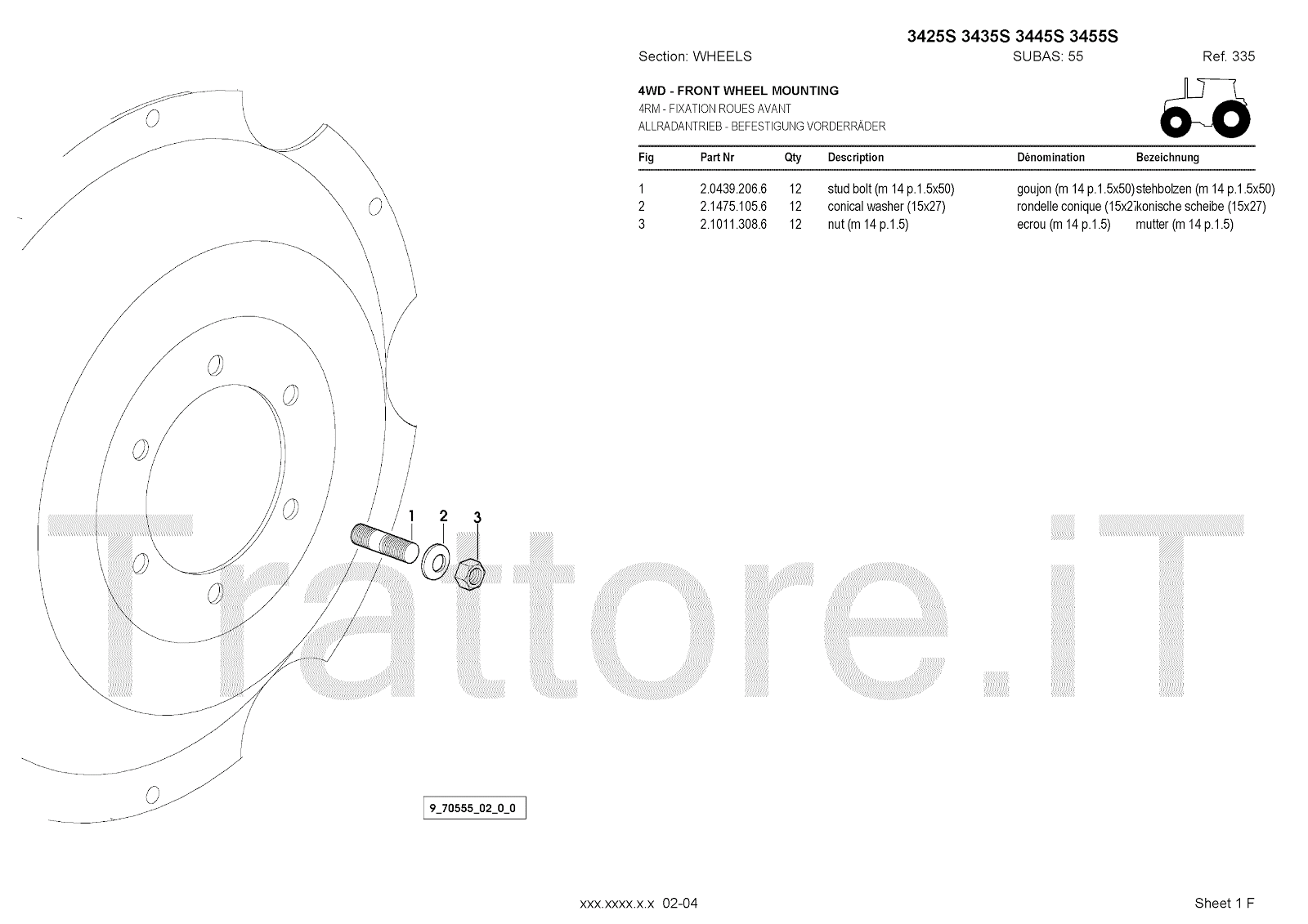 Manuale (esploso meccanico) per trattore / trattrice Massey Ferguson 3425S