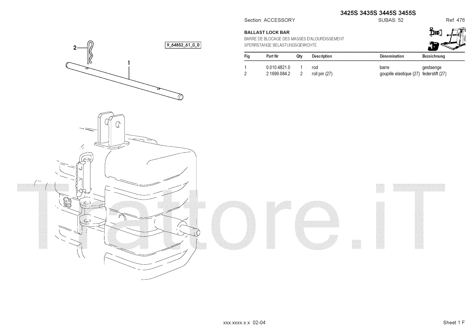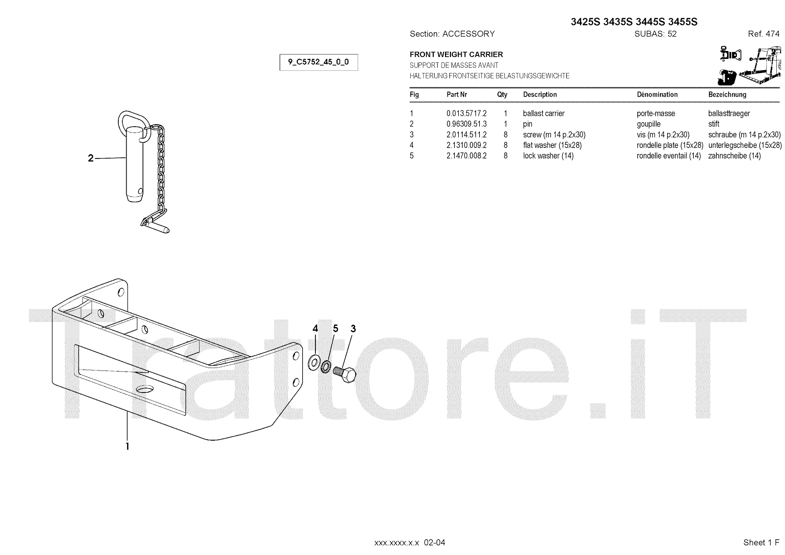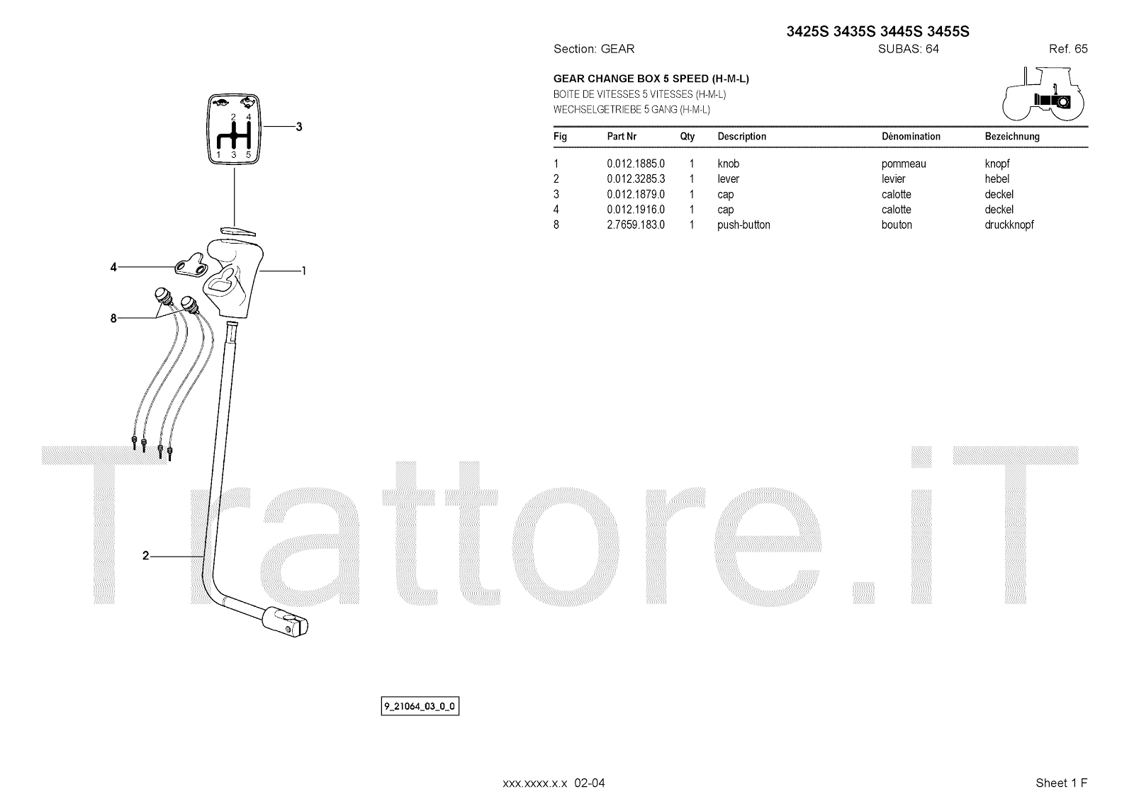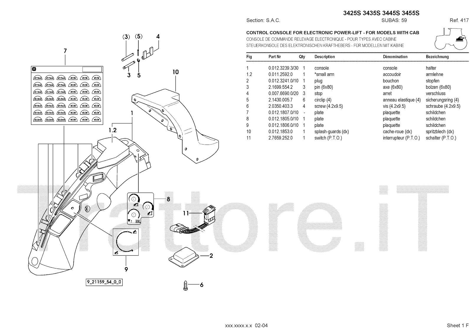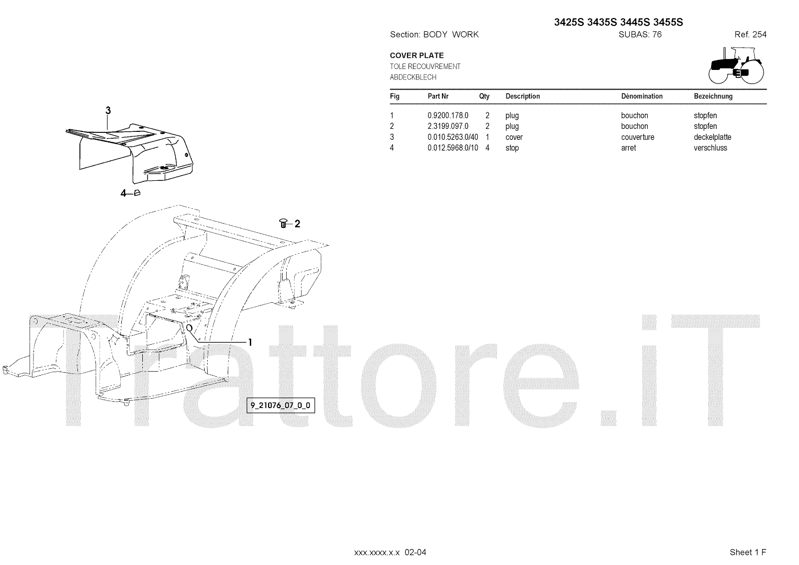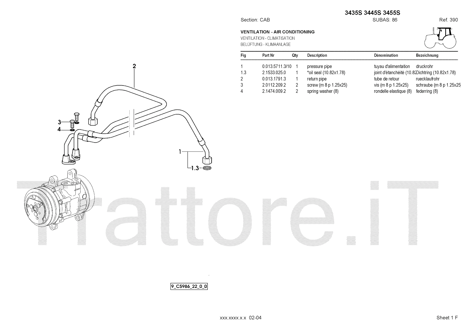 Manuale (esploso meccanico) per trattore / trattrice Massey Ferguson 3425S