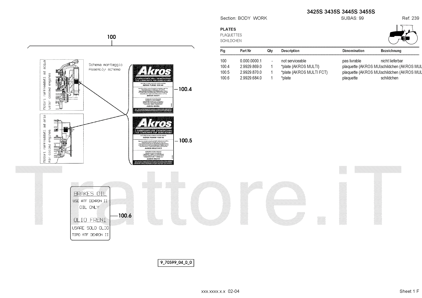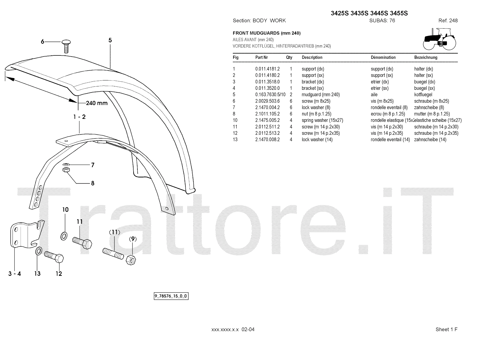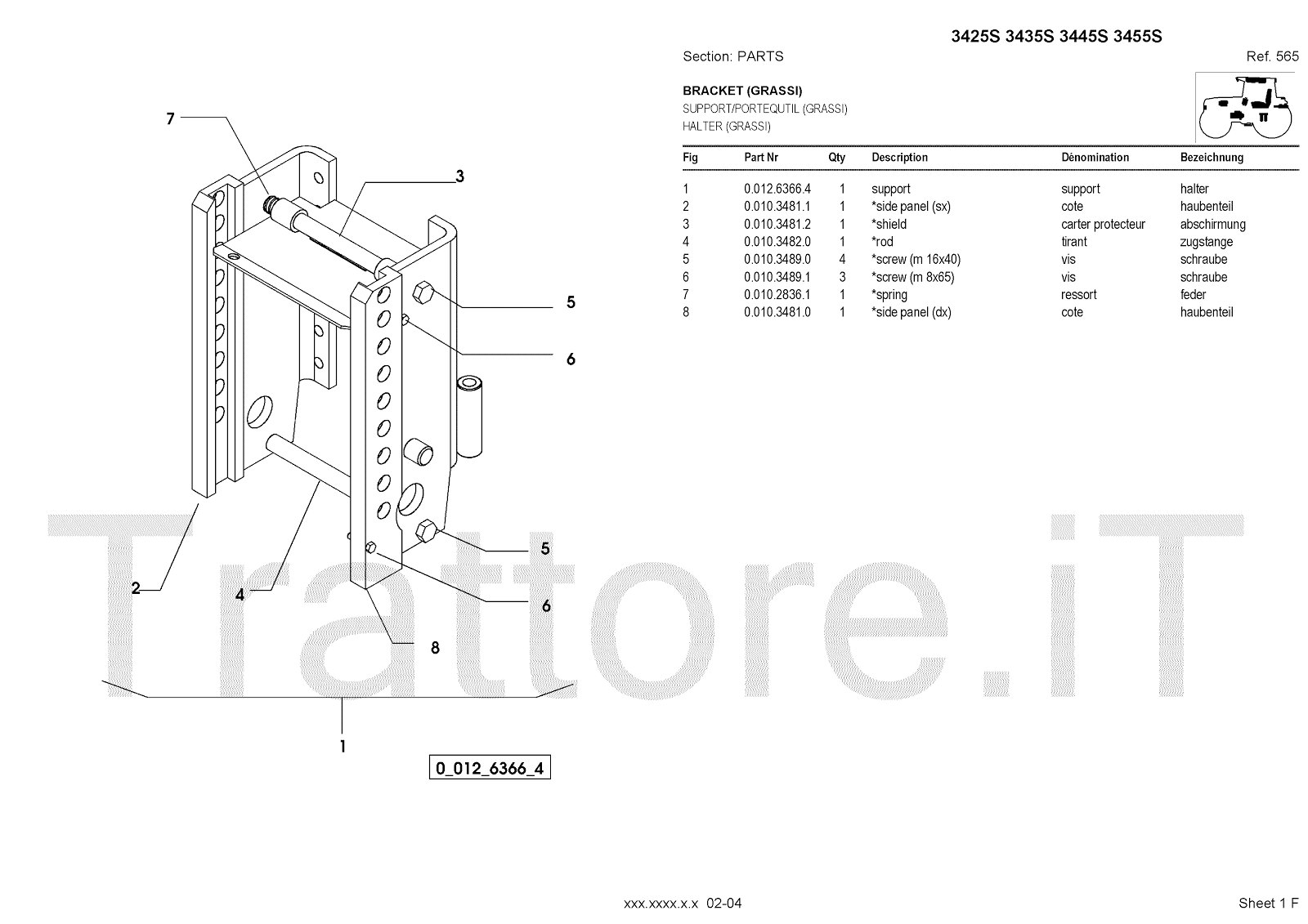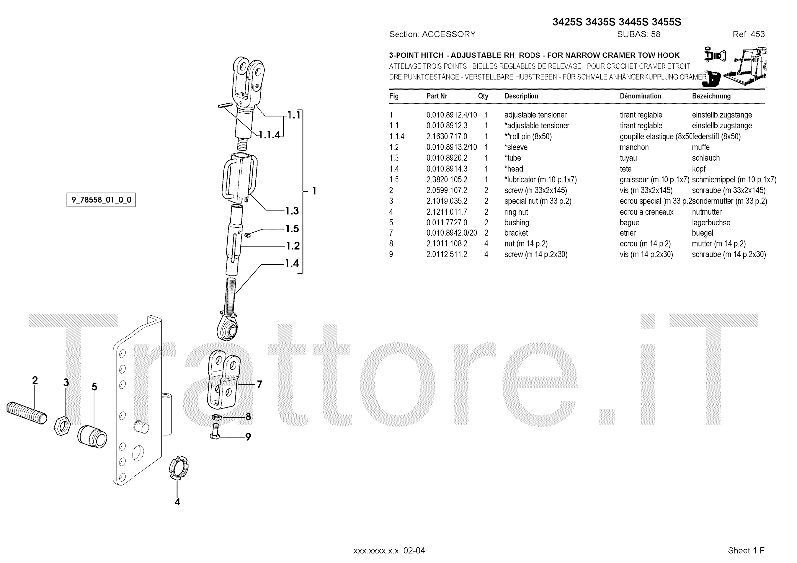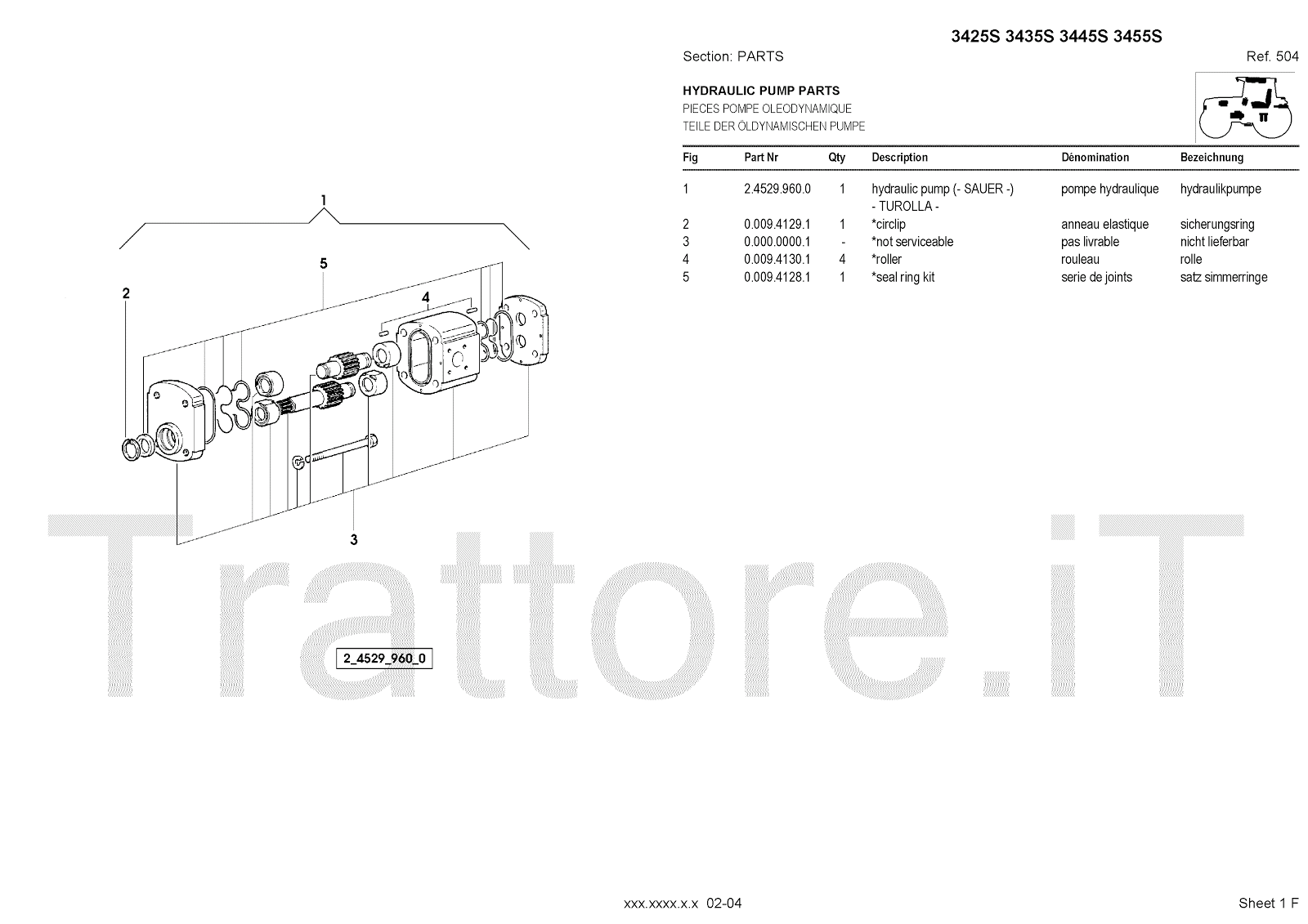 Manuale (esploso meccanico) per trattore / trattrice Massey Ferguson 3425S