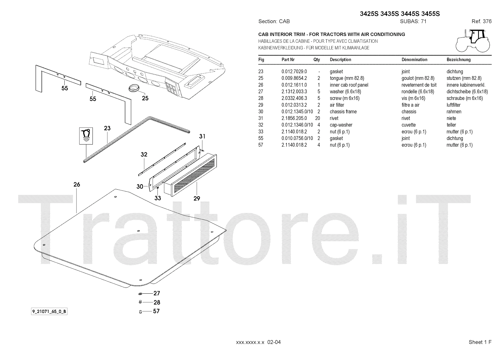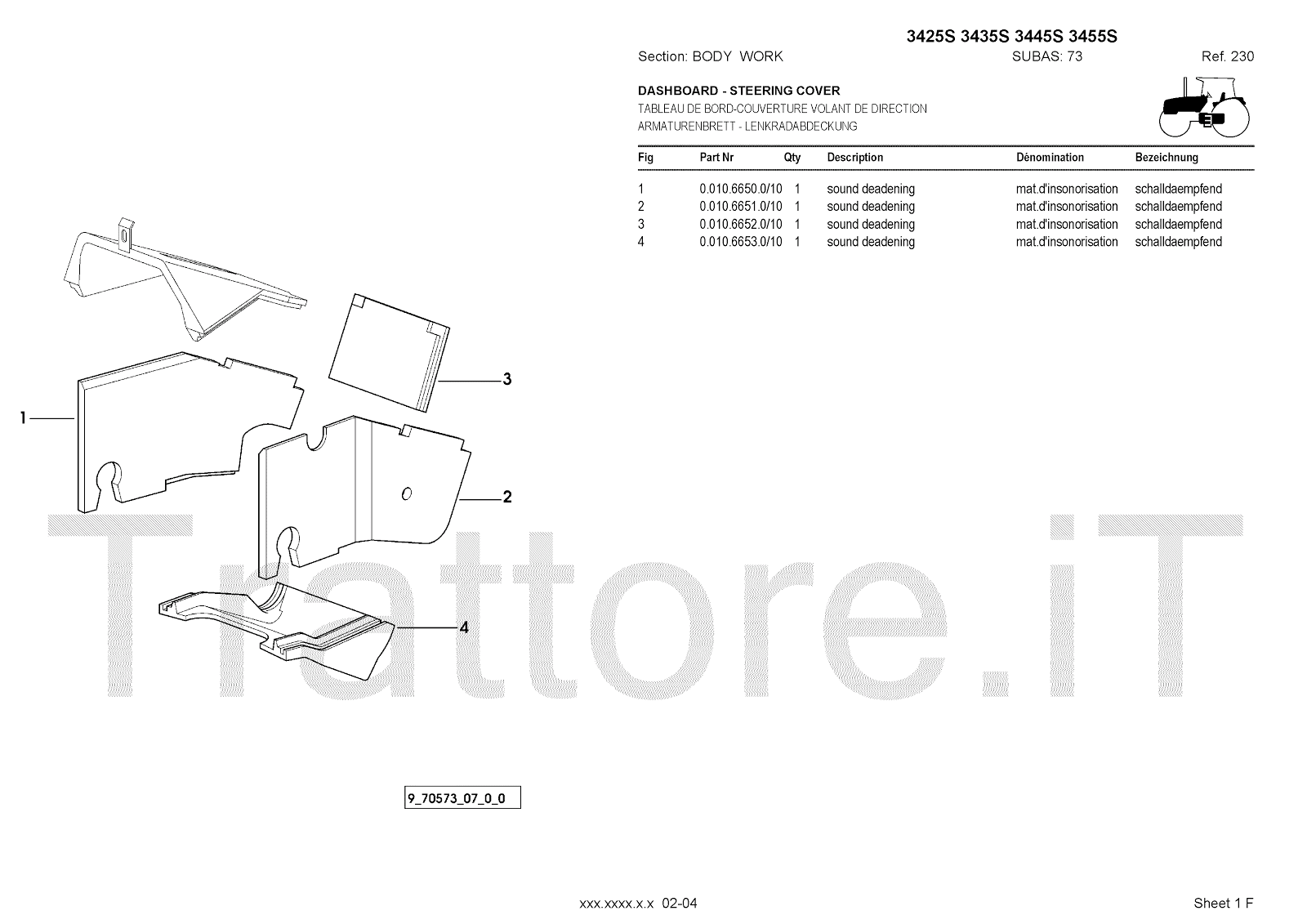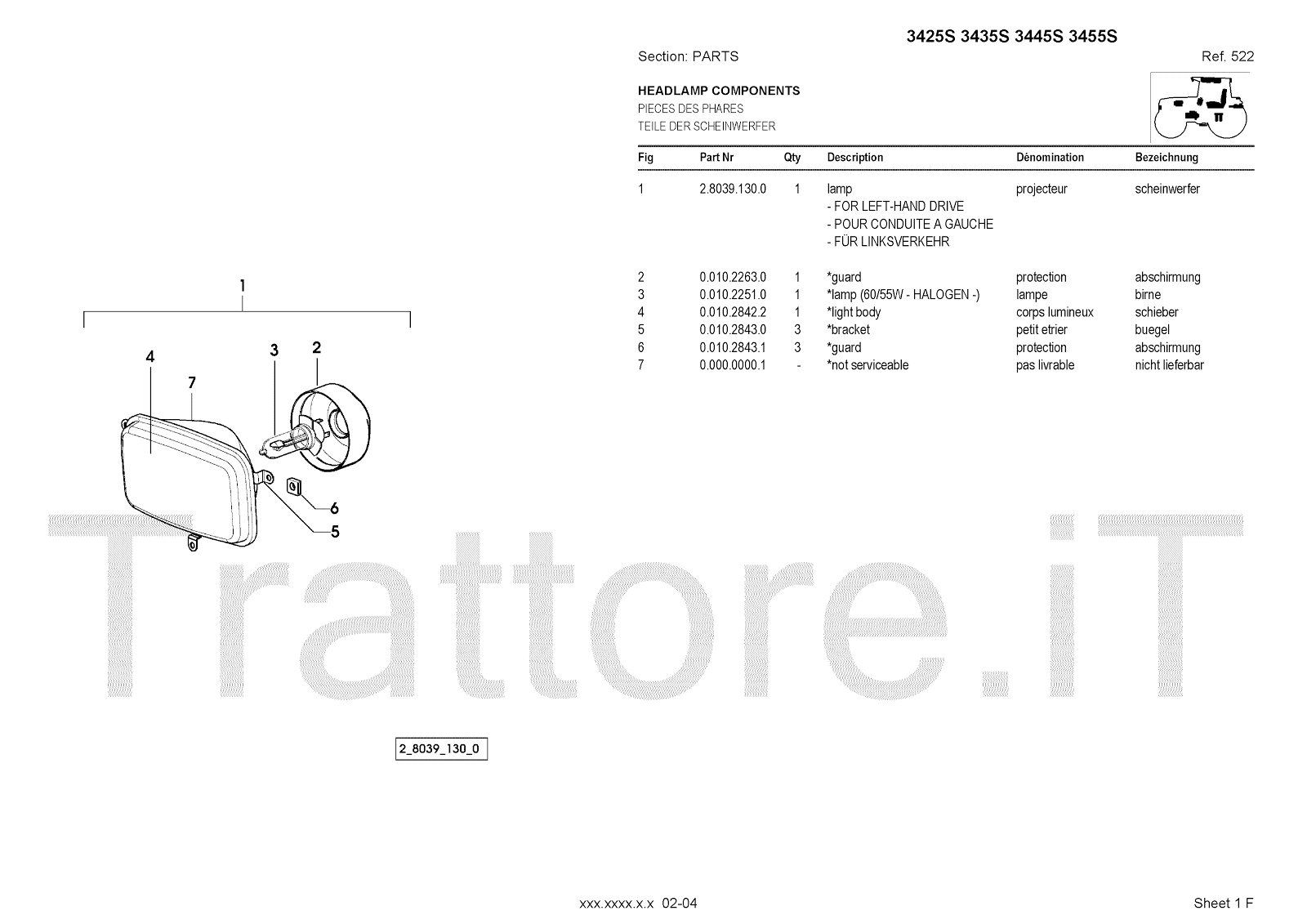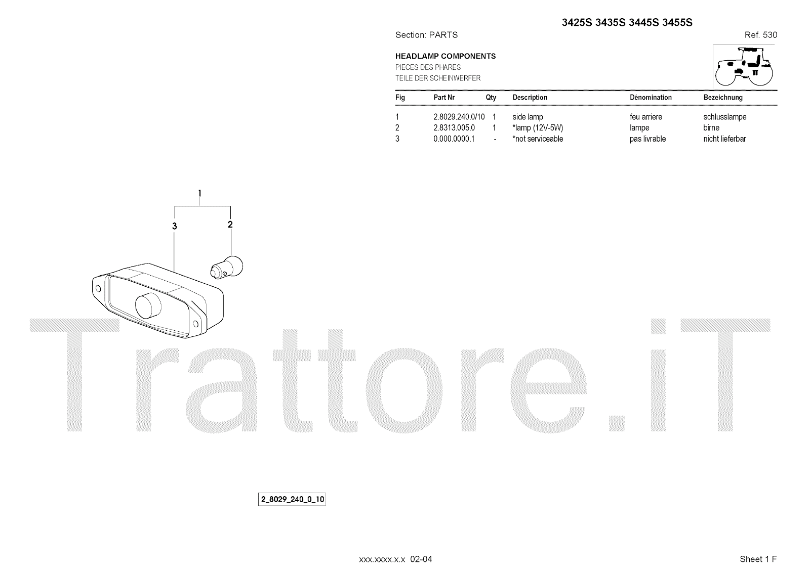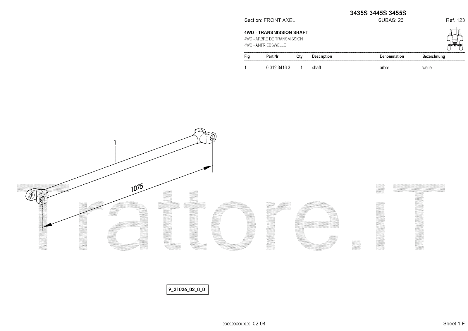 Manuale (esploso meccanico) per trattore / trattrice Massey Ferguson 3425S