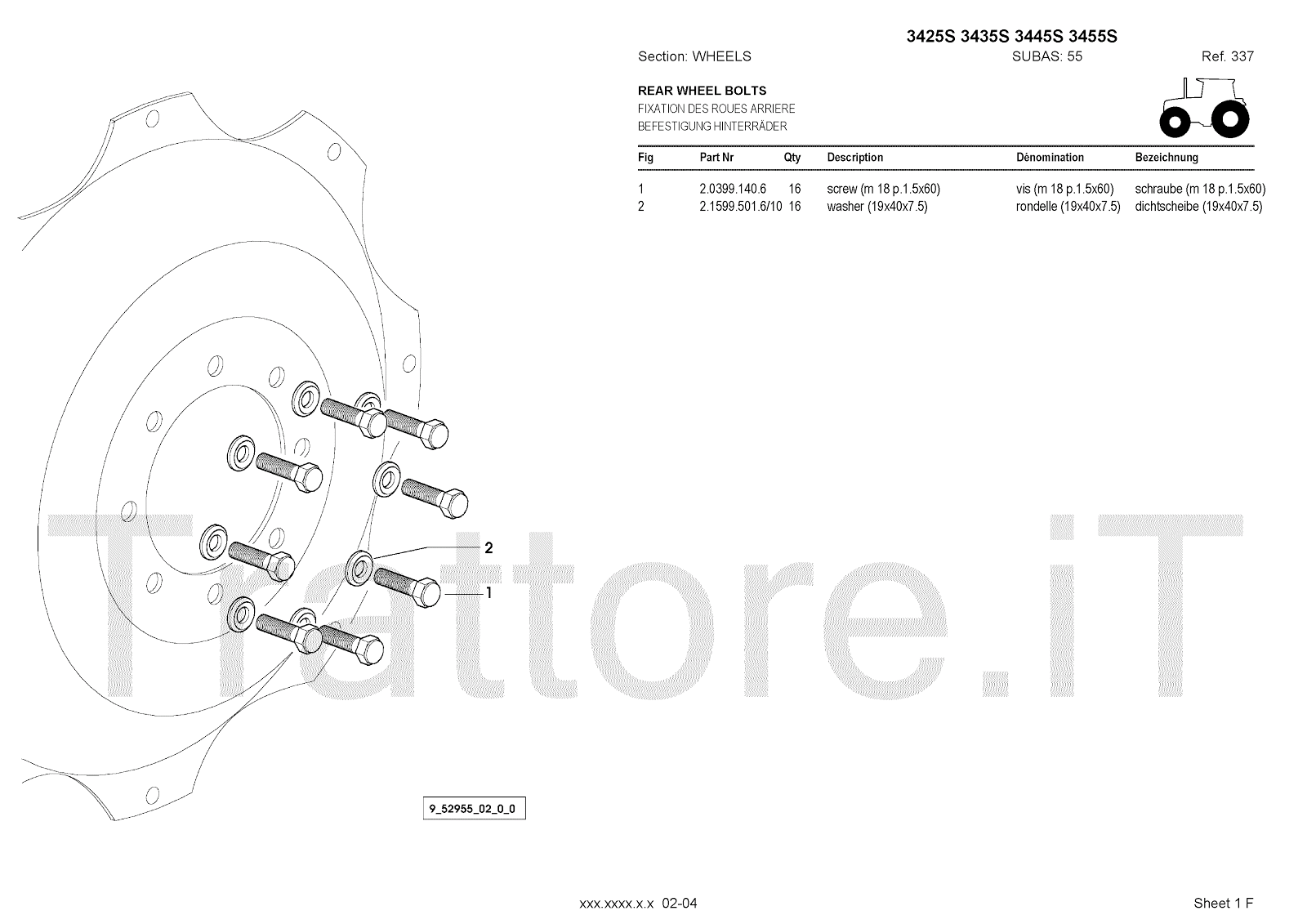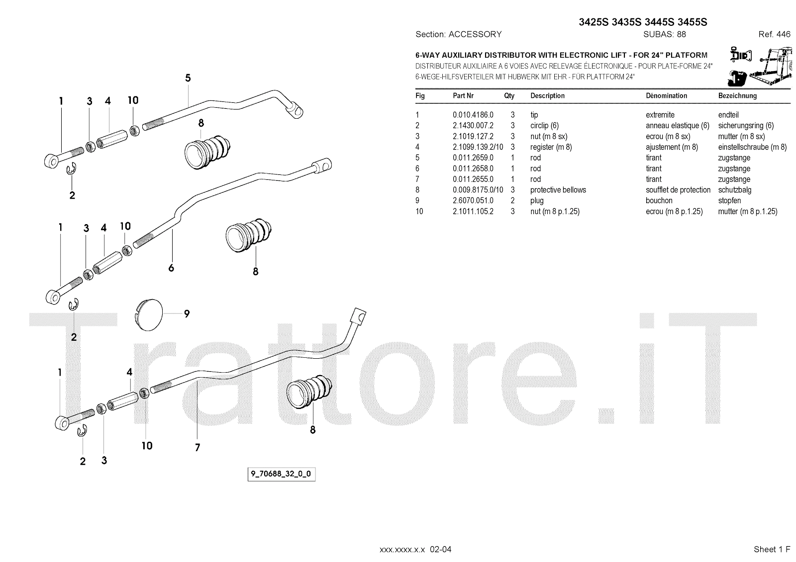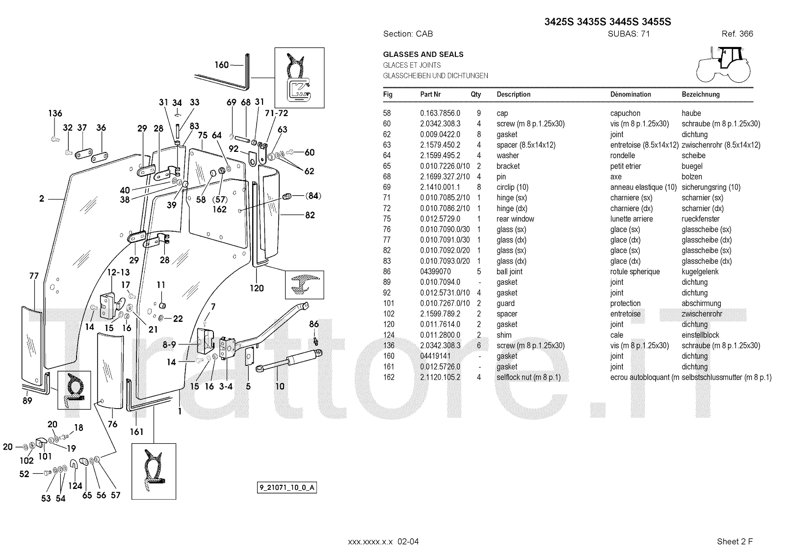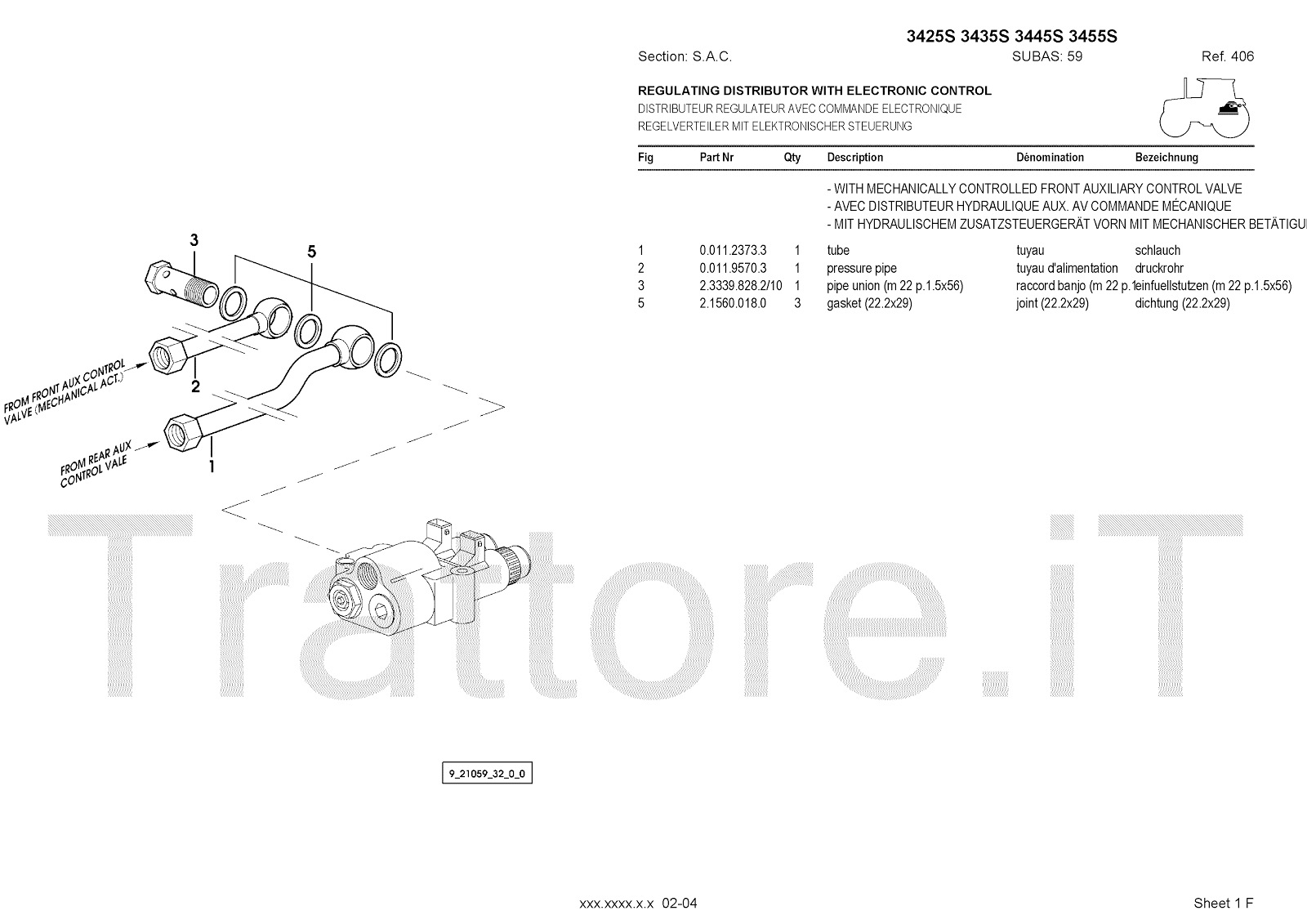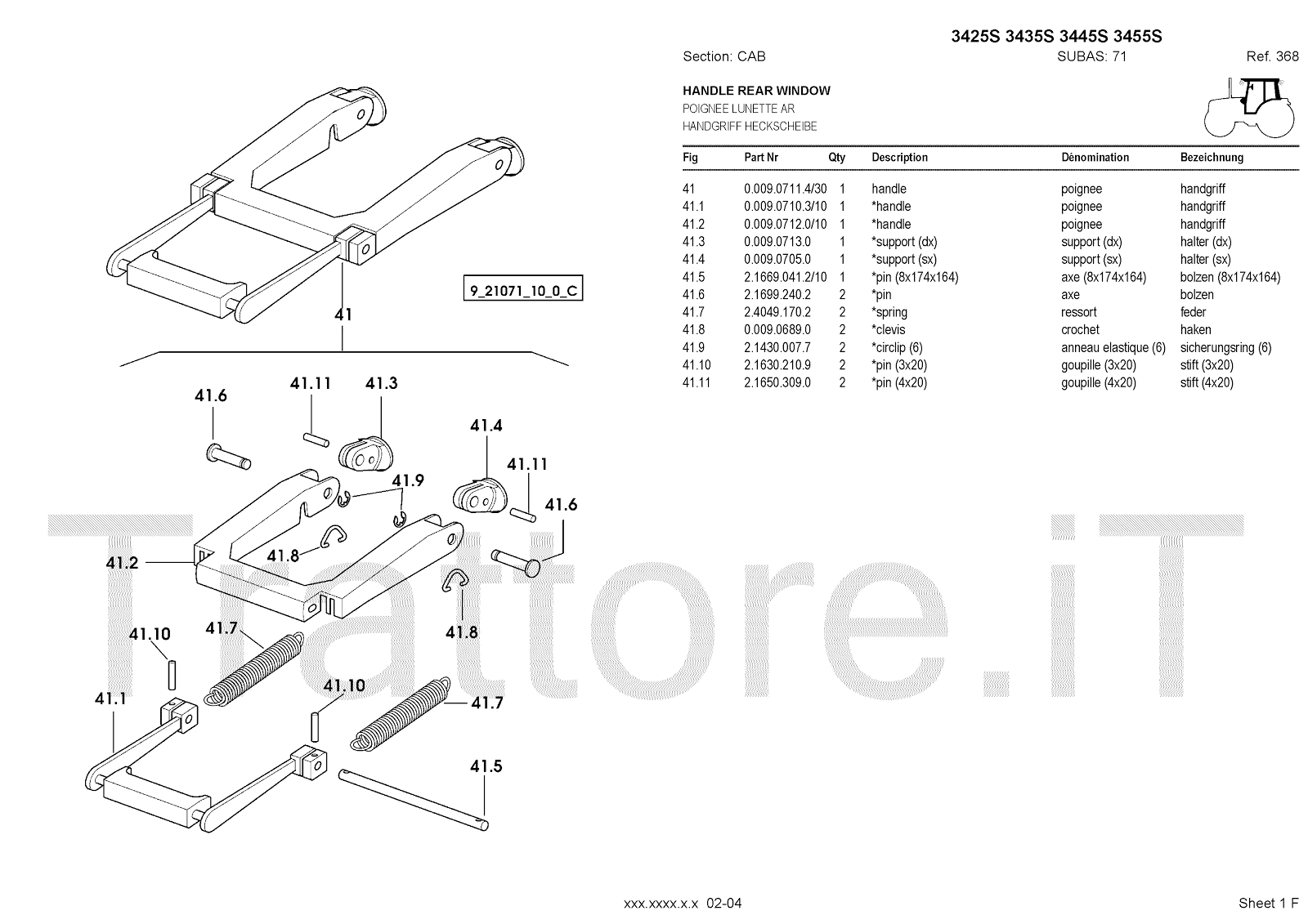 Manuale (esploso meccanico) per trattore / trattrice Massey Ferguson 3425S