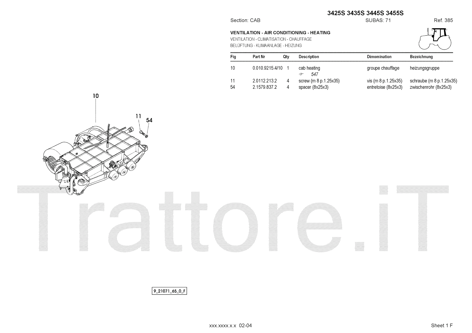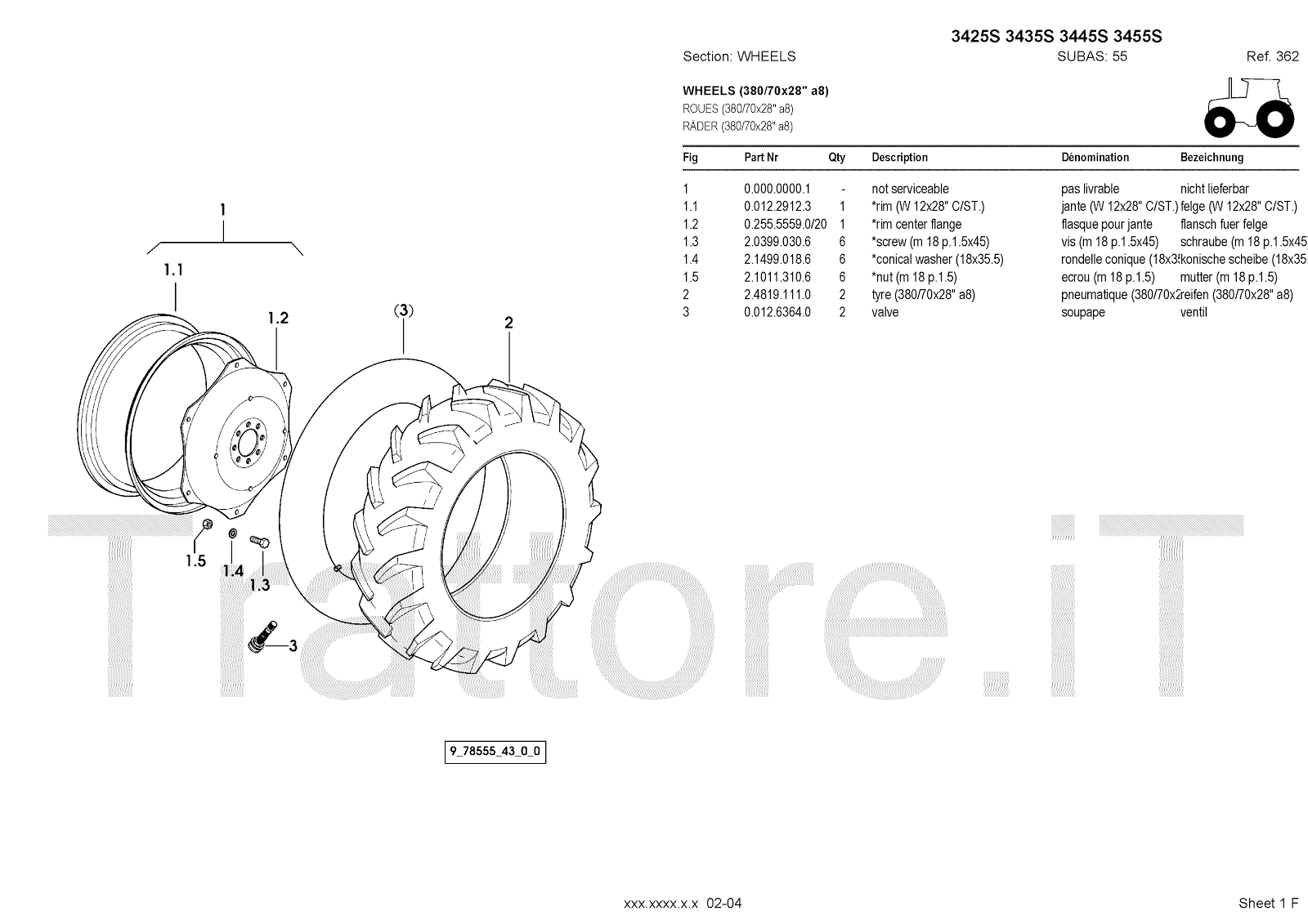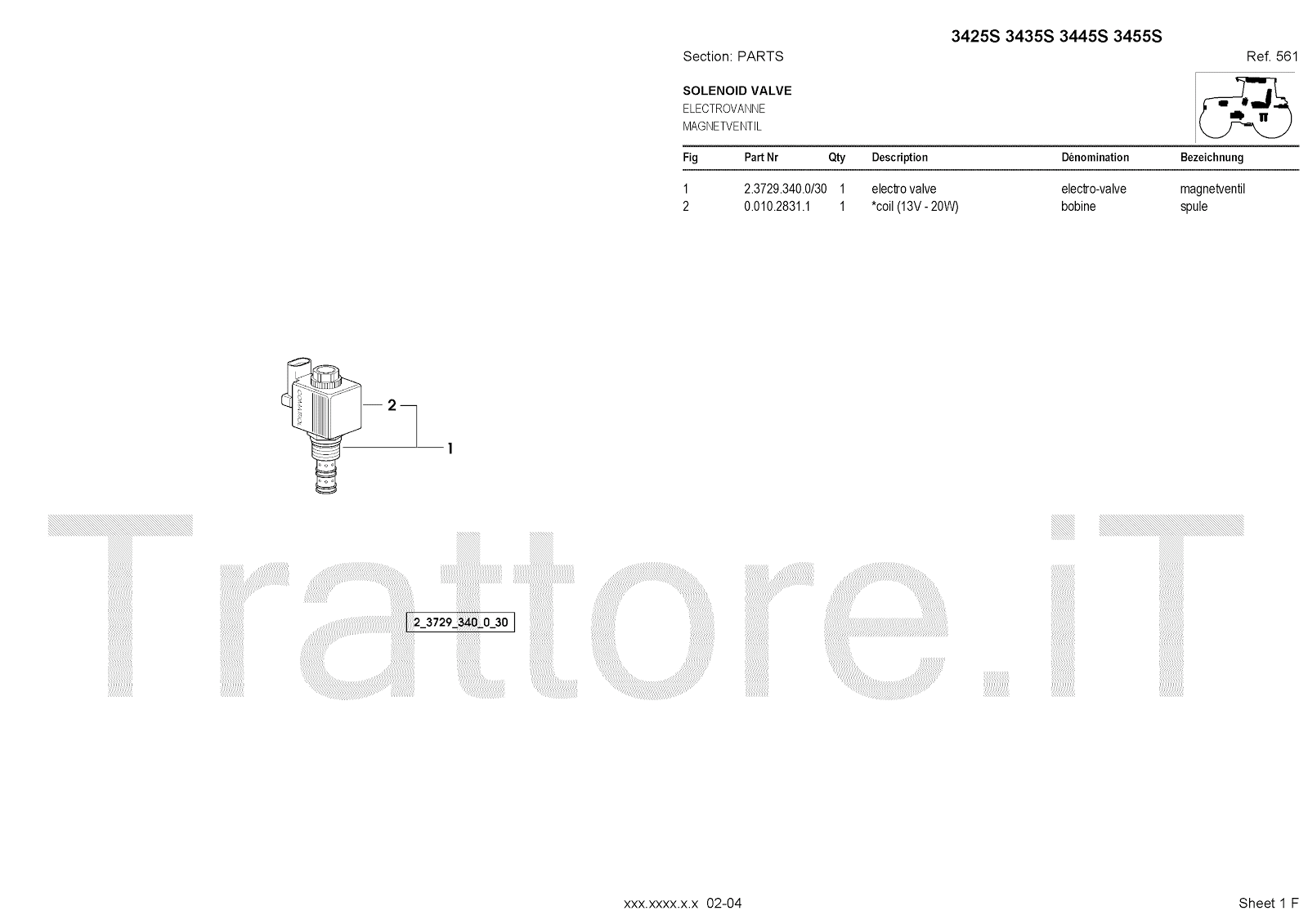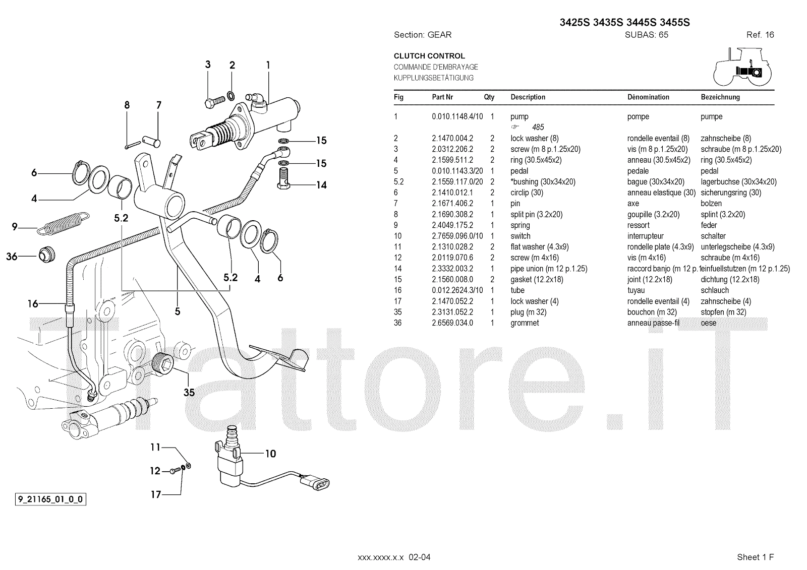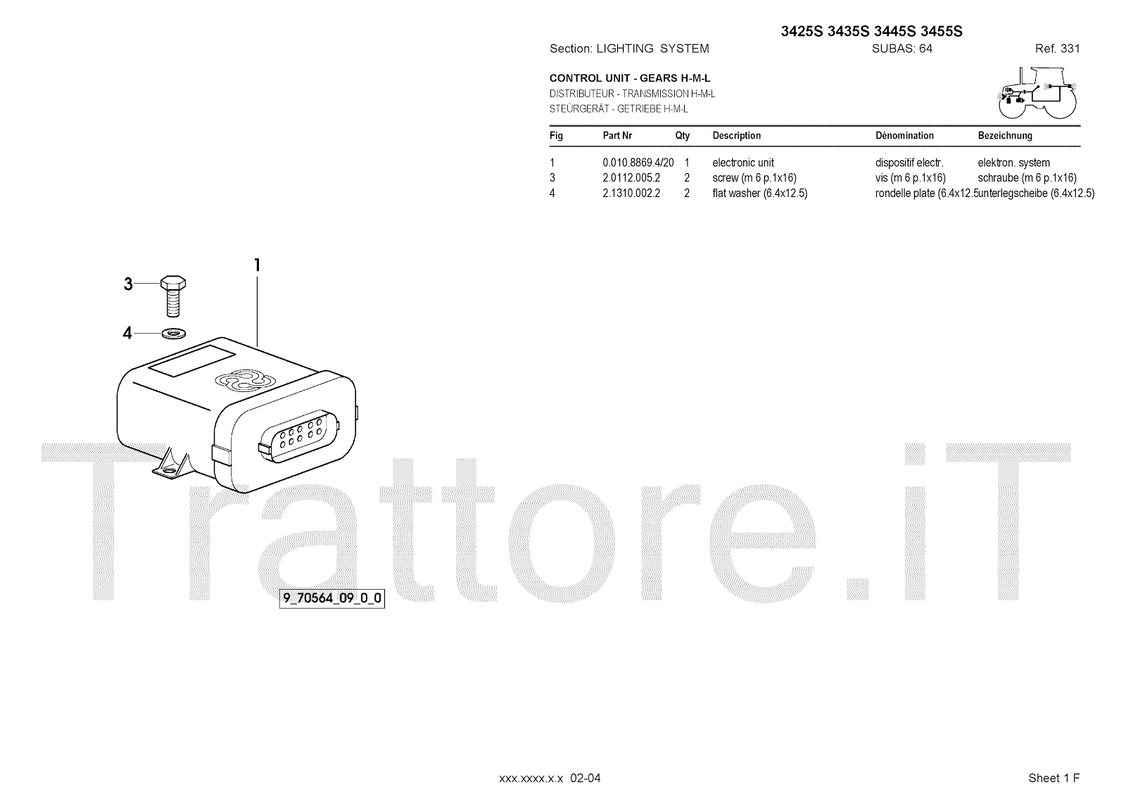 Manuale (esploso meccanico) per trattore / trattrice Massey Ferguson 3425S
