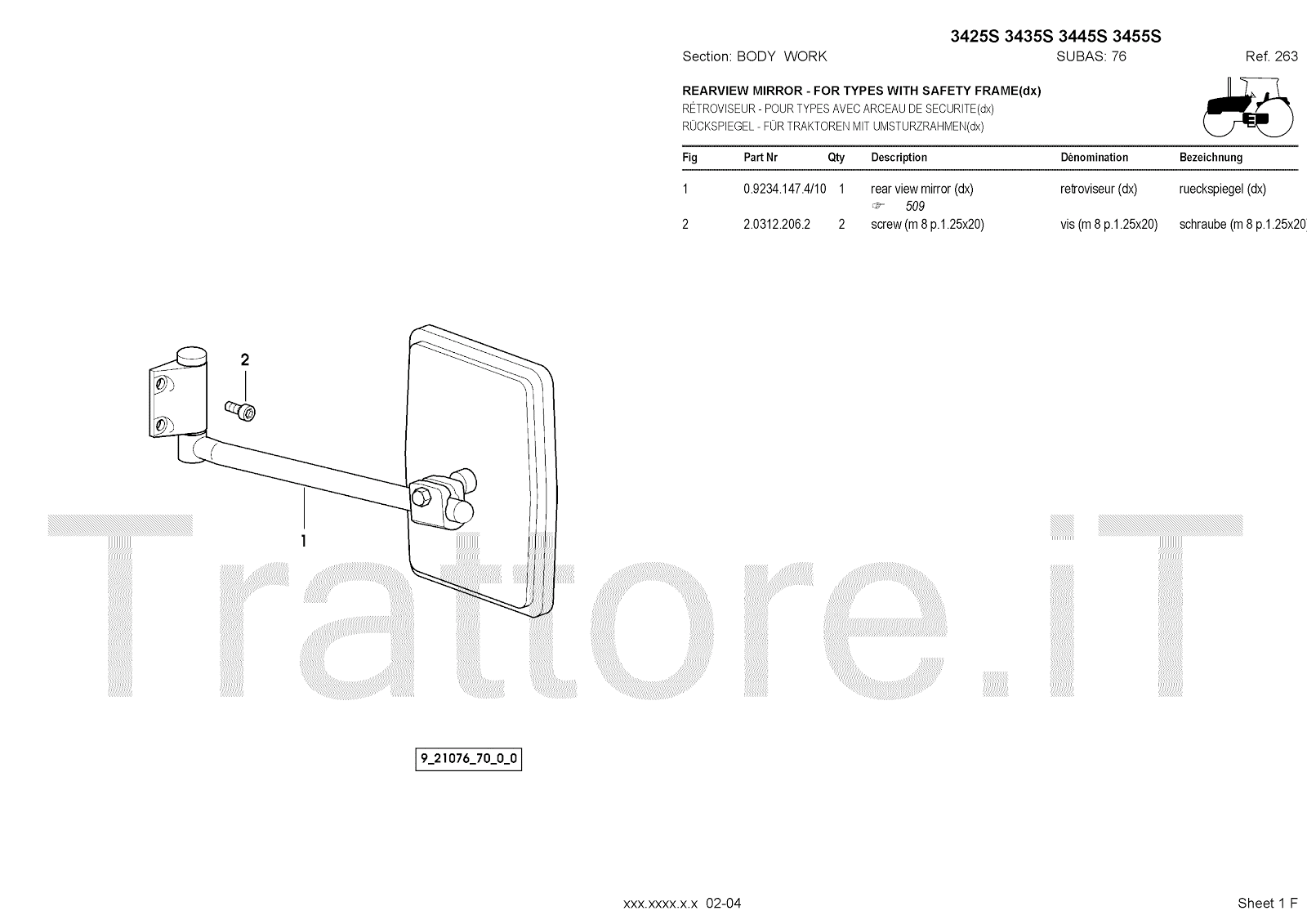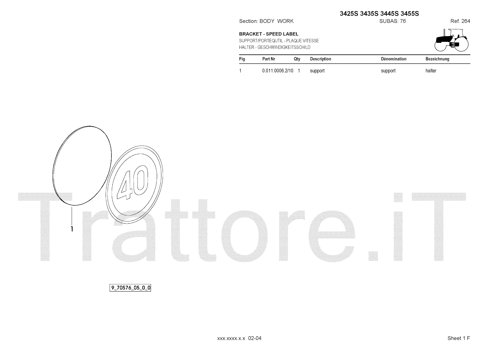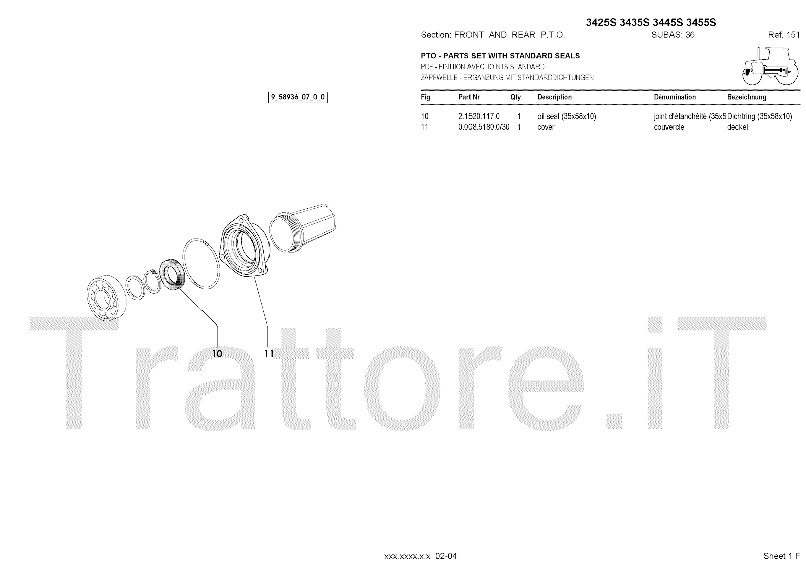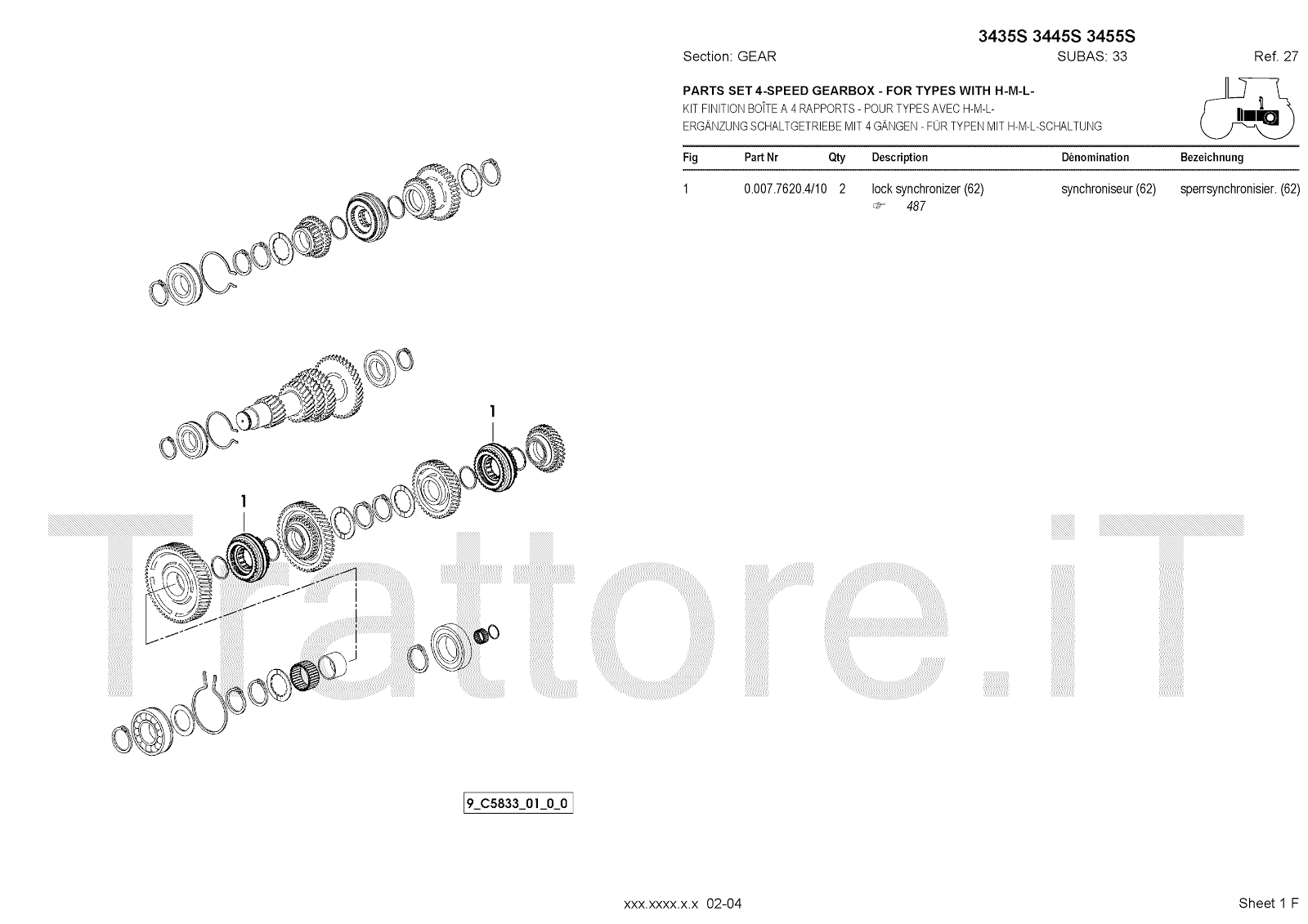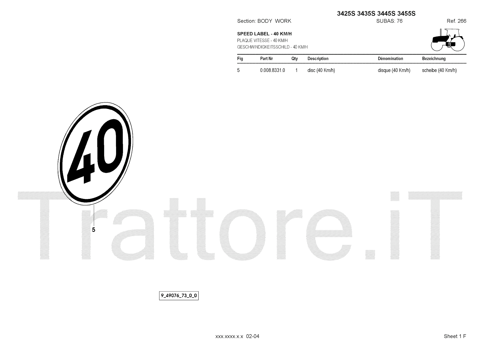 Manuale (esploso meccanico) per trattore / trattrice Massey Ferguson 3425S