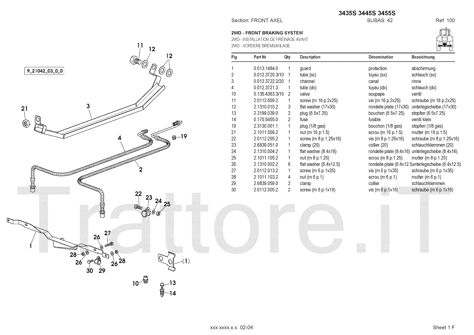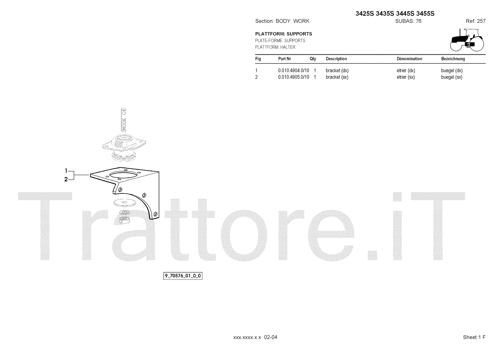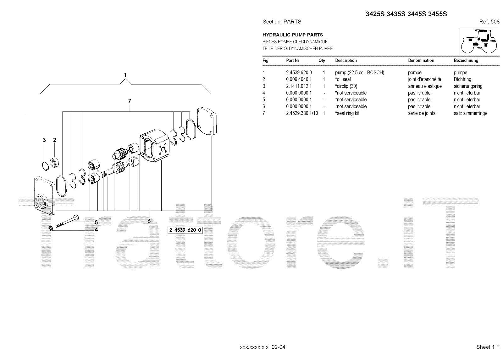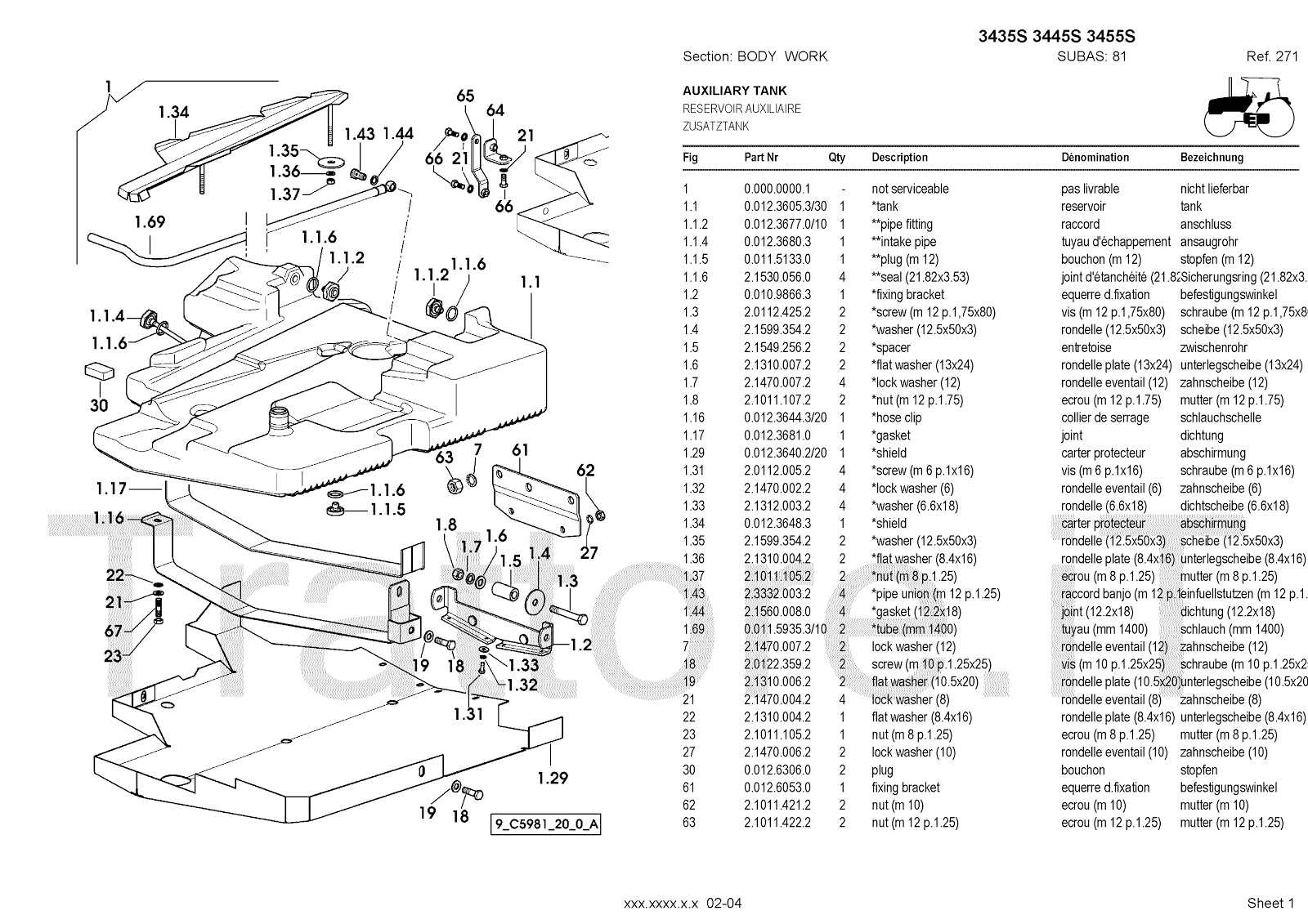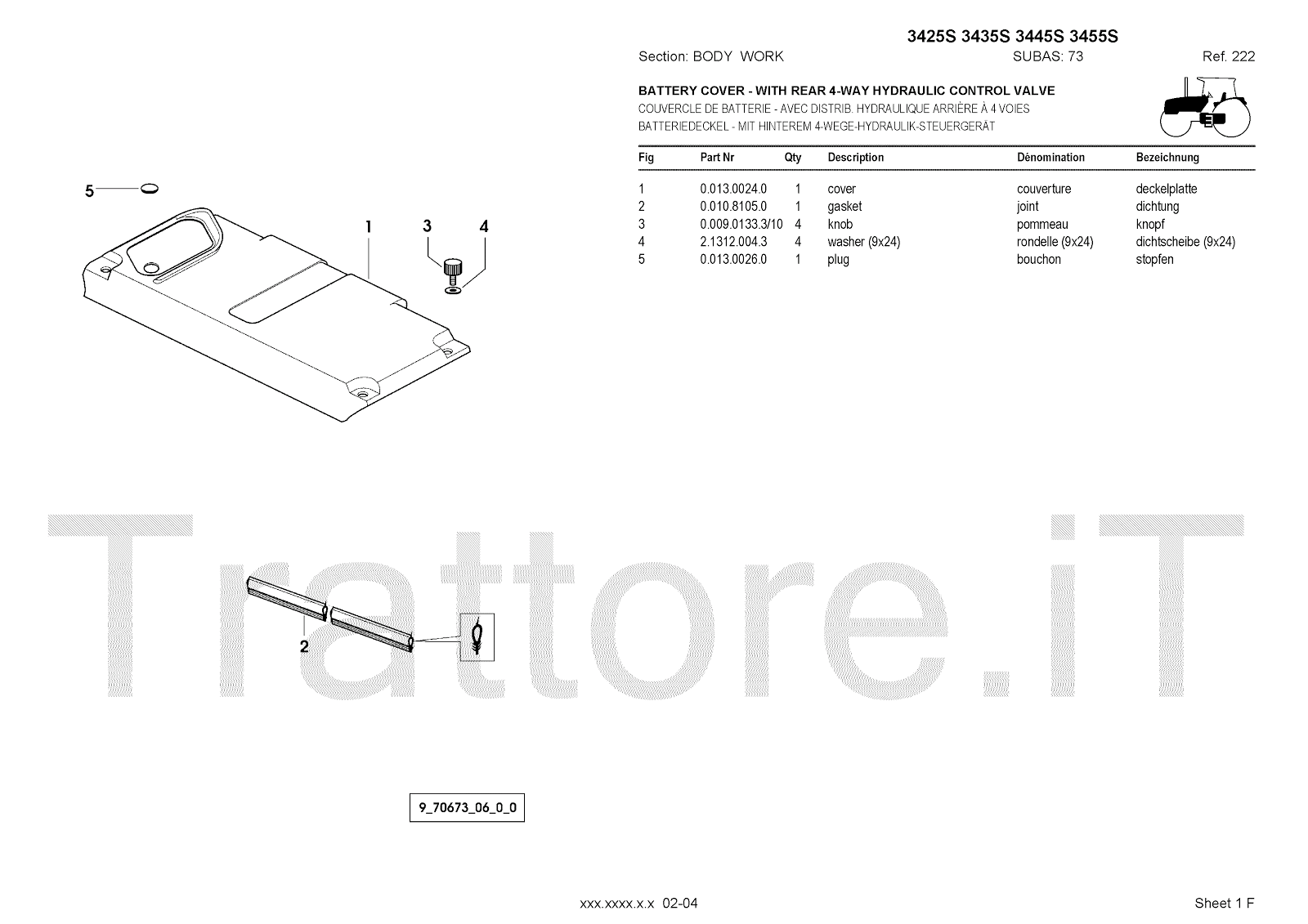 Manuale (esploso meccanico) per trattore / trattrice Massey Ferguson 3425S