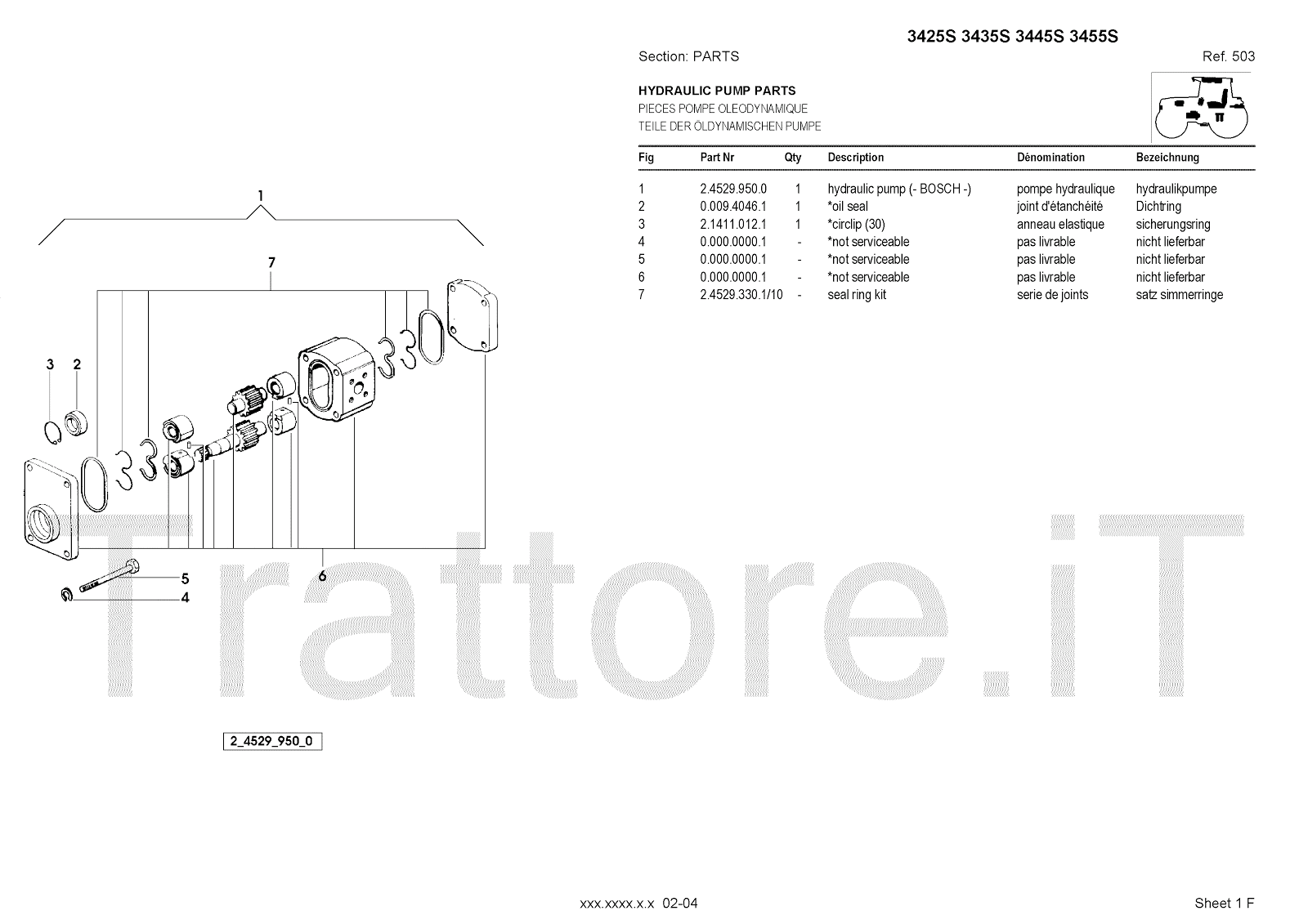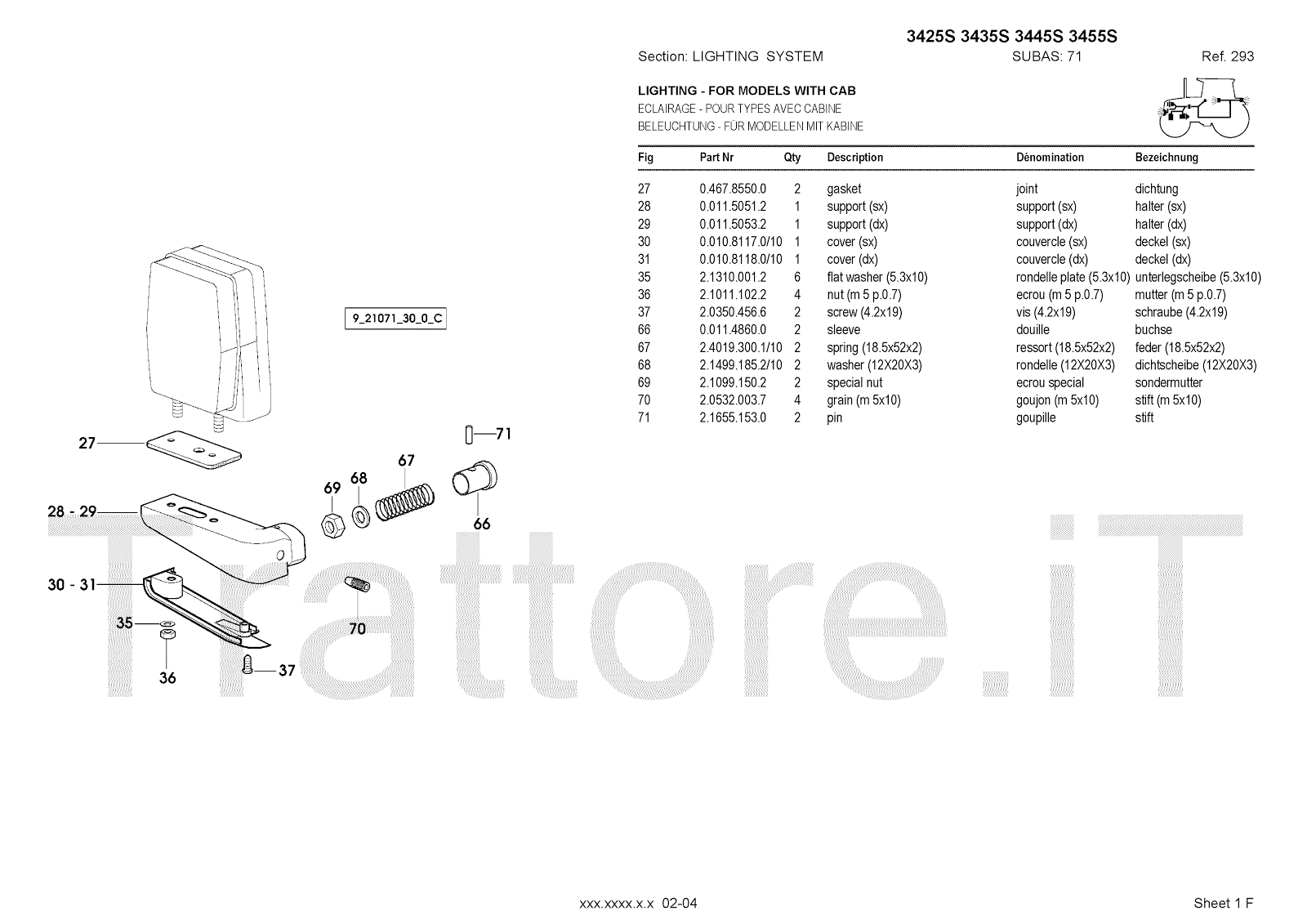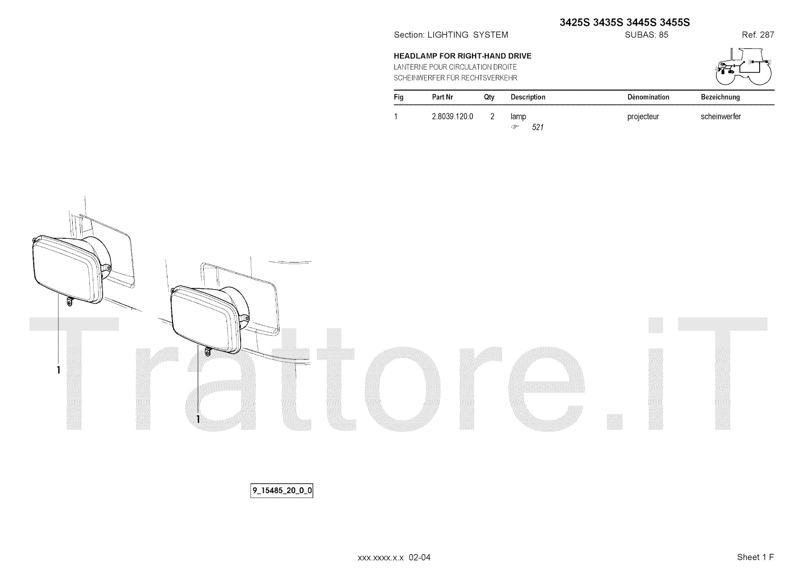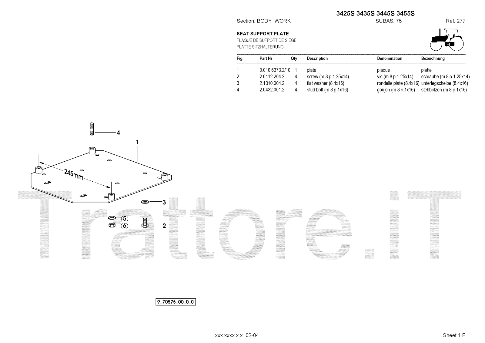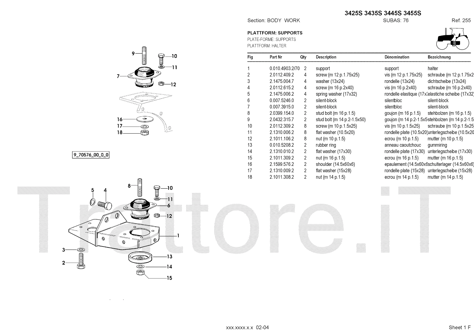 Manuale (esploso meccanico) per trattore / trattrice Massey Ferguson 3425S