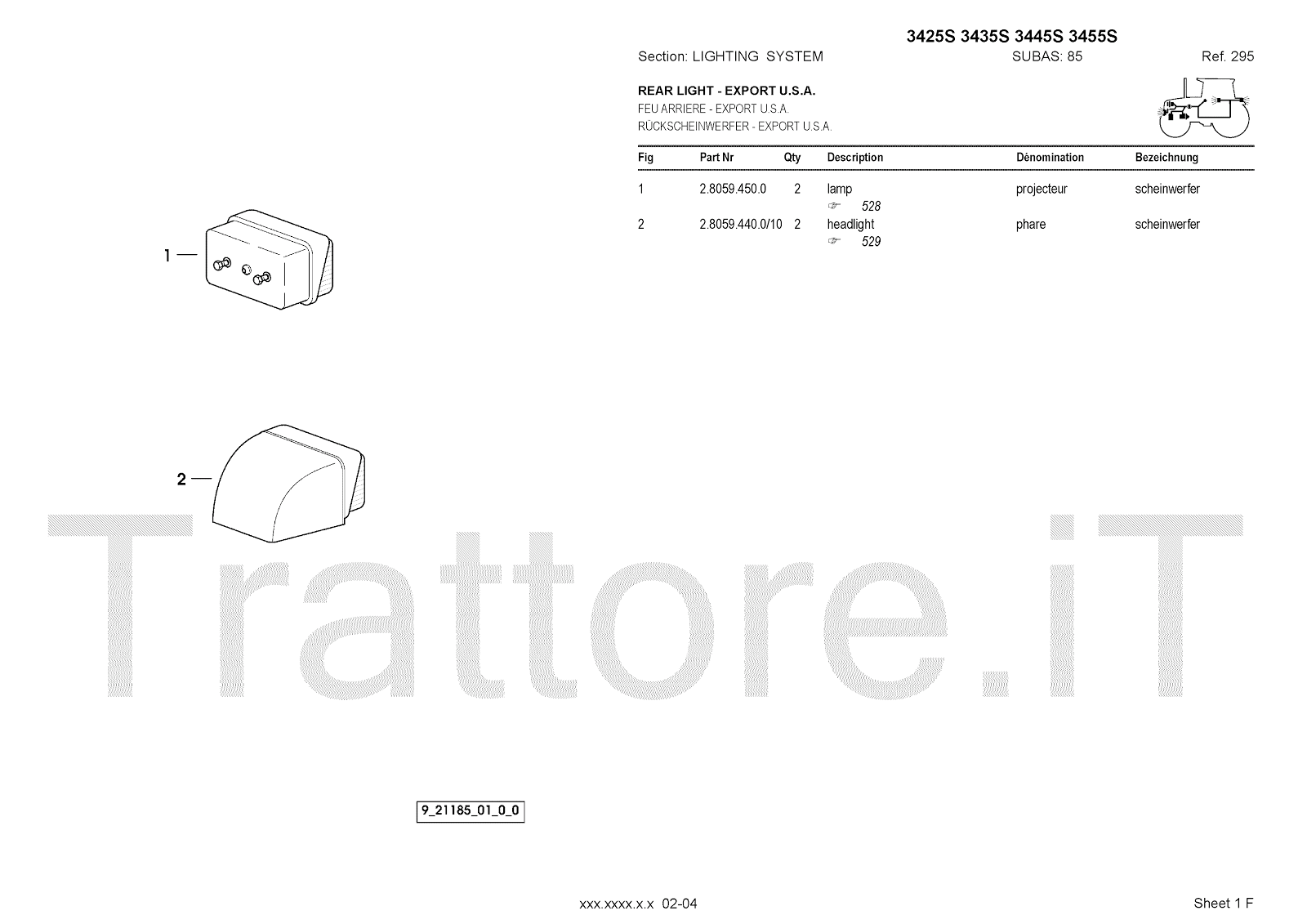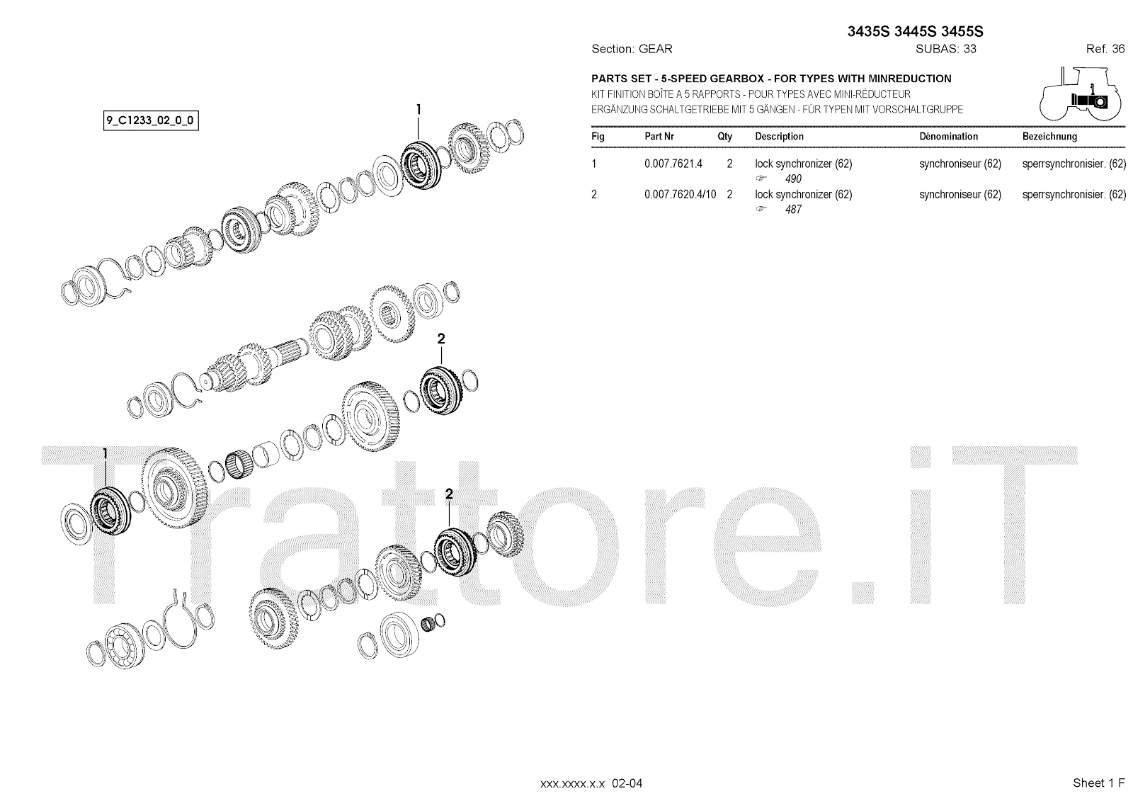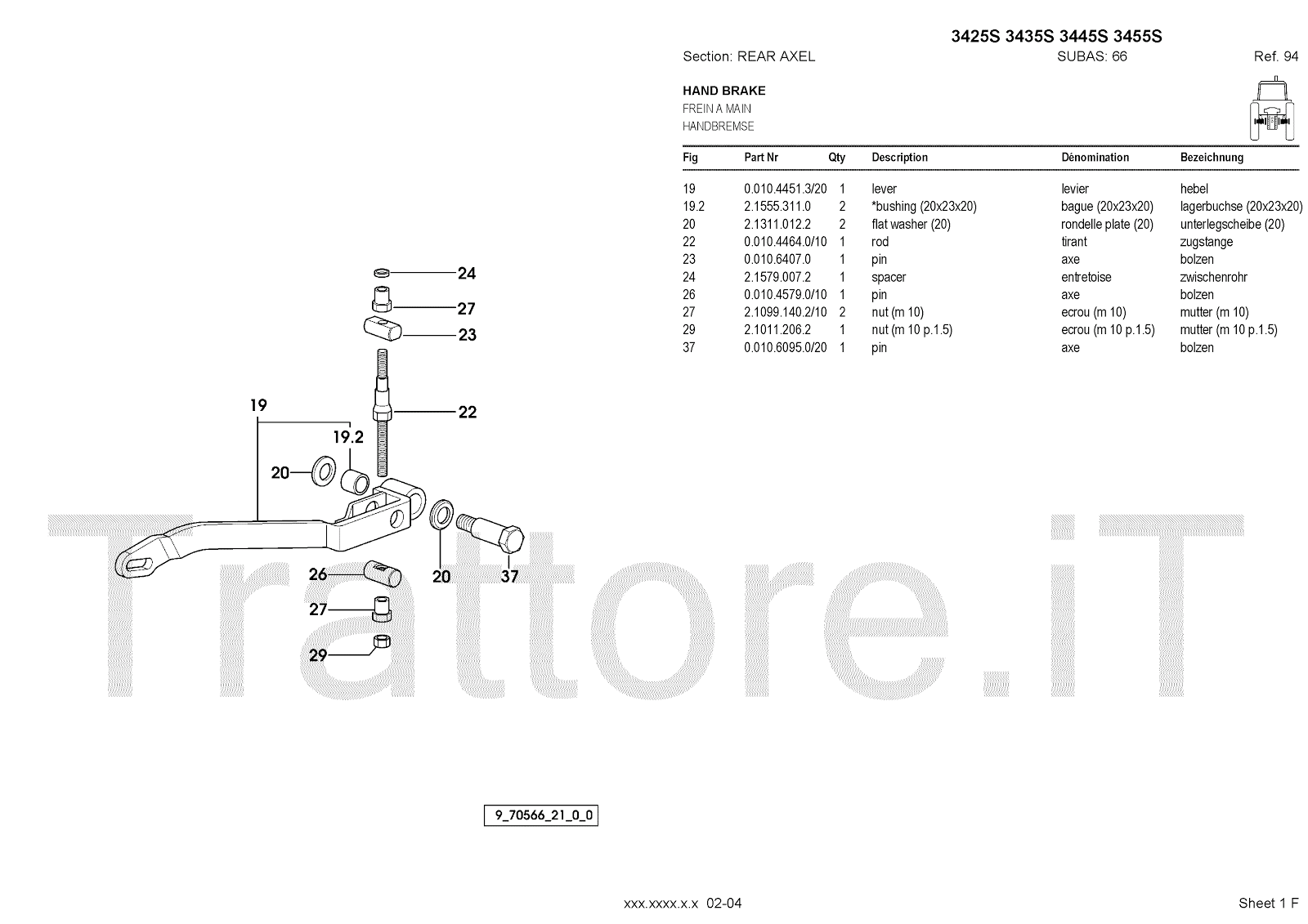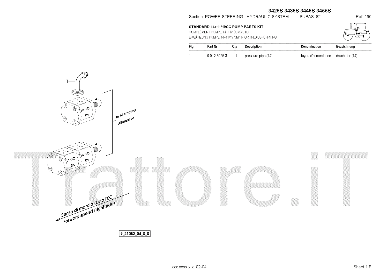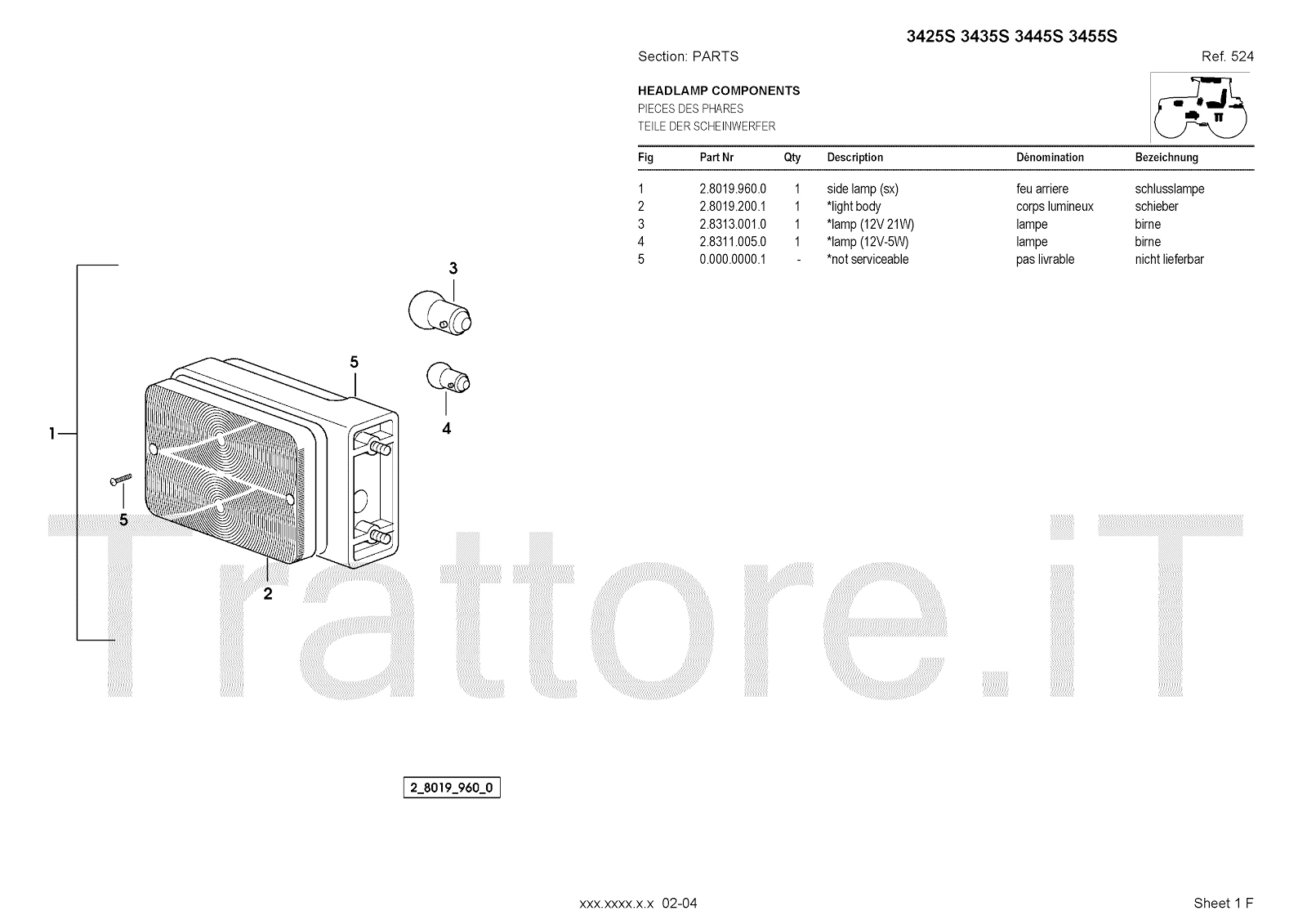 Manuale (esploso meccanico) per trattore / trattrice Massey Ferguson 3425S