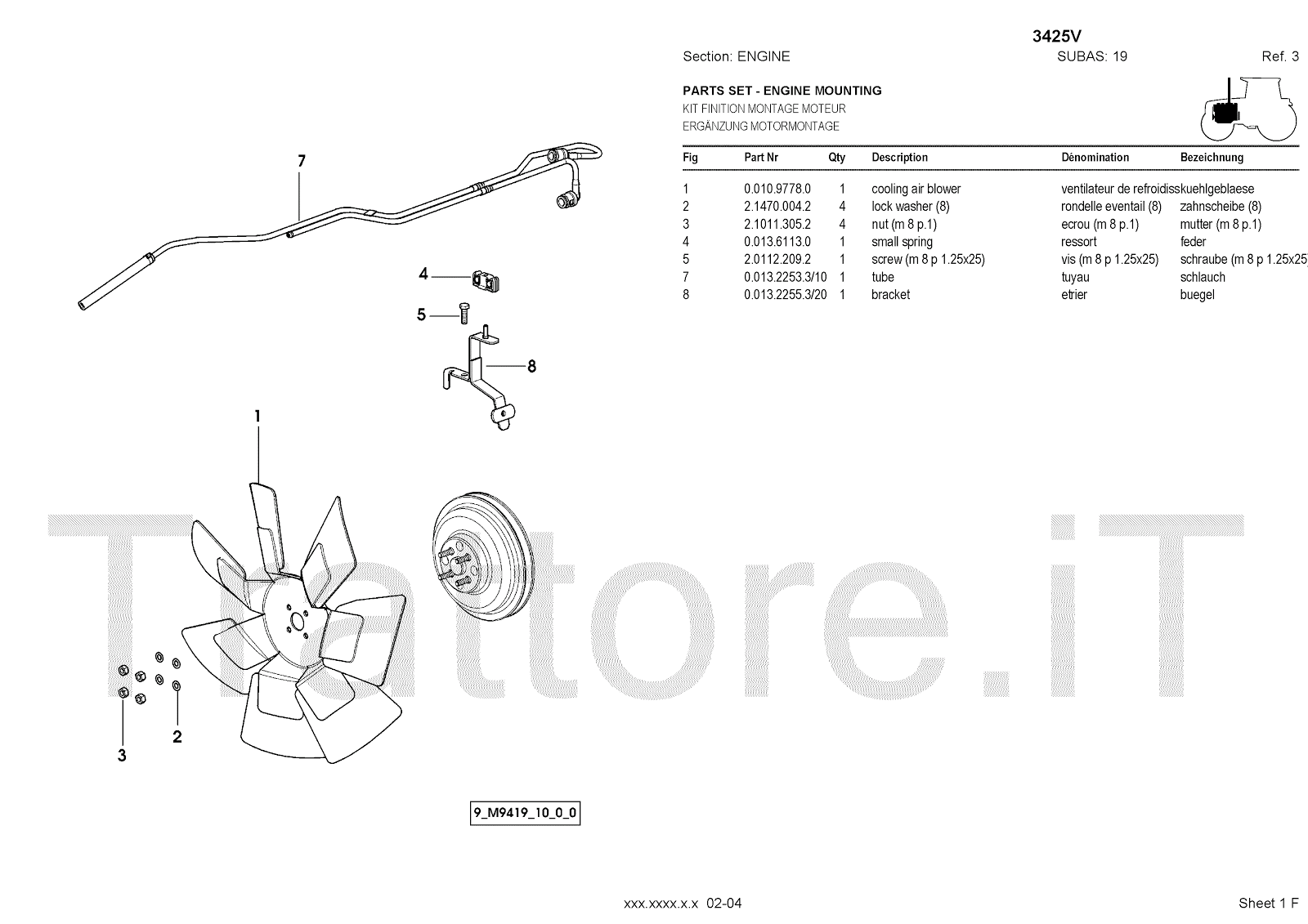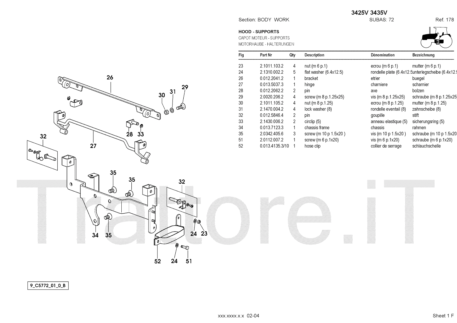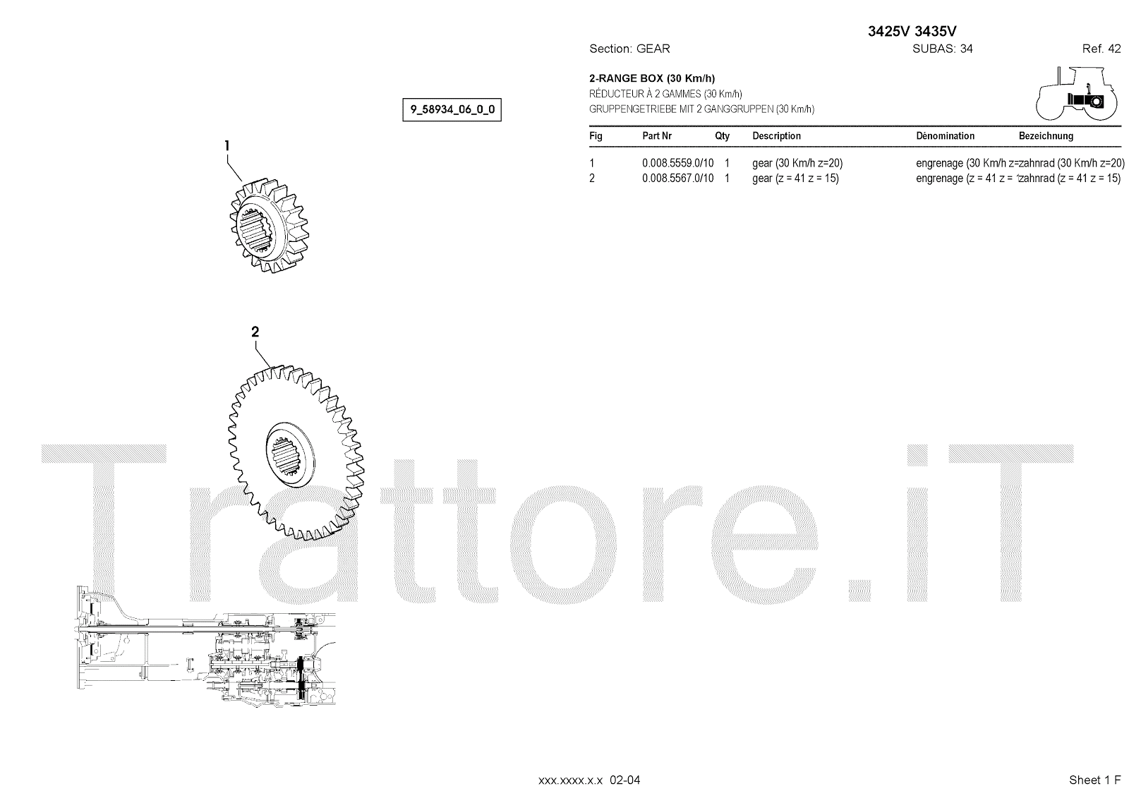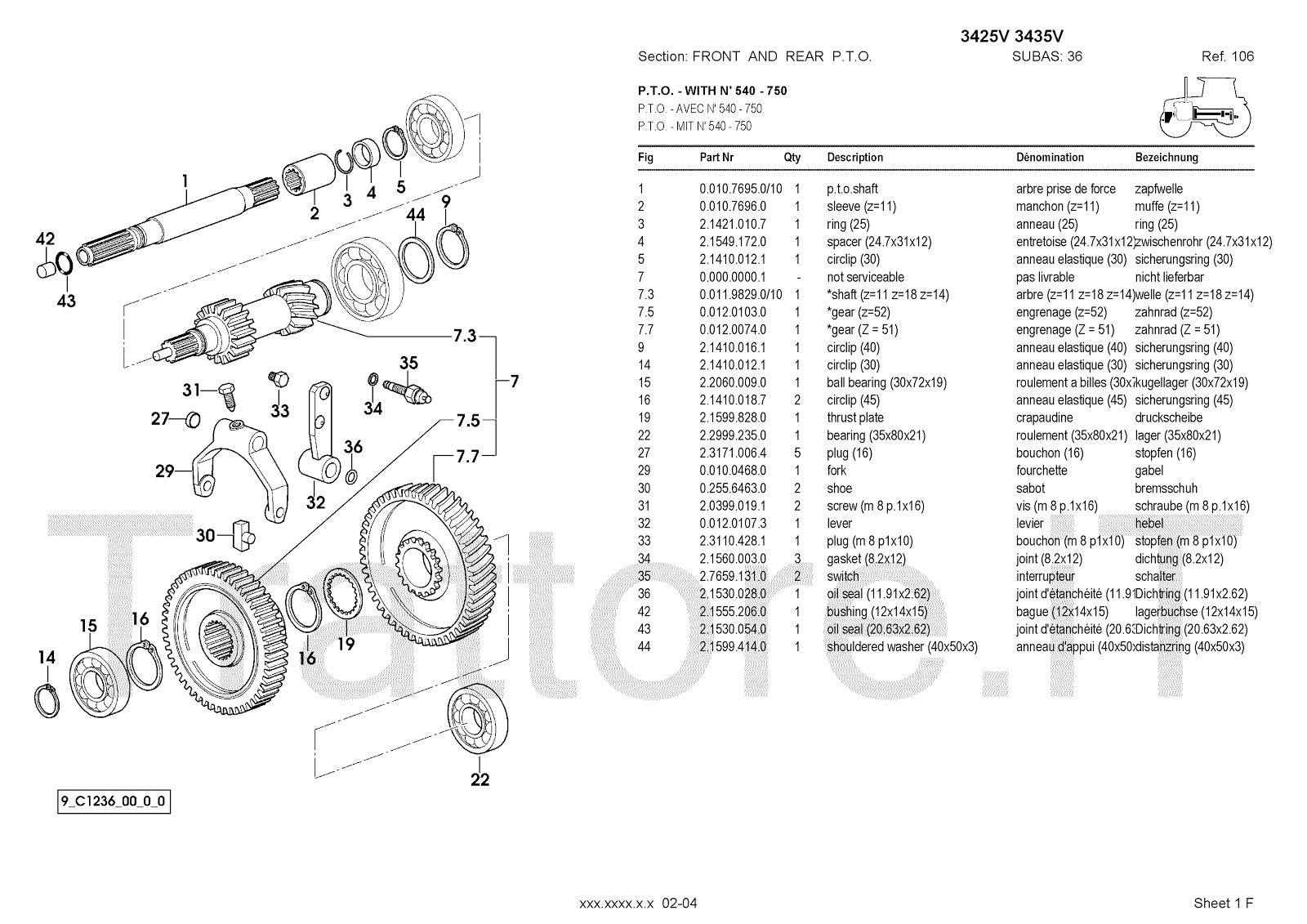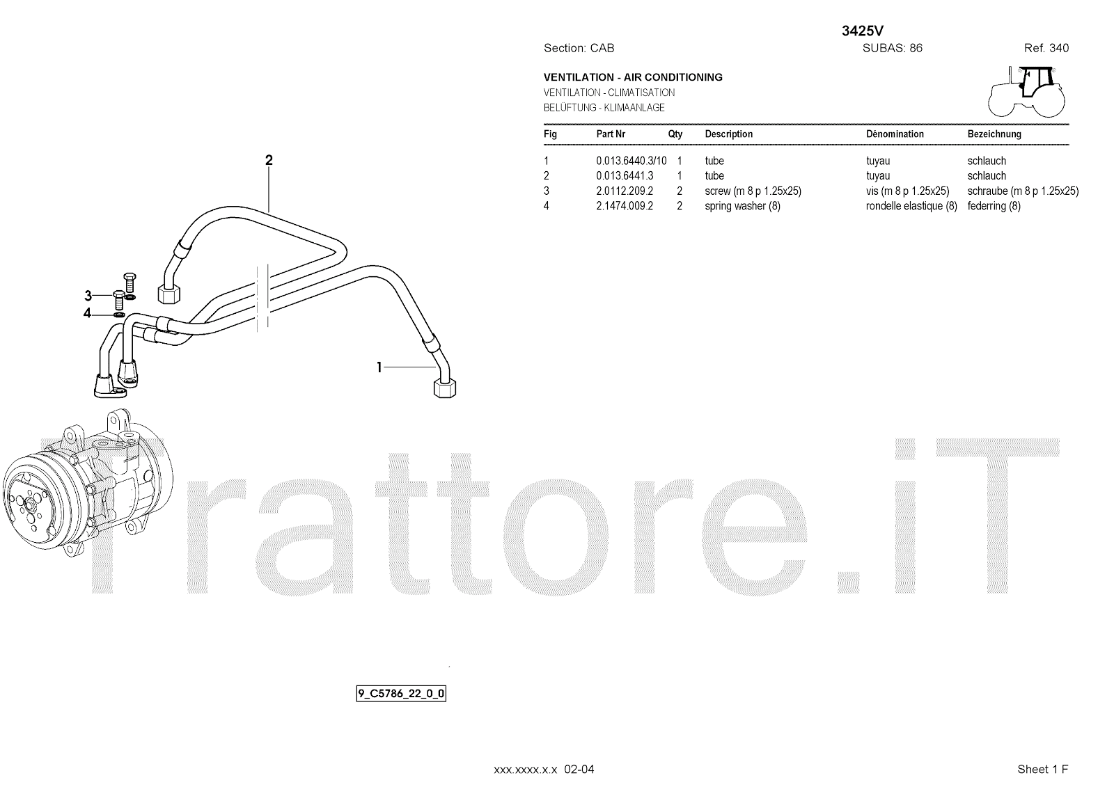 Manuale (esploso meccanico) per trattore / trattrice Massey Ferguson 3425V
