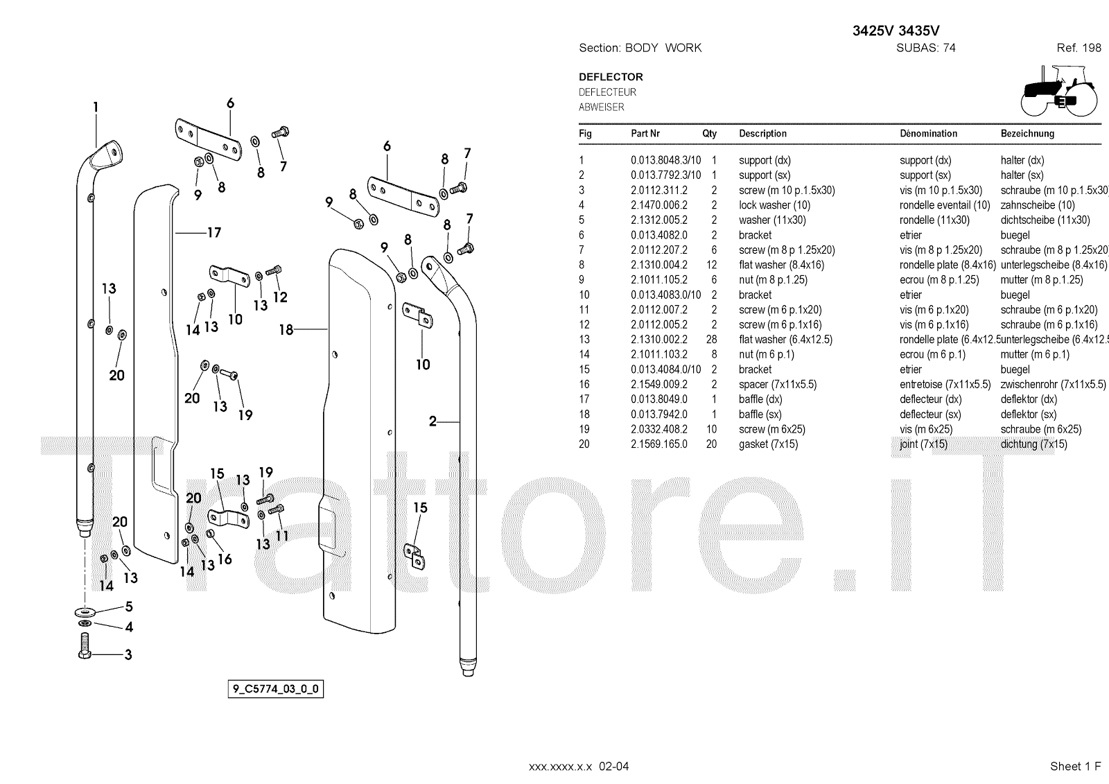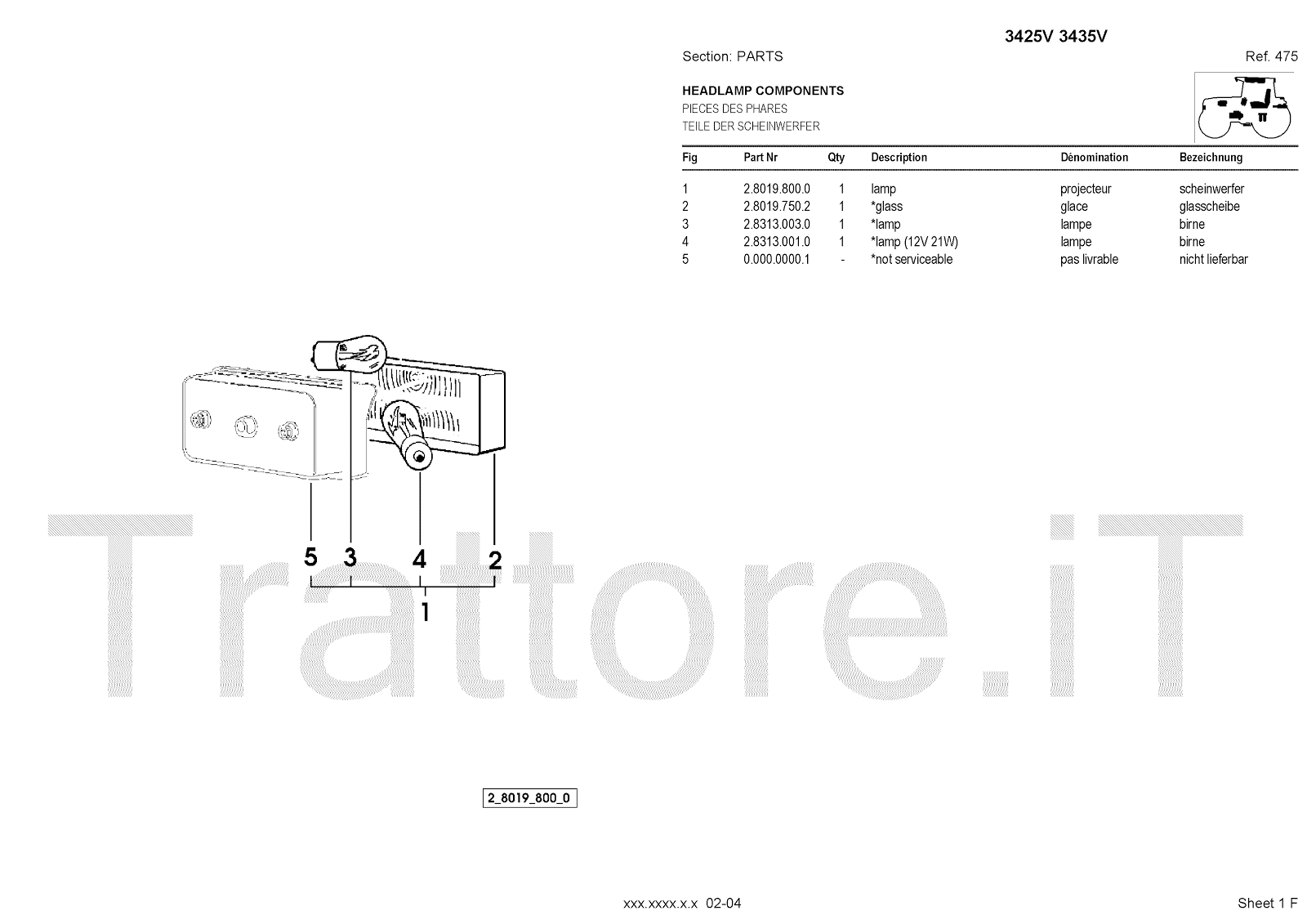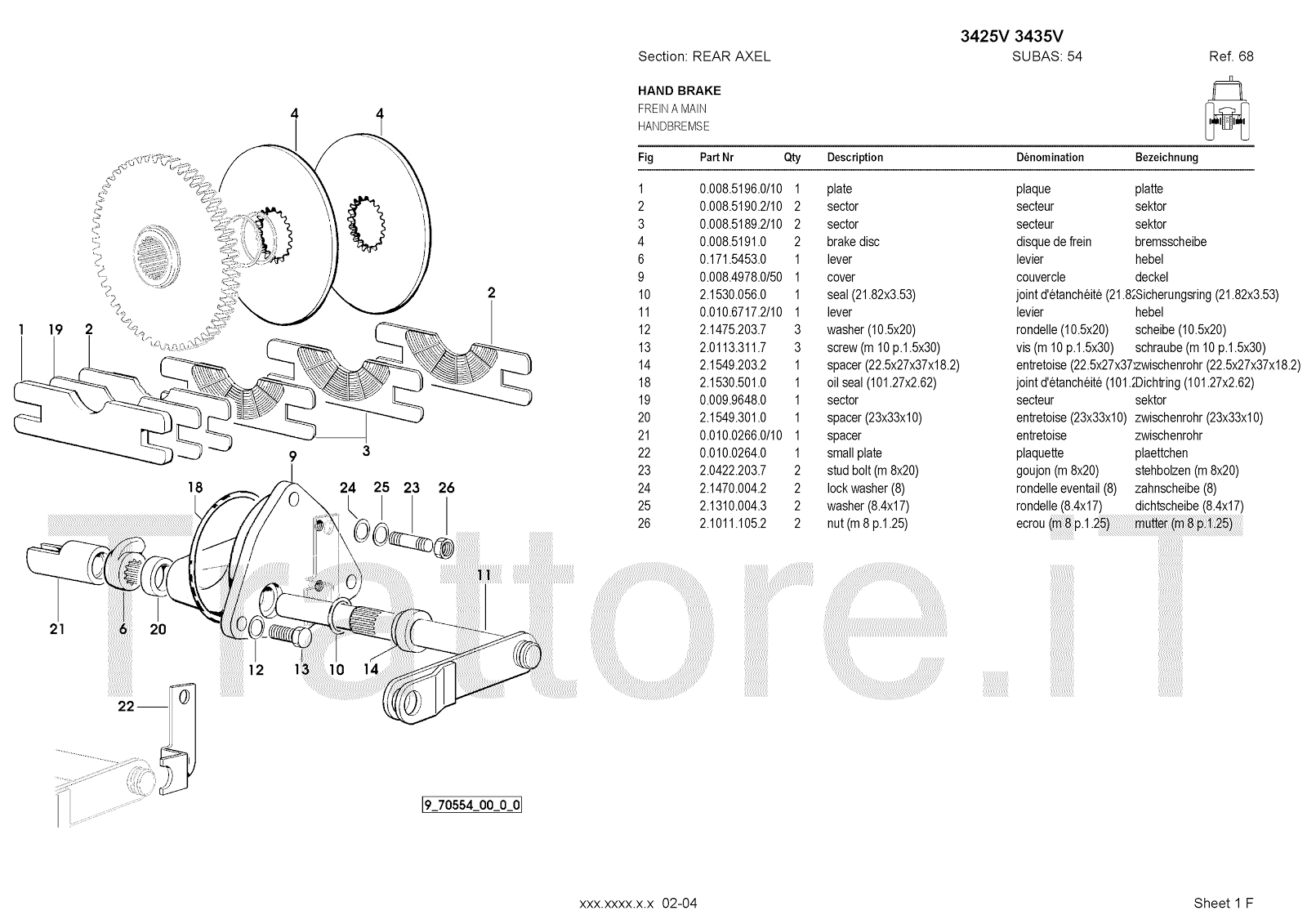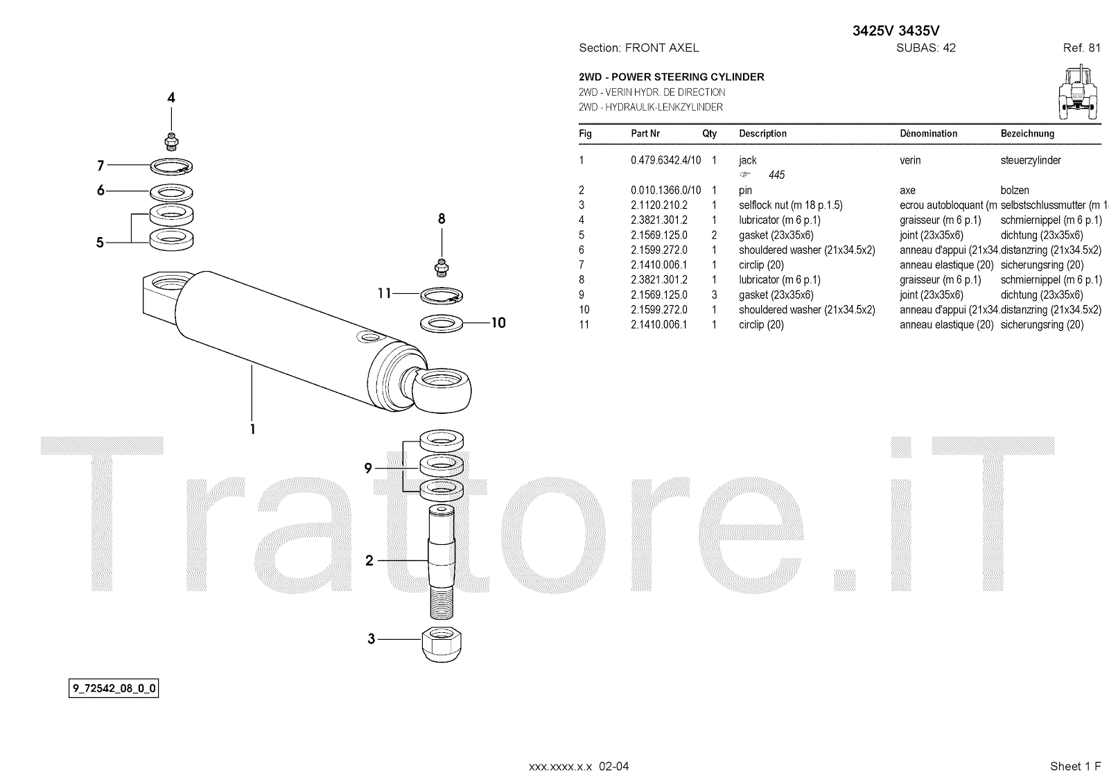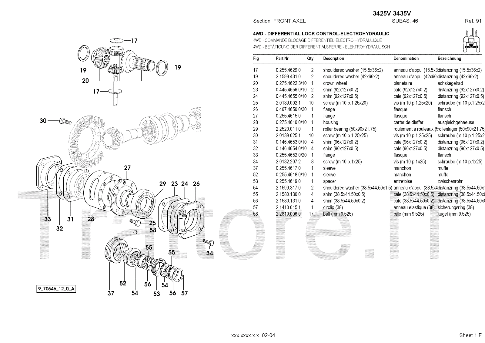 Manuale (esploso meccanico) per trattore / trattrice Massey Ferguson 3425V